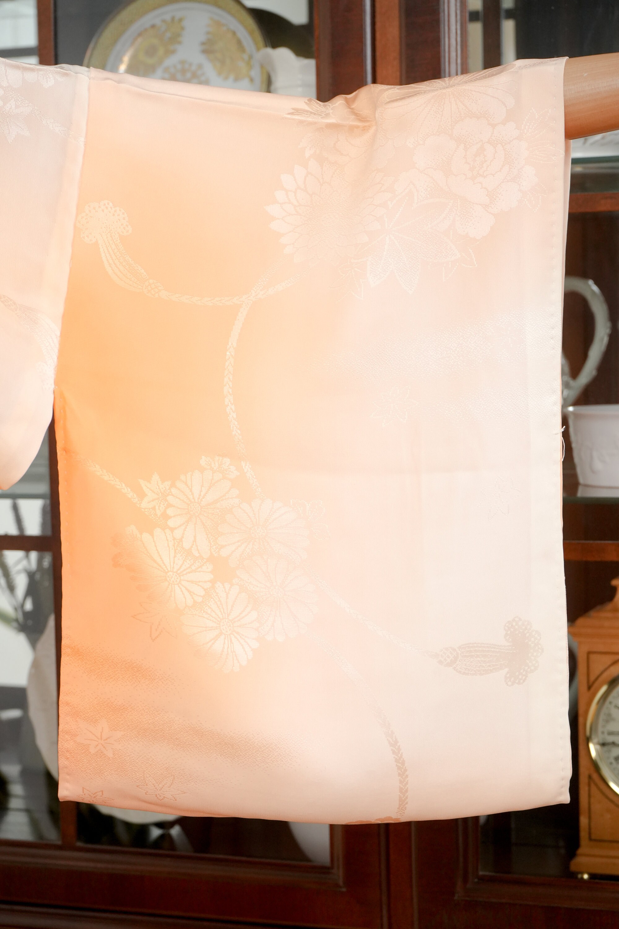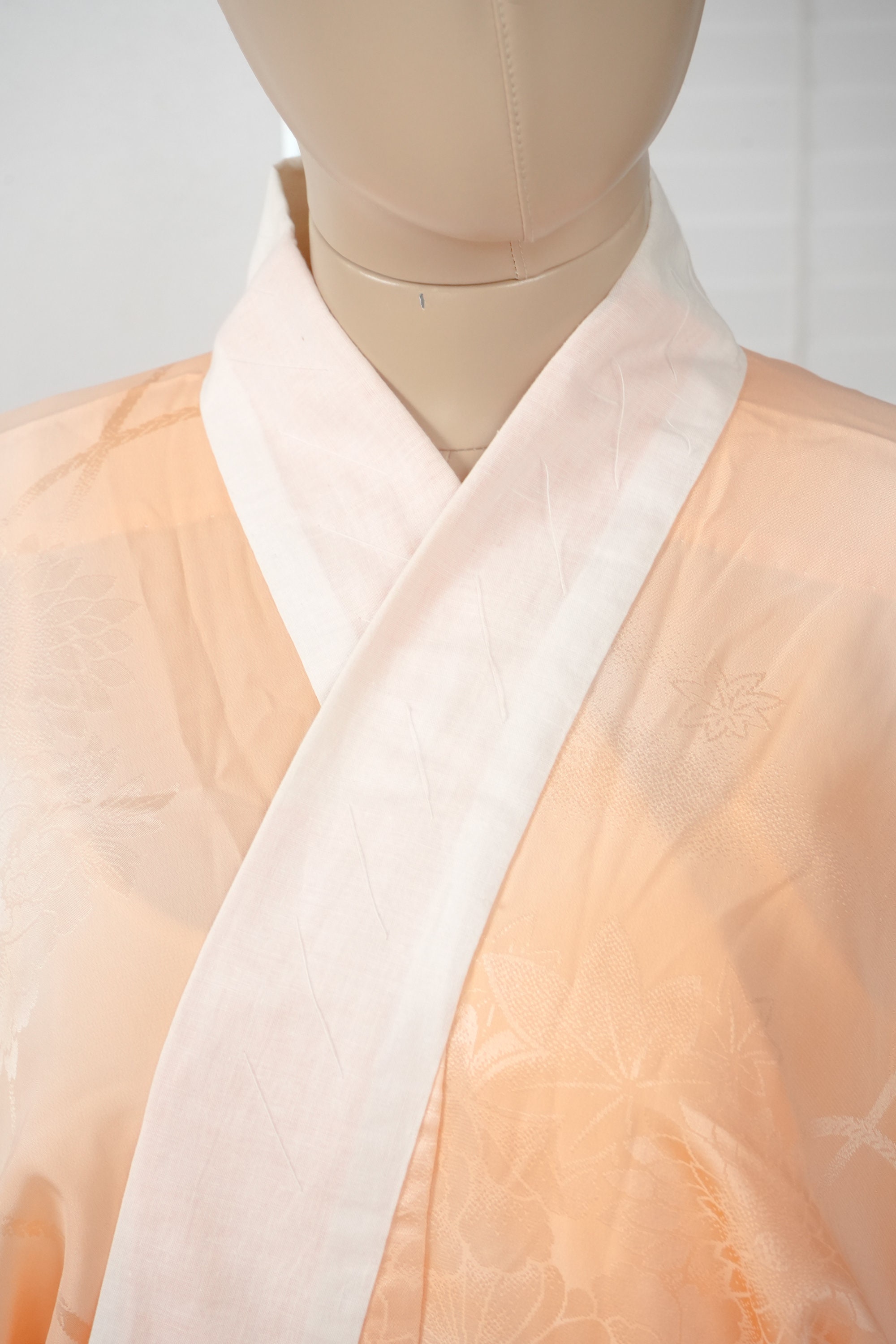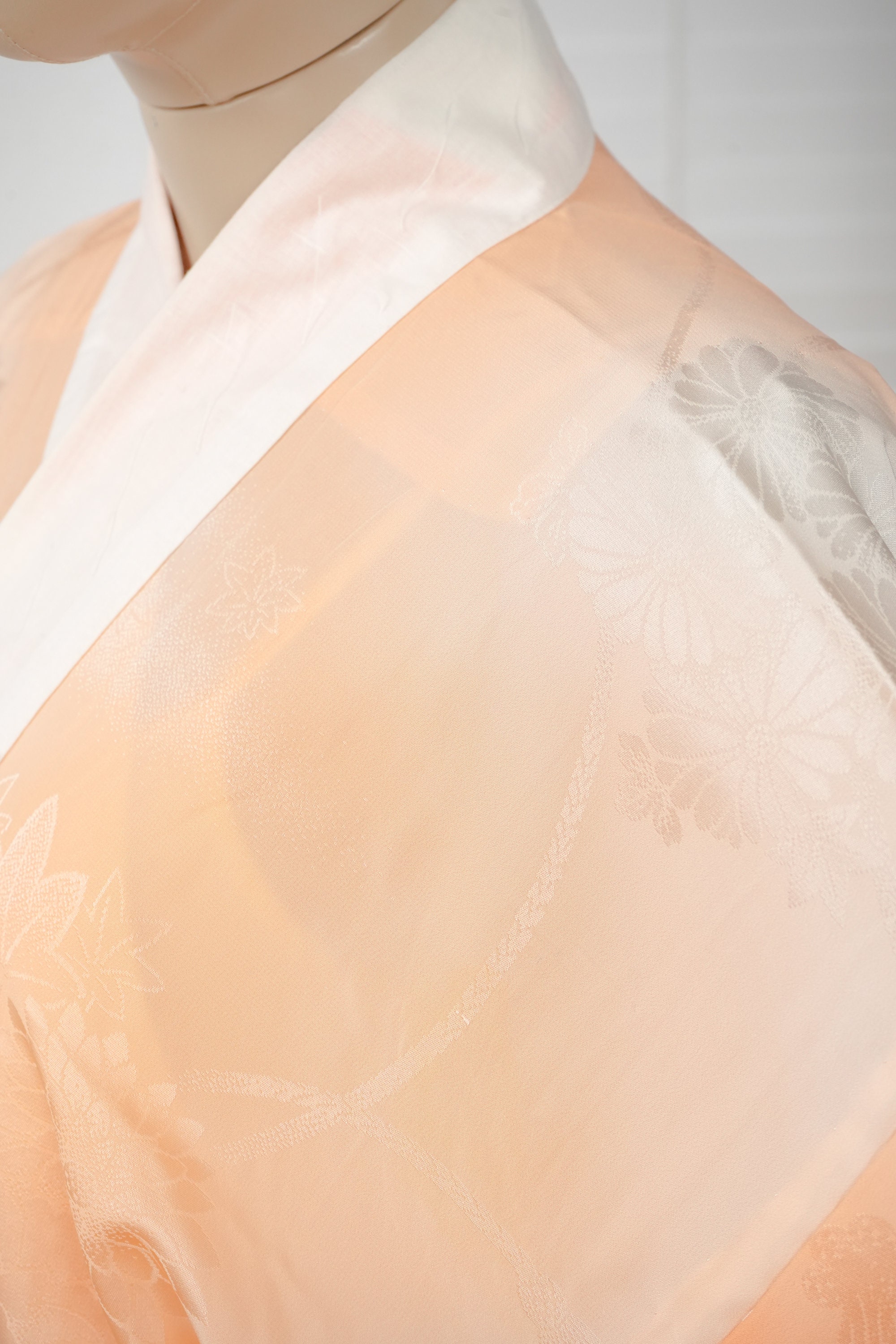 Beautiful Vintage Hitoe Juban for Women Kimono in Pink color, Silk material, Unlined, Woven Chrysanthemum & Peony.