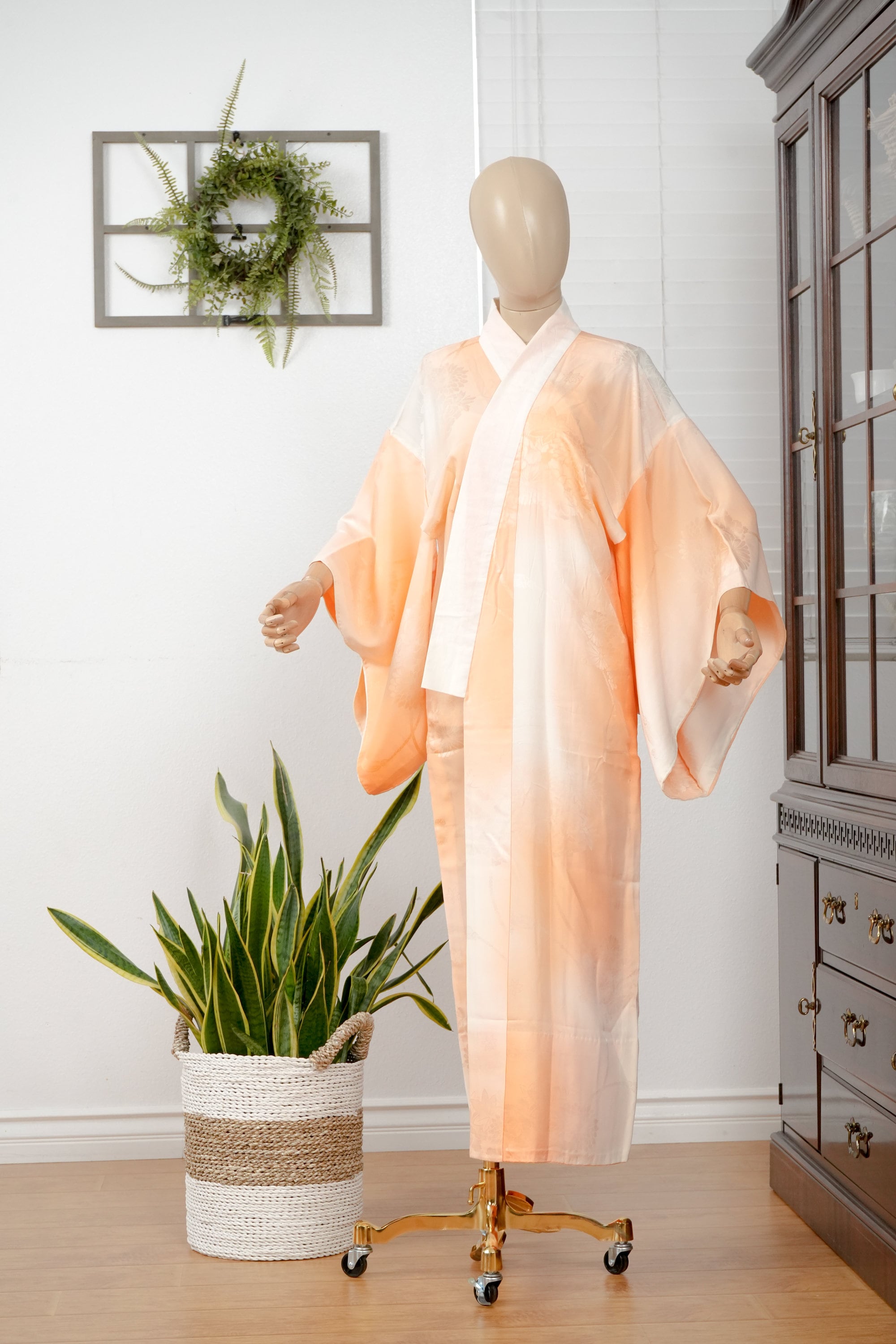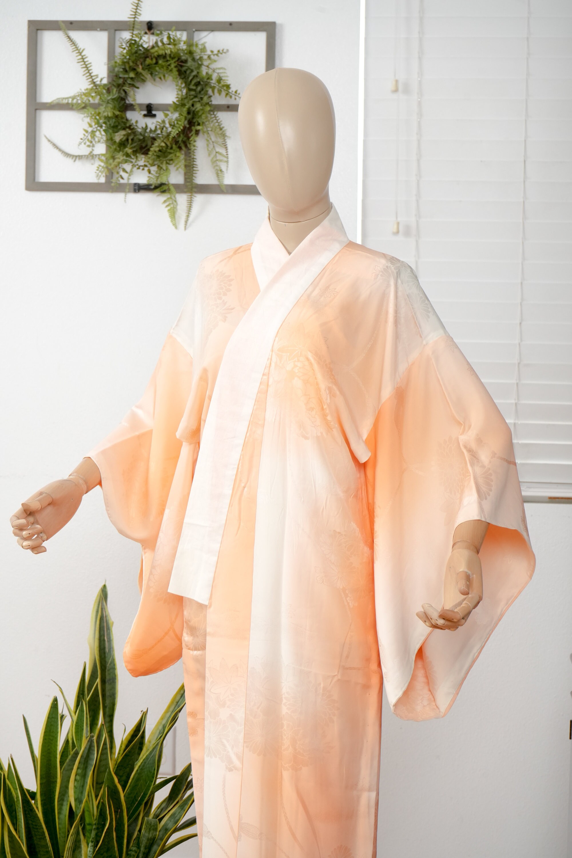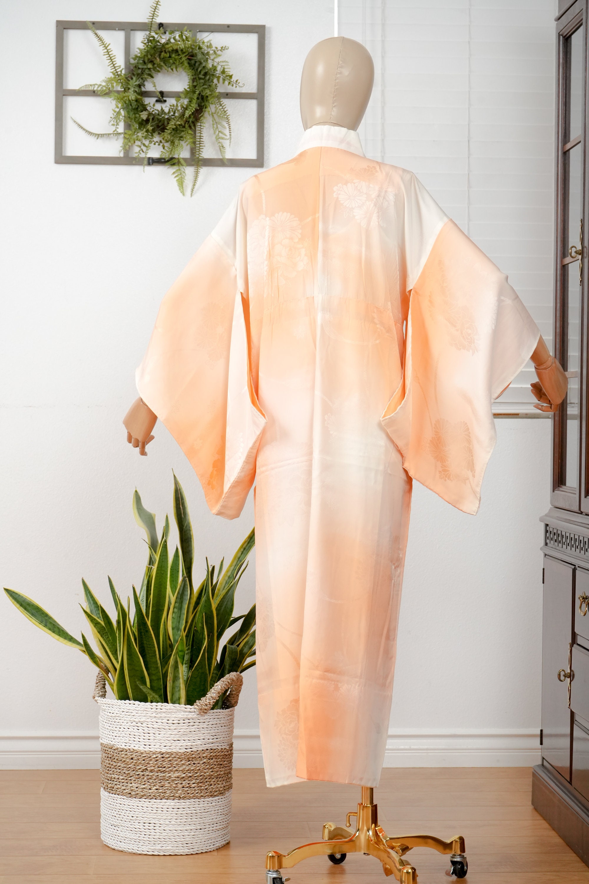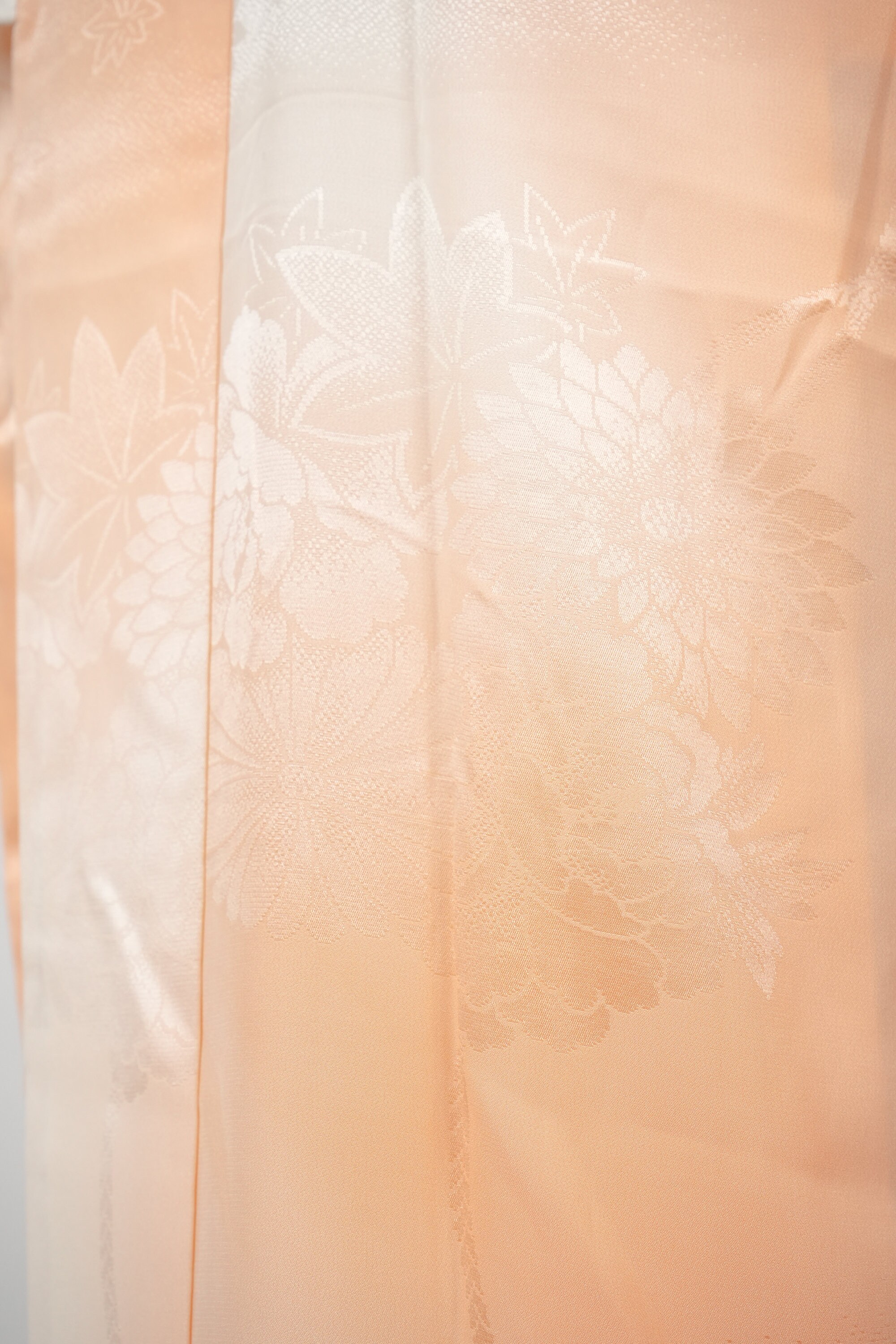 Beautiful Vintage Hitoe Juban for Women Kimono in Pink color, Silk material, Unlined, Woven Chrysanthemum & Peony.
