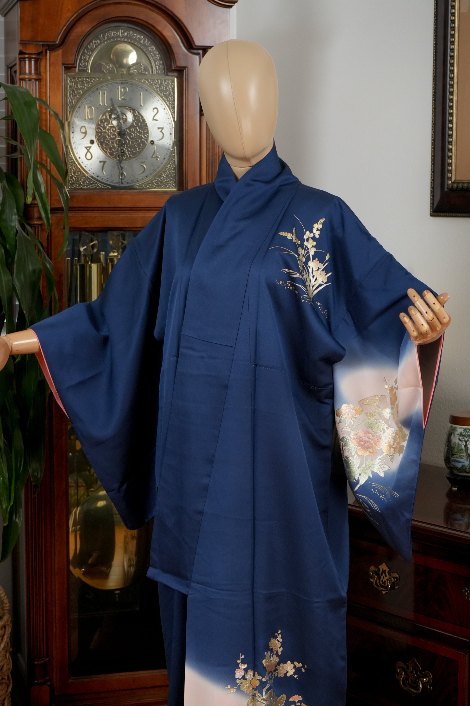 Please keep in mind that female Kimonos are supposed to fit long. You will need to adjust the length to your size by tying with Obi belt.