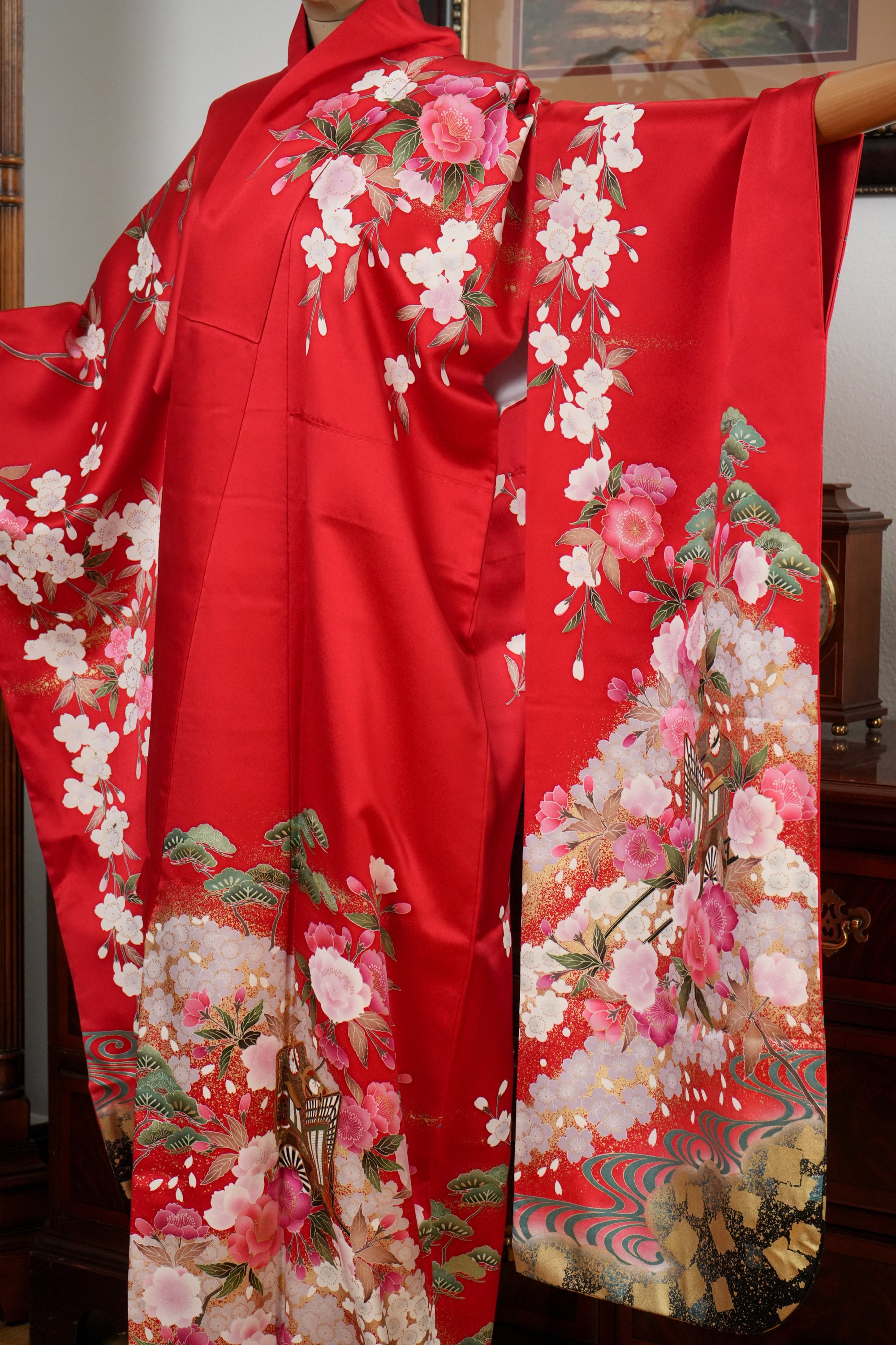Furisode is a formal kimono distinguishable by its long sleeves. Furisode is the most formal style of kimono worn by young unmarried women in Japan, generally used for formal social functions such as the tea ceremony, wedding ceremonies and graduation ceremonies. Furisode's elegant aesthetics along with such fine details often make a great wall decoration for home as well.