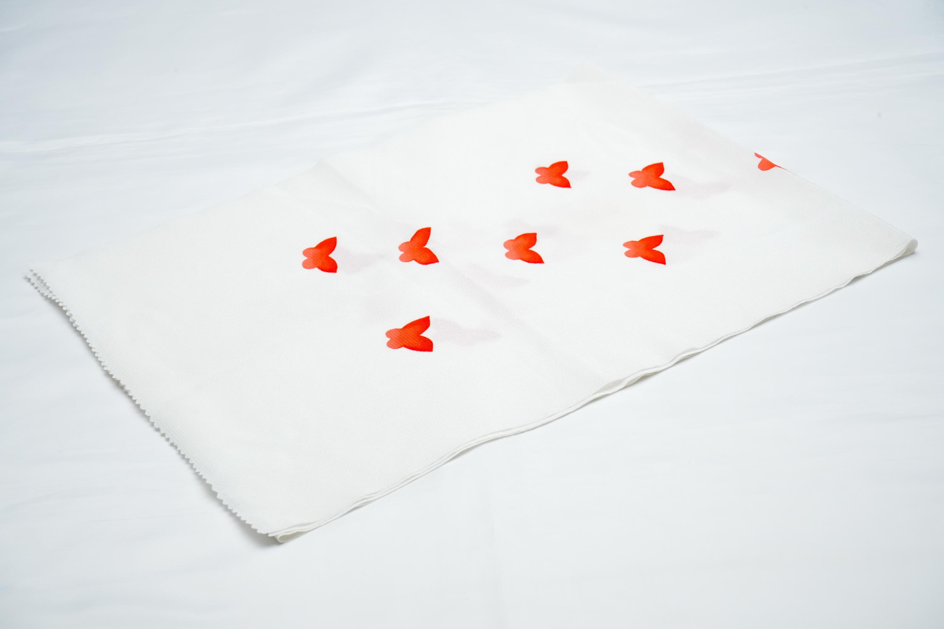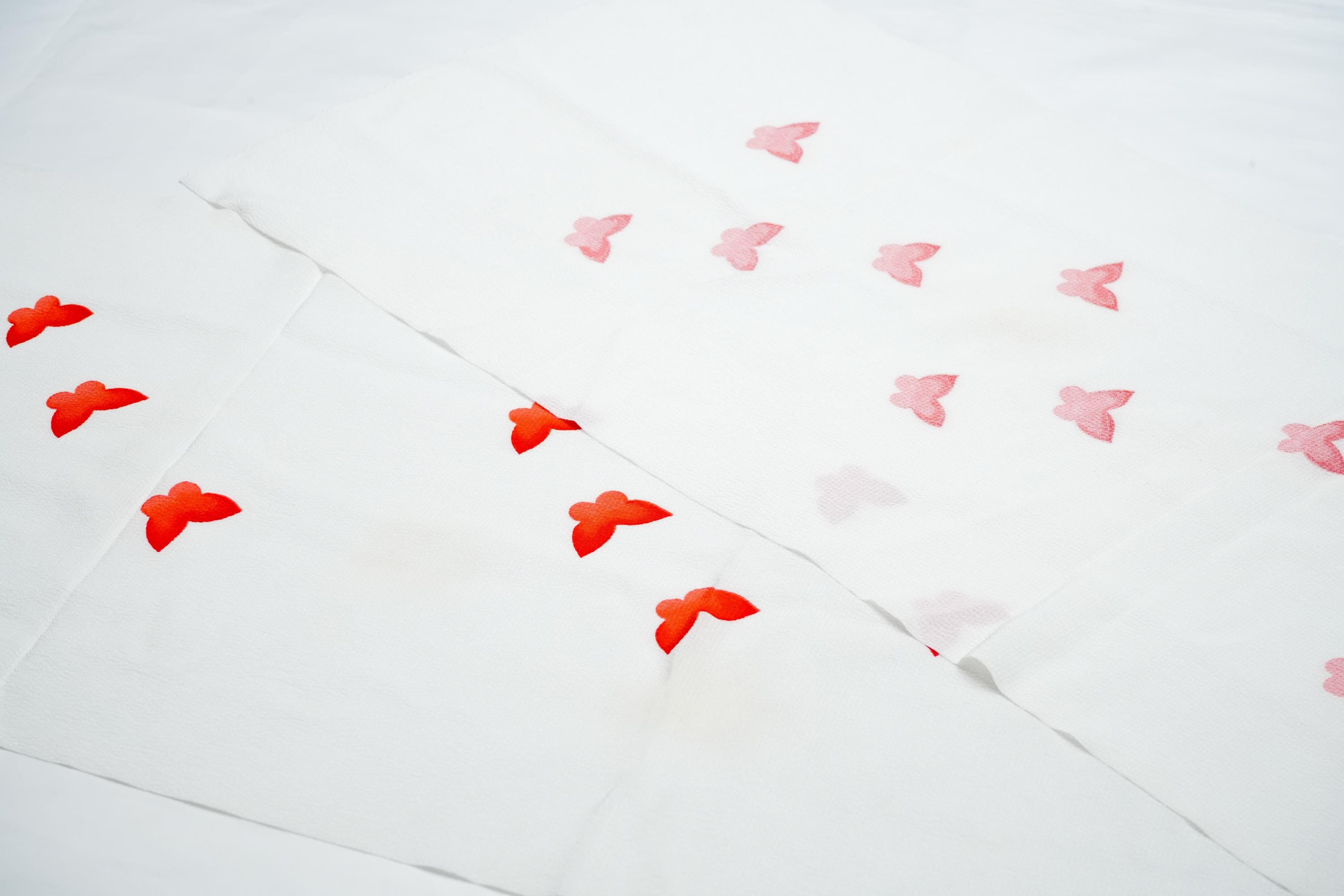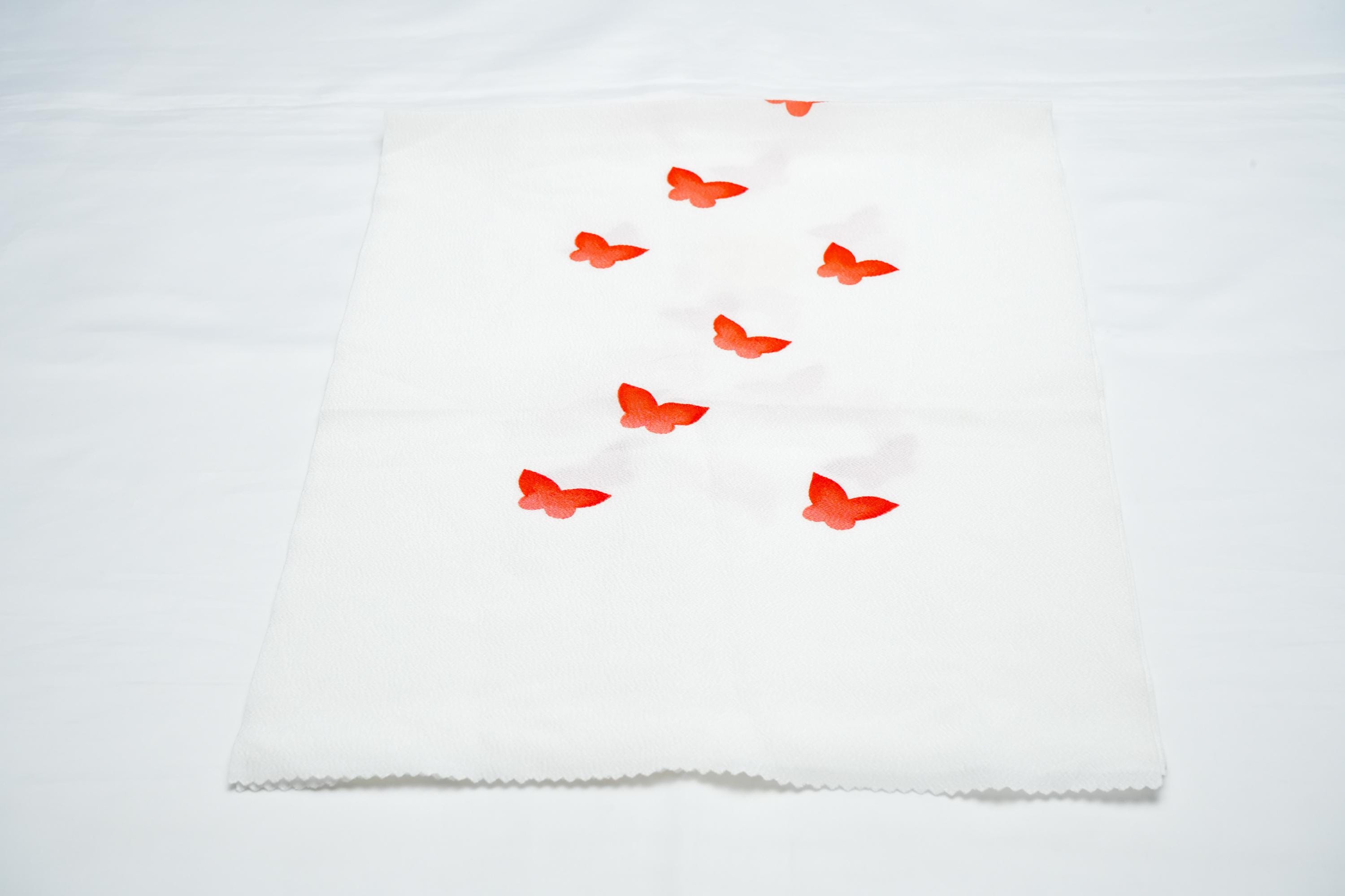 Obiage is a decorative and functional elastic fabric that is being worn above the Obi. It serves the purpose of covering/keeping ObiMakura in place and helping to secure the upper part of Obi knot. Obiage are broadly divided into two different looks/characteristics, a thin scarf-like flat fabric type which are then subdivided into Rinzu, Chirimen, Kinsha and Mofuku, and a thicker scrunchy-like more elastic fabric type which is Shibori.