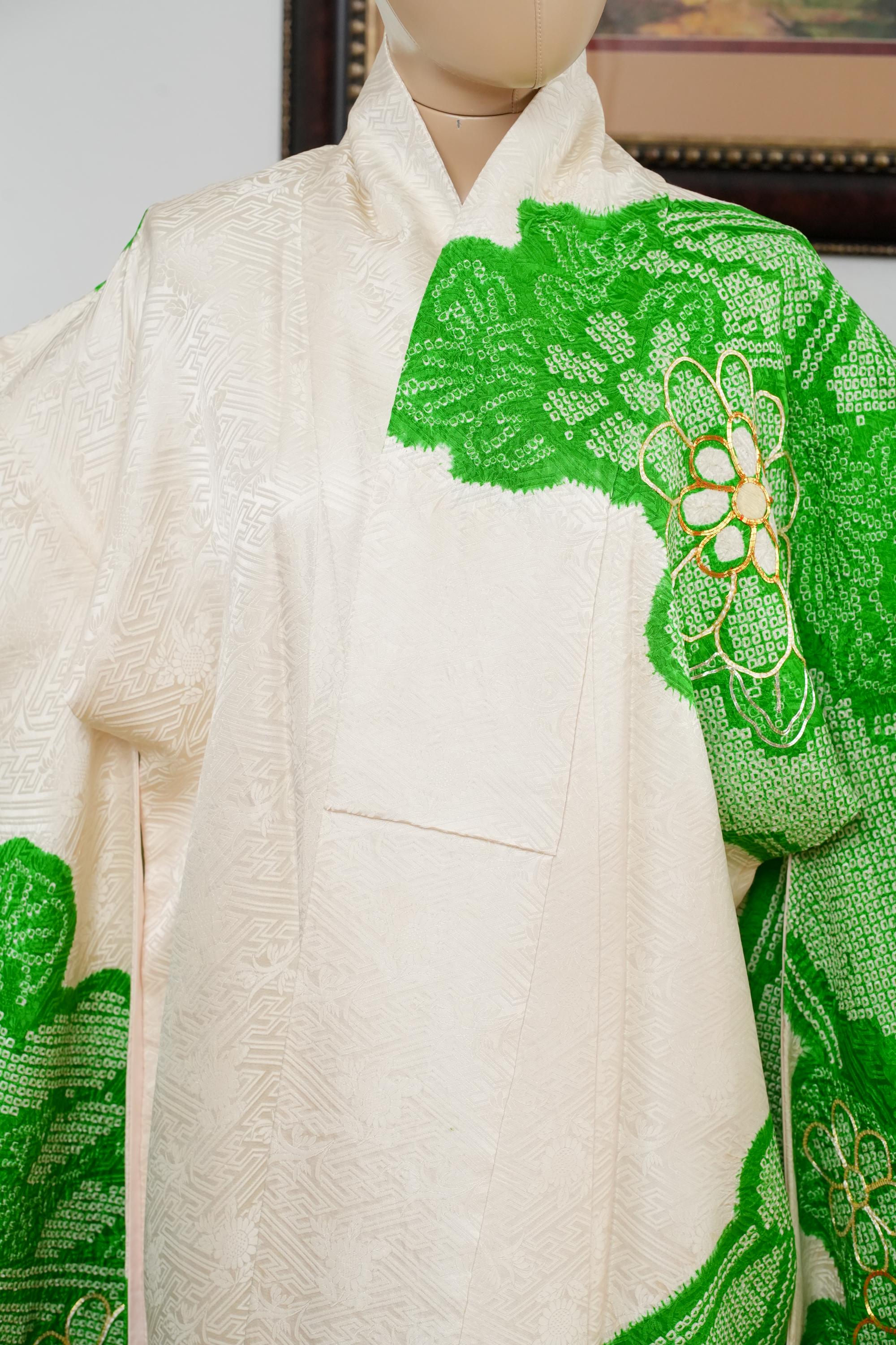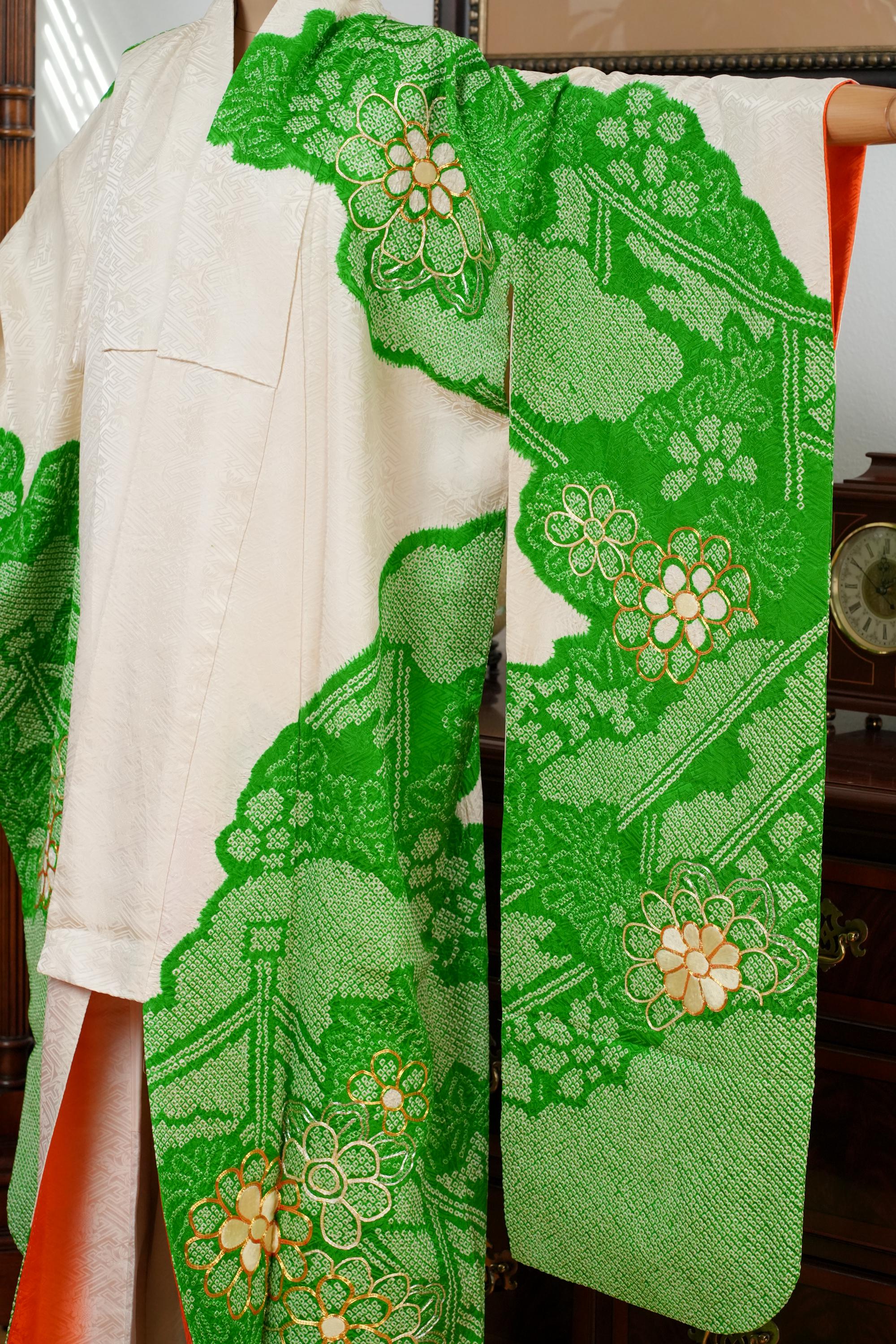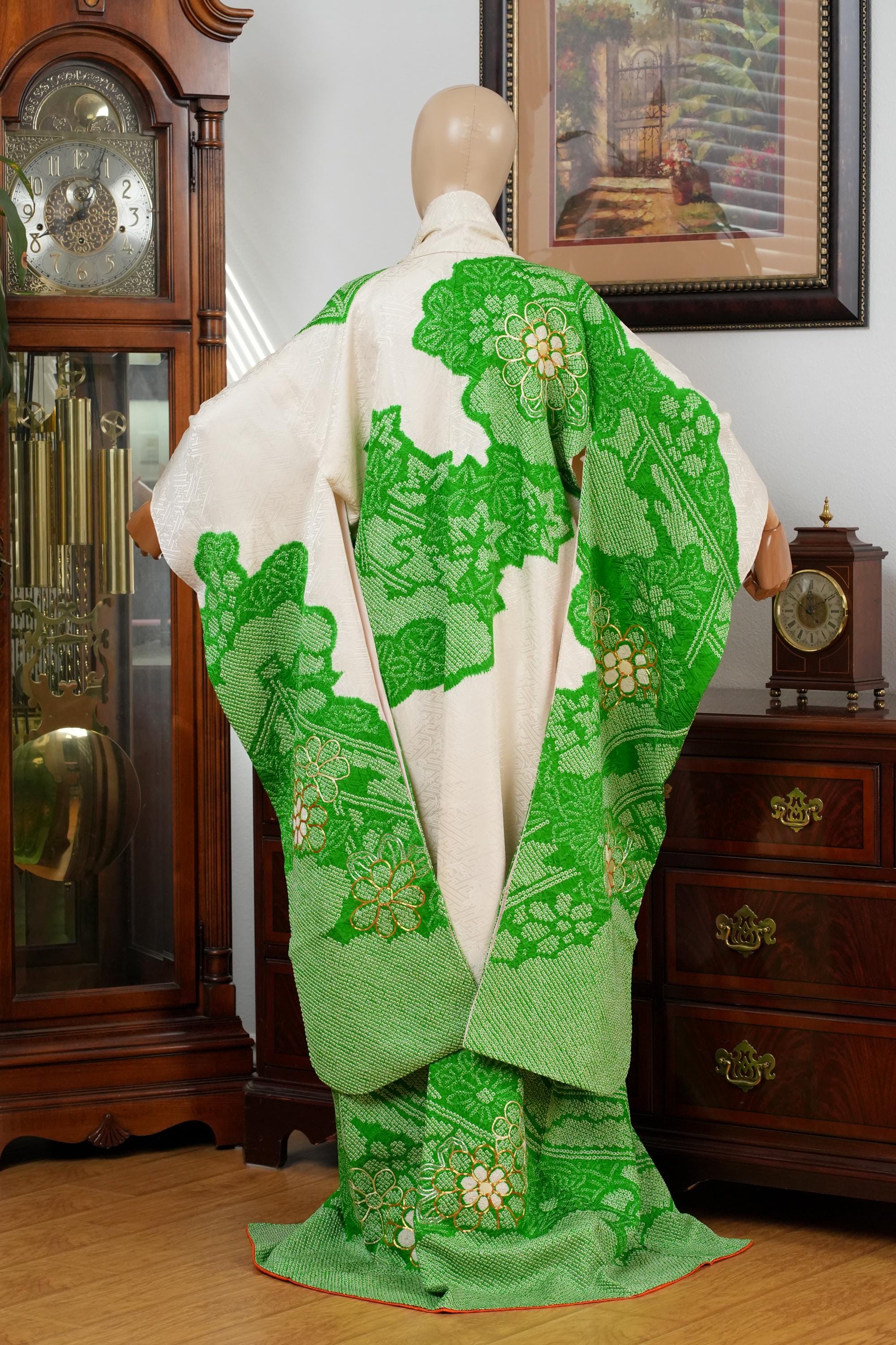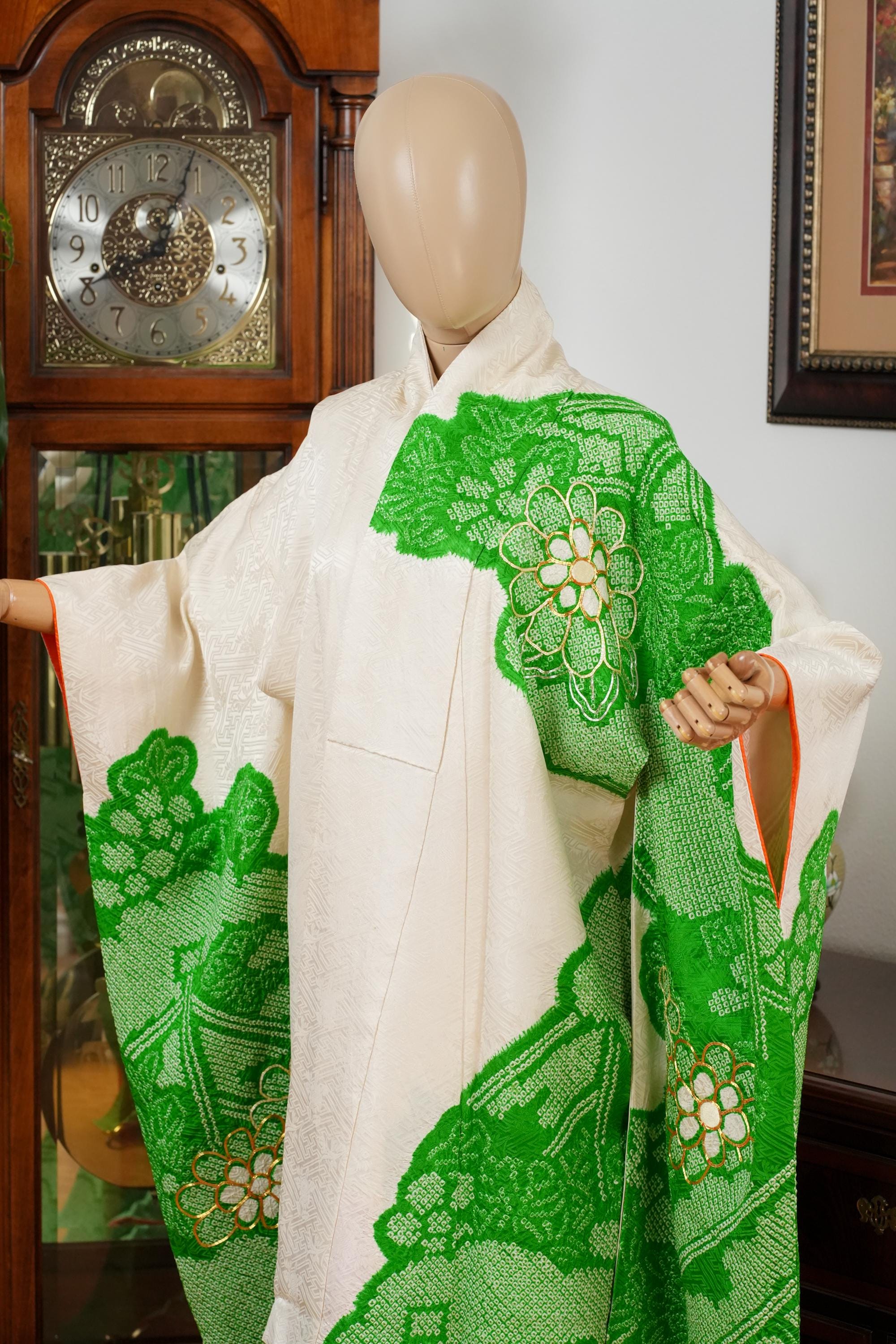 Furisode is a formal kimono distinguishable by its long sleeves. Furisode is the most formal style of kimono worn by young unmarried women in Japan, generally used for formal social functions such as the tea ceremony, wedding ceremonies and graduation ceremonies. Furisode's elegant aesthetics along with such fine details often make a great wall decoration for home as well.