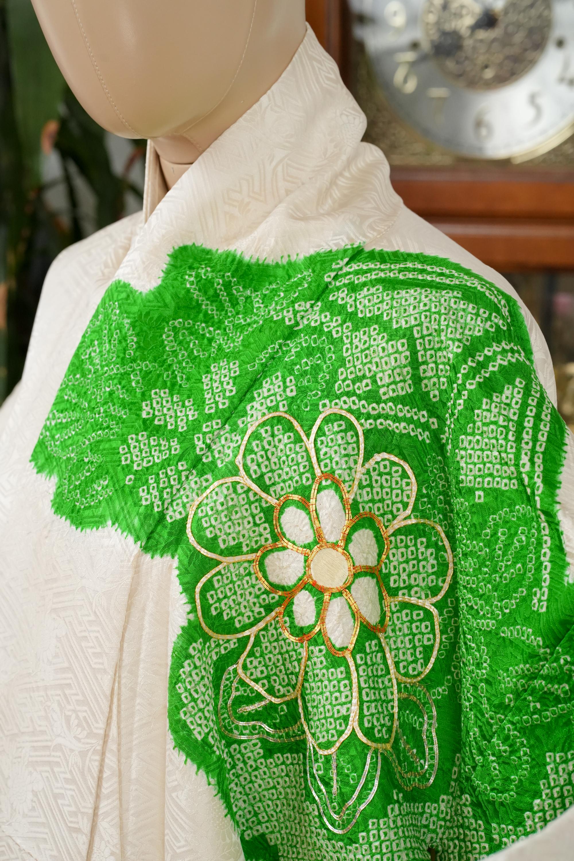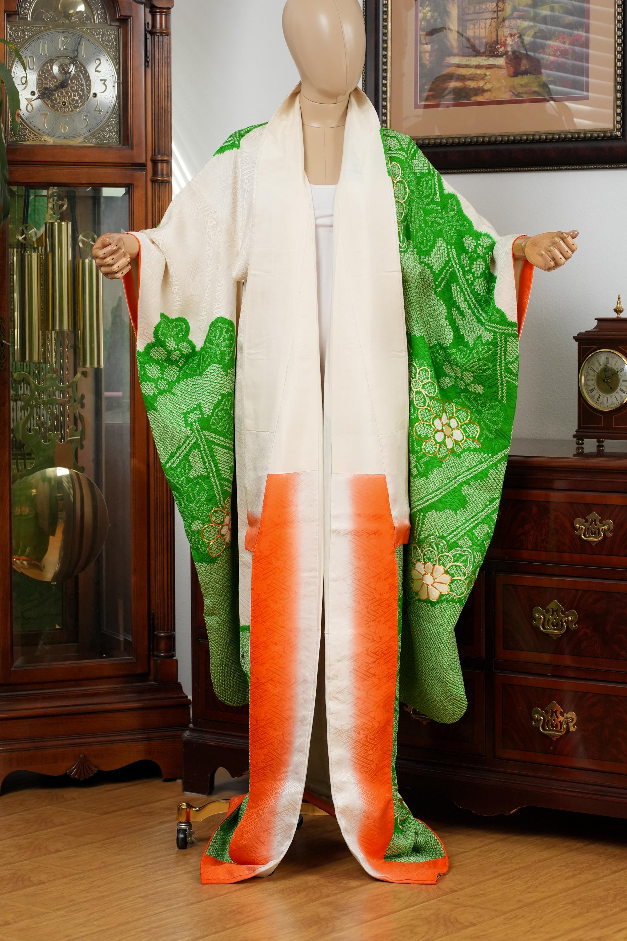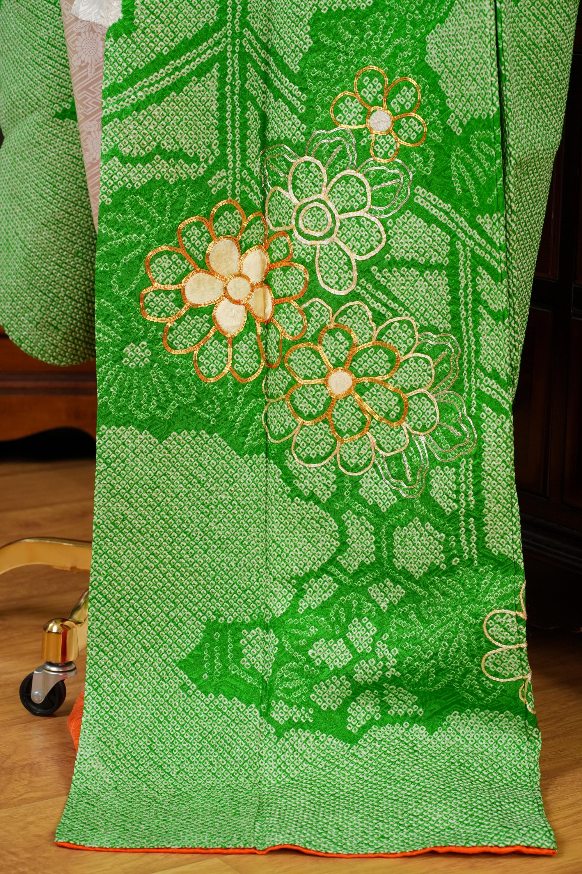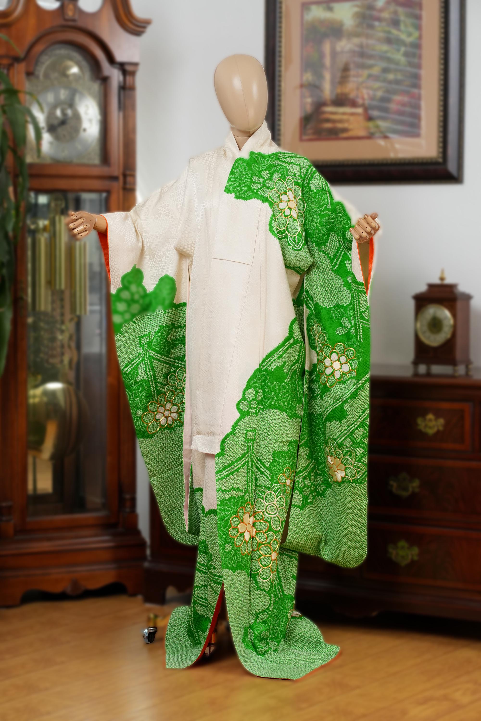 Furisode is a formal kimono distinguishable by its long sleeves. Furisode is the most formal style of kimono worn by young unmarried women in Japan, generally used for formal social functions such as the tea ceremony, wedding ceremonies and graduation ceremonies. Furisode's elegant aesthetics along with such fine details often make a great wall decoration for home as well.