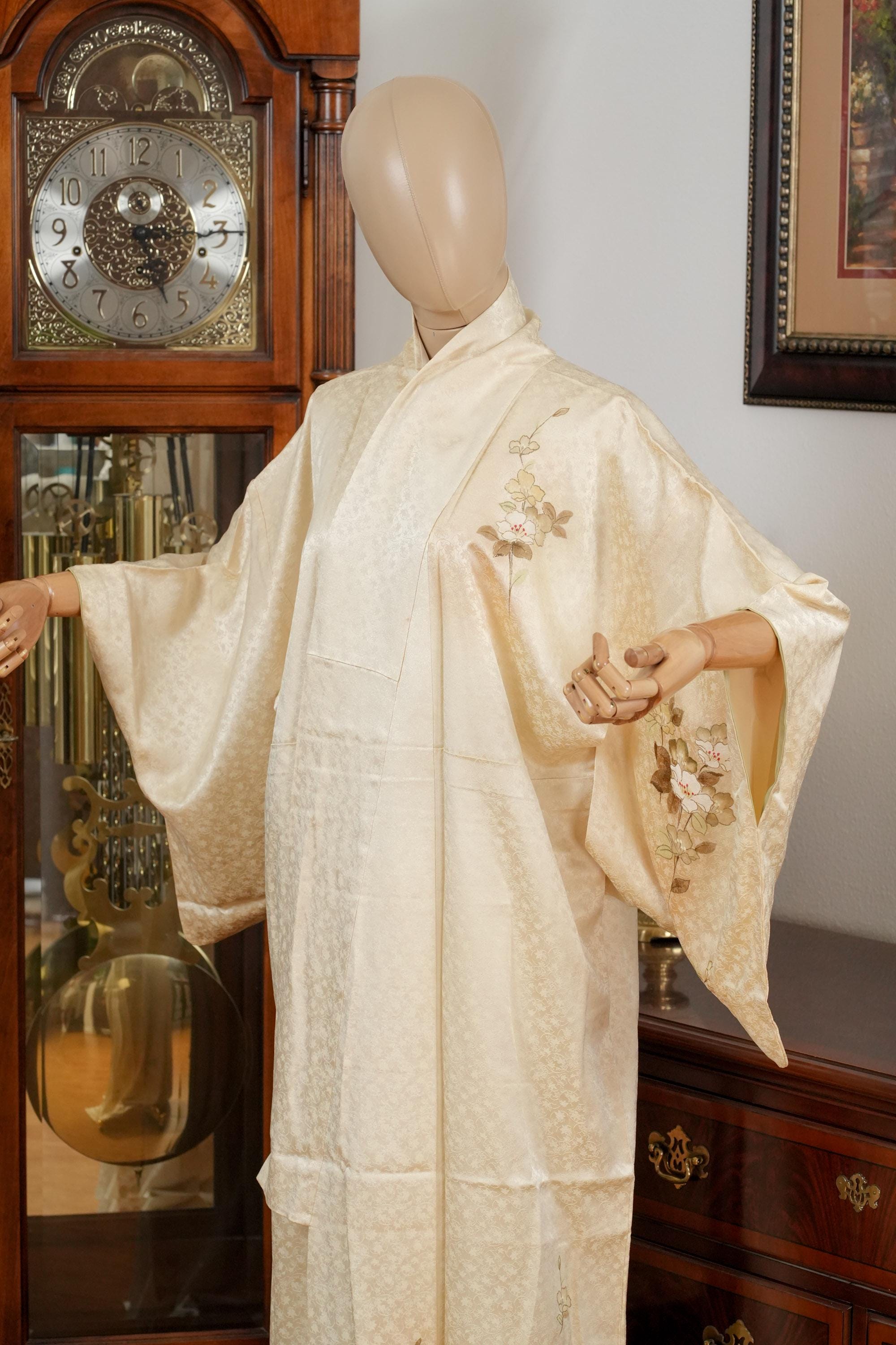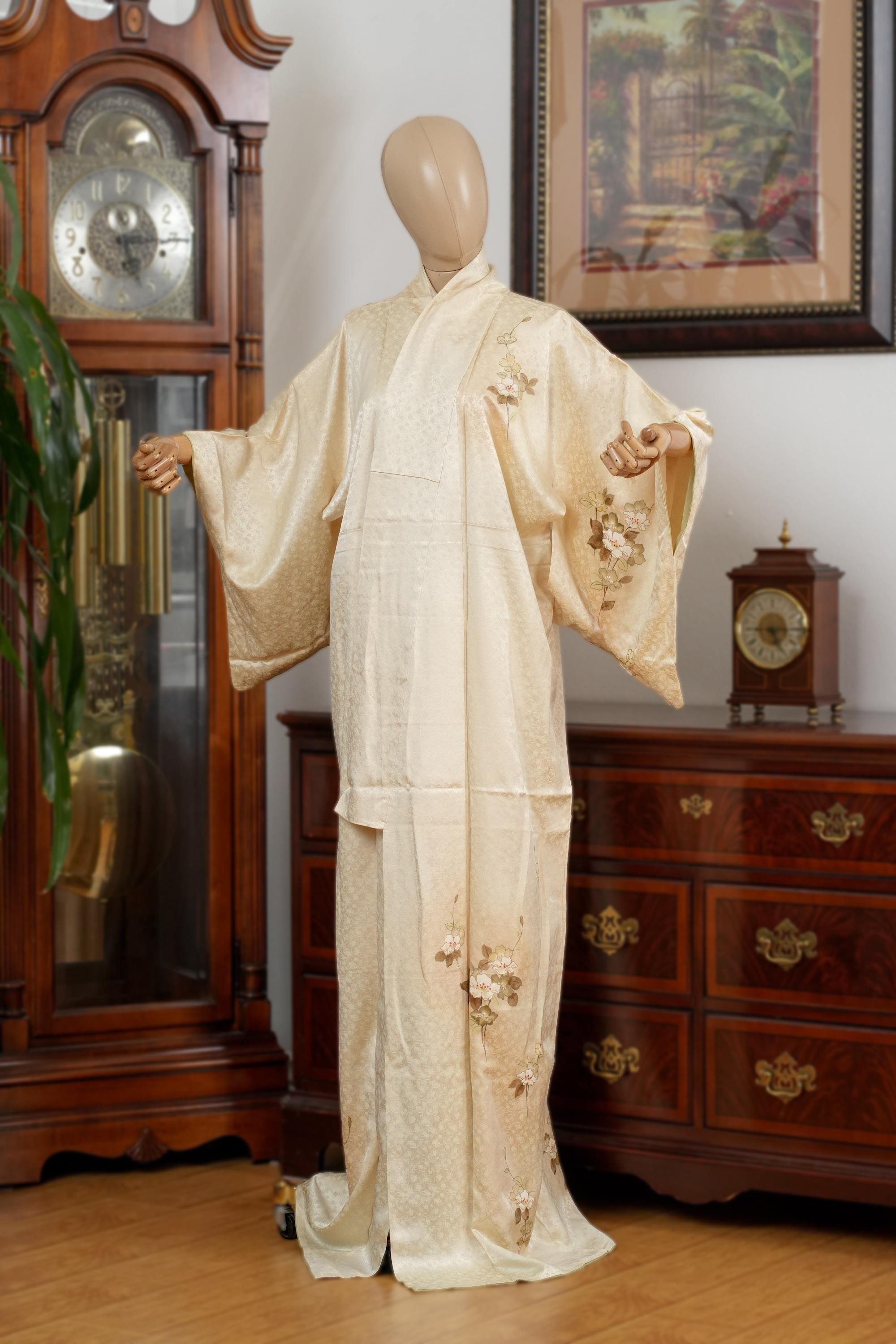 Please keep in mind that female Kimonos are supposed to fit long. You will need to adjust the length to your size by tying with Kitsuke accessories and Obi belt.