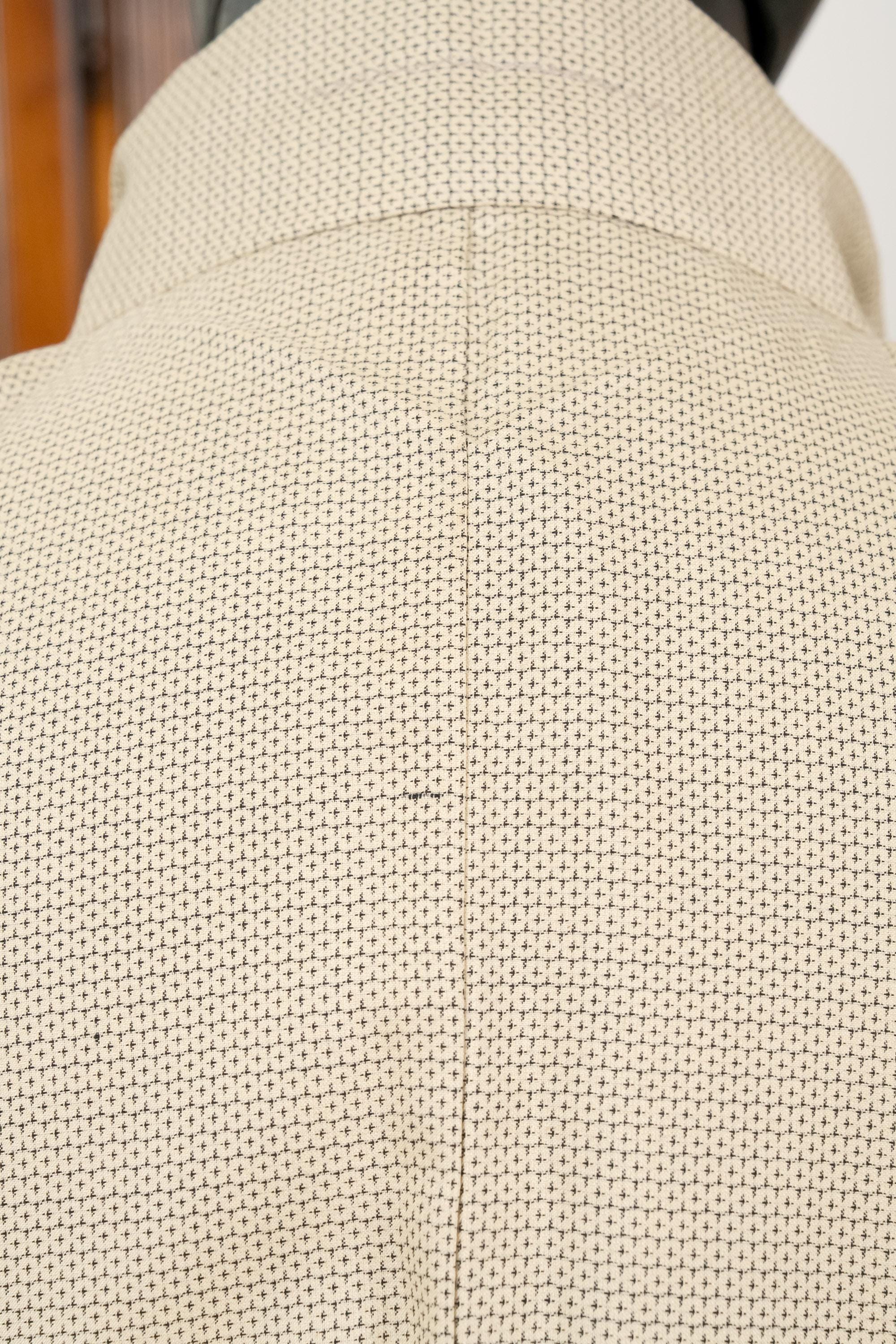 BLEMISHES: A few stain spots on rear left sleeve, right collar areas. There is a linear stain on left front area. Please see gallery images for details.