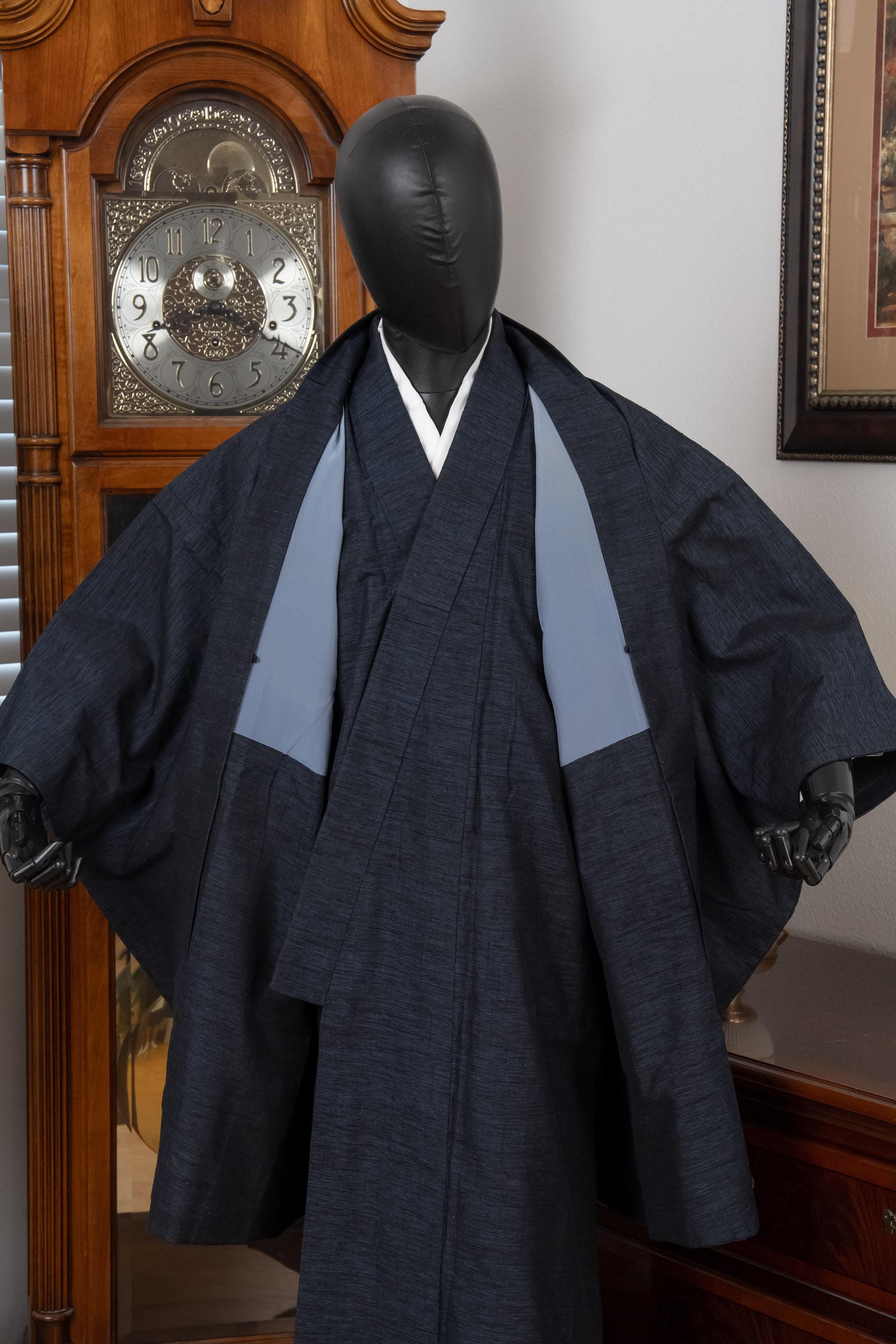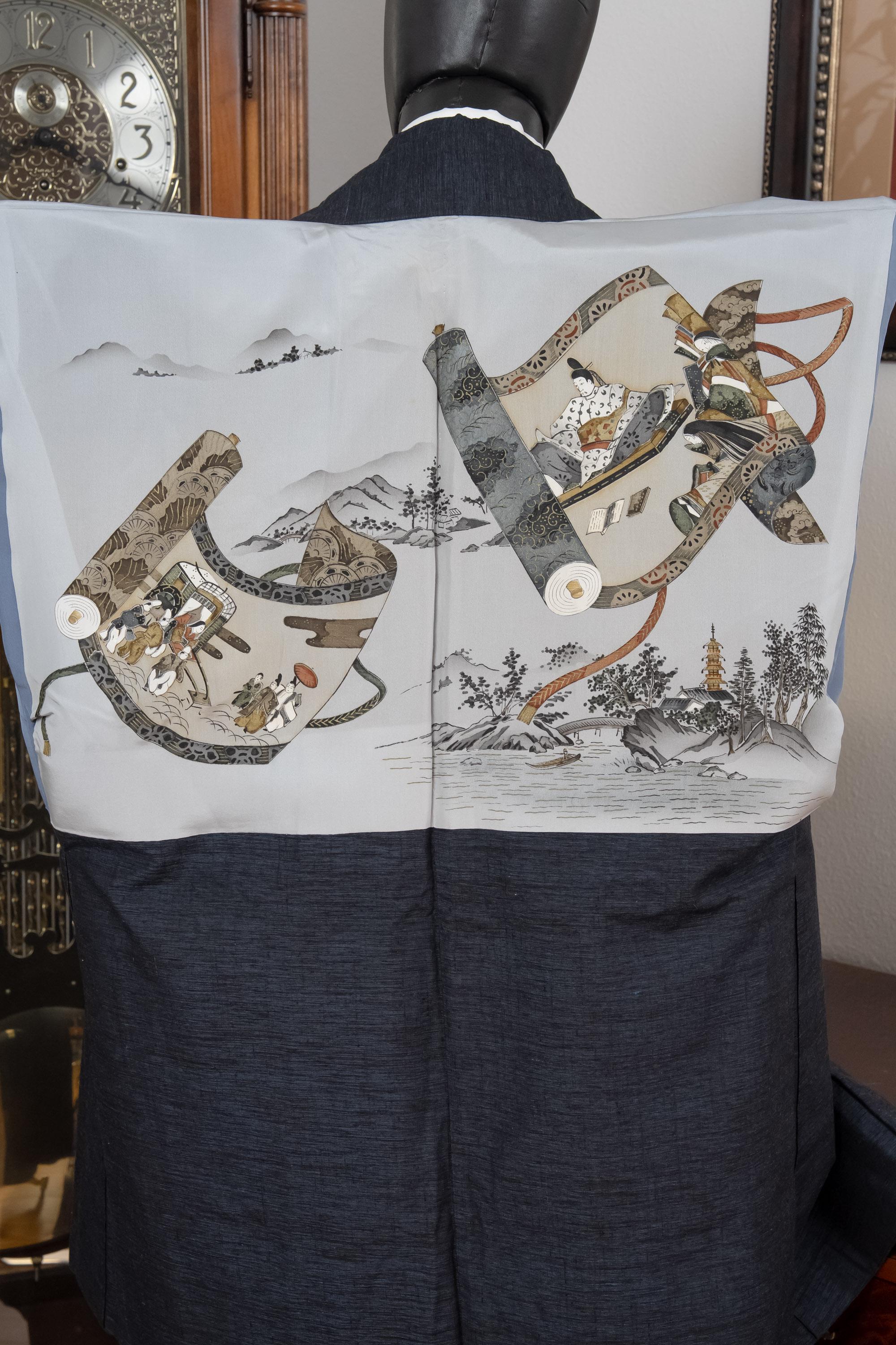 BLEMISHES: Kimono's right collar shows a large stain spot. Haori lining has print smears. Please see gallery images for details.