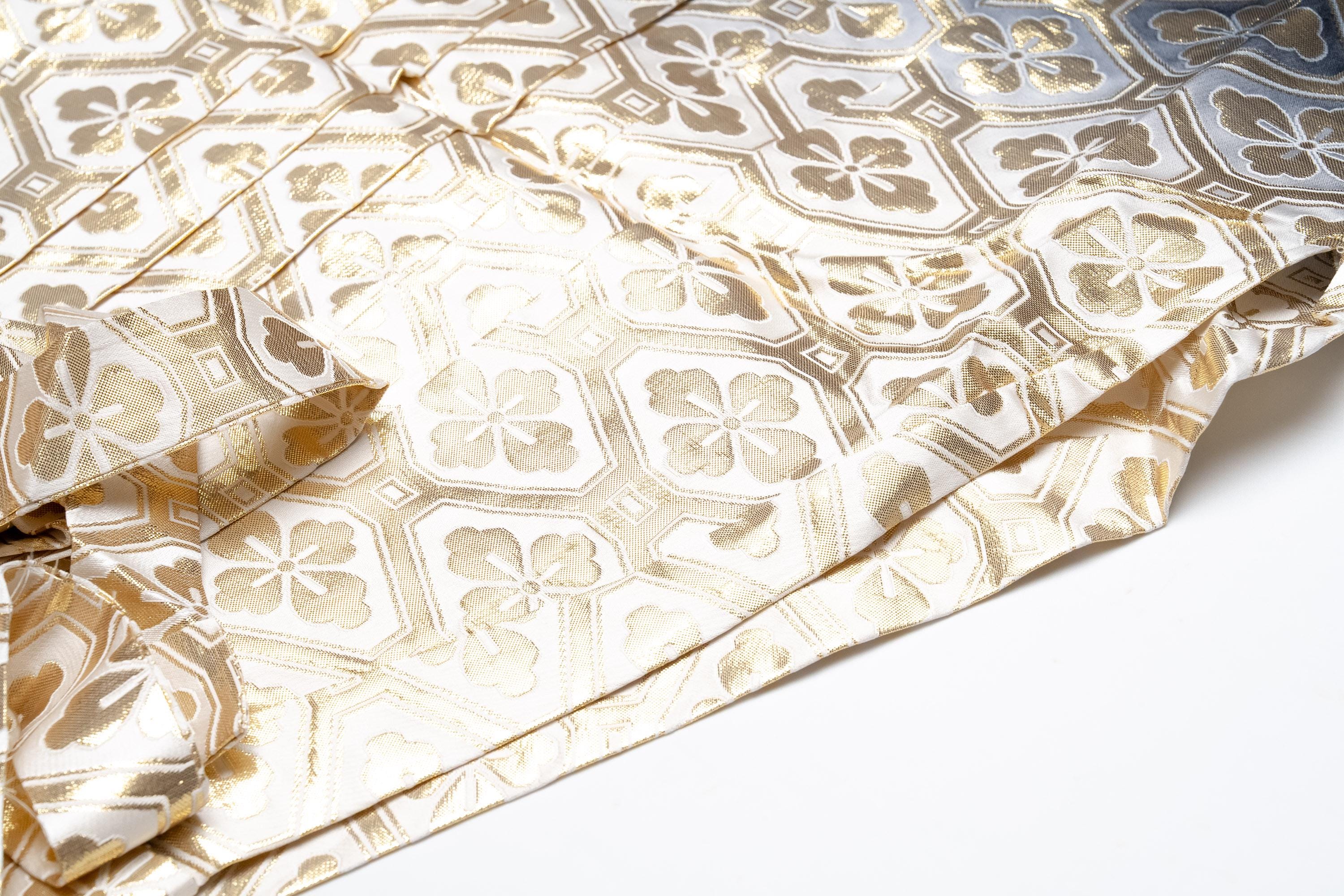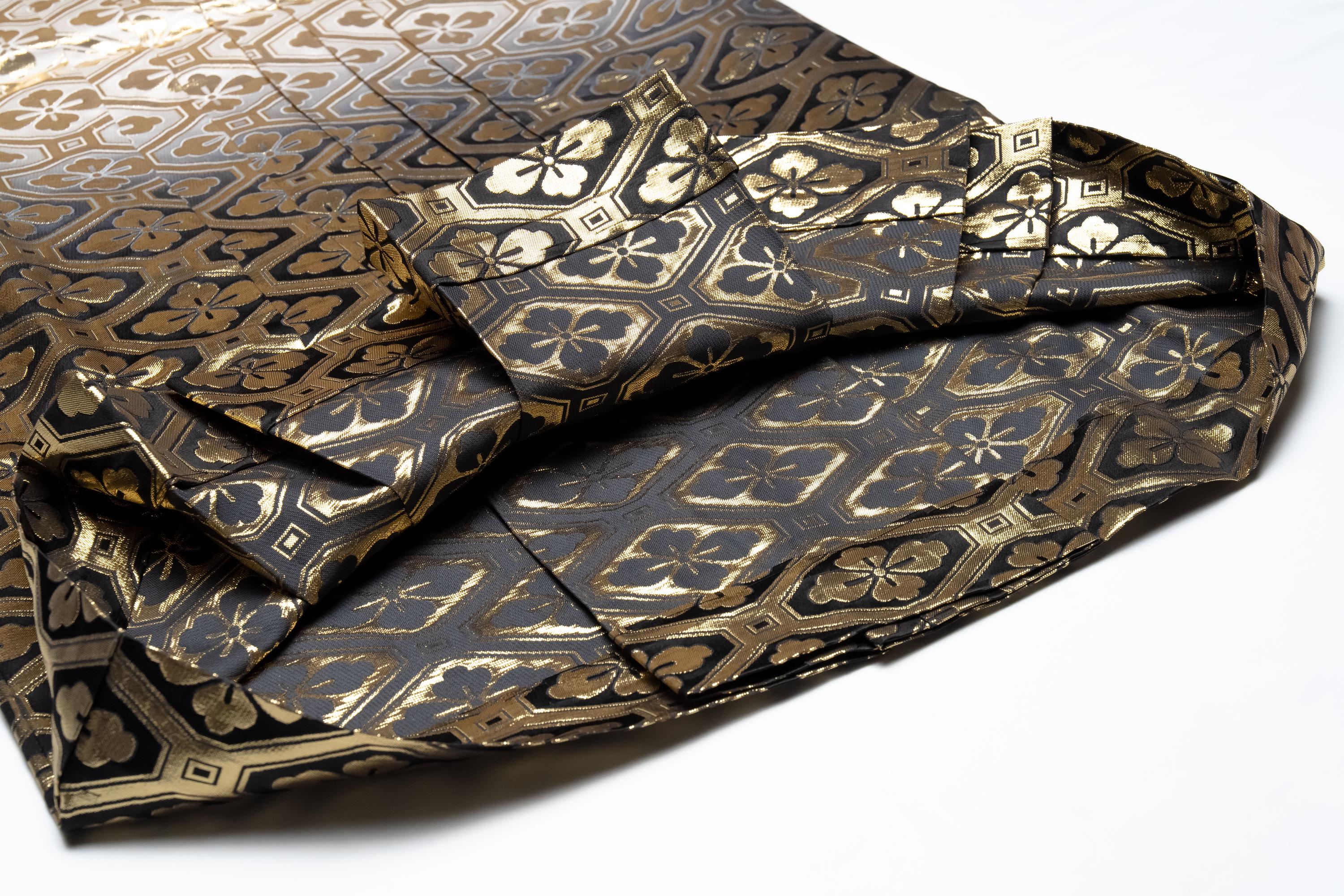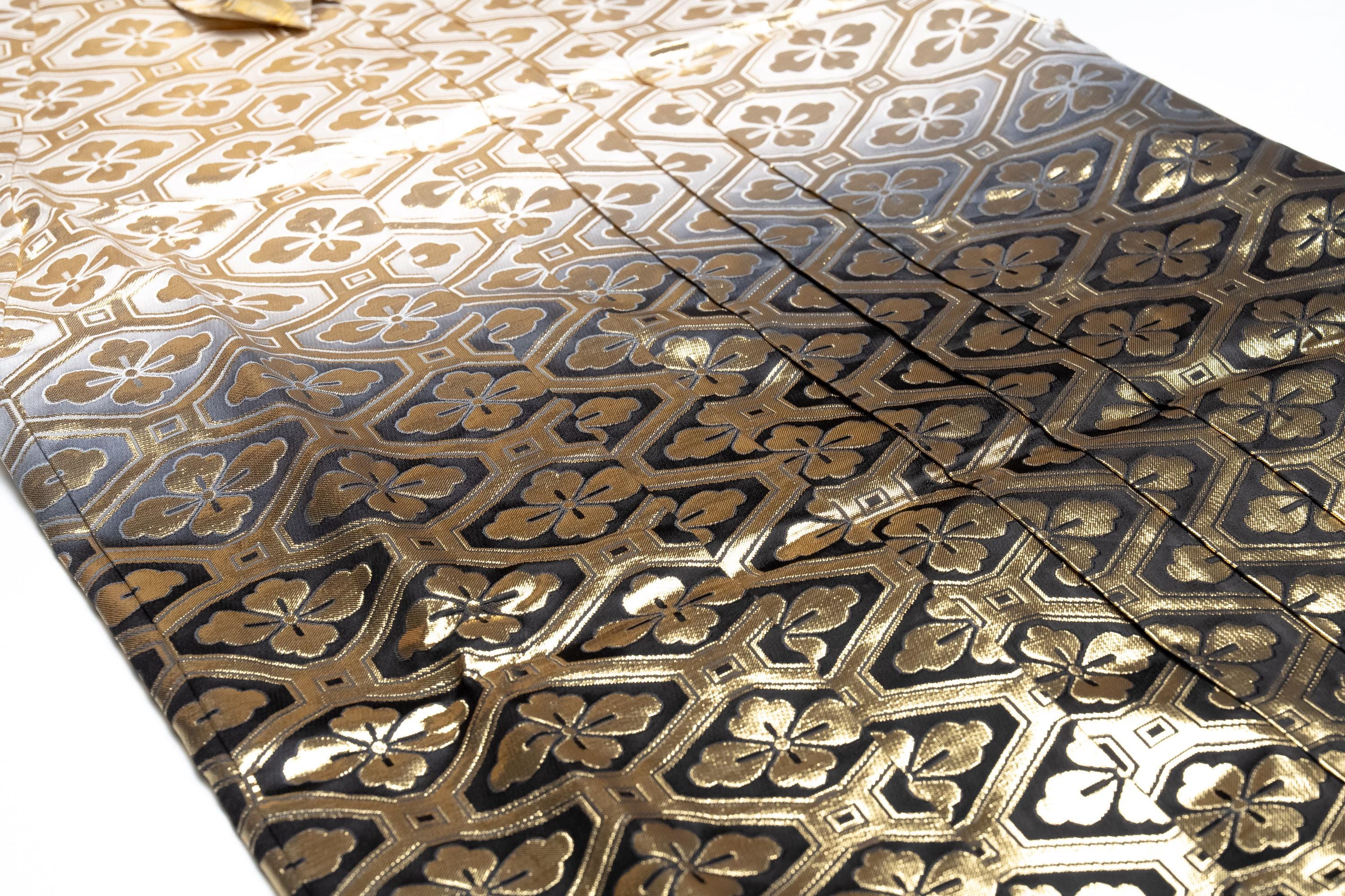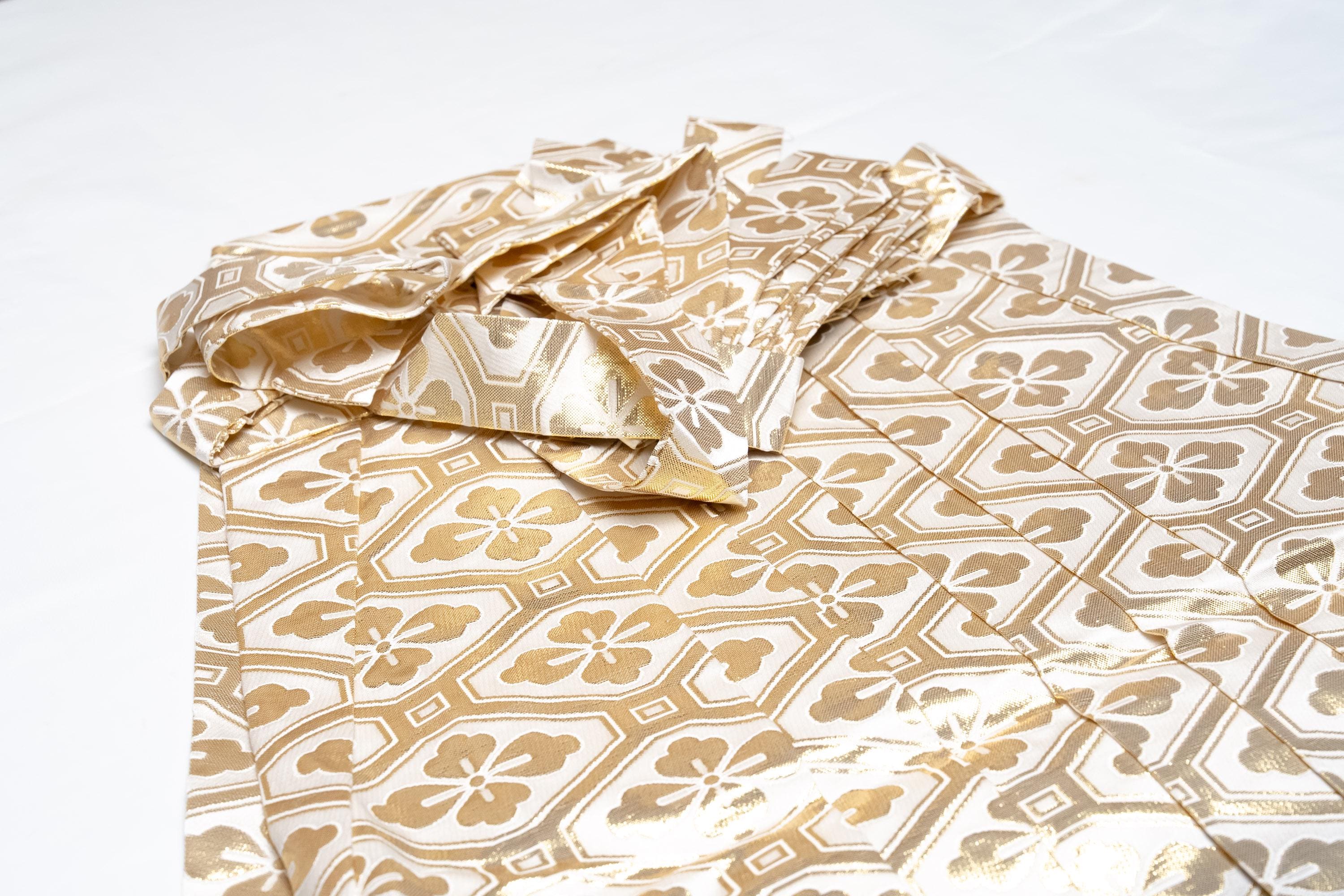 Hakama are wide-legged pants with formal elegance that are typically worn over a kimono or other traditional Japanese garments. Andon Hakama, known as “lantern hakama,” are the skirt type Hakama that features pleats that open outwards, resembling a lantern. Andon Hakama are normally worn for formal occasions, ceremonies, or martial arts demonstrations by men and women equally, while Umanori Hakama are commonly worn by women.