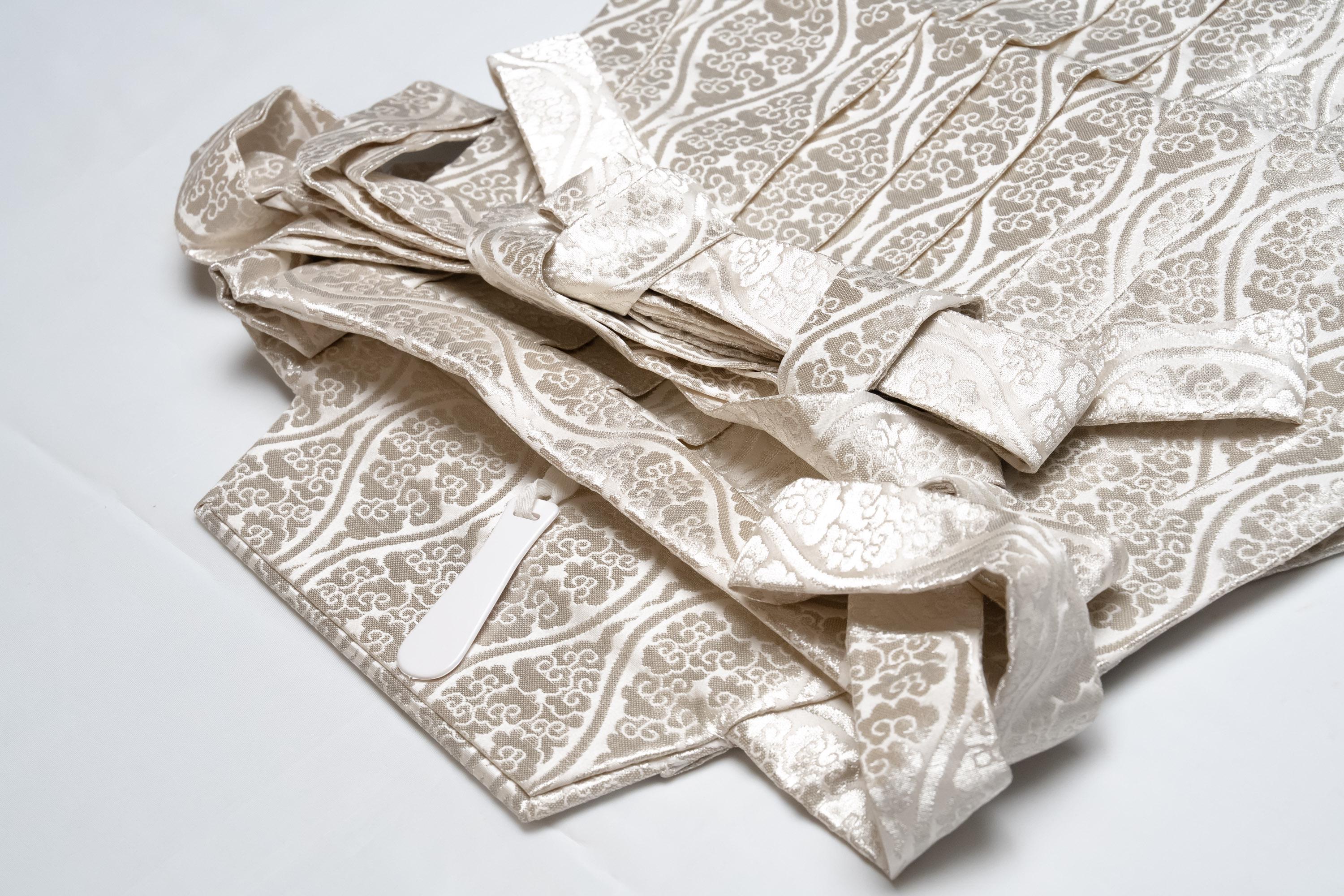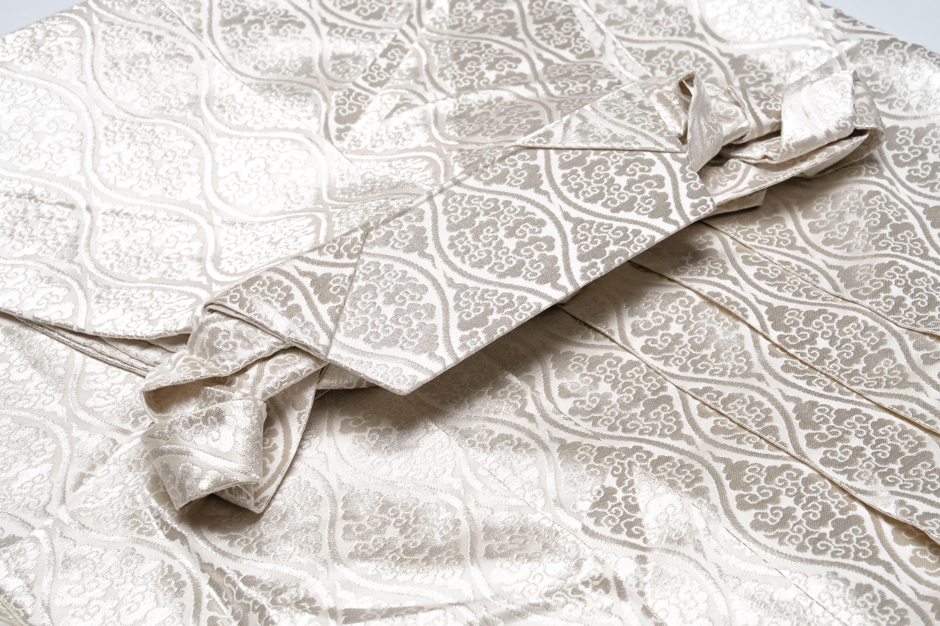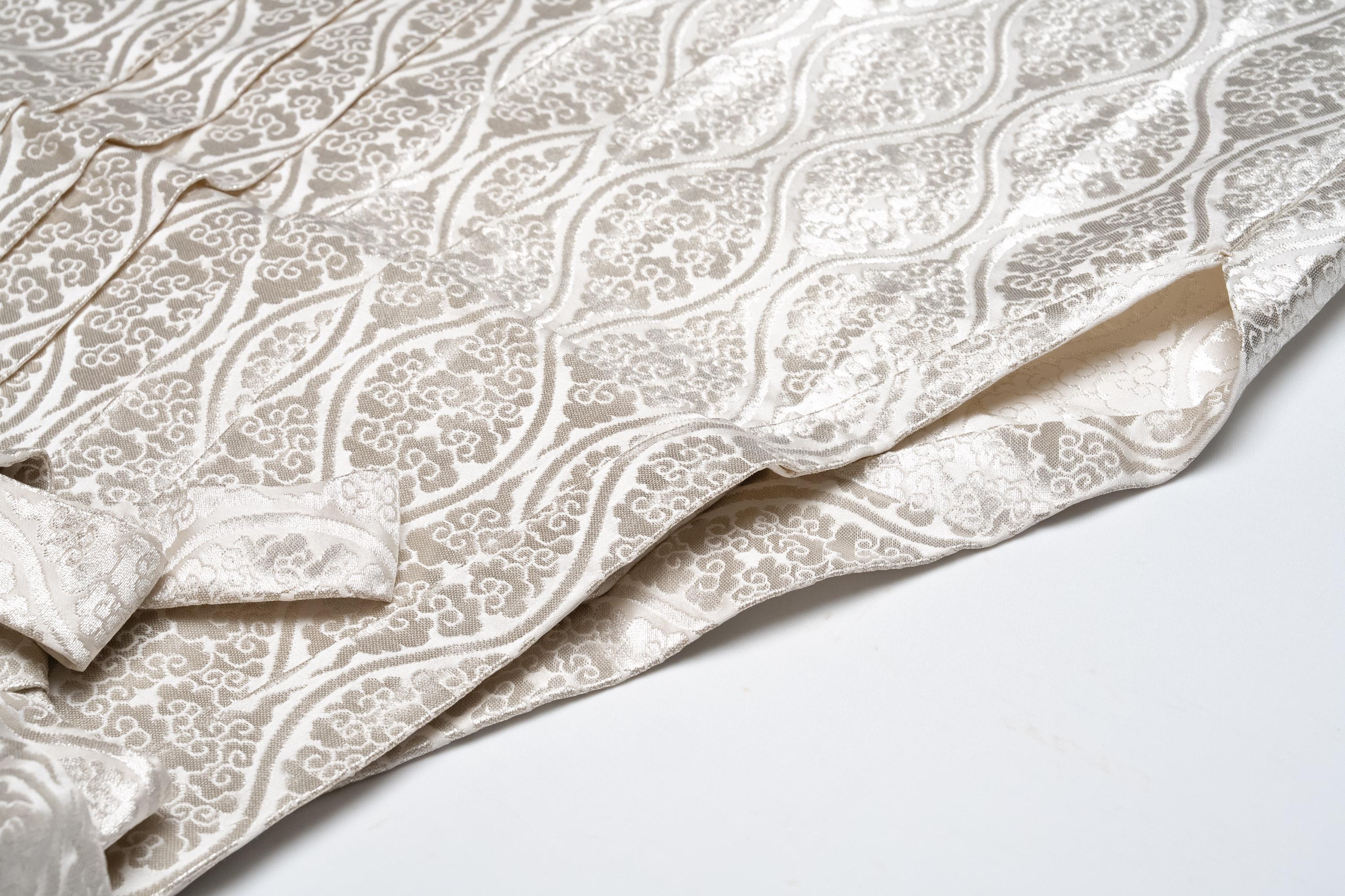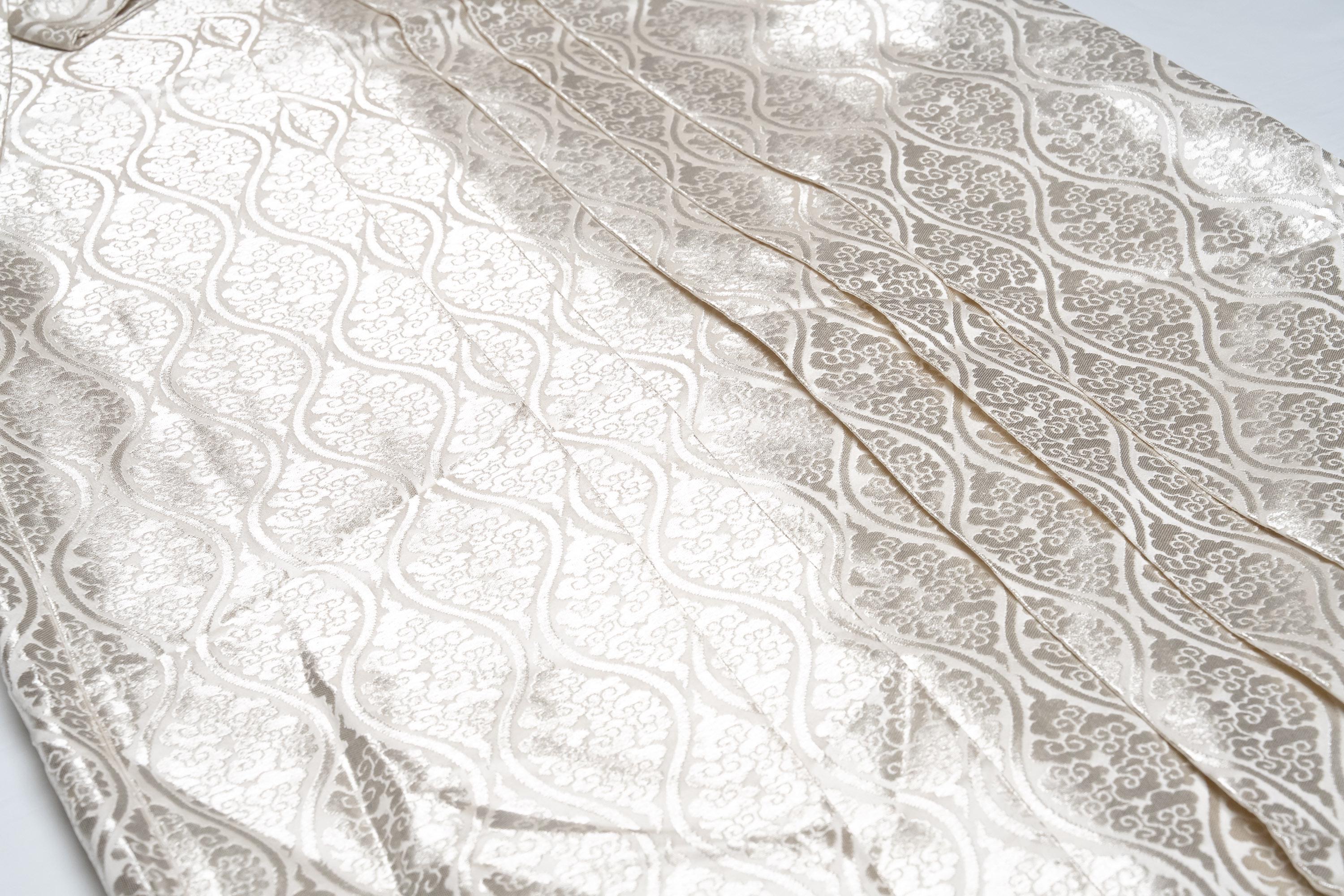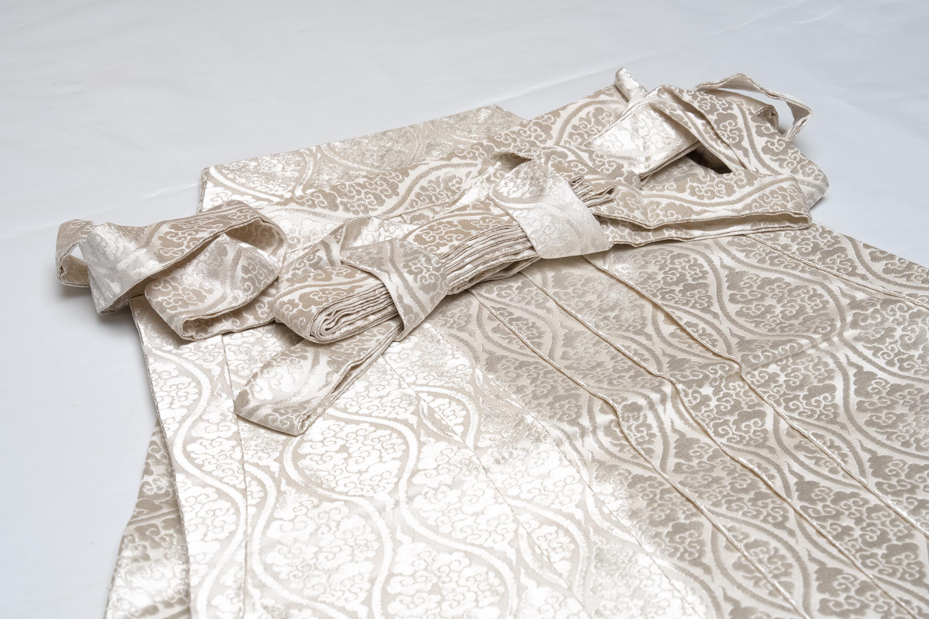 Hakama are wide-legged pants with formal elegance that are typically worn over a kimono or other traditional Japanese garments. Andon Hakama, known as “lantern hakama,” are the skirt type Hakama that features pleats that open outwards, resembling a lantern. Andon Hakama are normally worn for formal occasions, ceremonies, or martial arts demonstrations by men and women equally, while Umanori Hakama are commonly worn by women.