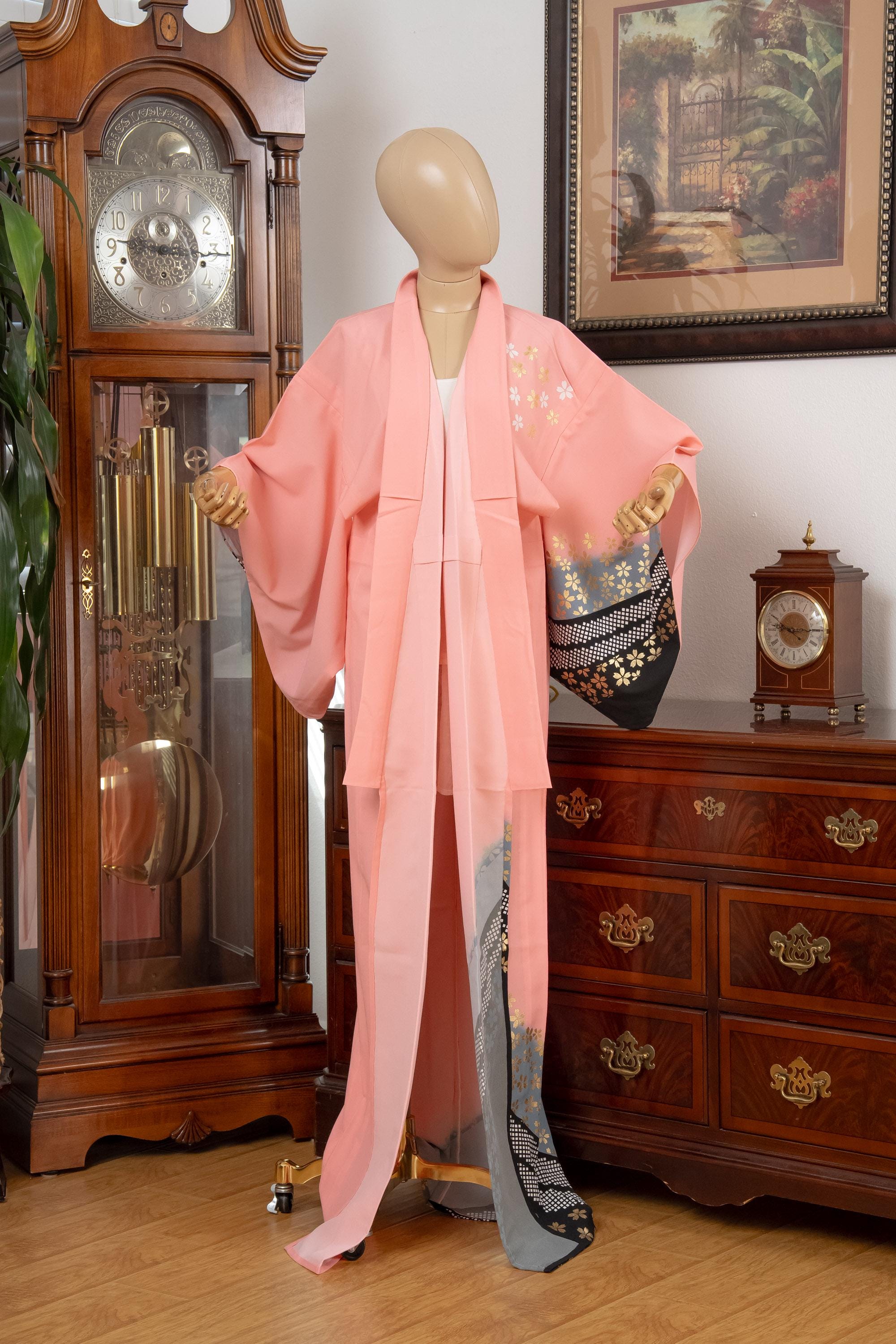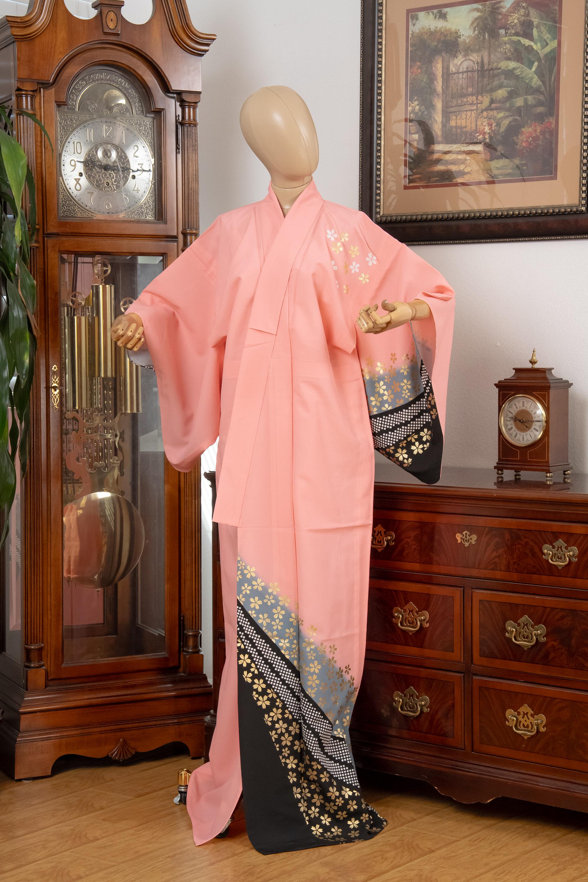Please keep in mind that female Kimonos are supposed to fit long. You will need to adjust the length to your size by tying with Kitsuke accessories and Obi belt.