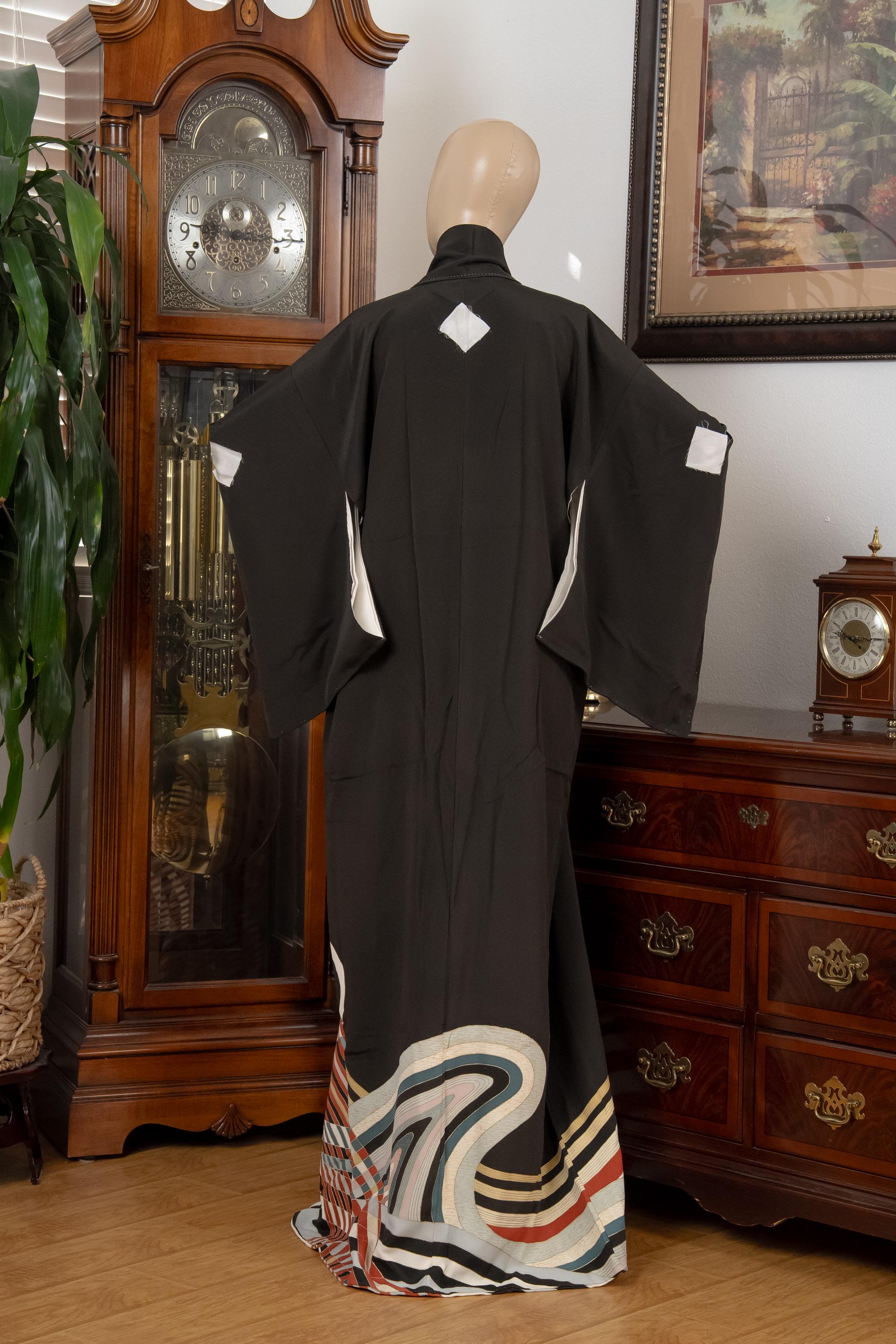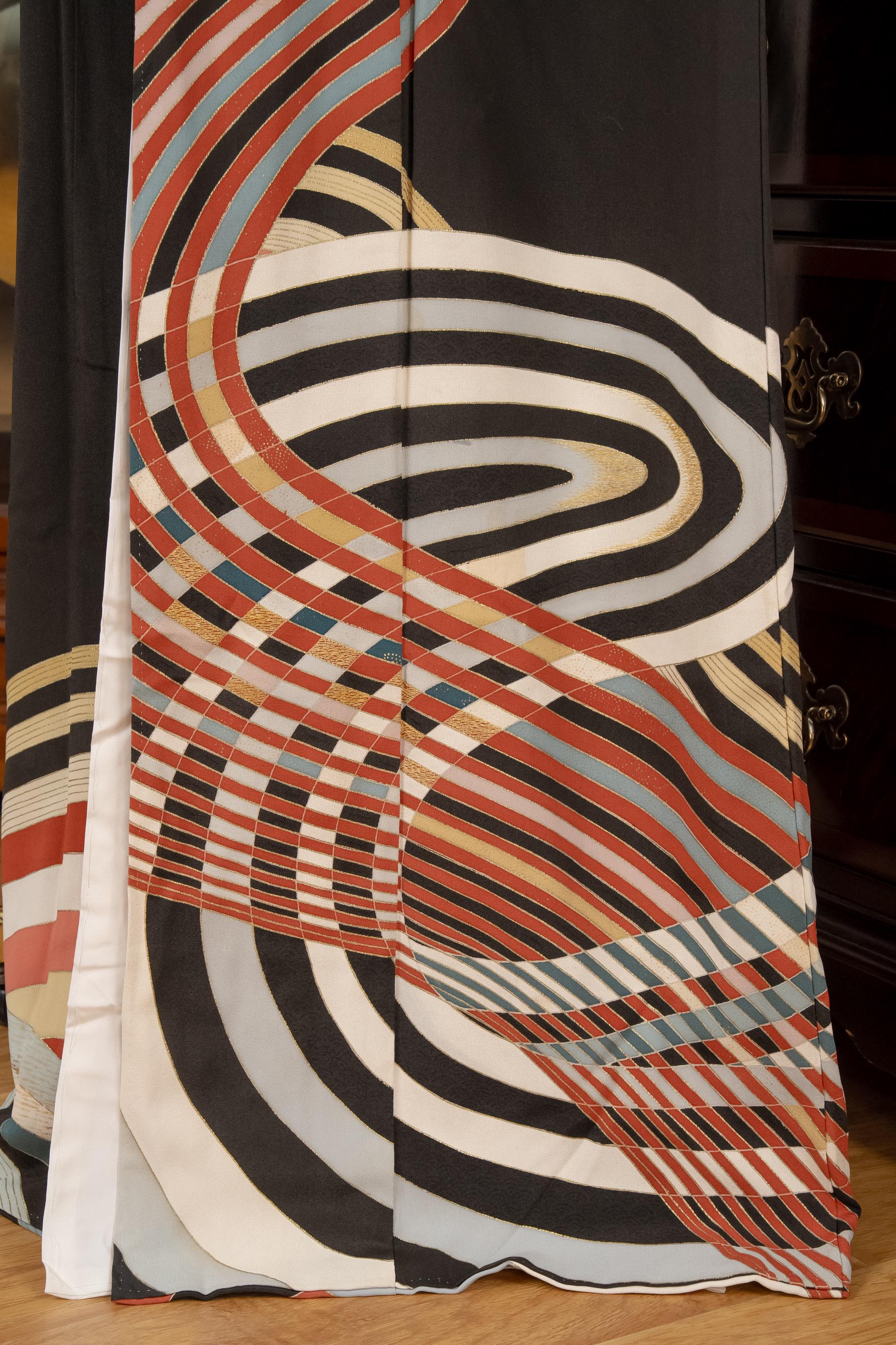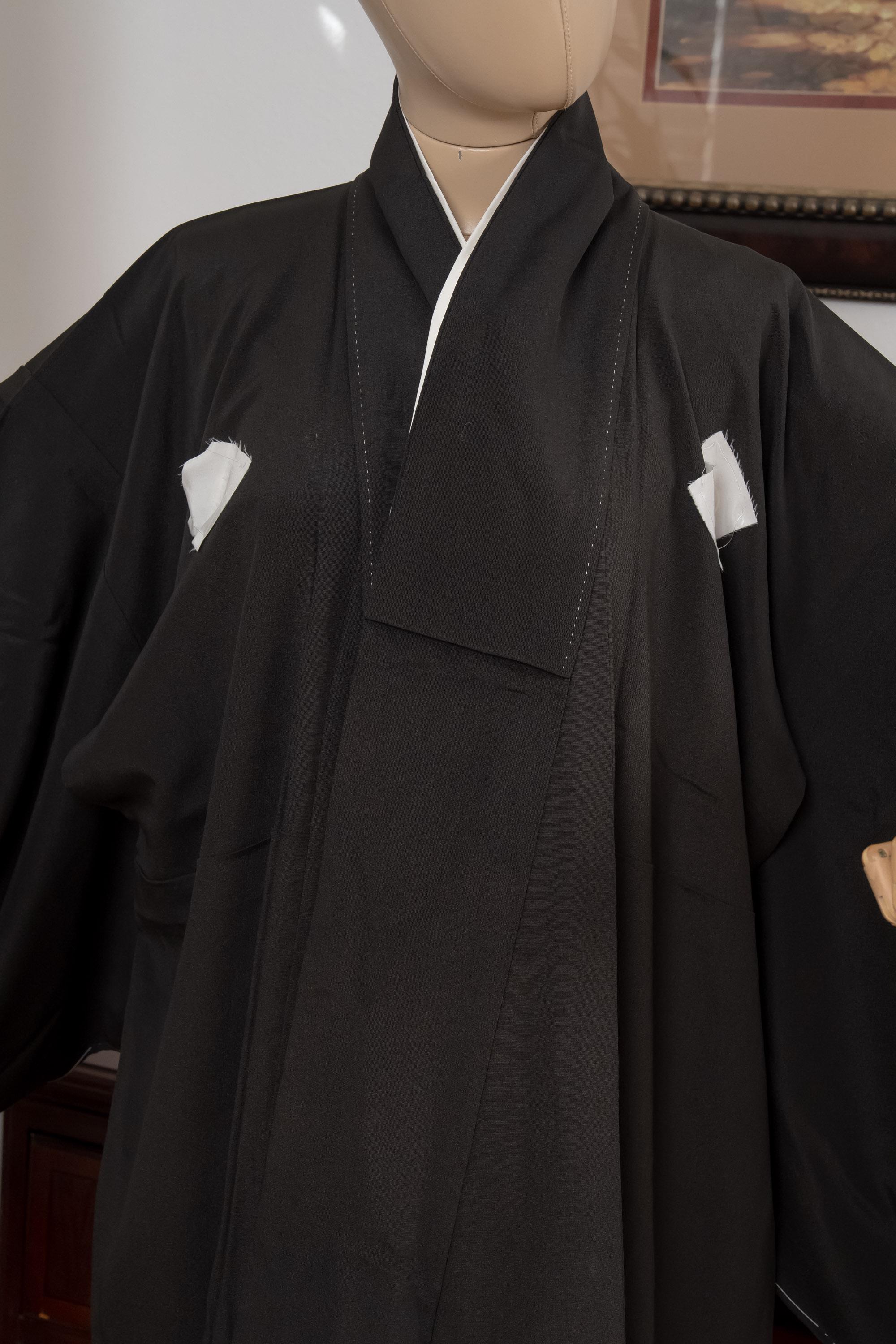 Tomesode is the most formal, high class Kimono for all ceremonies and occasions. Black ones are worn by married women and colored ones are worn by both married and unmarried women. Distinct characteristics of Tomesode are family crests and surrounding patterns around the hem. Numbers of family crests specify formality and rank.