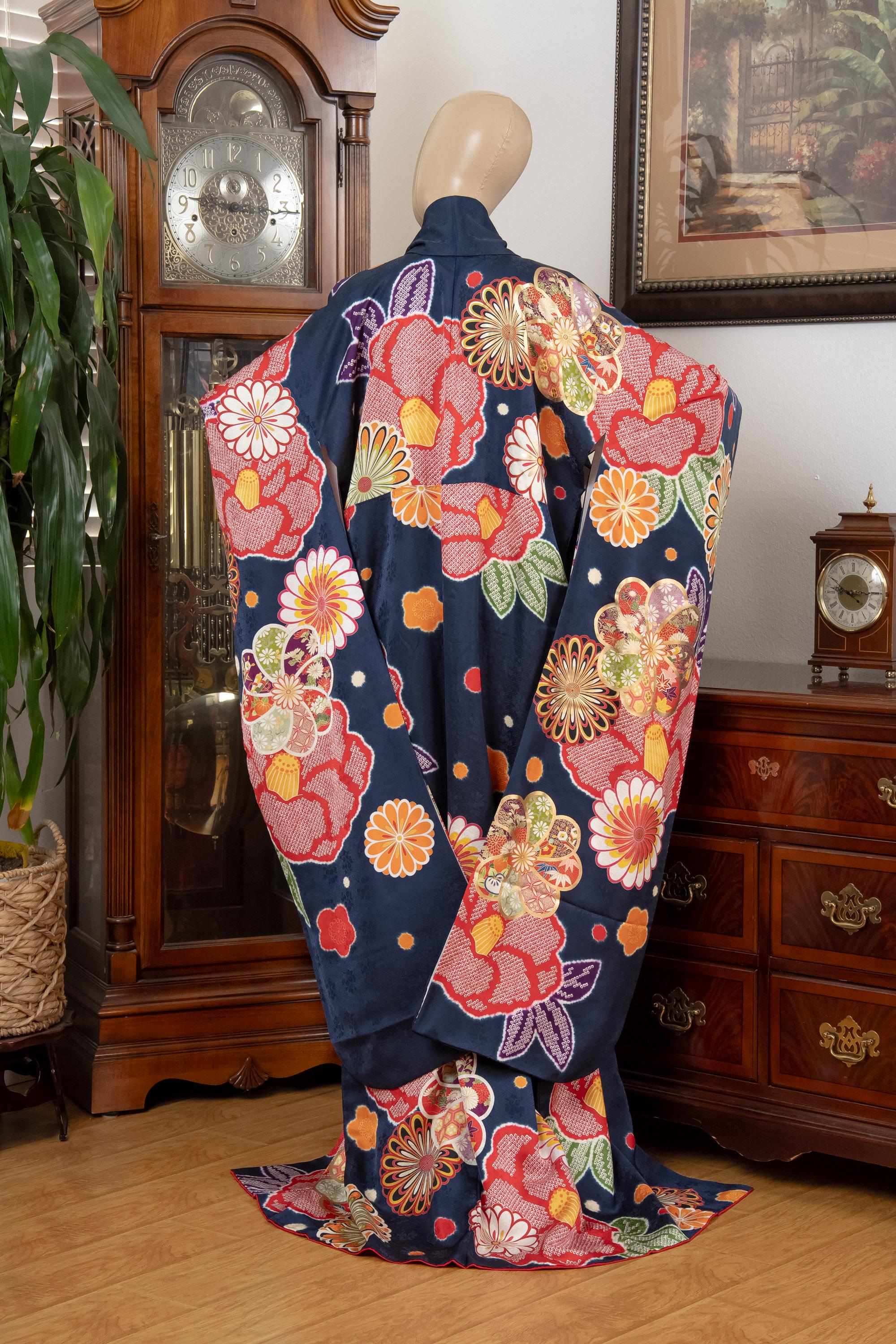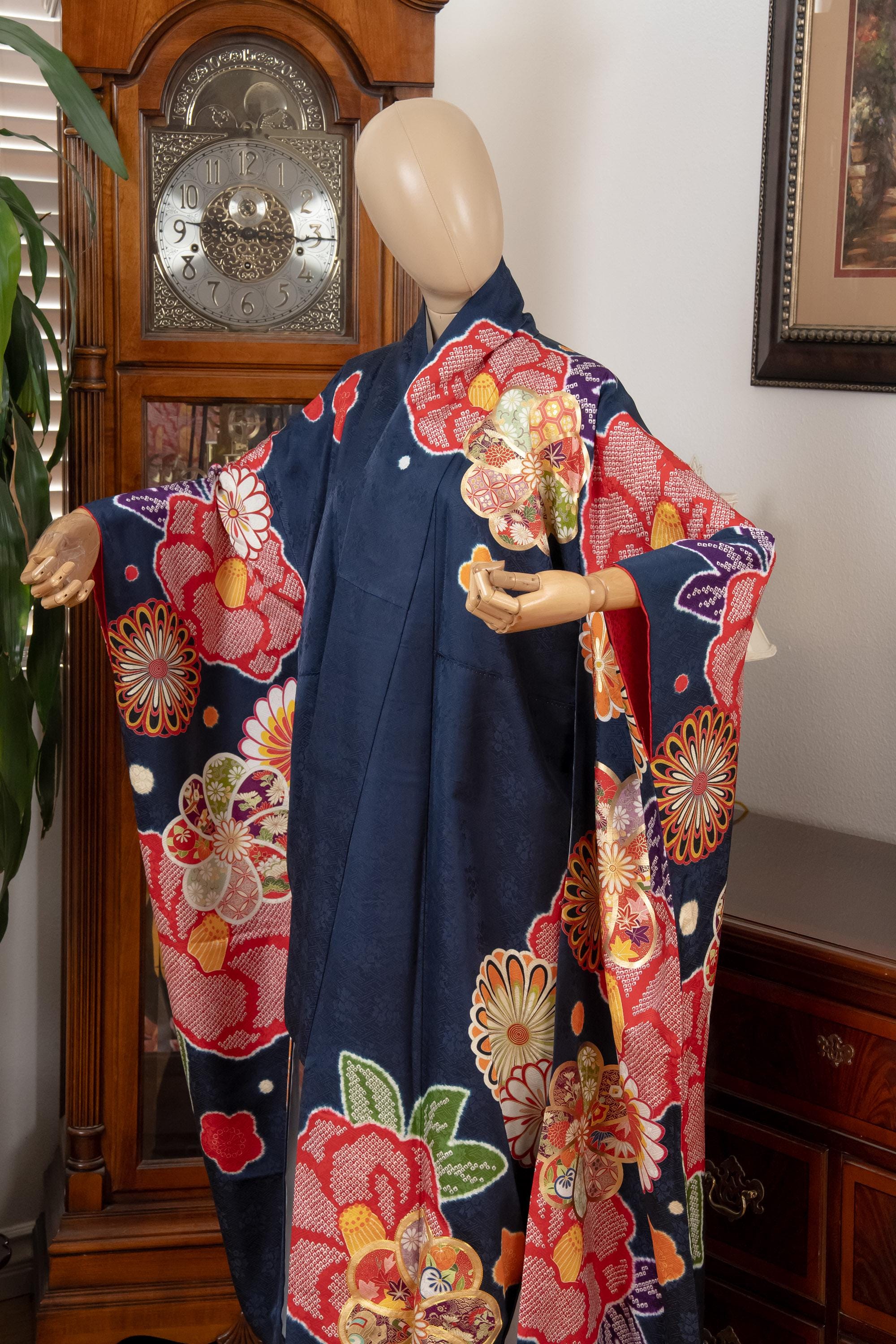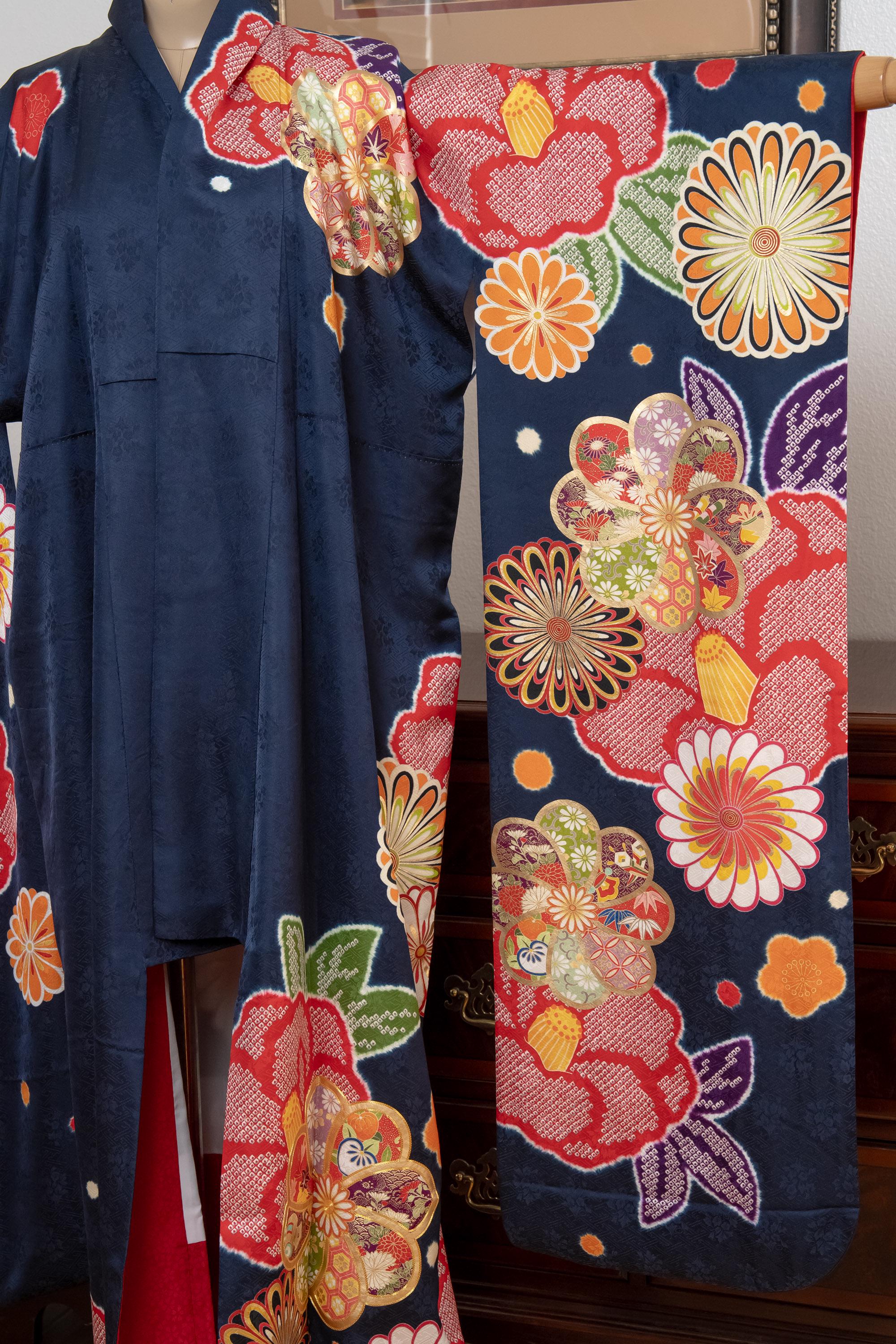 Furisode is a formal kimono distinguishable by its long sleeves. Furisode is the most formal style of kimono worn by young unmarried women in Japan, generally used for formal social functions such as the tea ceremony, wedding ceremonies and graduation ceremonies. Furisode's elegant aesthetics along with such fine details often make a great wall decoration for home as well.