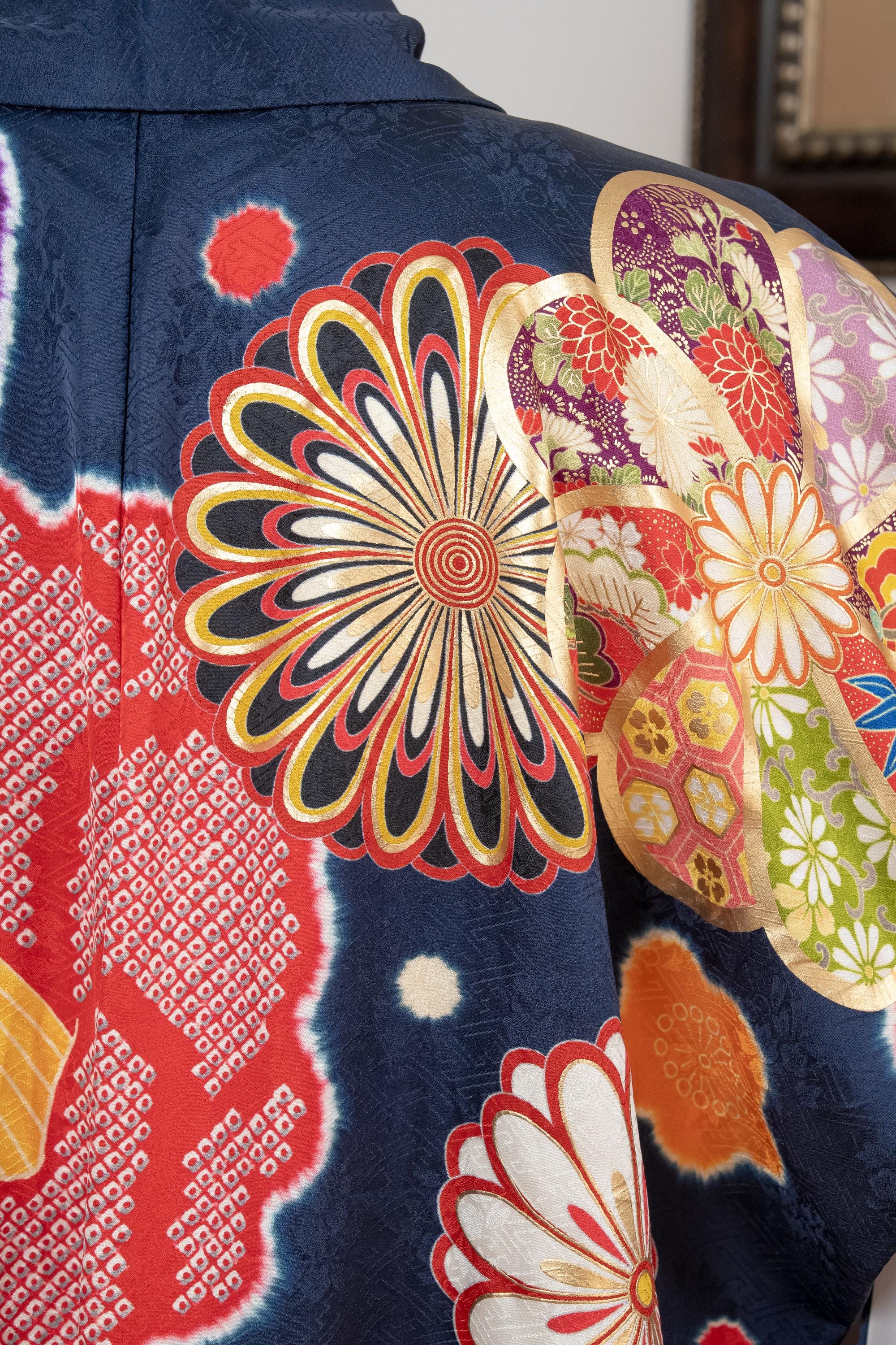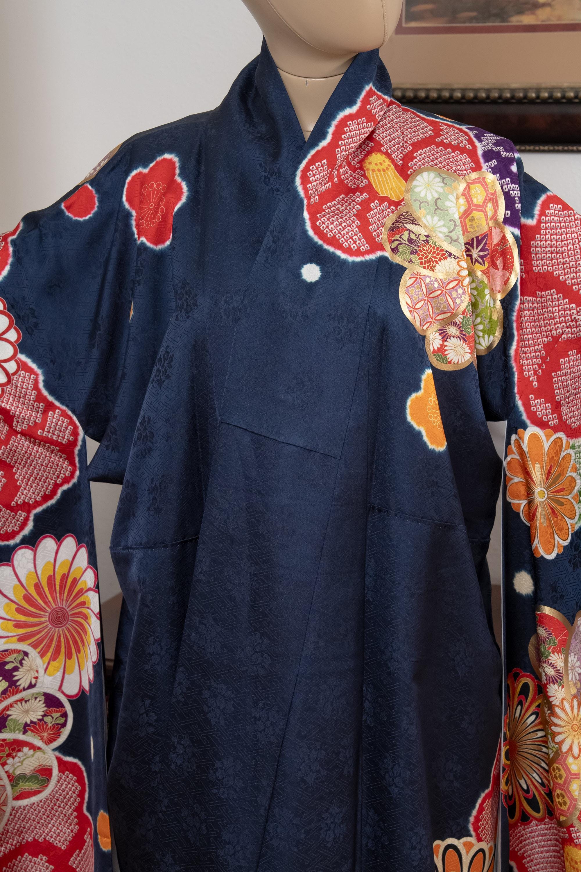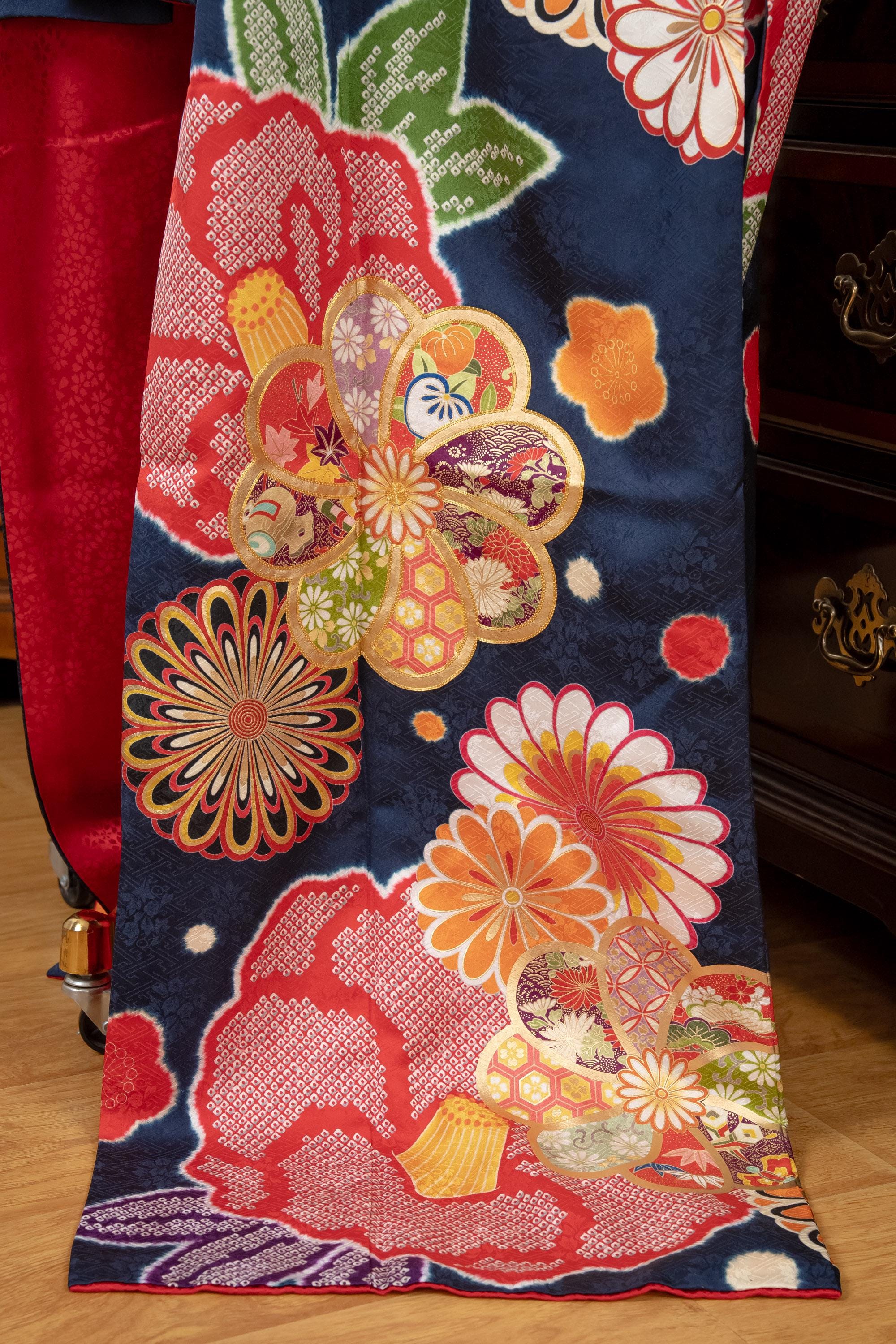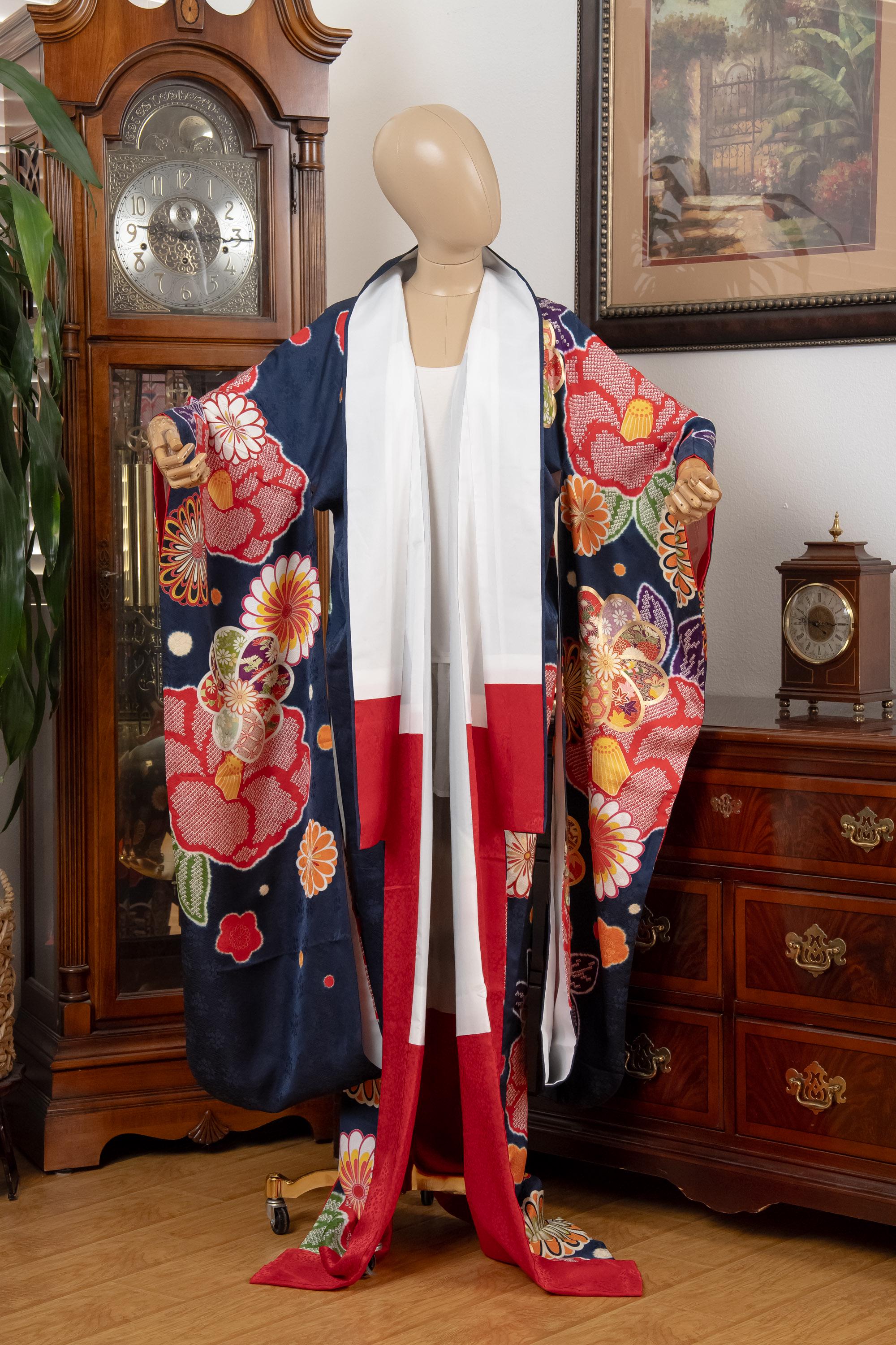 Furisode is a formal kimono distinguishable by its long sleeves. Furisode is the most formal style of kimono worn by young unmarried women in Japan, generally used for formal social functions such as the tea ceremony, wedding ceremonies and graduation ceremonies. Furisode's elegant aesthetics along with such fine details often make a great wall decoration for home as well.