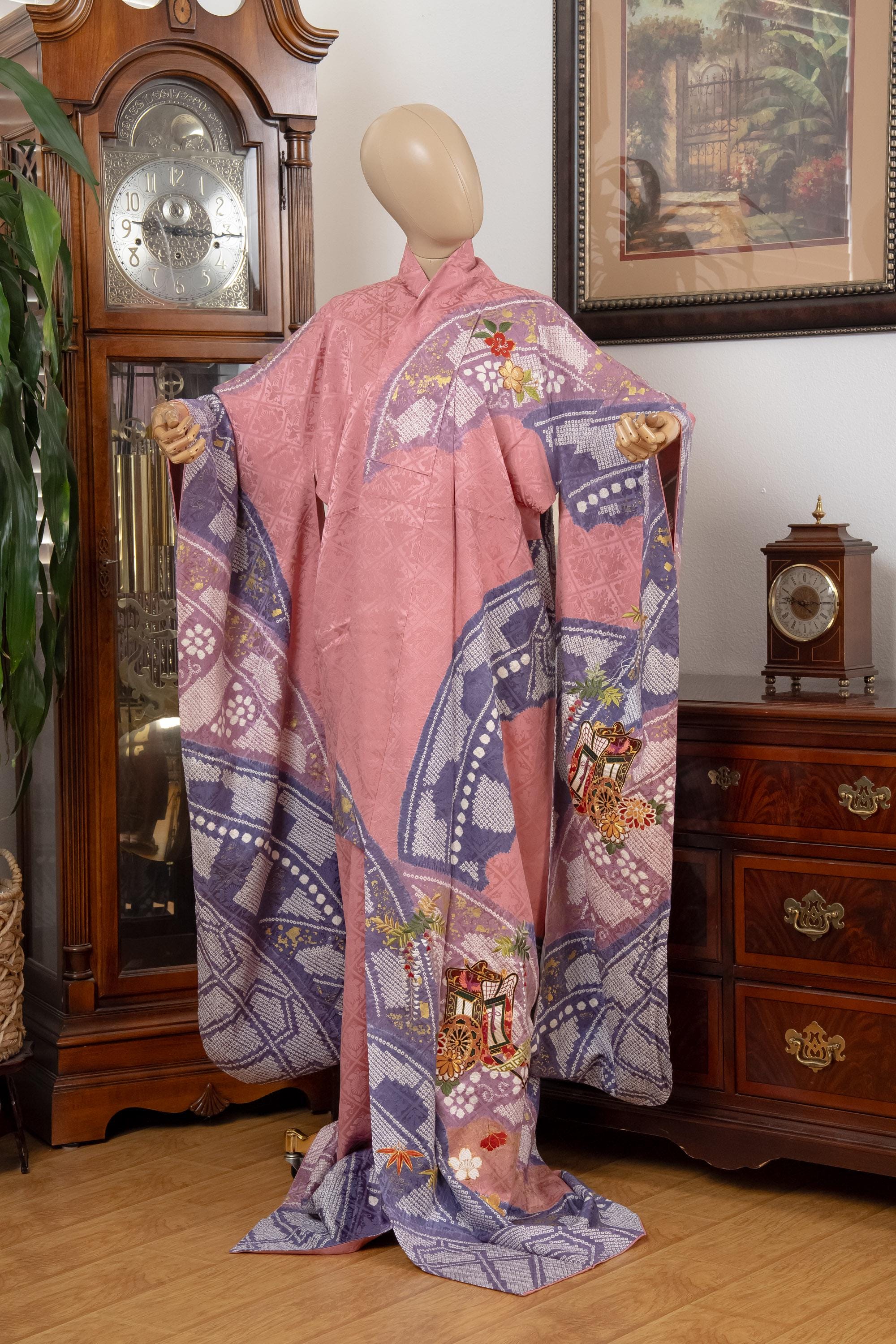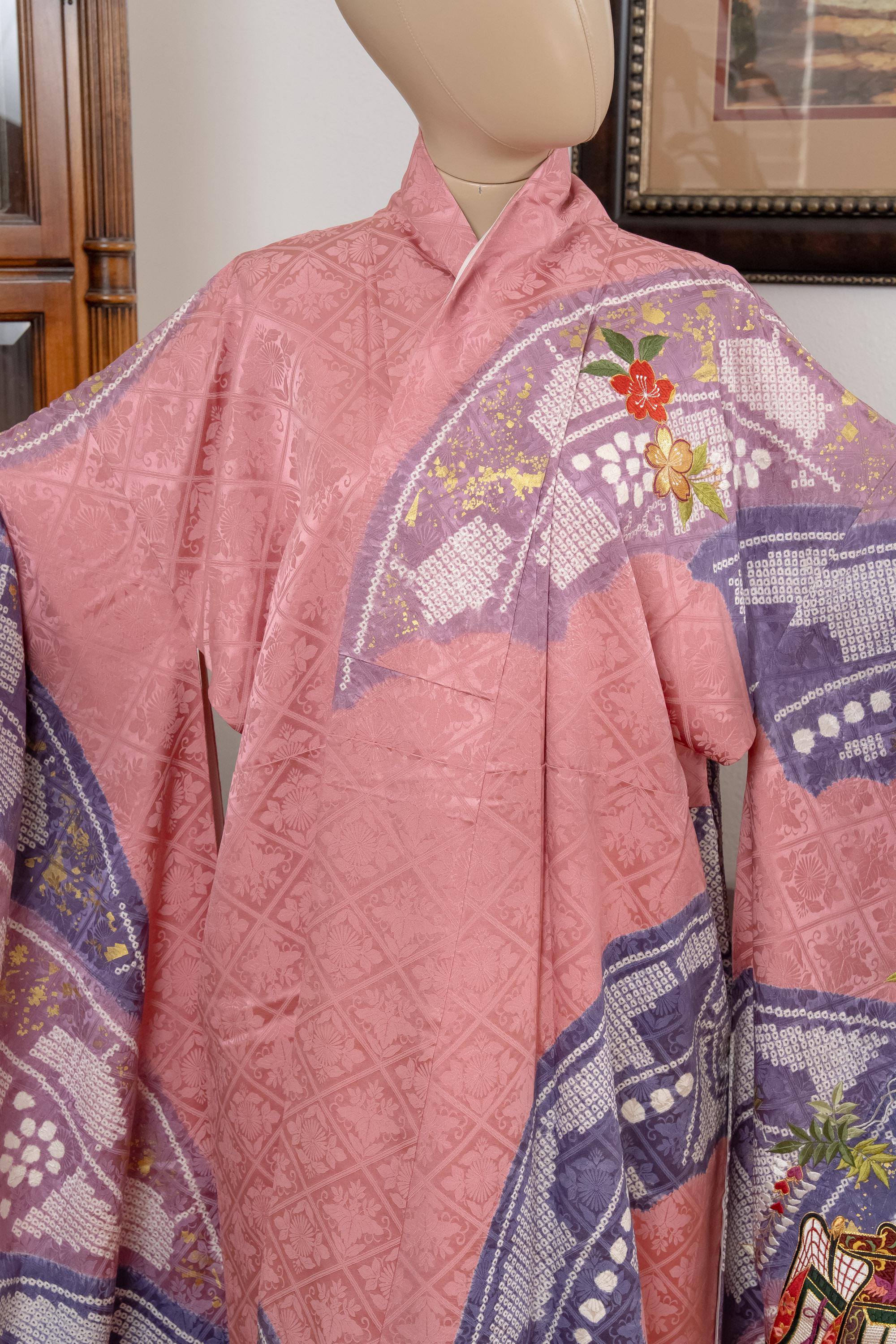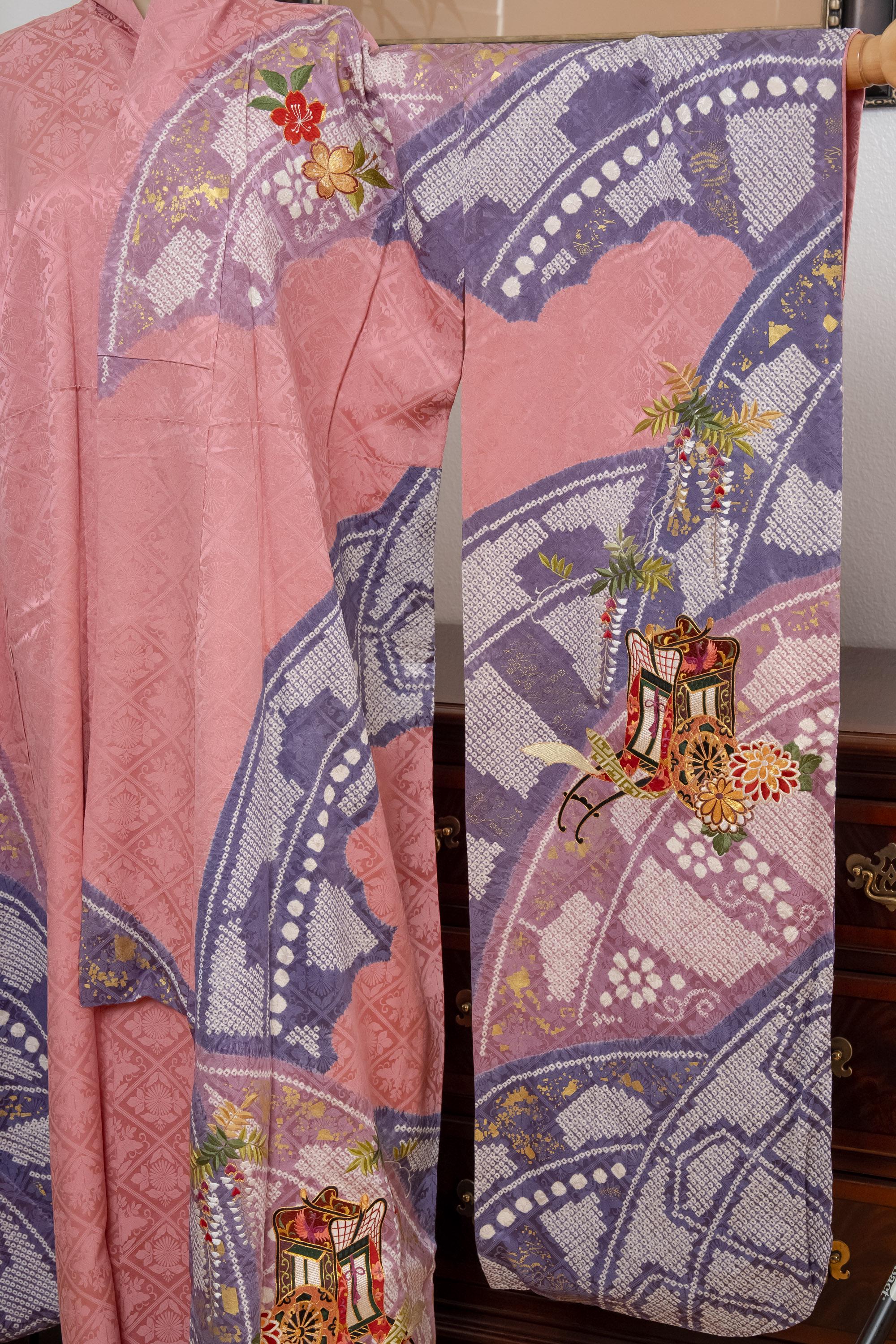 Furisode is a formal kimono distinguishable by its long sleeves. Furisode is the most formal style of kimono worn by young unmarried women in Japan, generally used for formal social functions such as the tea ceremony, wedding ceremonies and graduation ceremonies. Furisode's elegant aesthetics along with such fine details often make a great wall decoration for home as well.
