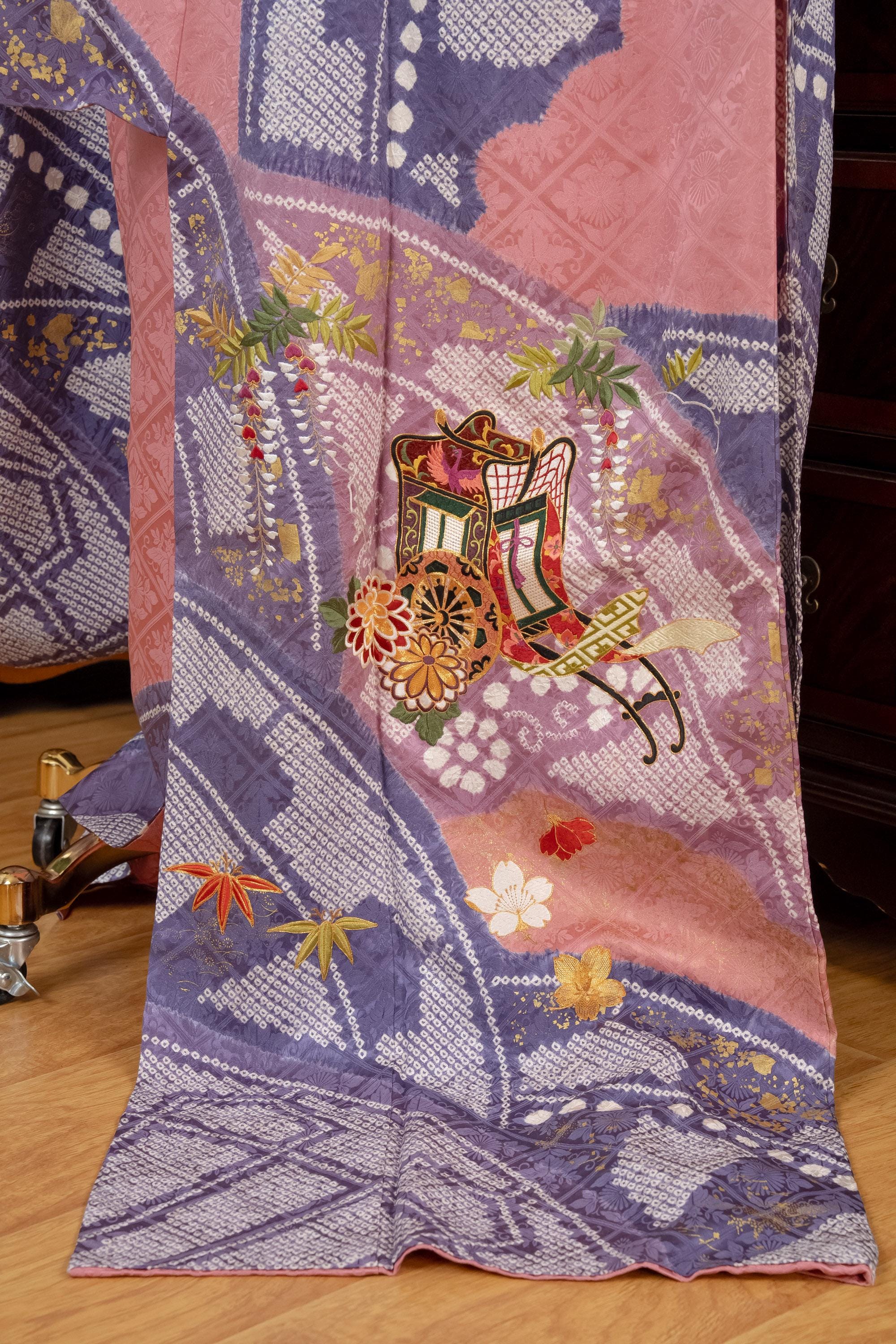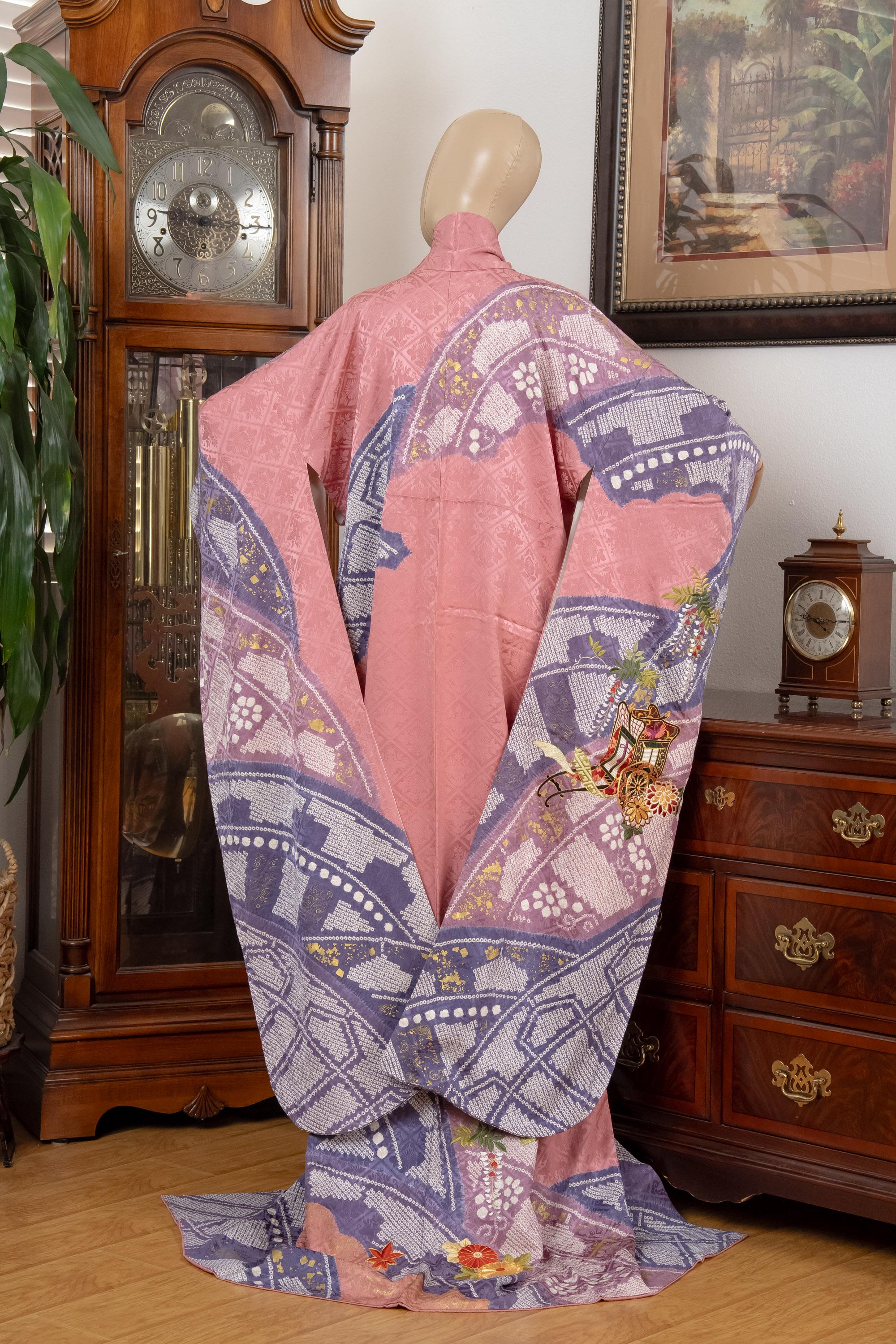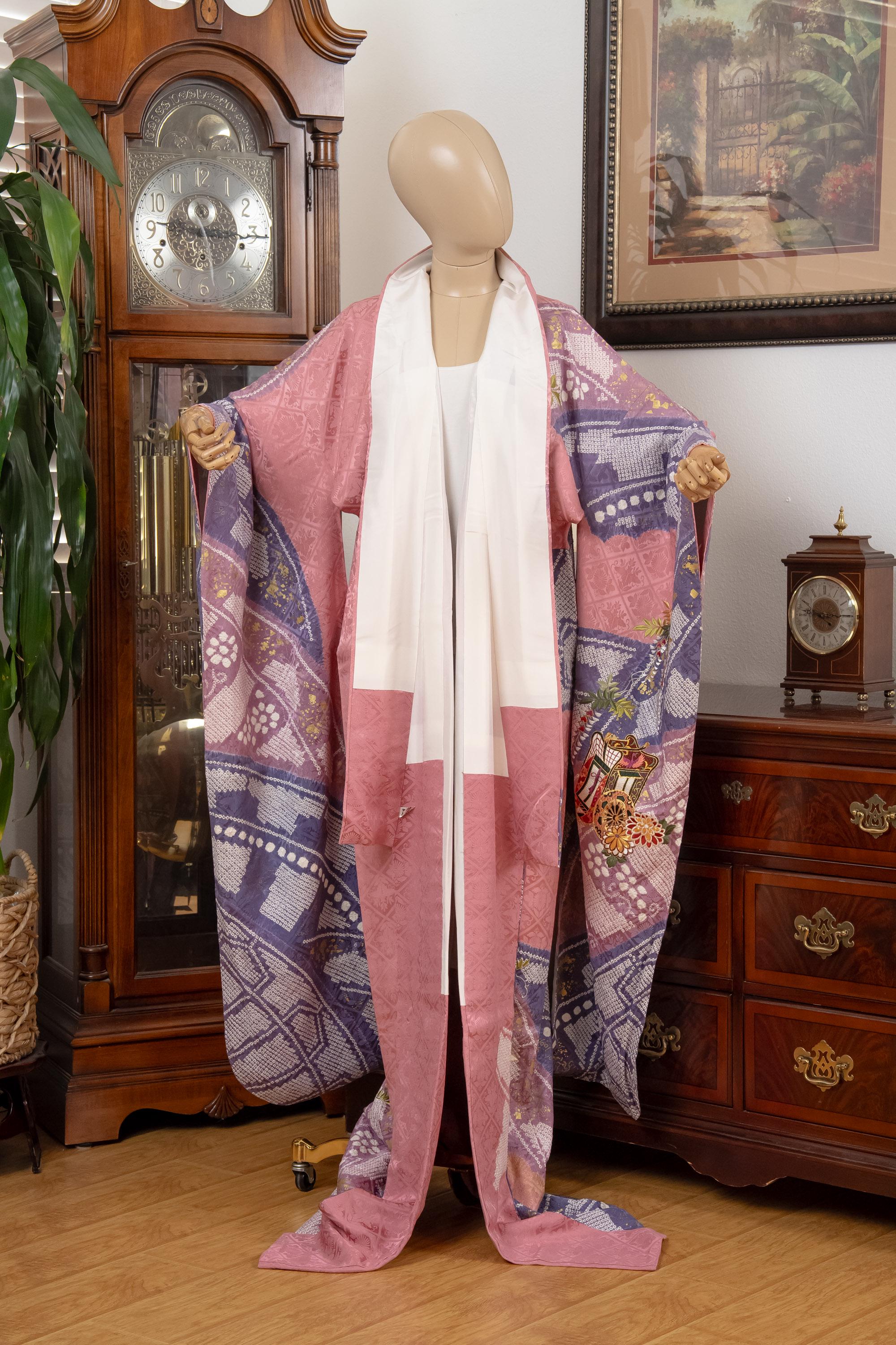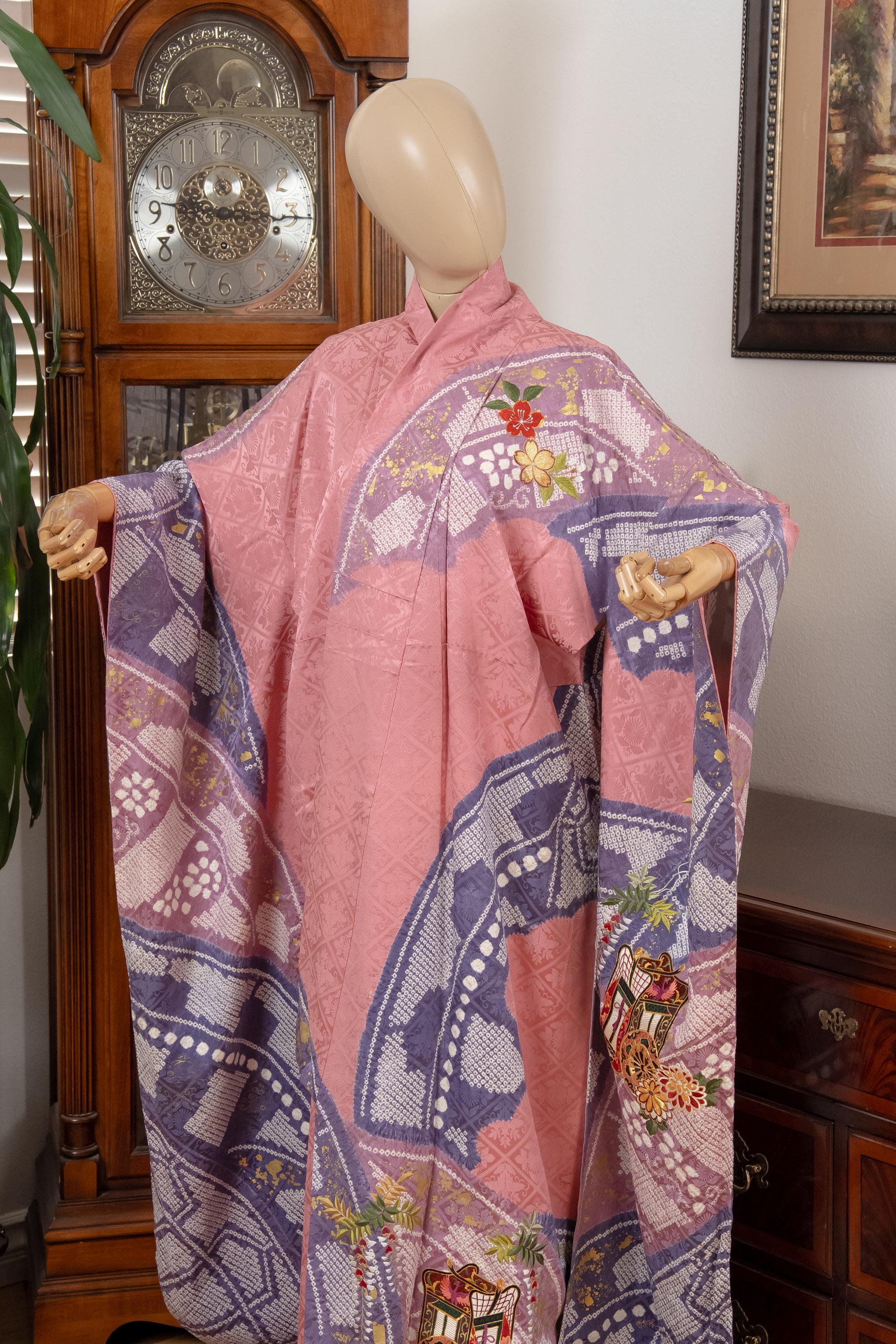 Furisode is a formal kimono distinguishable by its long sleeves. Furisode is the most formal style of kimono worn by young unmarried women in Japan, generally used for formal social functions such as the tea ceremony, wedding ceremonies and graduation ceremonies. Furisode's elegant aesthetics along with such fine details often make a great wall decoration for home as well.
