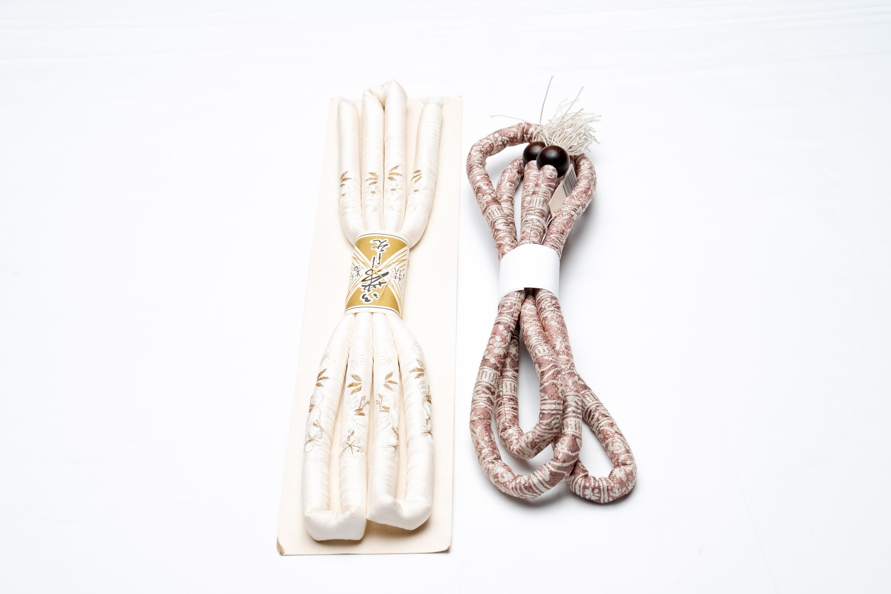 Obijime is one of the essentials in wearing women's Kimonos. Obijime is a fastener string used to hold Kimono Obi in place by tying over it. It's also called Obijime cord. Obijime can be found in different widths and lengths. In general, they are about 1 cm thick and are about 150 cm in length.