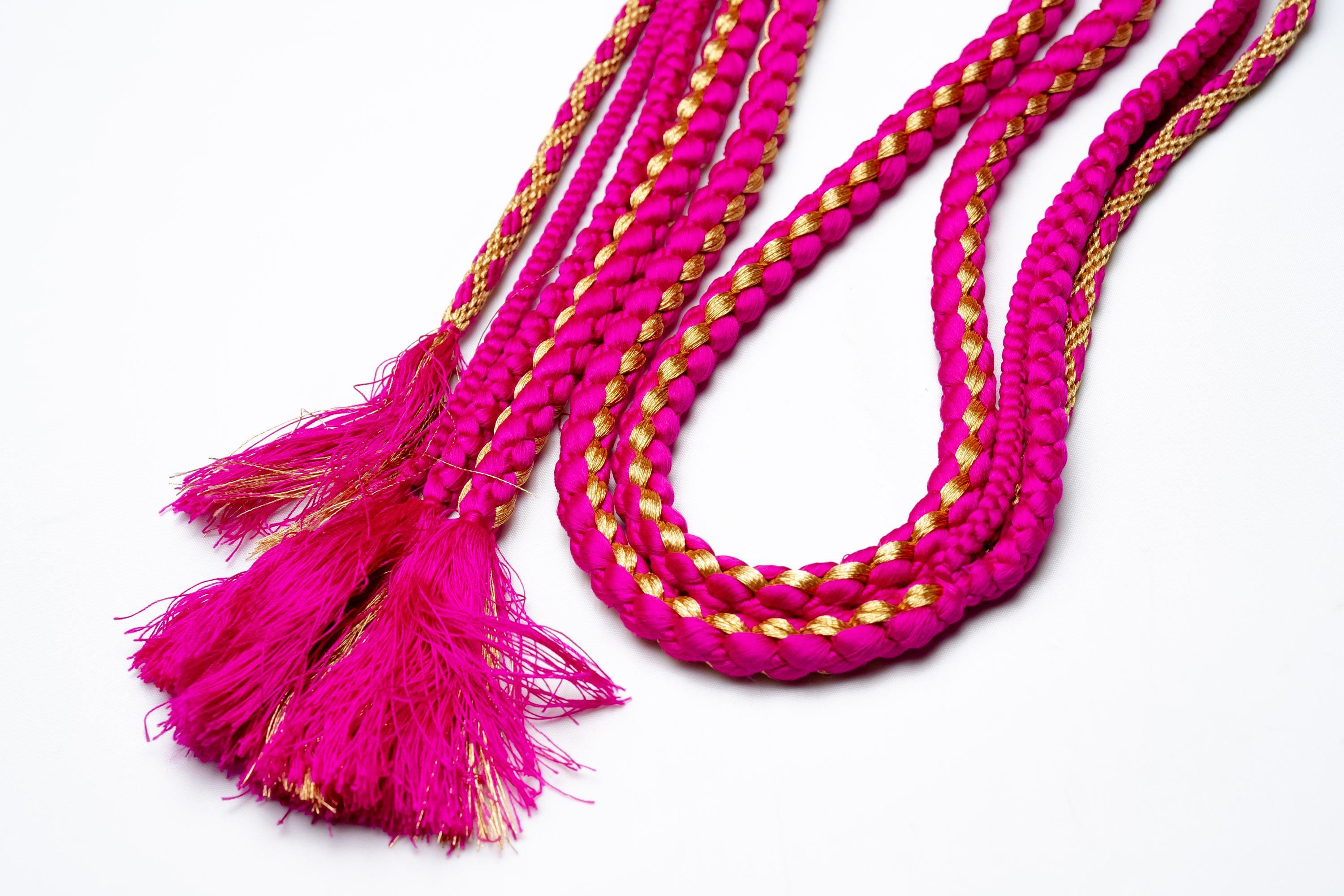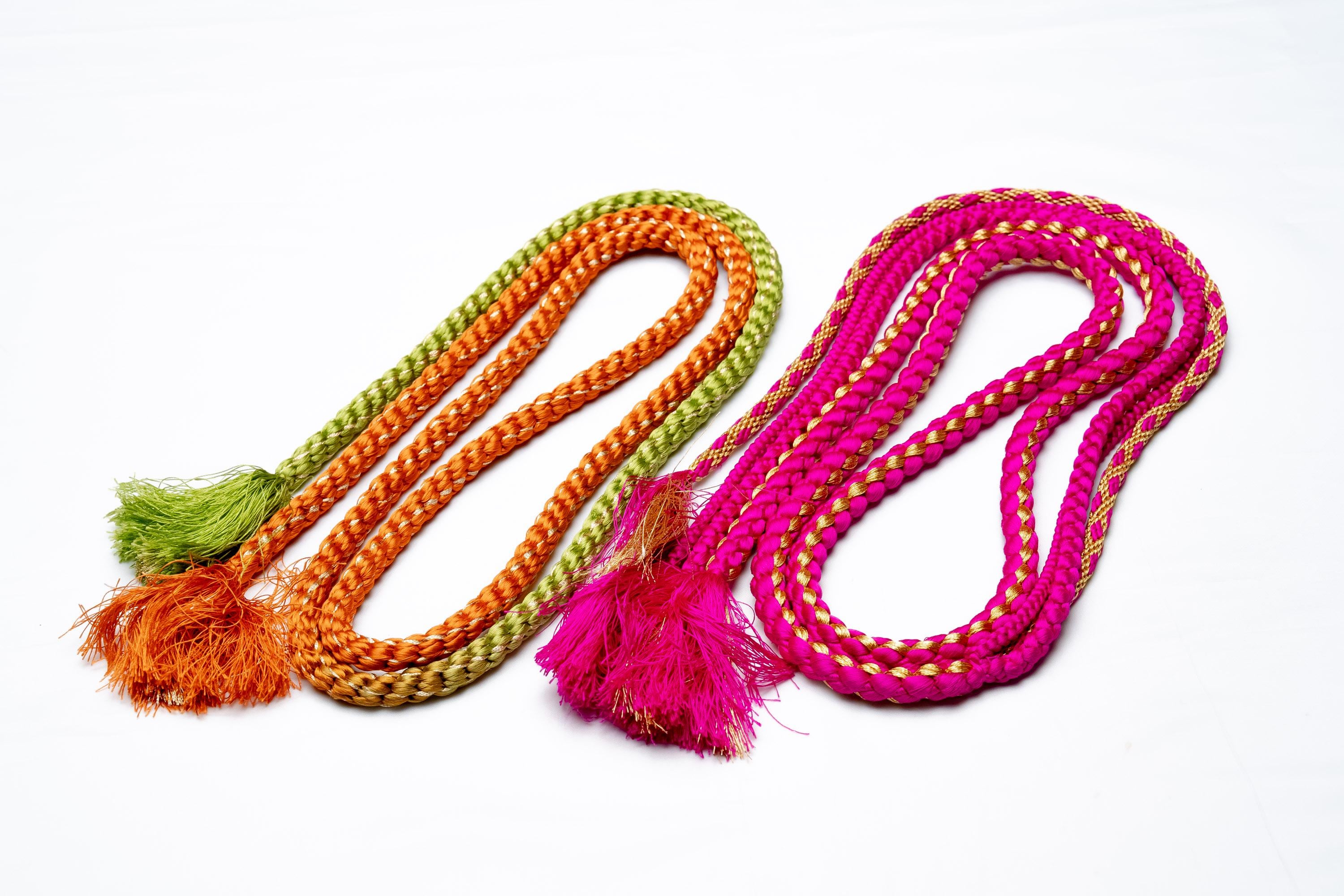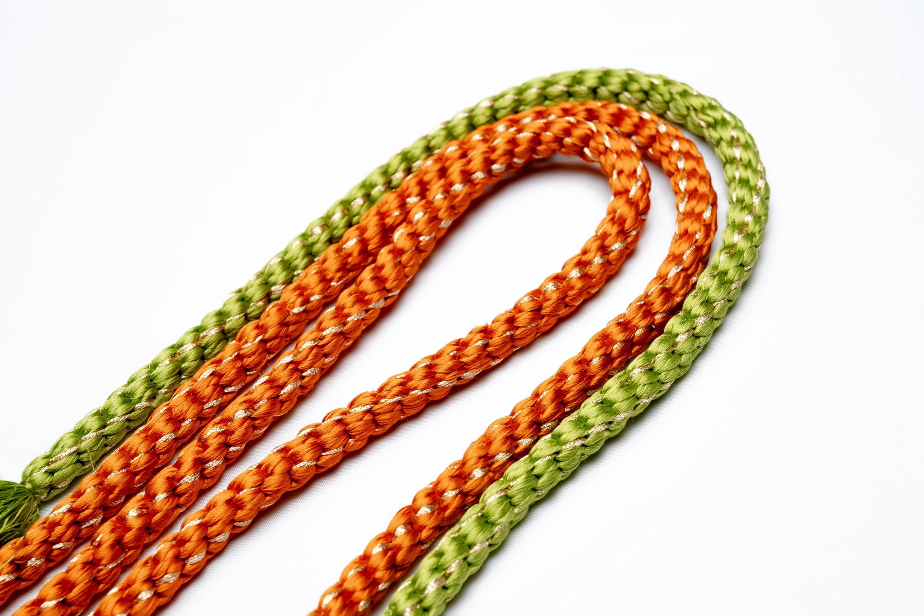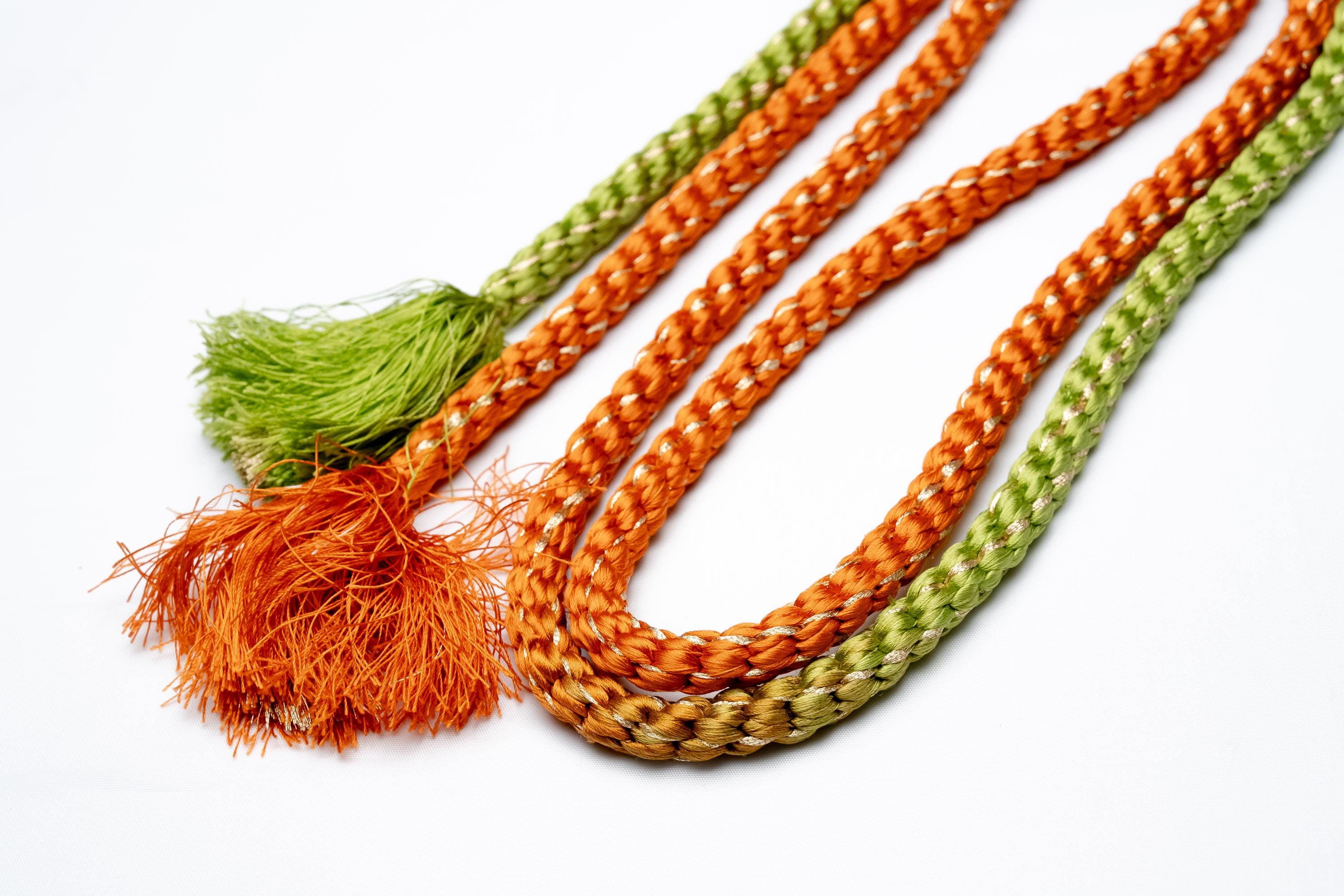 Obijime is one of the essentials in wearing women's Kimonos. Obijime is a fastener string used to hold Kimono Obi in place by tying over it. It's also called Obijime cord. Obijime can be found in different widths and lengths. In general, they are about 1 cm thick and are about 150 cm in length.