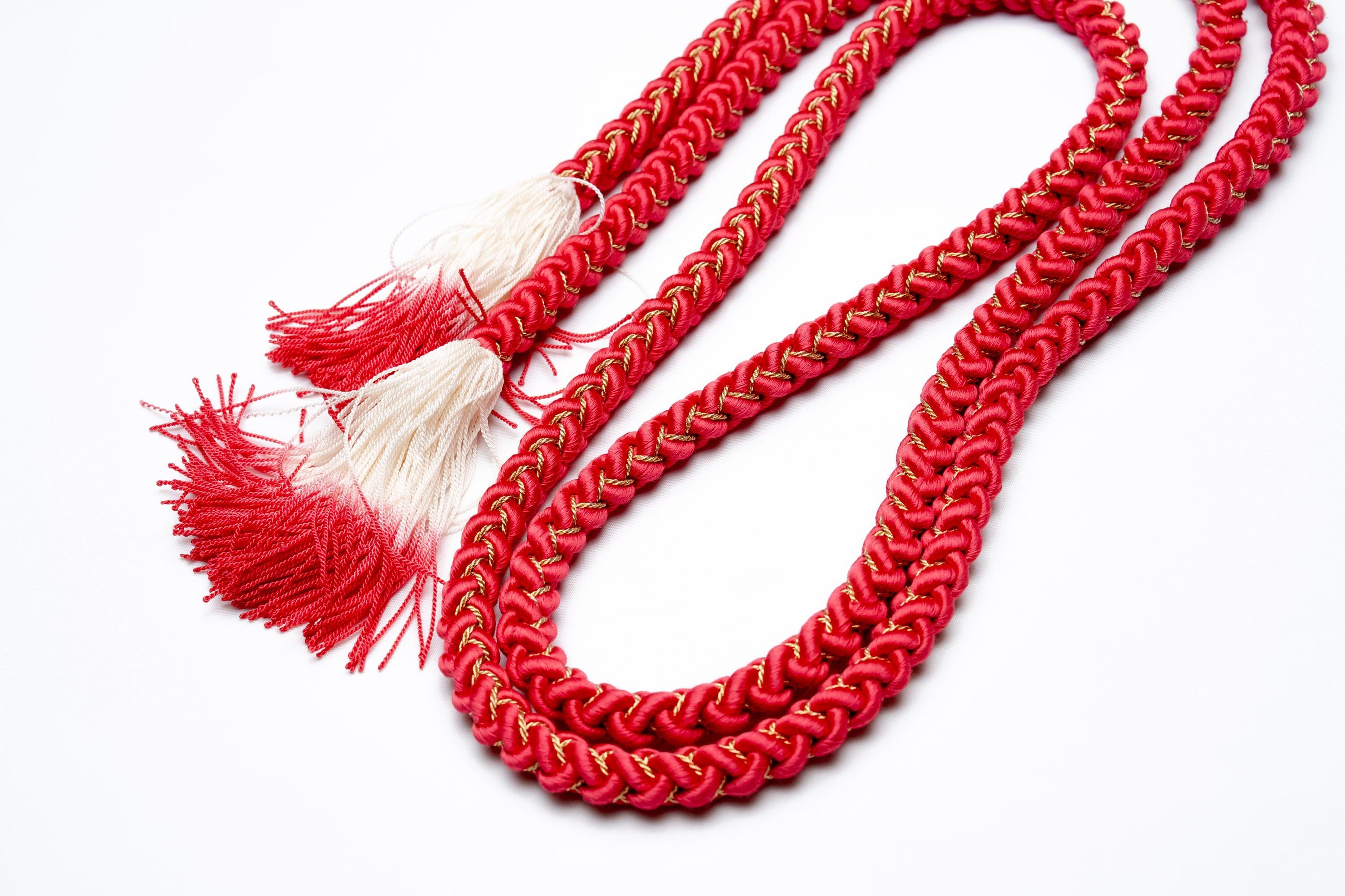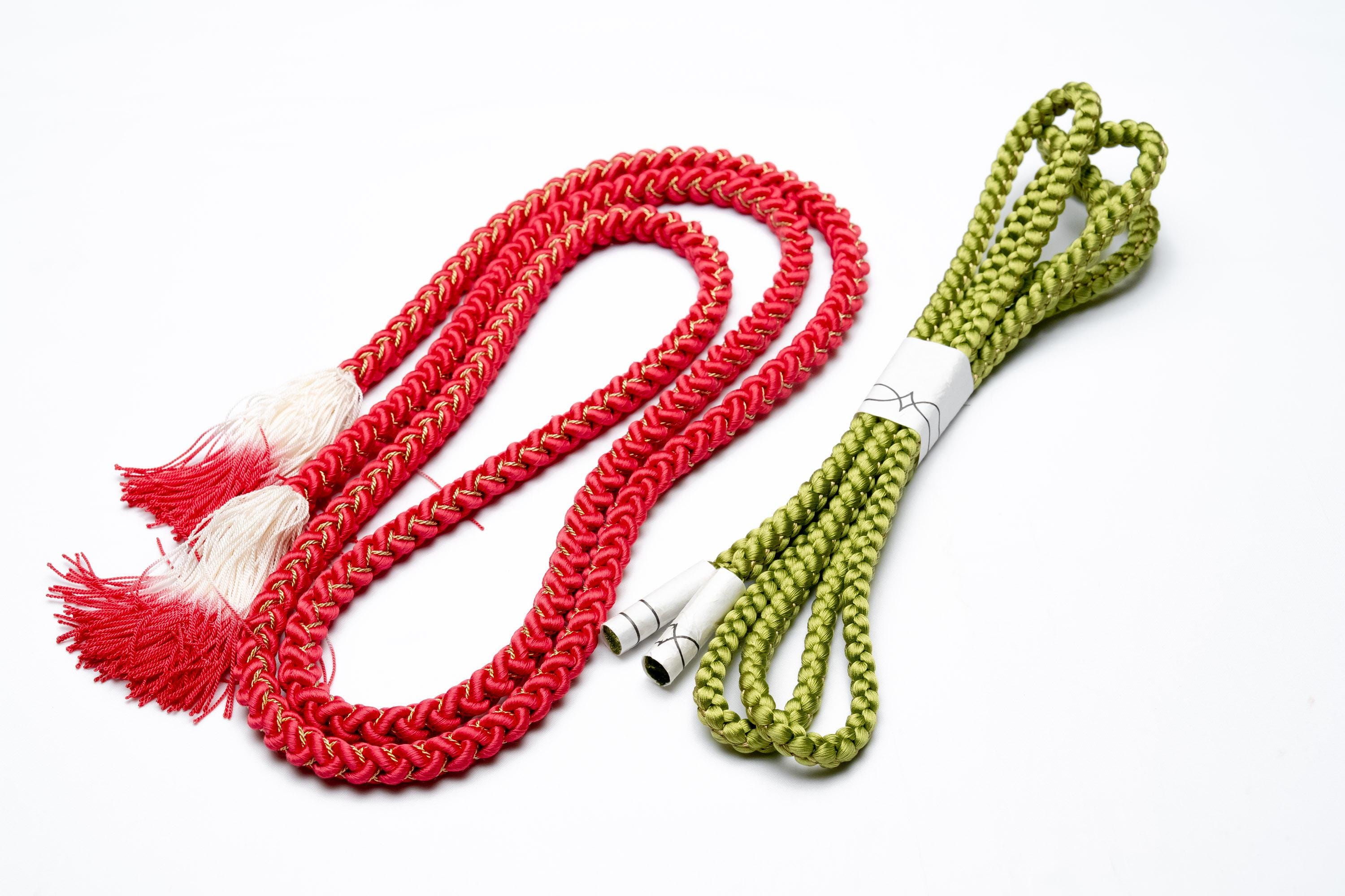 Obijime is one of the essentials in wearing women's Kimonos. Obijime is a fastener string used to hold Kimono Obi in place by tying over it. It's also called Obijime cord. Obijime can be found in different widths and lengths. In general, they are about 1 cm thick and are about 150 cm in length.