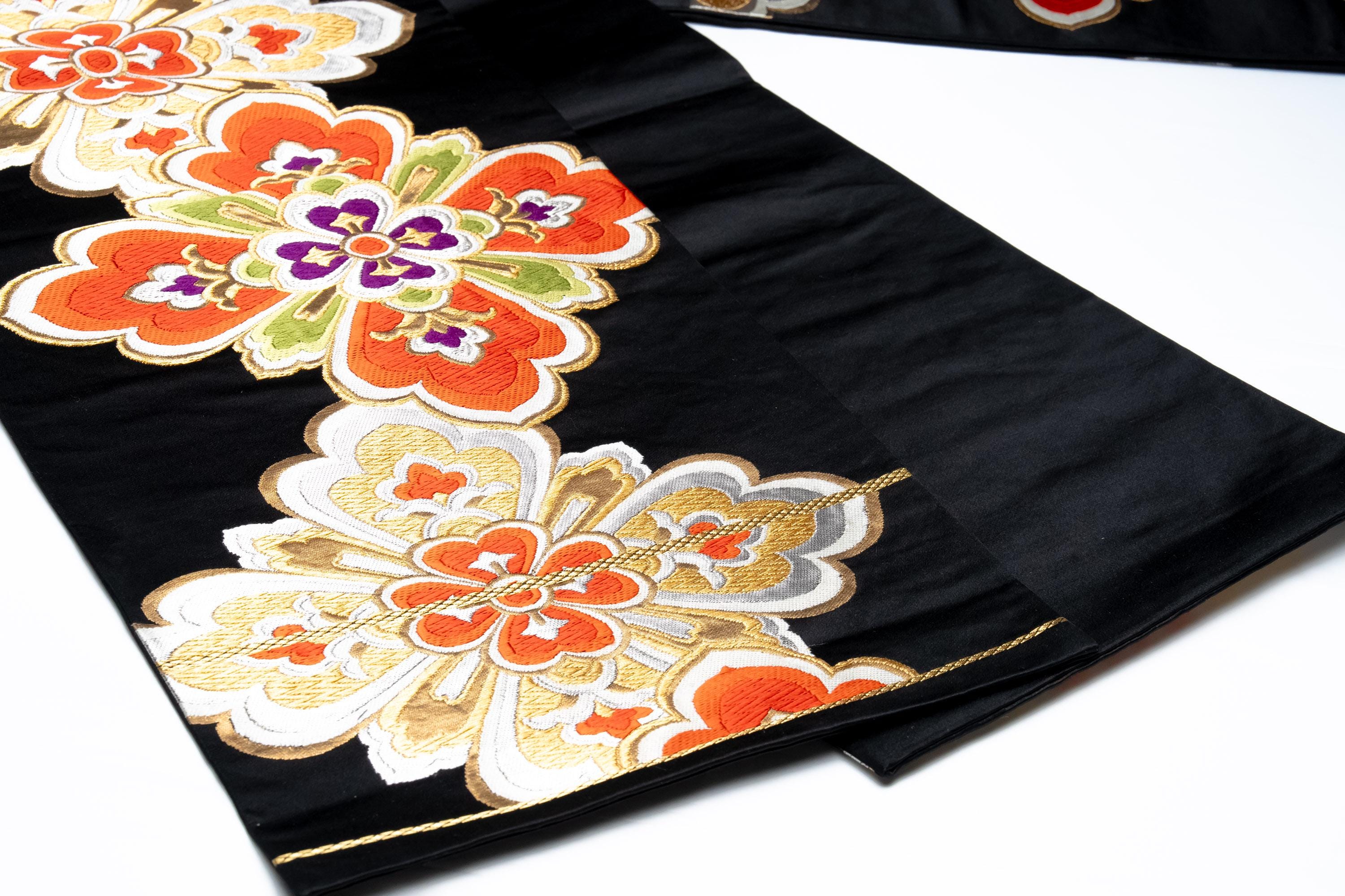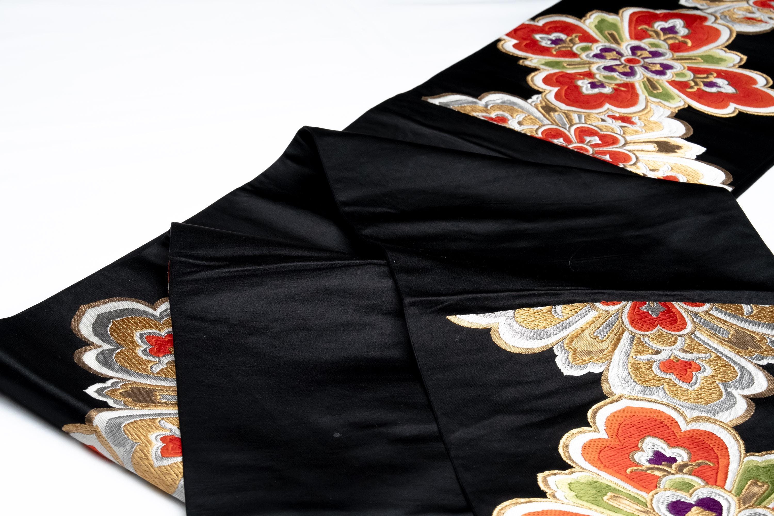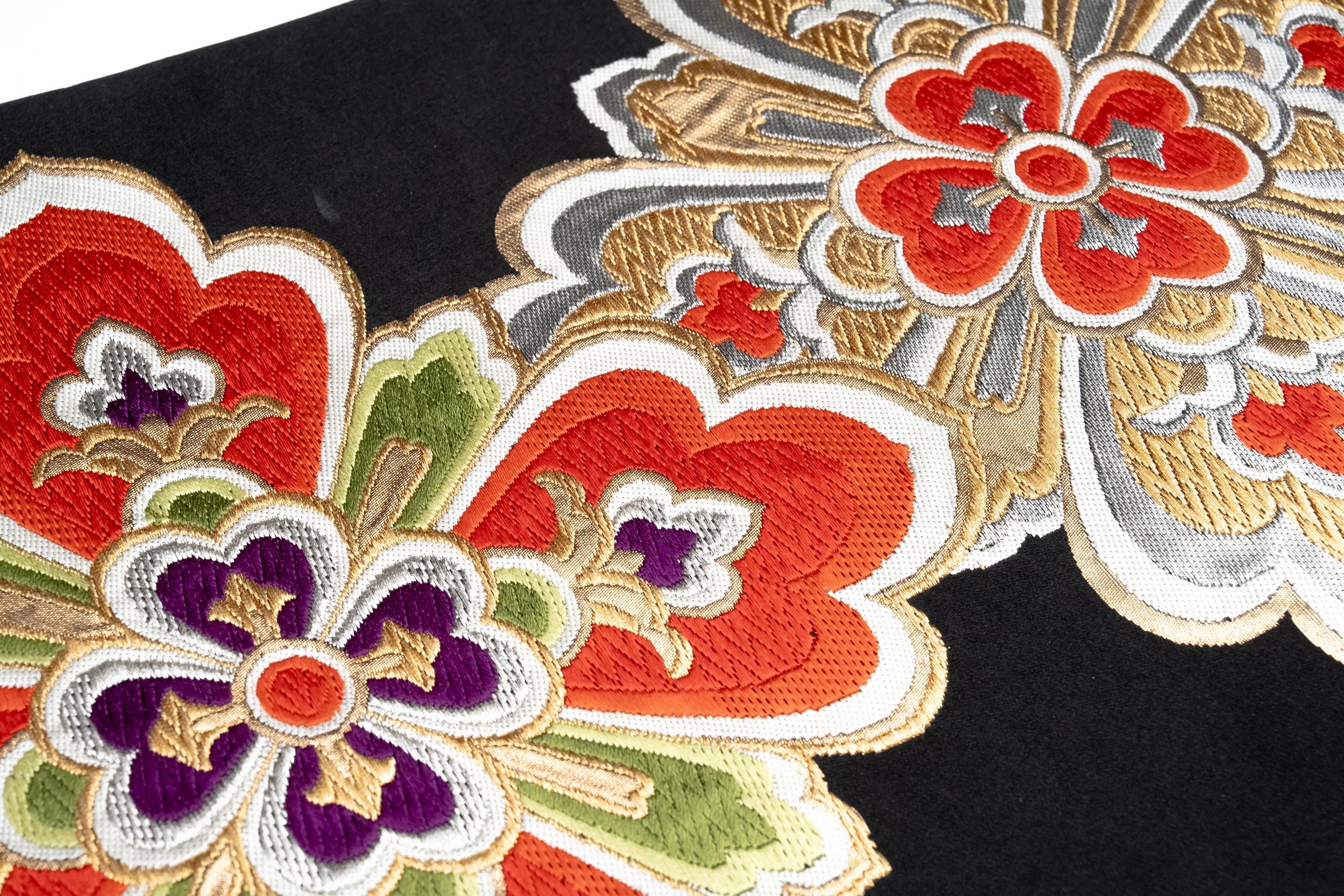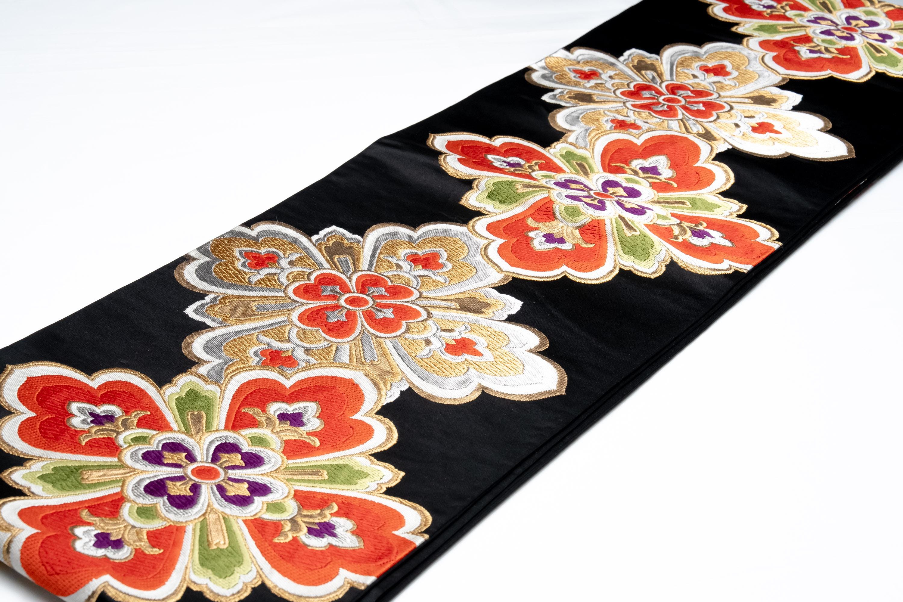 Fukuro Obi is a full-size sash belt that wraps around the torso in women's formal Kimono wearing. It is wider, longer and heavier than other informal Obis and serves the purpose of keeping the Kimono front closed securely, drawing up excess fabric to adjust the length of Kimono, and decorative expressions.