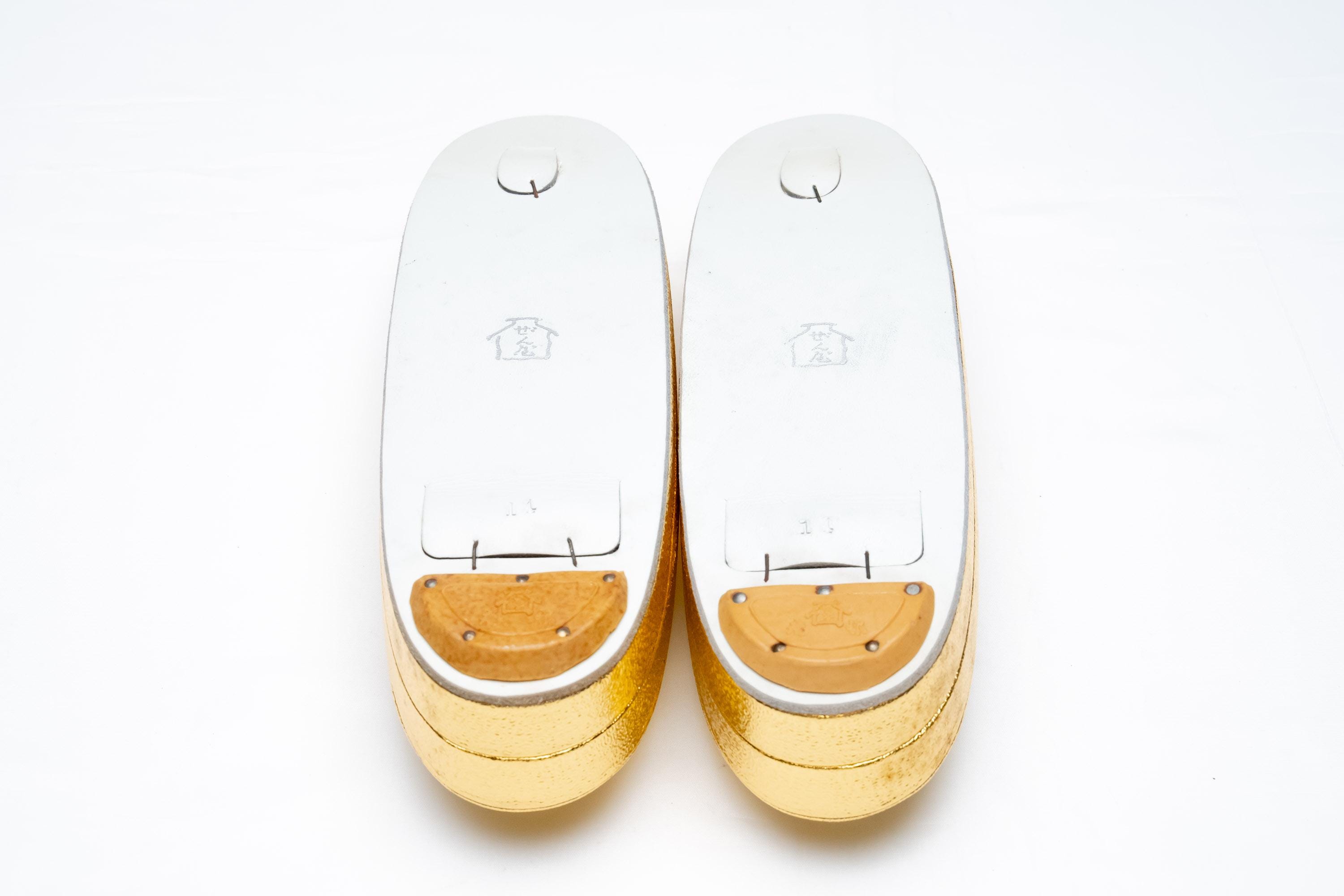 When you wear Zori with traditional Japanese formal Kimono, your heels should extend about one centimeter off the back of Zori. If your heels sit perfectly onto or shorter than the body of Zori, you might accidentally step onto the hem of your Kimono dress and/or splash mud/dirt on the back of dress.
