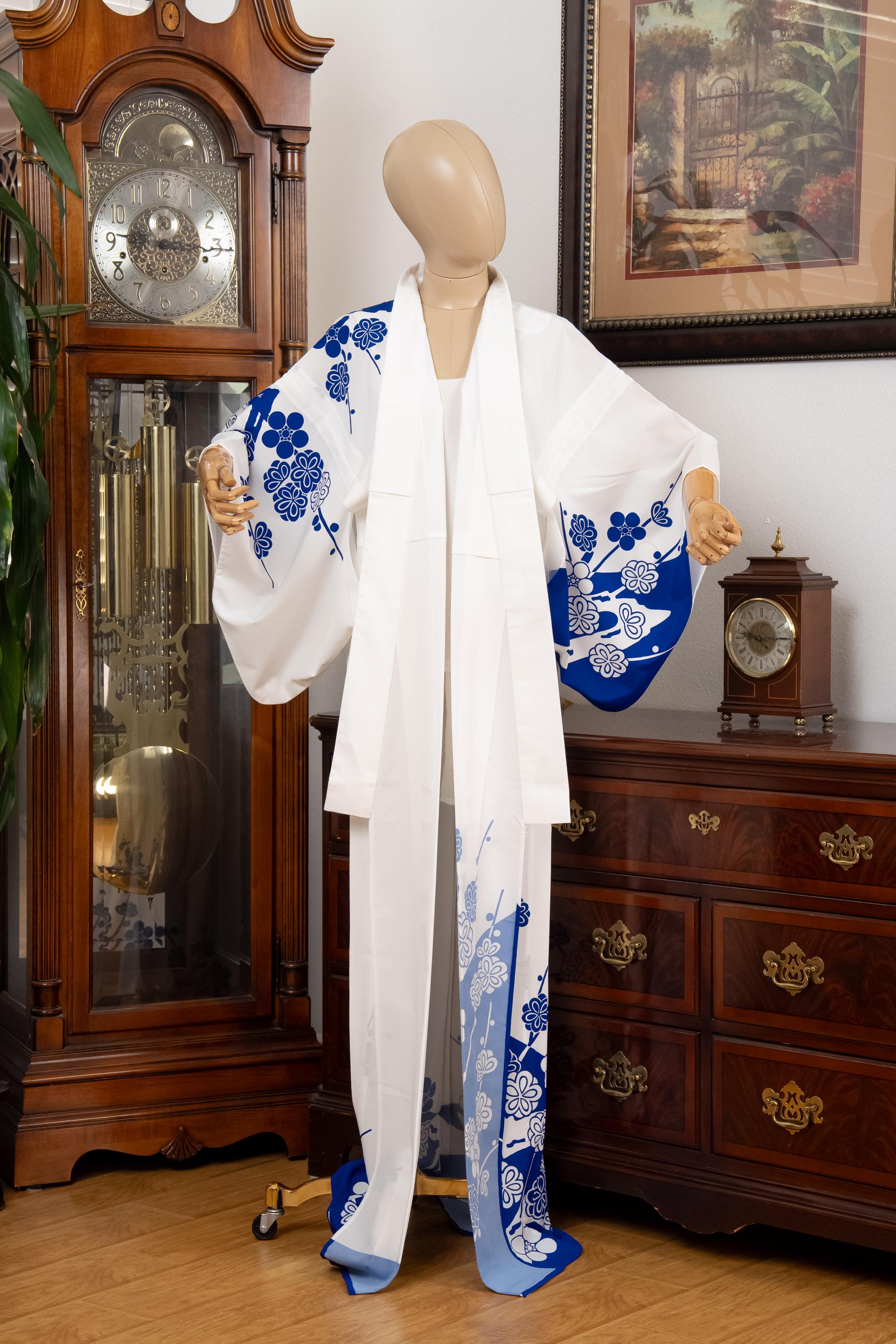 Please keep in mind that female Kimonos are supposed to fit long. You will need to adjust the length to your size by tying with Kitsuke accessories and Obi belt.