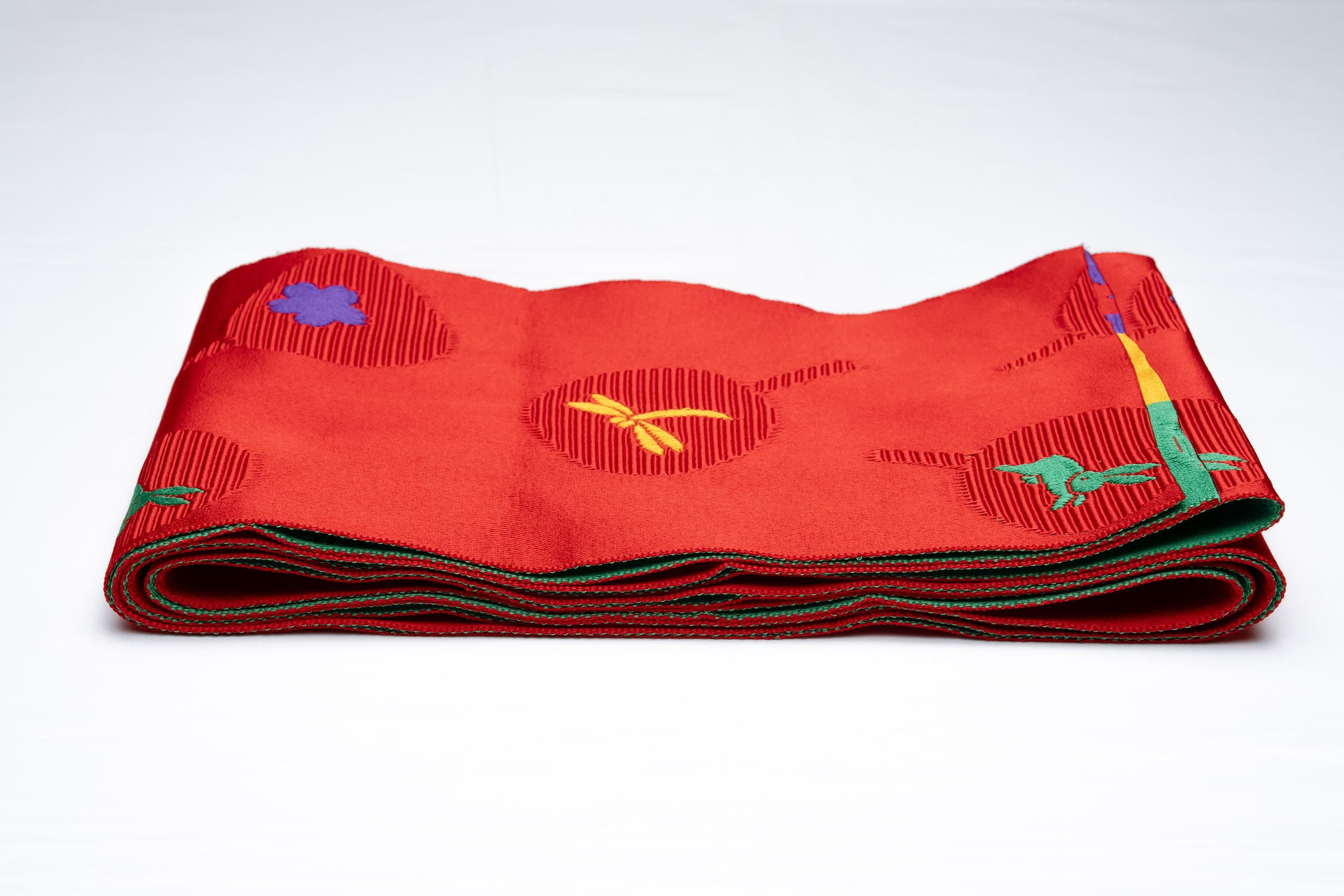 Hanhaba Obi is a lightweight Women's Kimono belt to keep Kimono's front wrapping and its closure in place. It also serves the purpose of adjusting the Kimono's length by drawing up excess fabric off the ground.