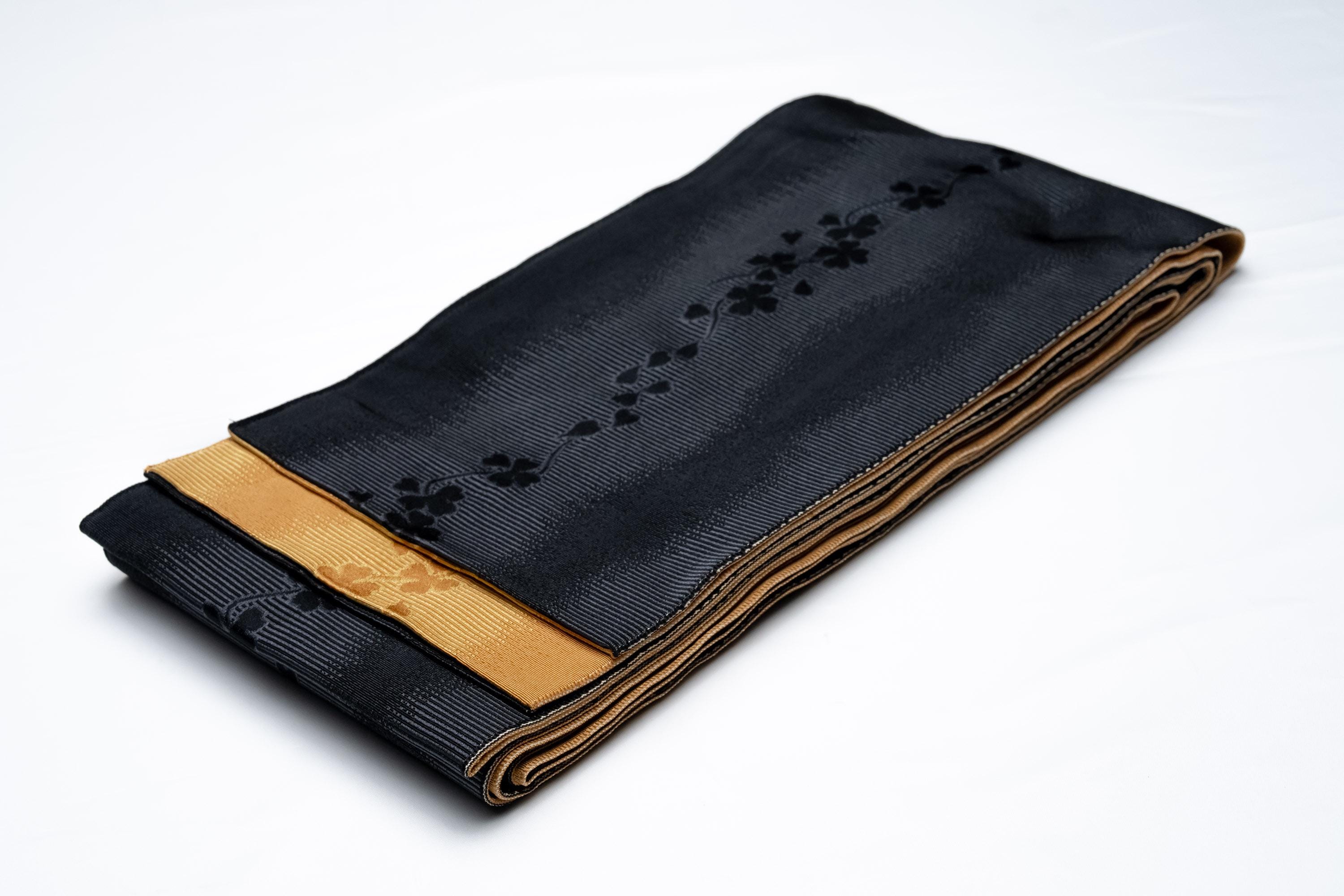 Hanhaba Obi is a lightweight Women's Kimono belt to keep Kimono's front wrapping and its closure in place. It also serves the purpose of adjusting the Kimono's length by drawing up excess fabric off the ground.