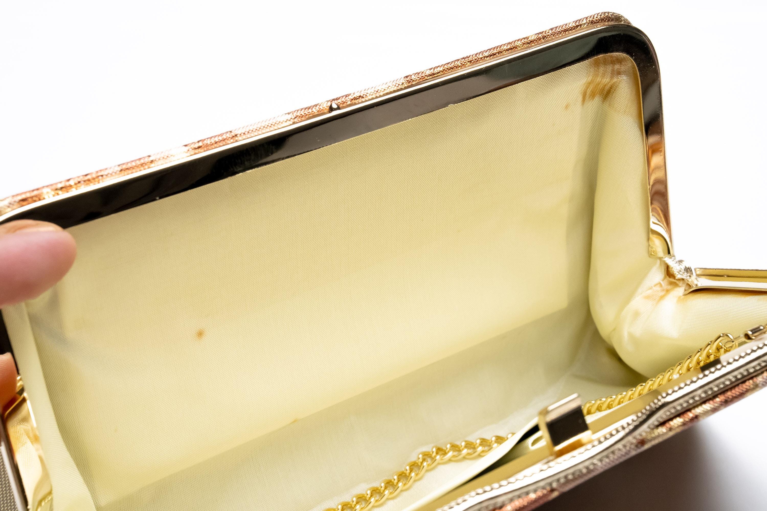 BLEMISHES: There are many natural silk stains inside the purse. Please see gallery images for details.