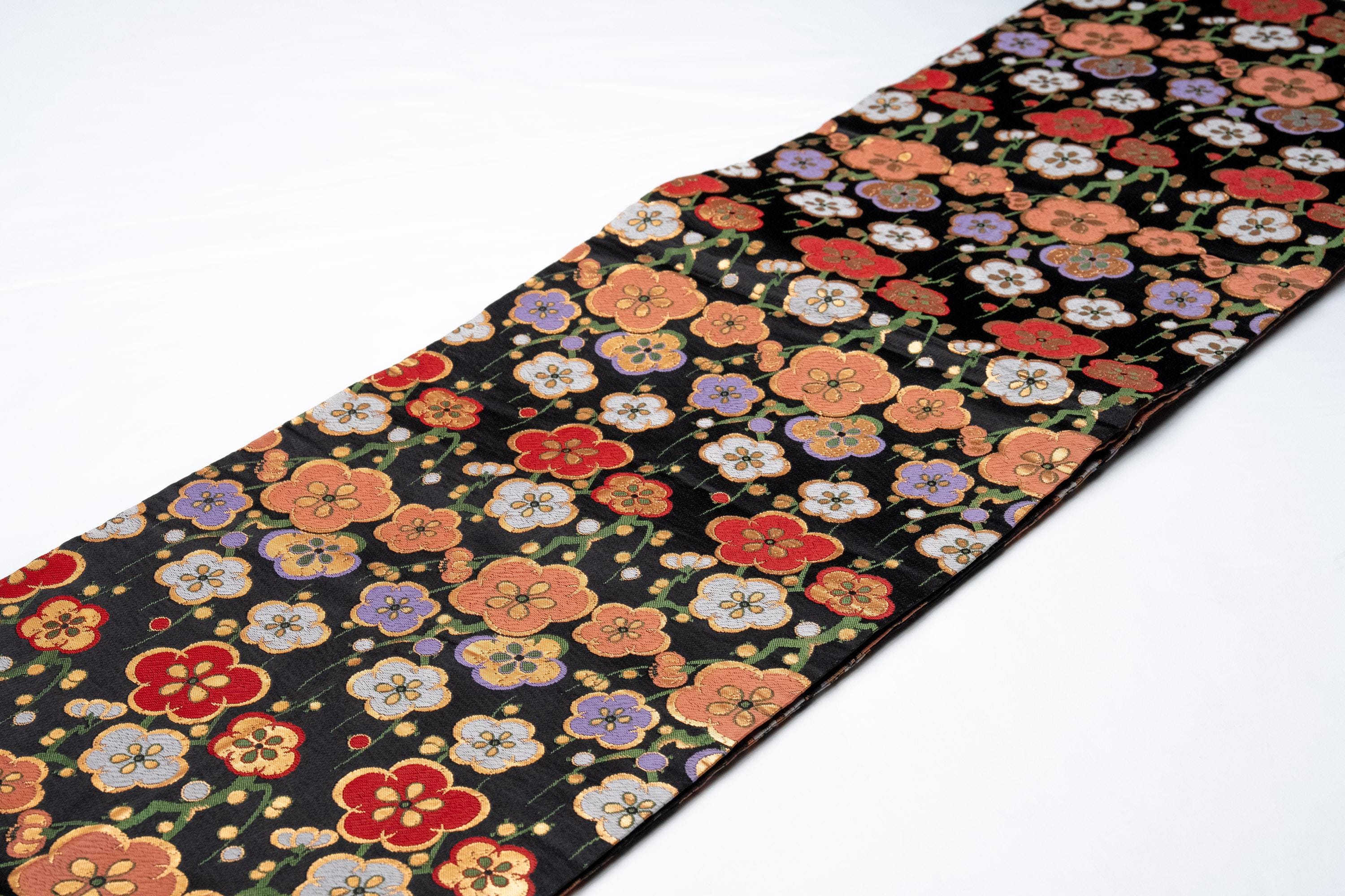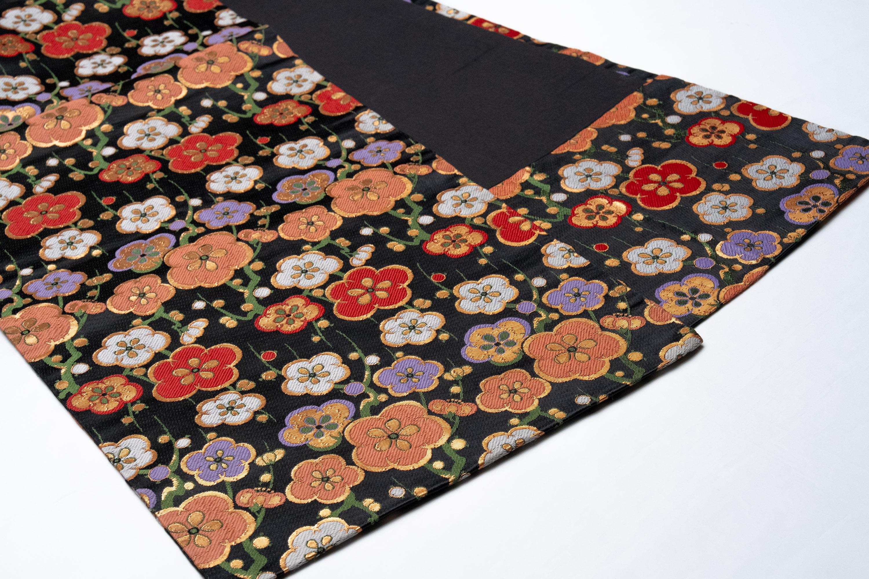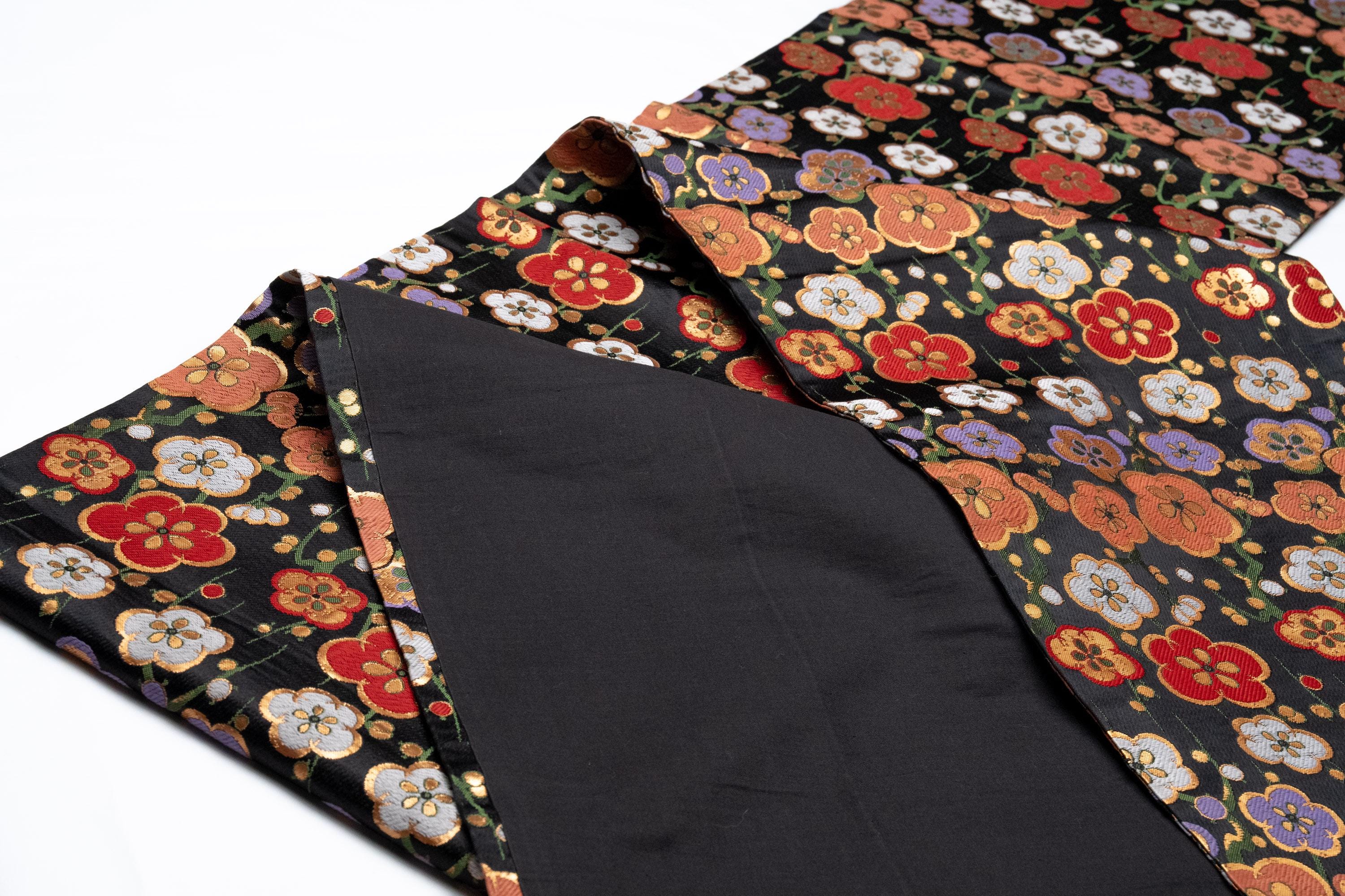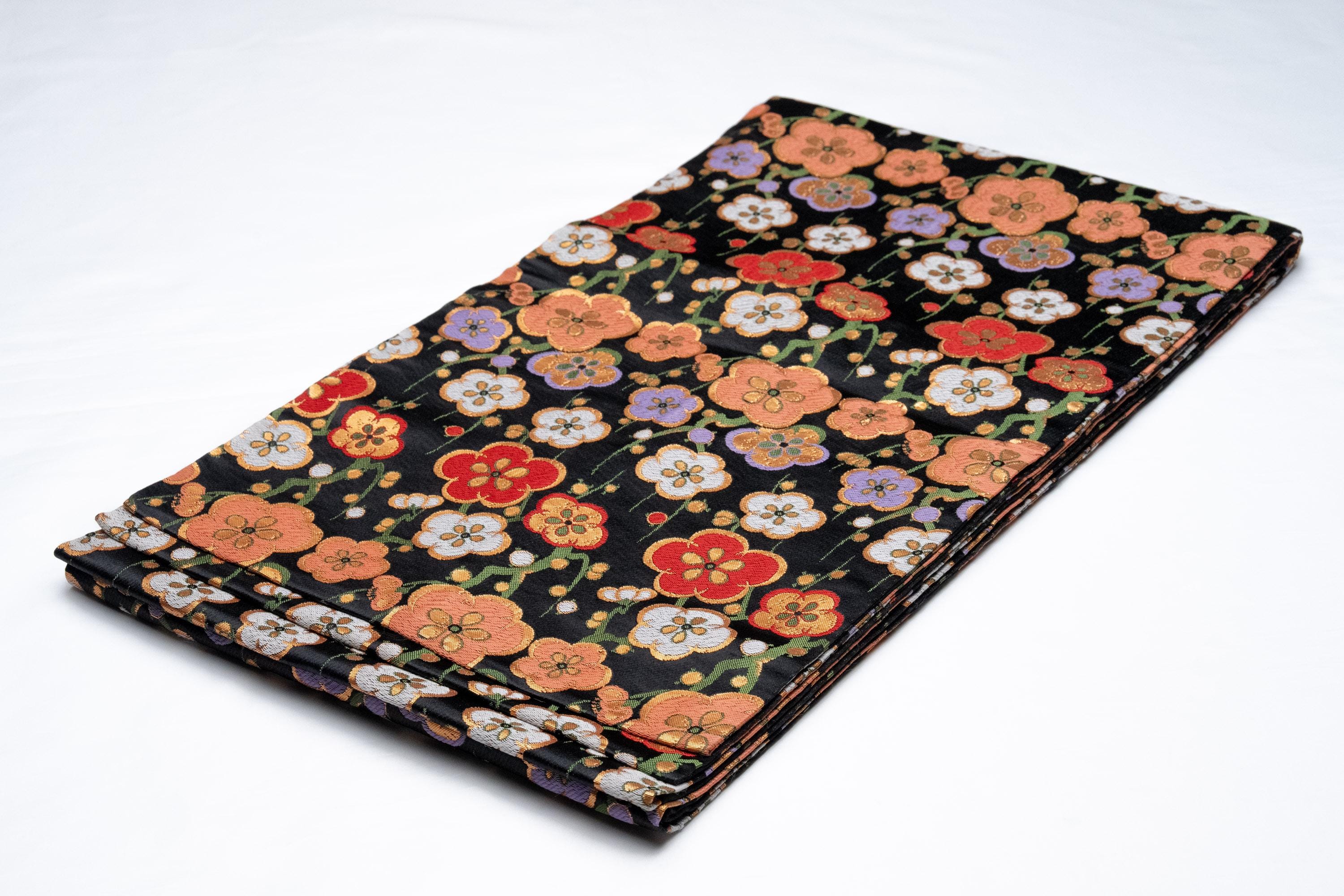 Fukuro Obi is a full-size sash belt that wraps around the torso in women's formal Kimono wearing. It is wider, longer and heavier than other informal Obis and serves the purpose of keeping the Kimono front closed securely, drawing up excess fabric to adjust the length of Kimono, and decorative expressions.