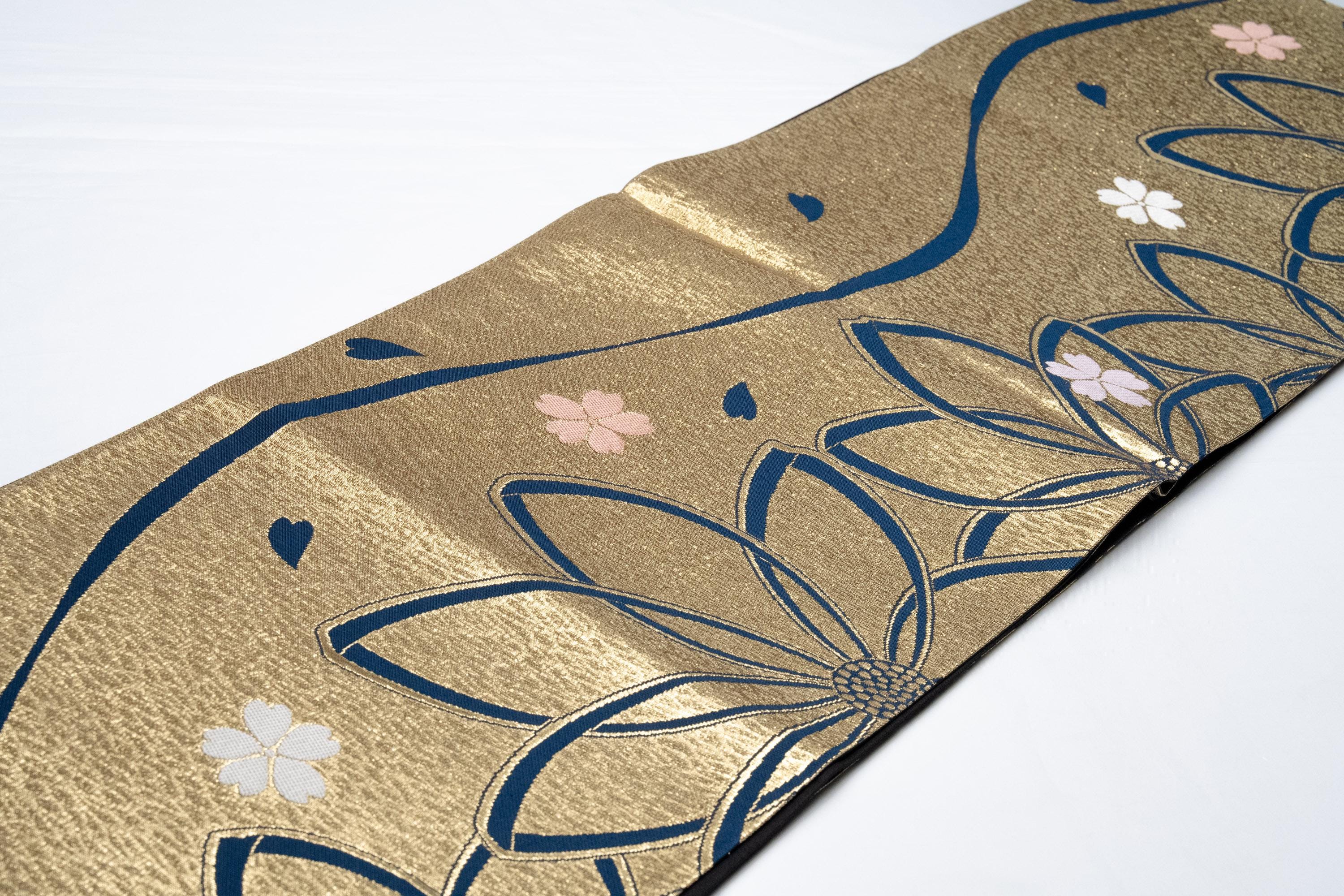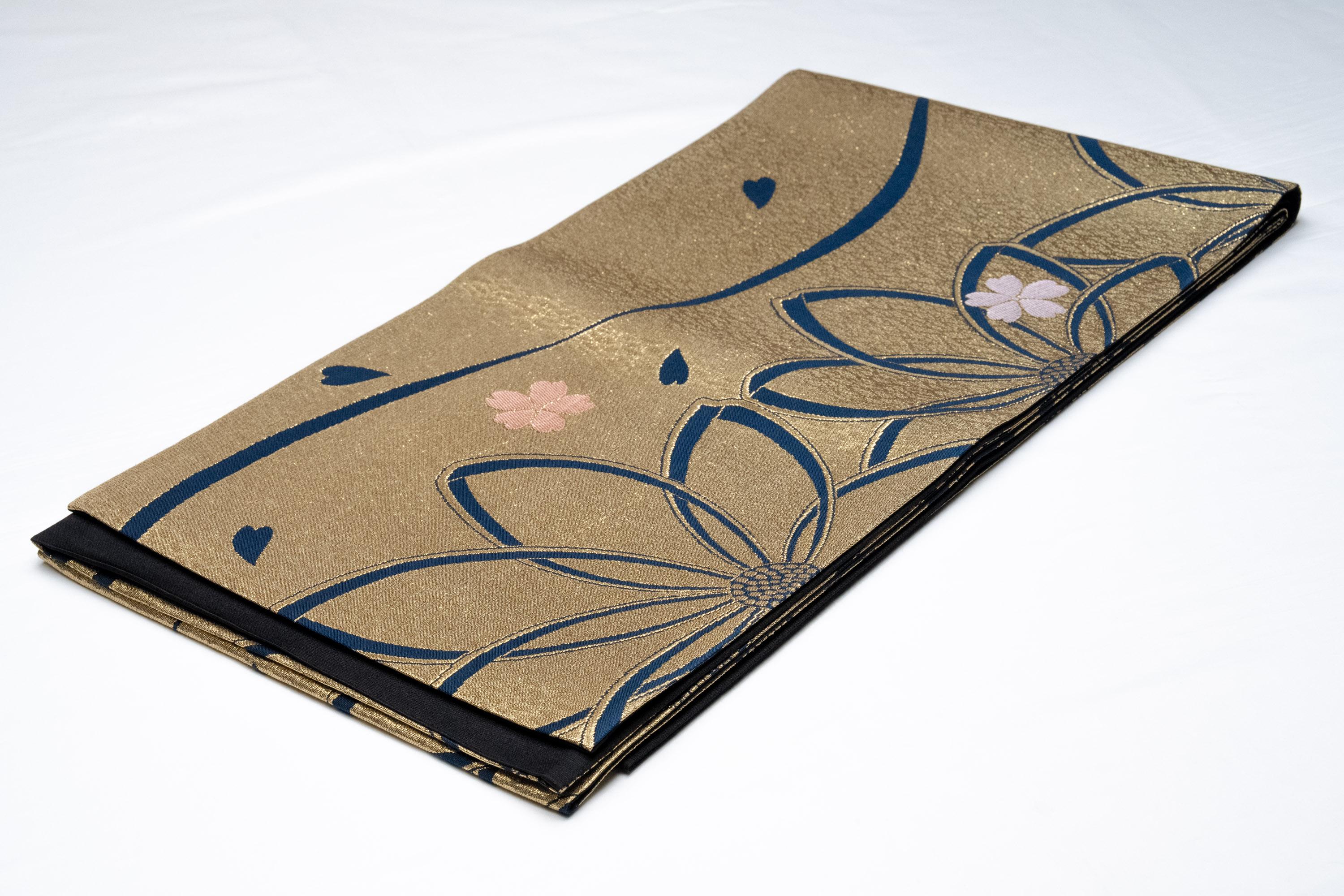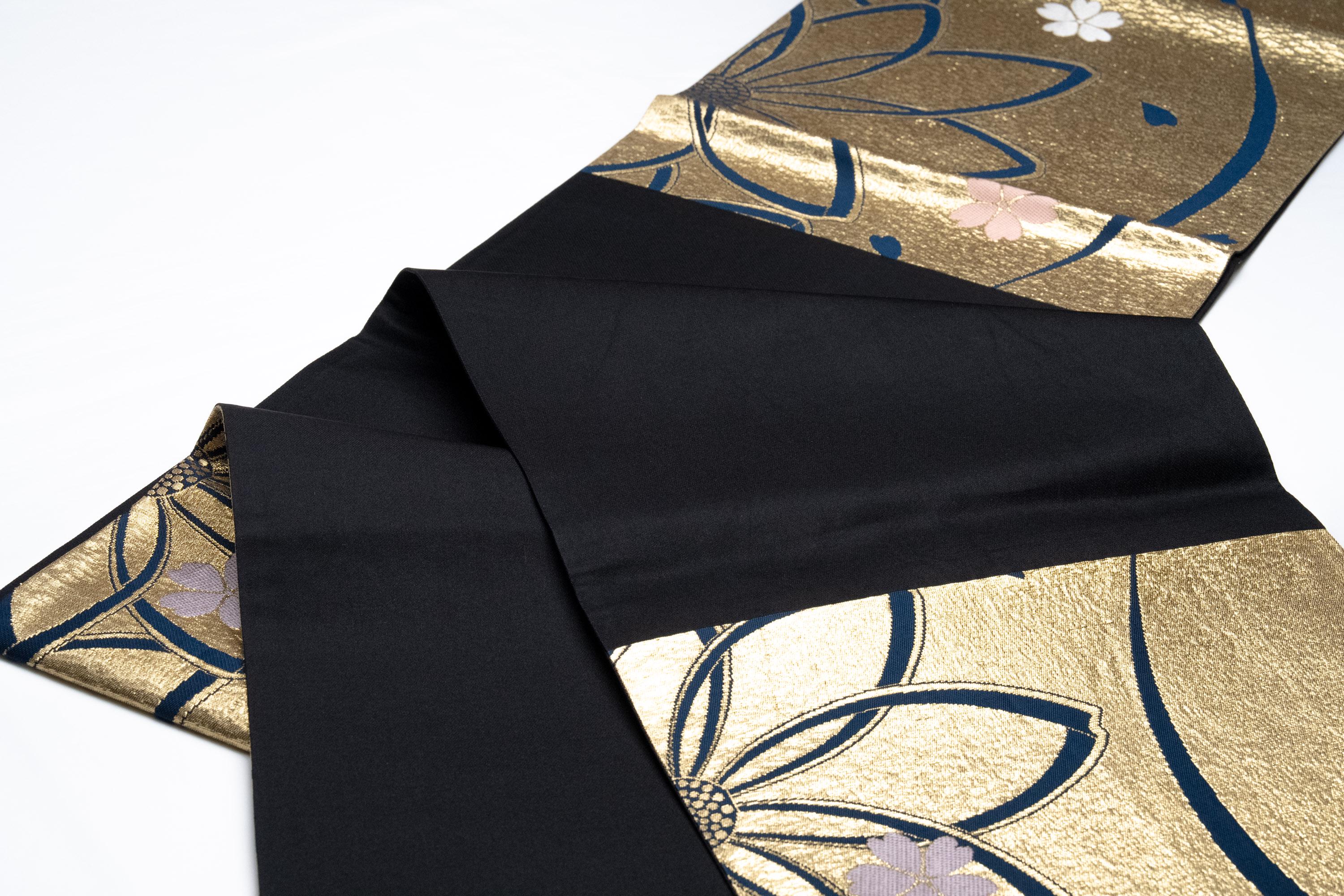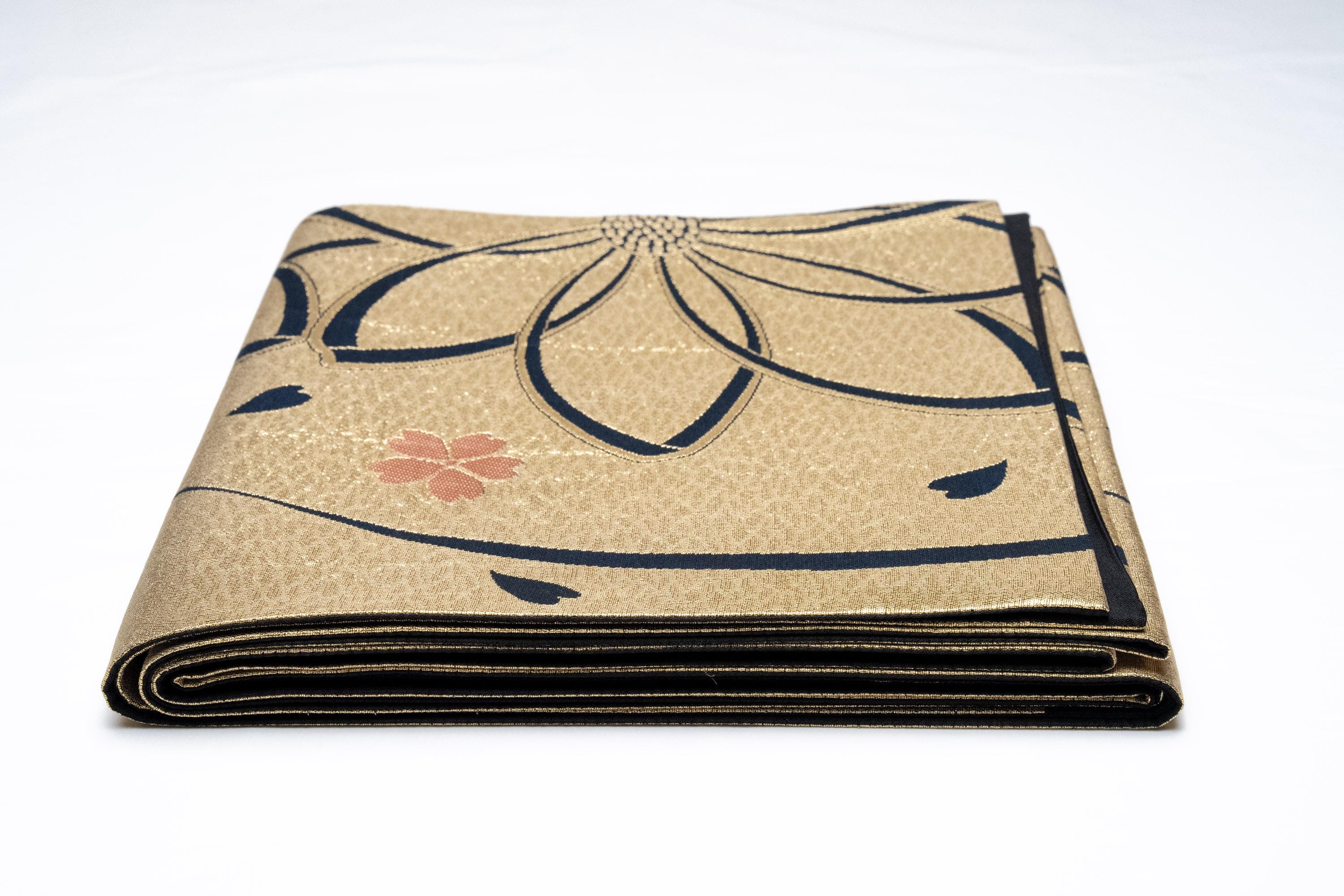 Fukuro Obi is a full-size sash belt that wraps around the torso in women's formal Kimono wearing. It is wider, longer and heavier than other informal Obis and serves the purpose of keeping the Kimono front closed securely, drawing up excess fabric to adjust the length of Kimono, and decorative expressions.