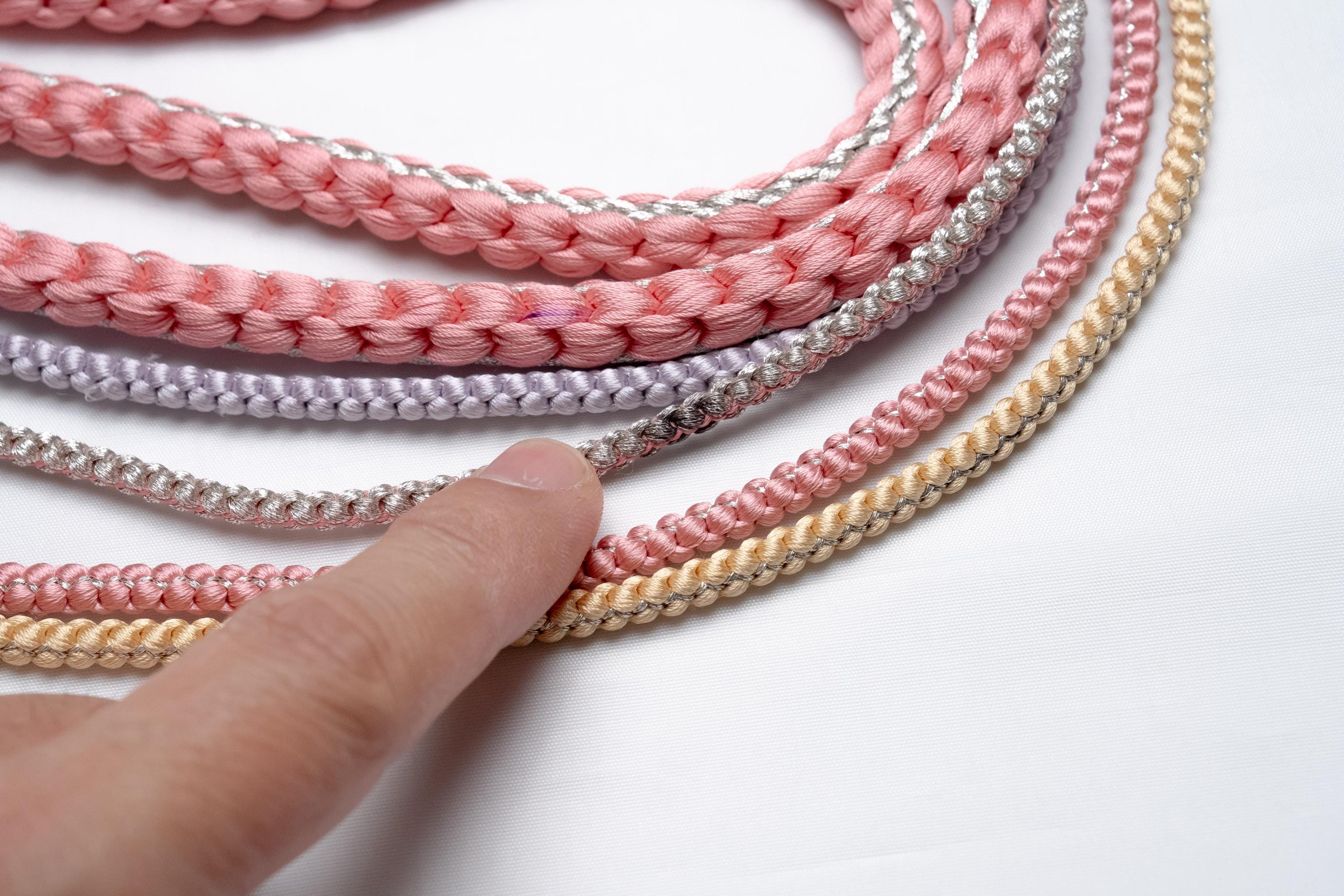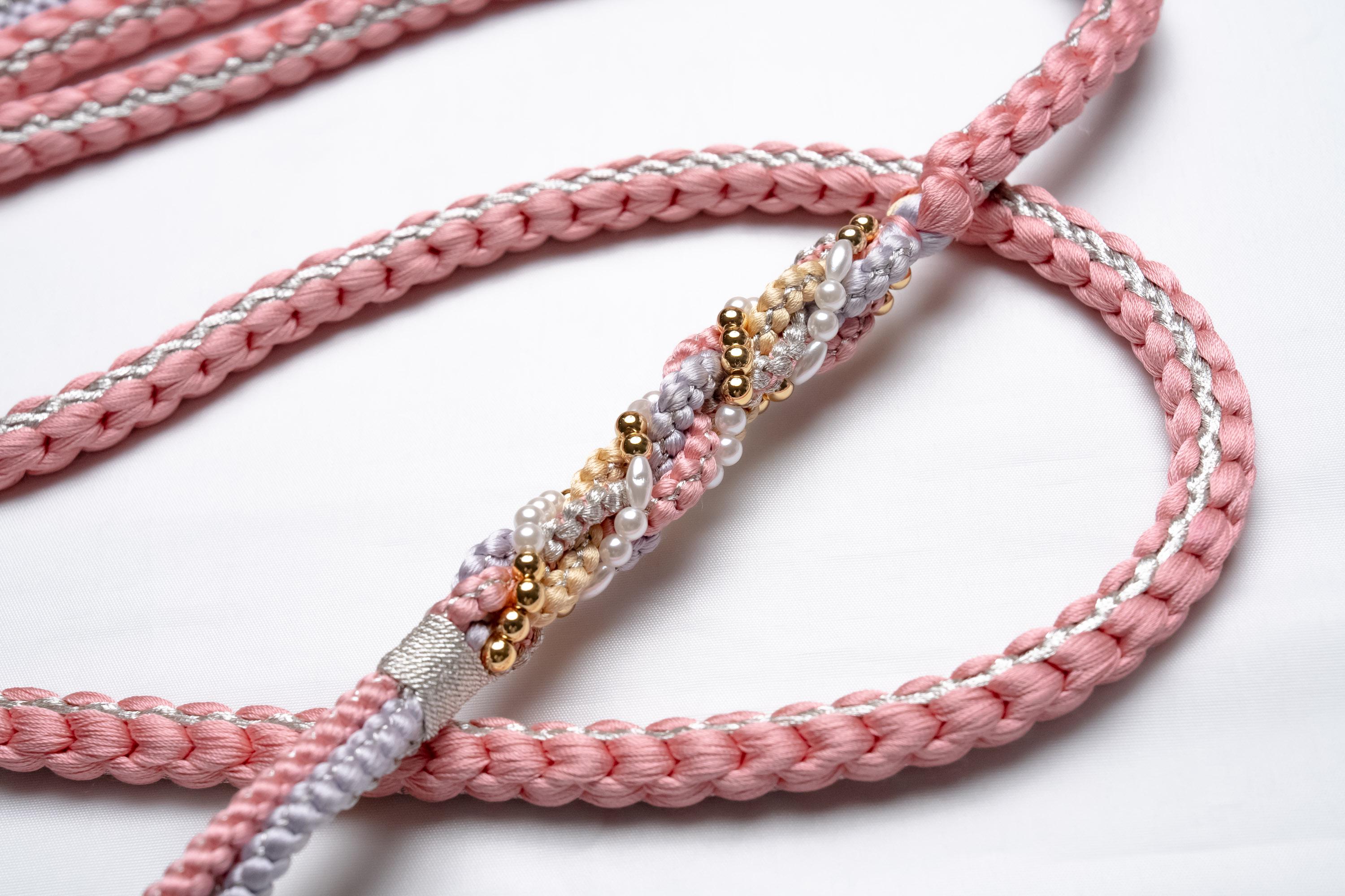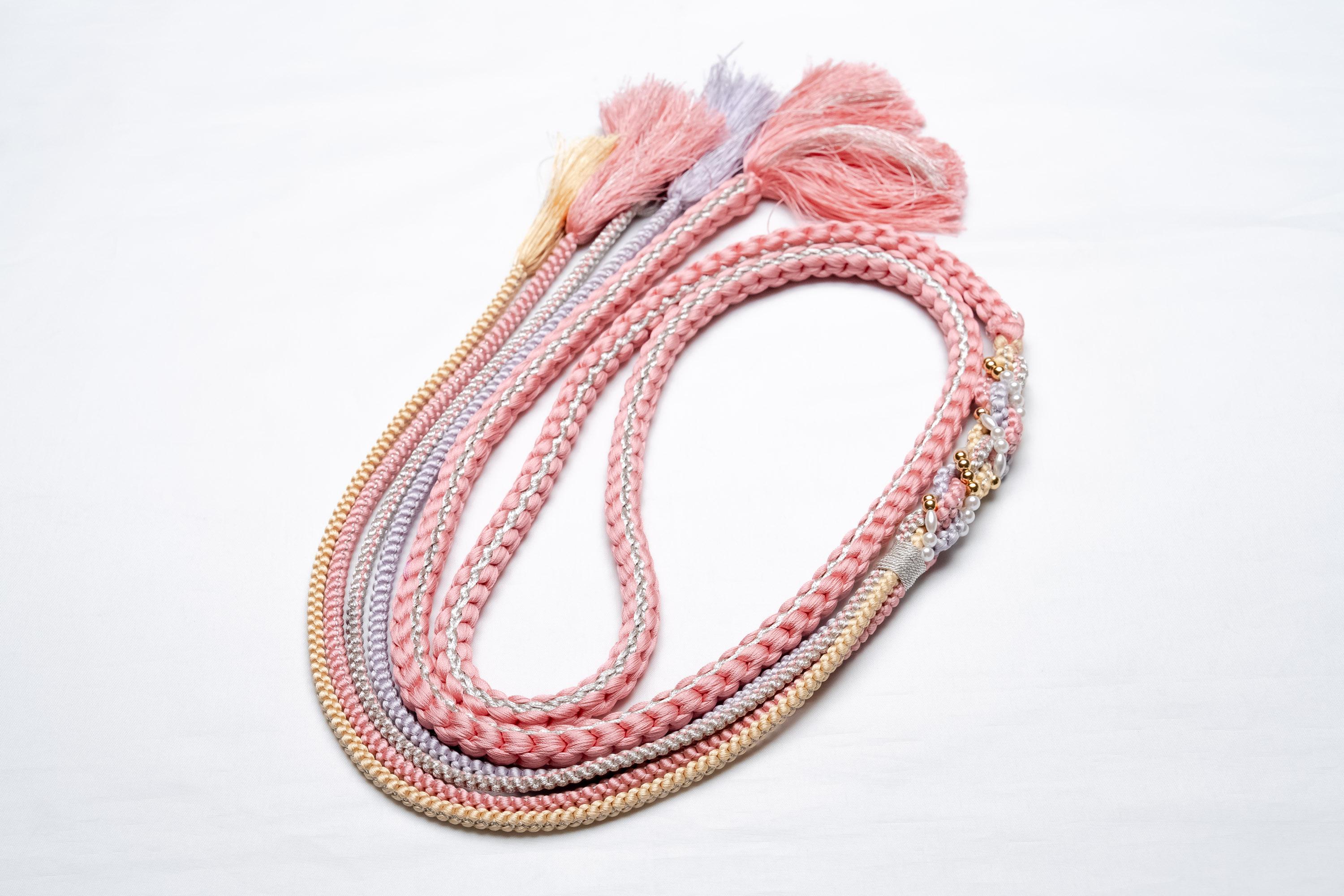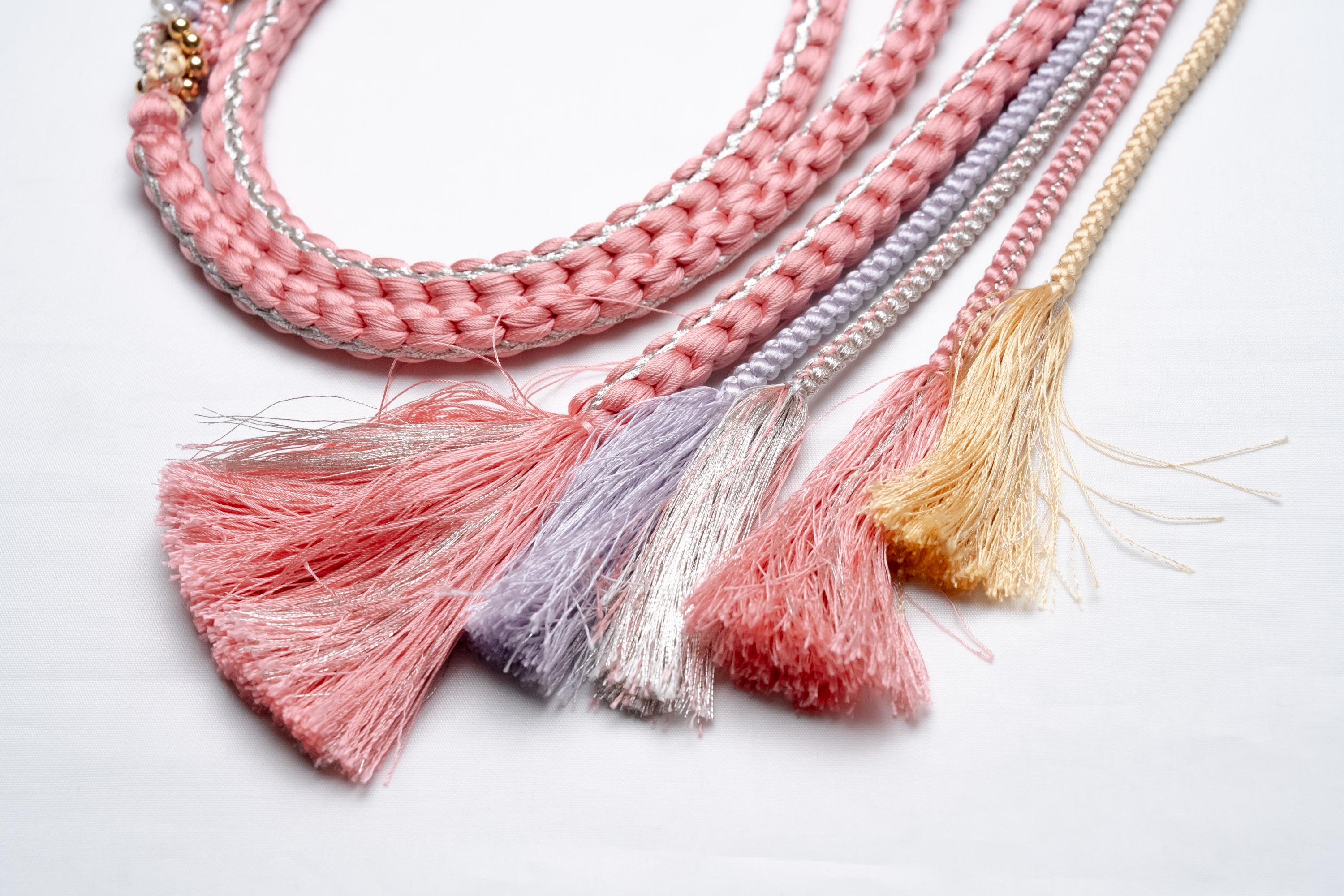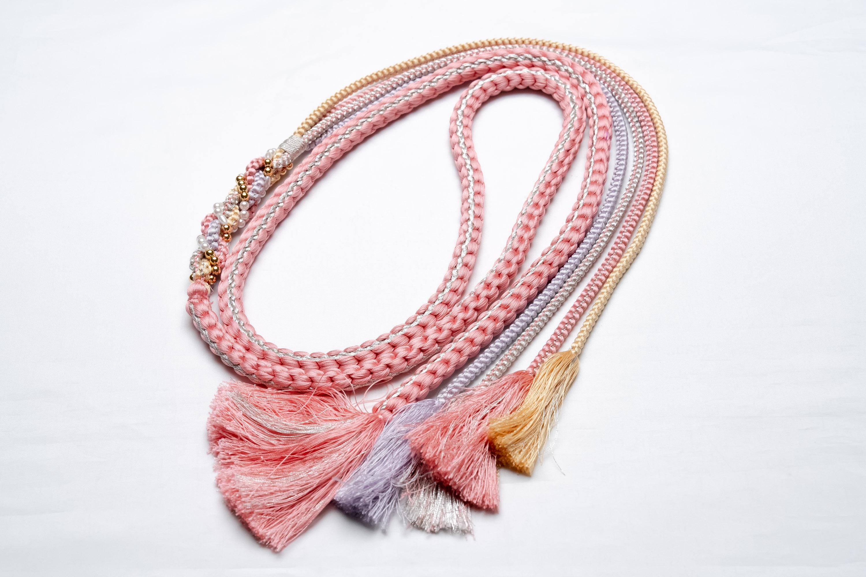 Obijime is one of the essentials in wearing women's Kimonos. Obijime is a fastener string used to hold Kimono Obi in place by tying over it. It's also called Obijime cord.