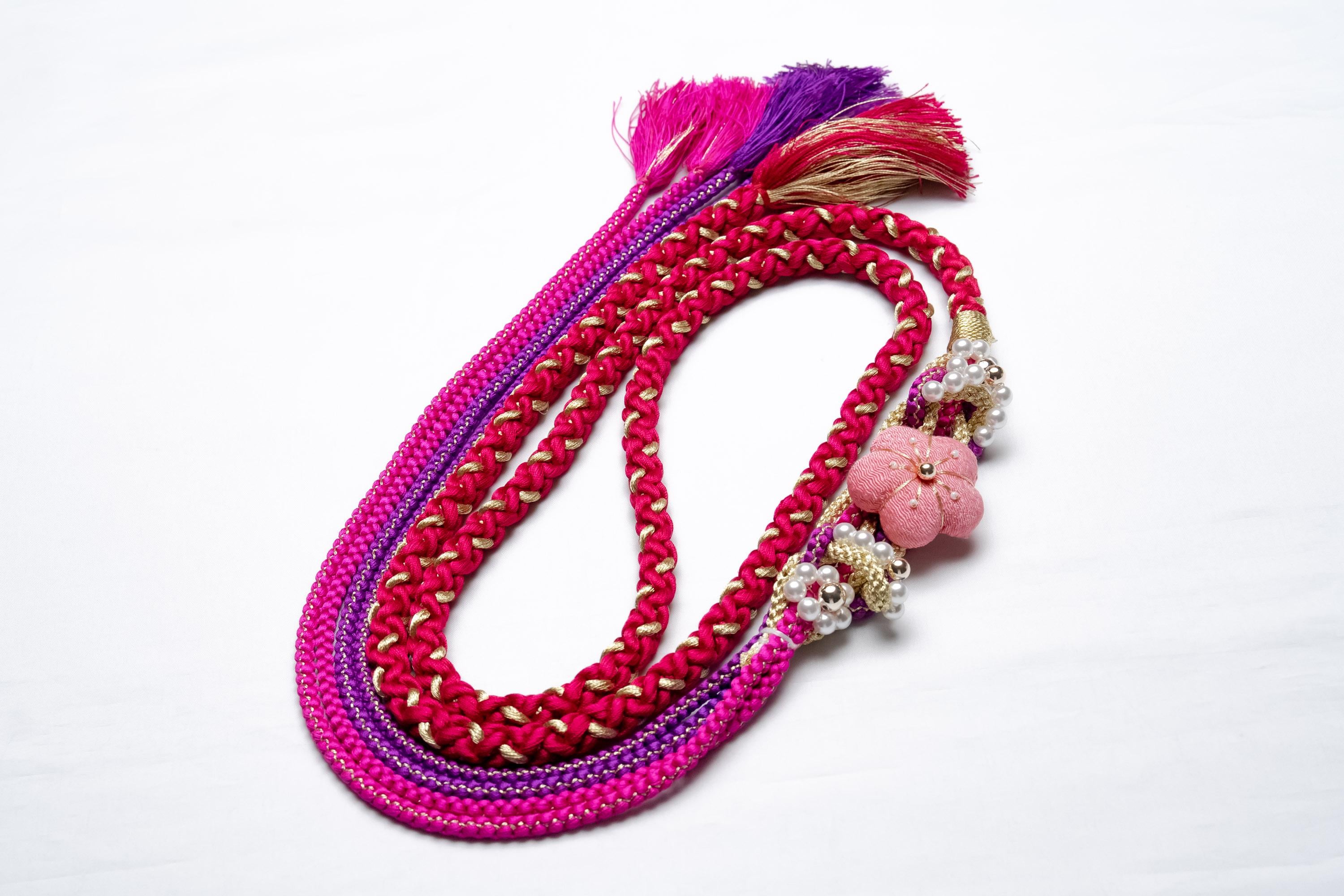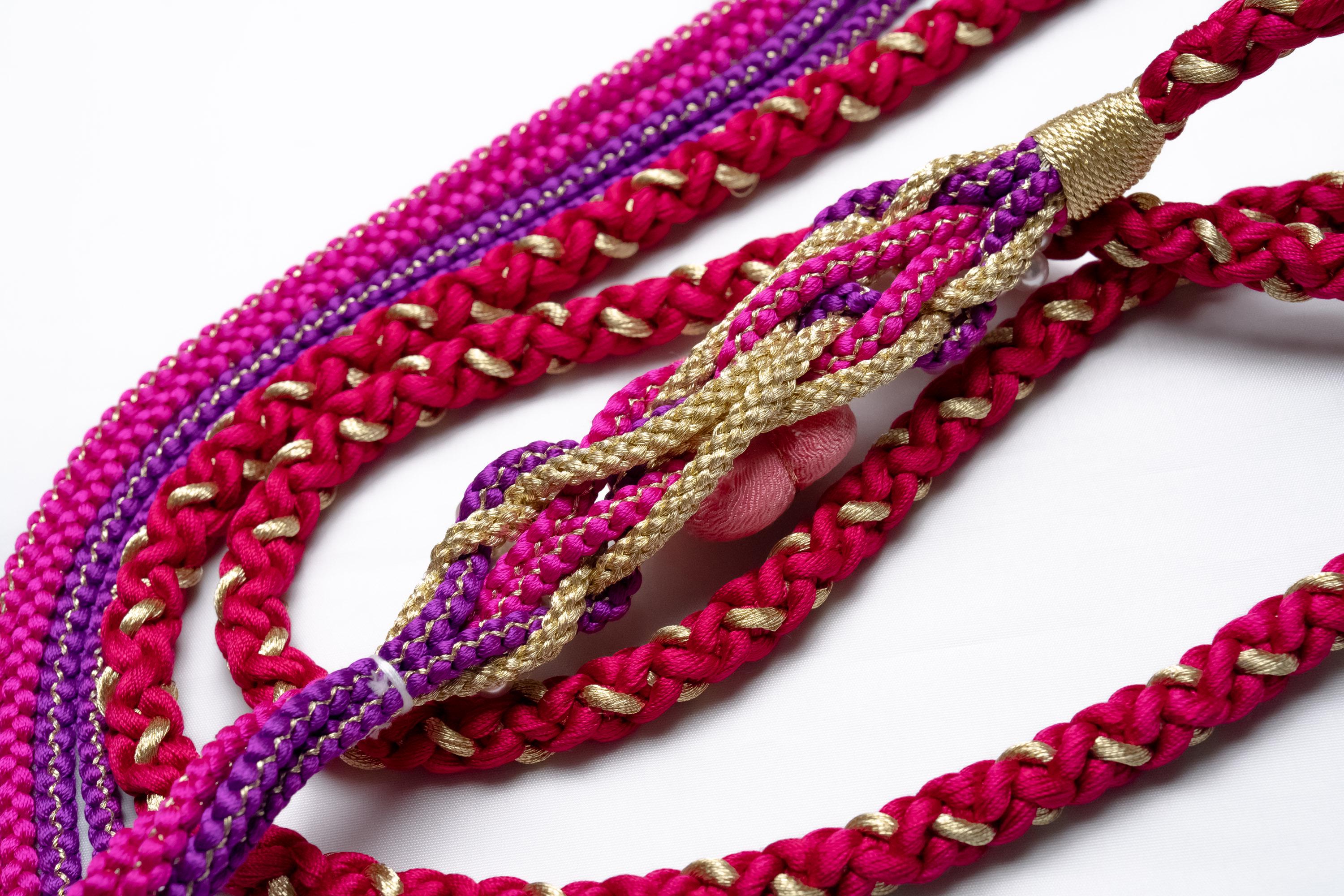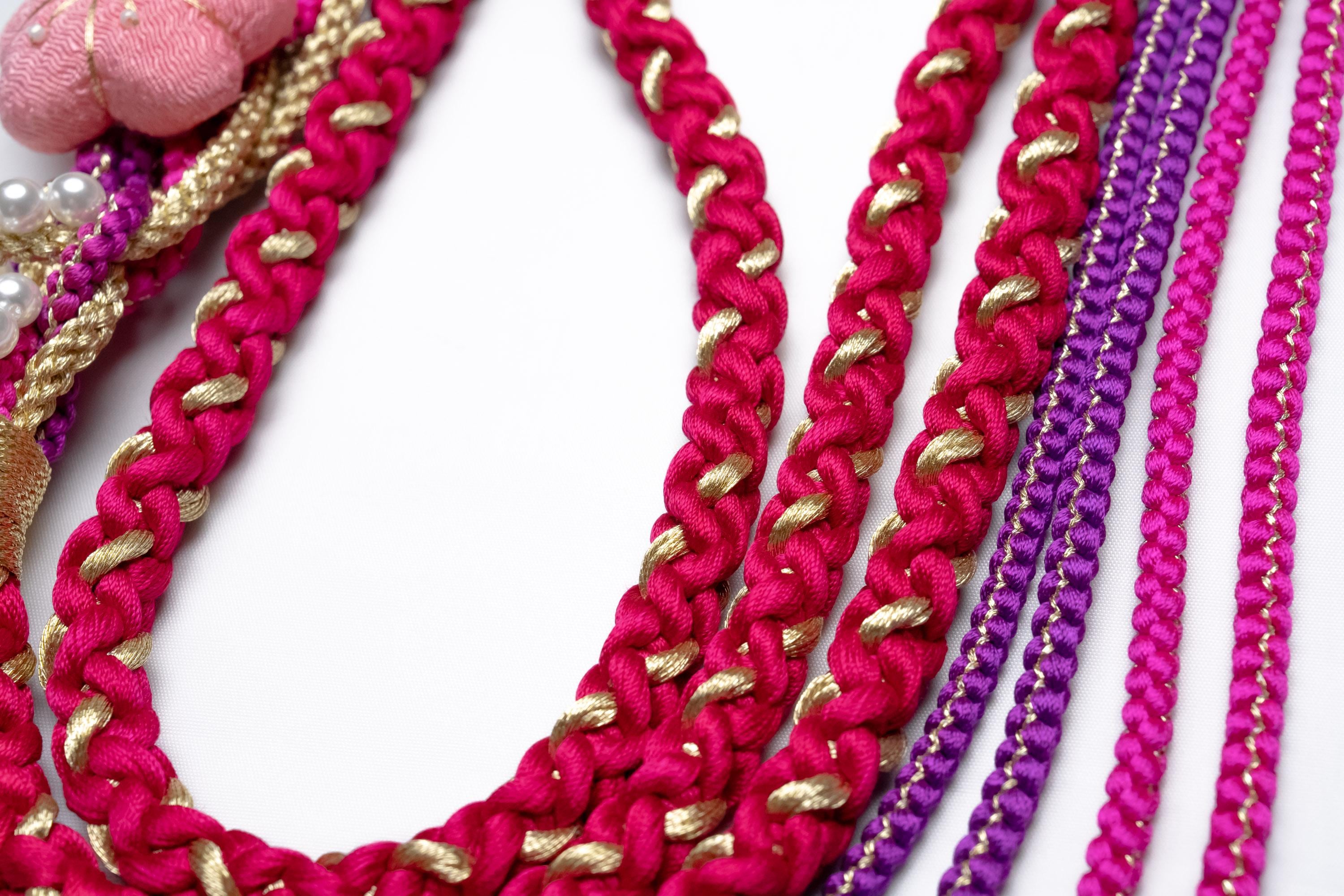 Obijime is one of the essentials in wearing women's Kimonos. Obijime is a fastener string used to hold Kimono Obi in place by tying over it. It's also called Obijime cord.