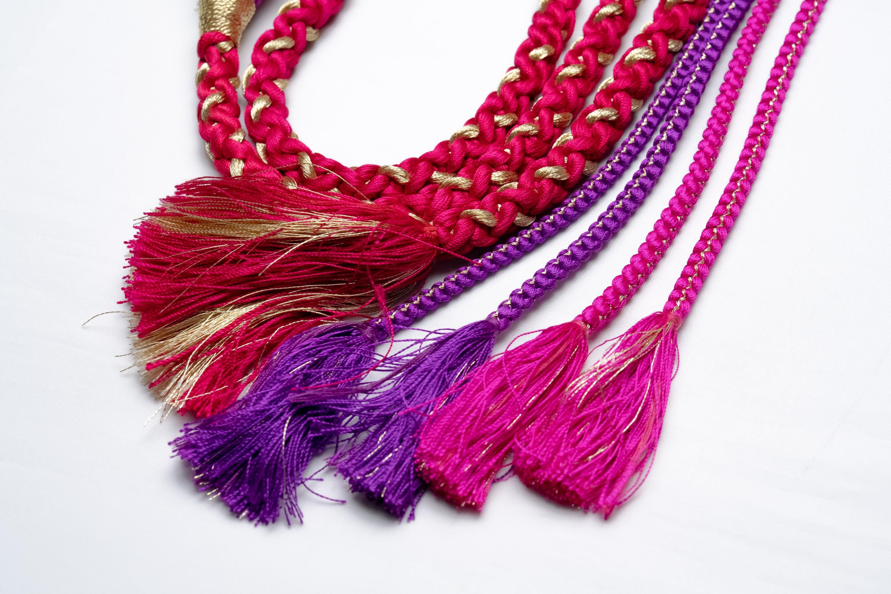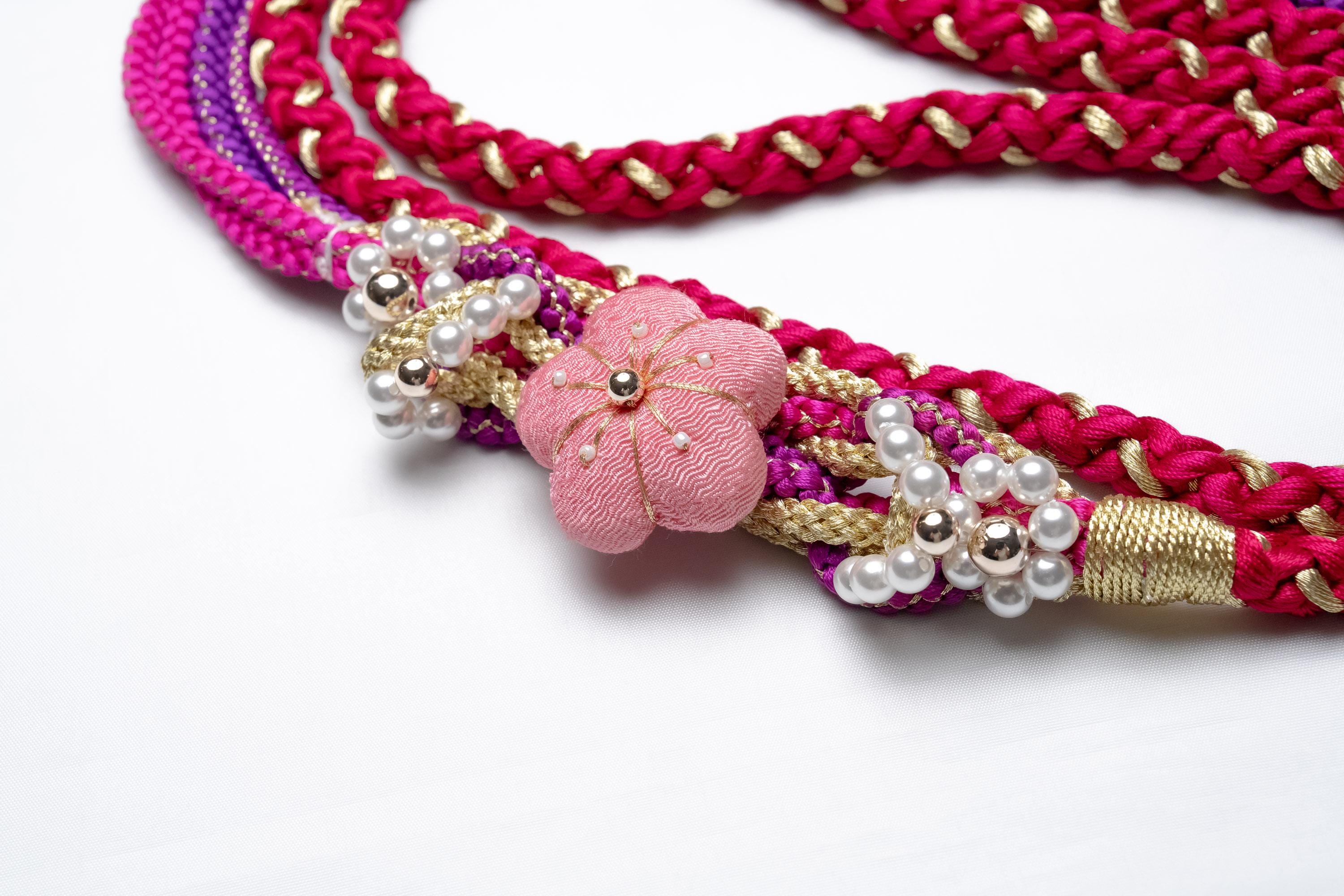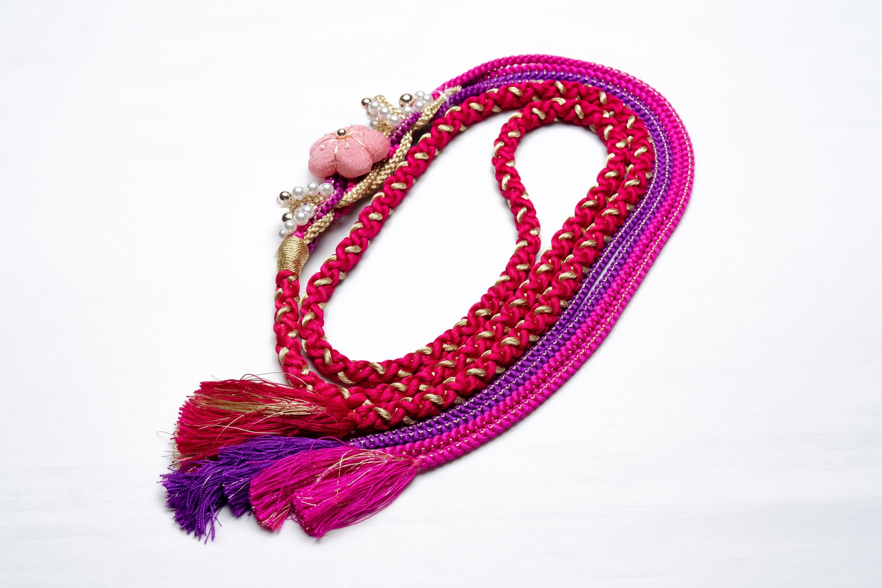 Obijime is one of the essentials in wearing women's Kimonos. Obijime is a fastener string used to hold Kimono Obi in place by tying over it. It's also called Obijime cord.