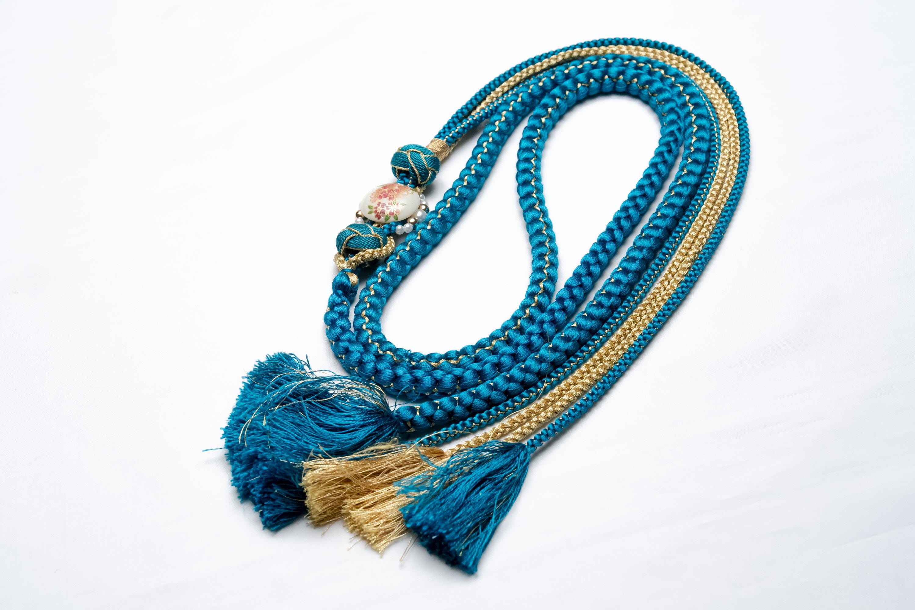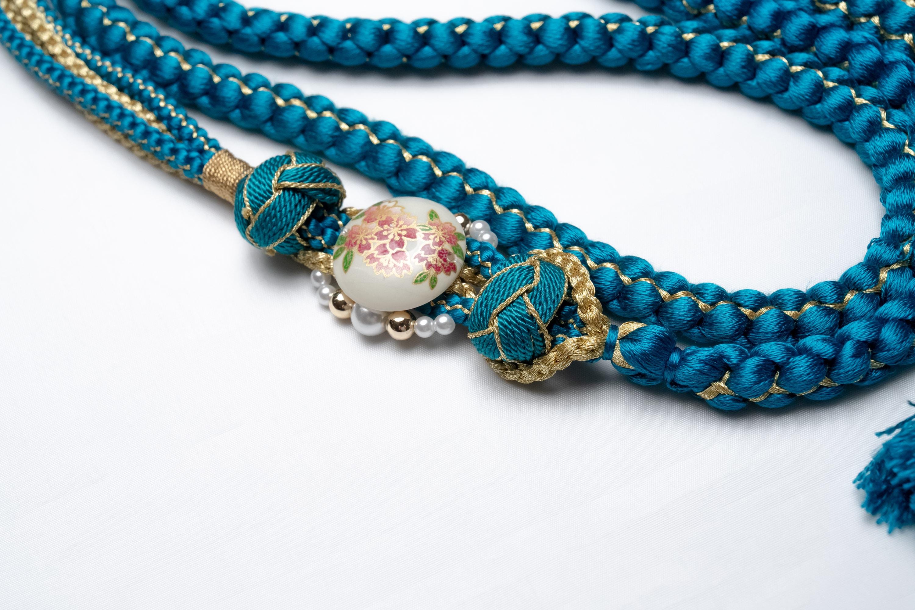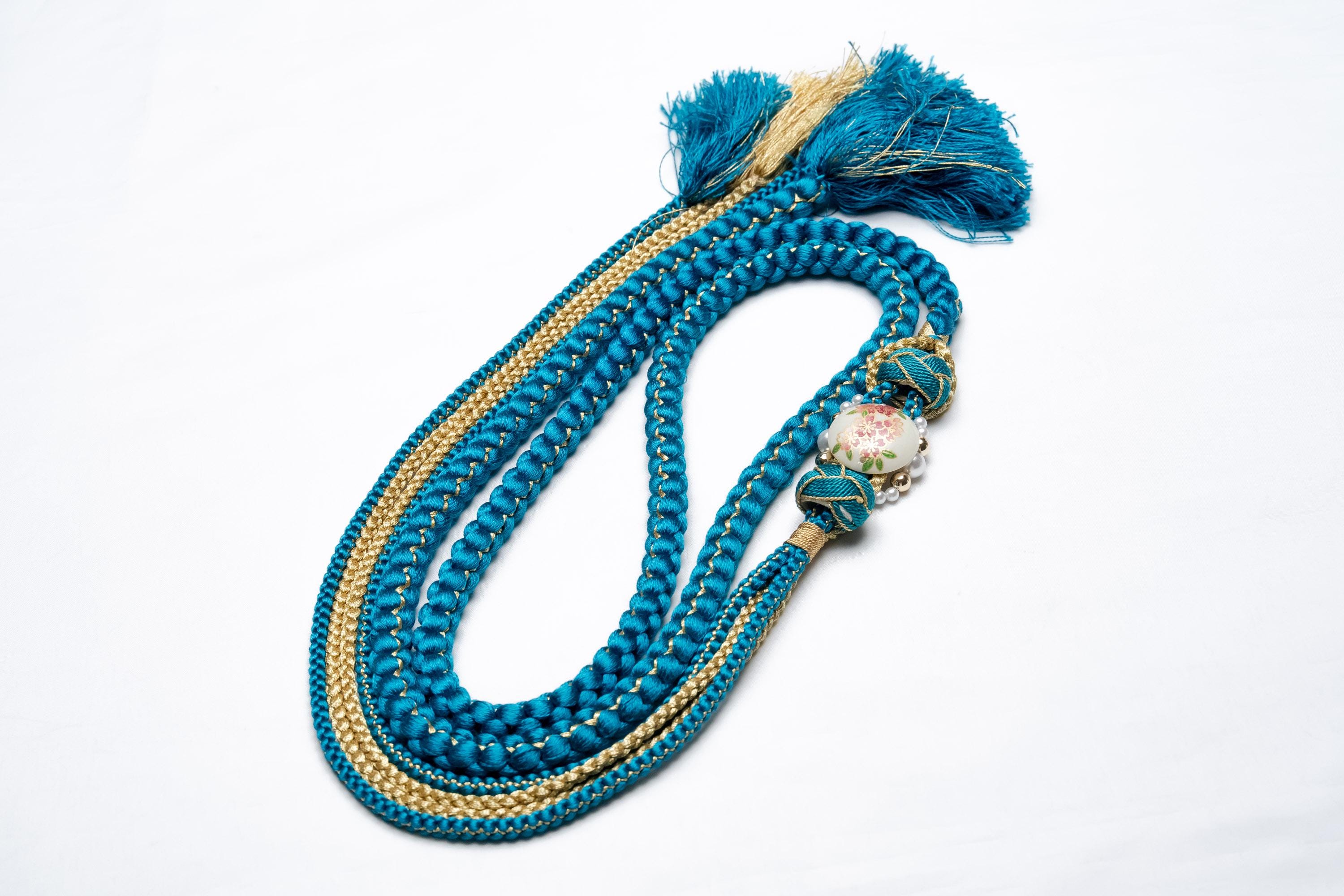 Obijime is one of the essentials in wearing women's Kimonos. Obijime is a fastener string used to hold Kimono Obi in place by tying over it. It's also called Obijime cord.