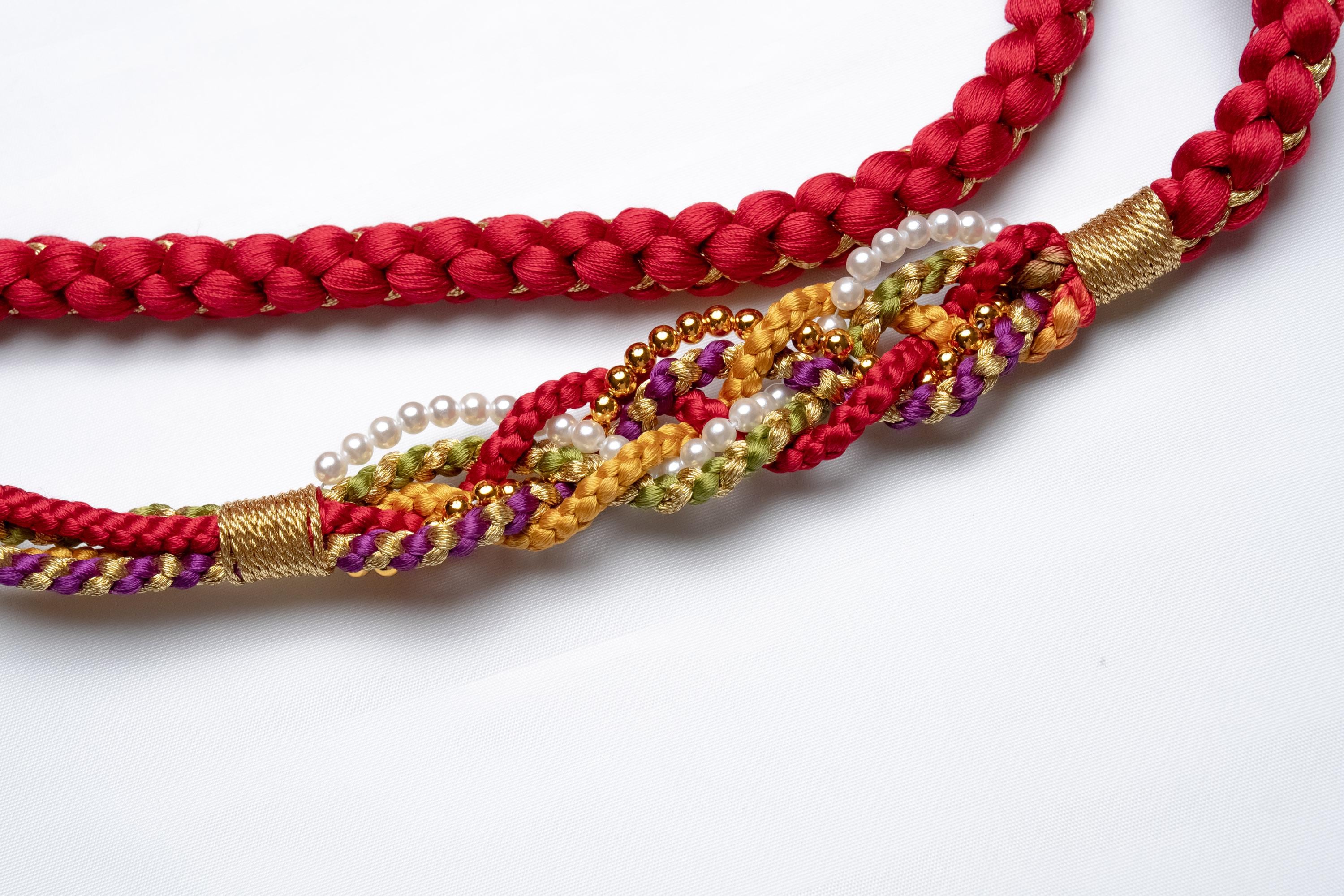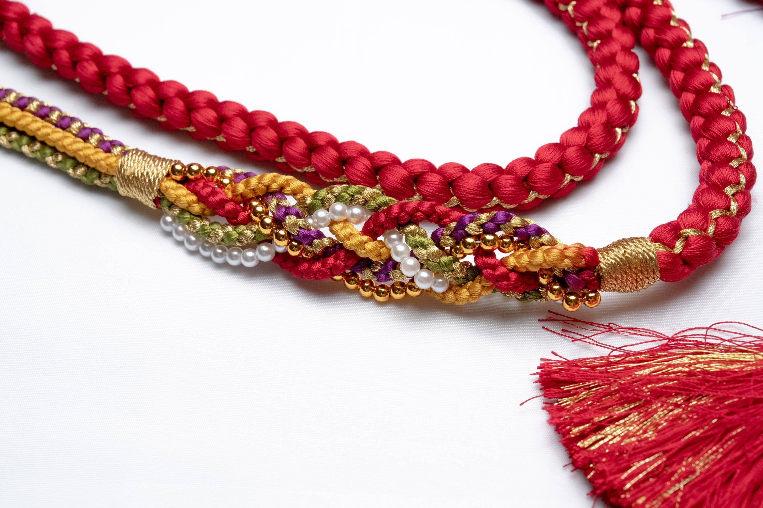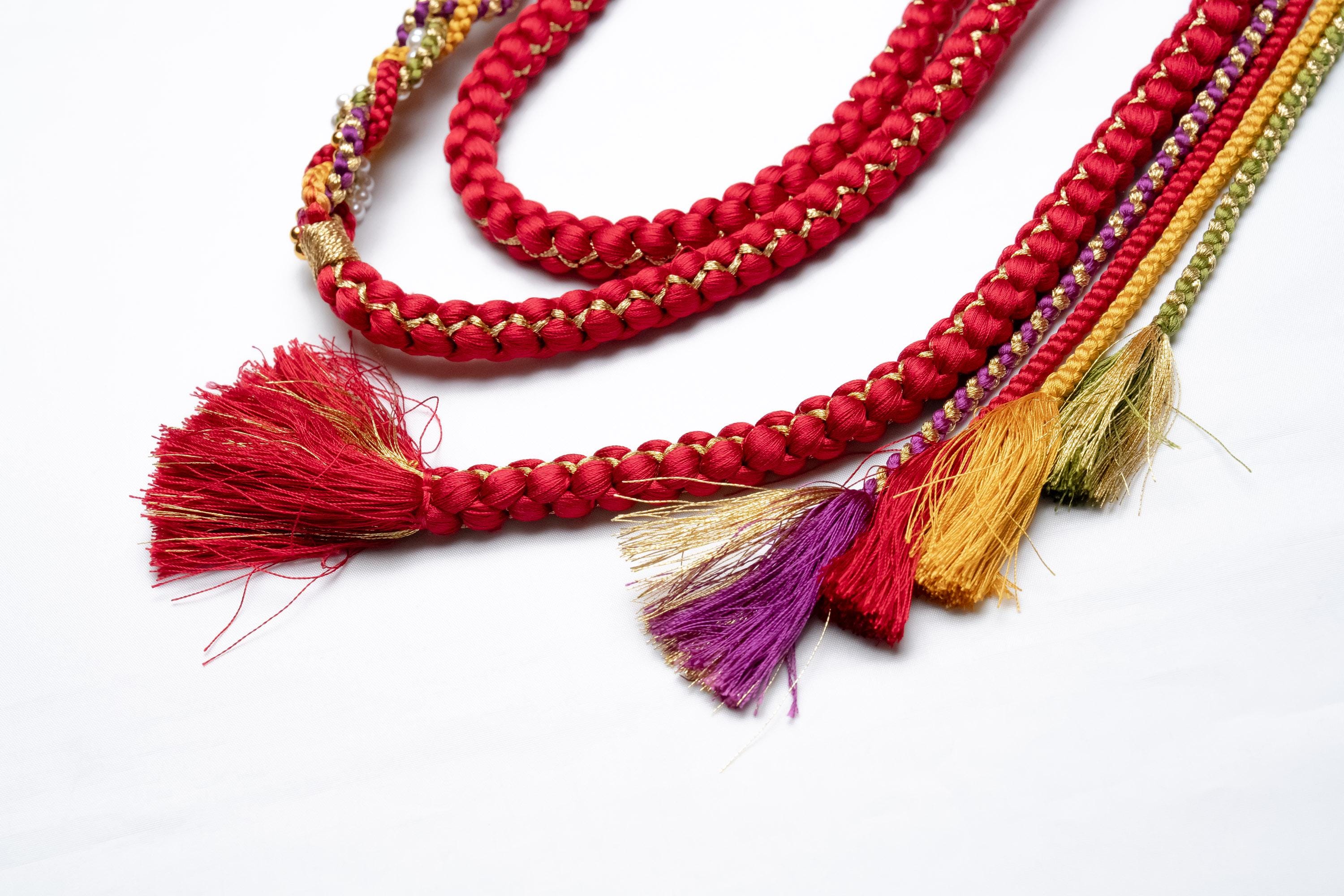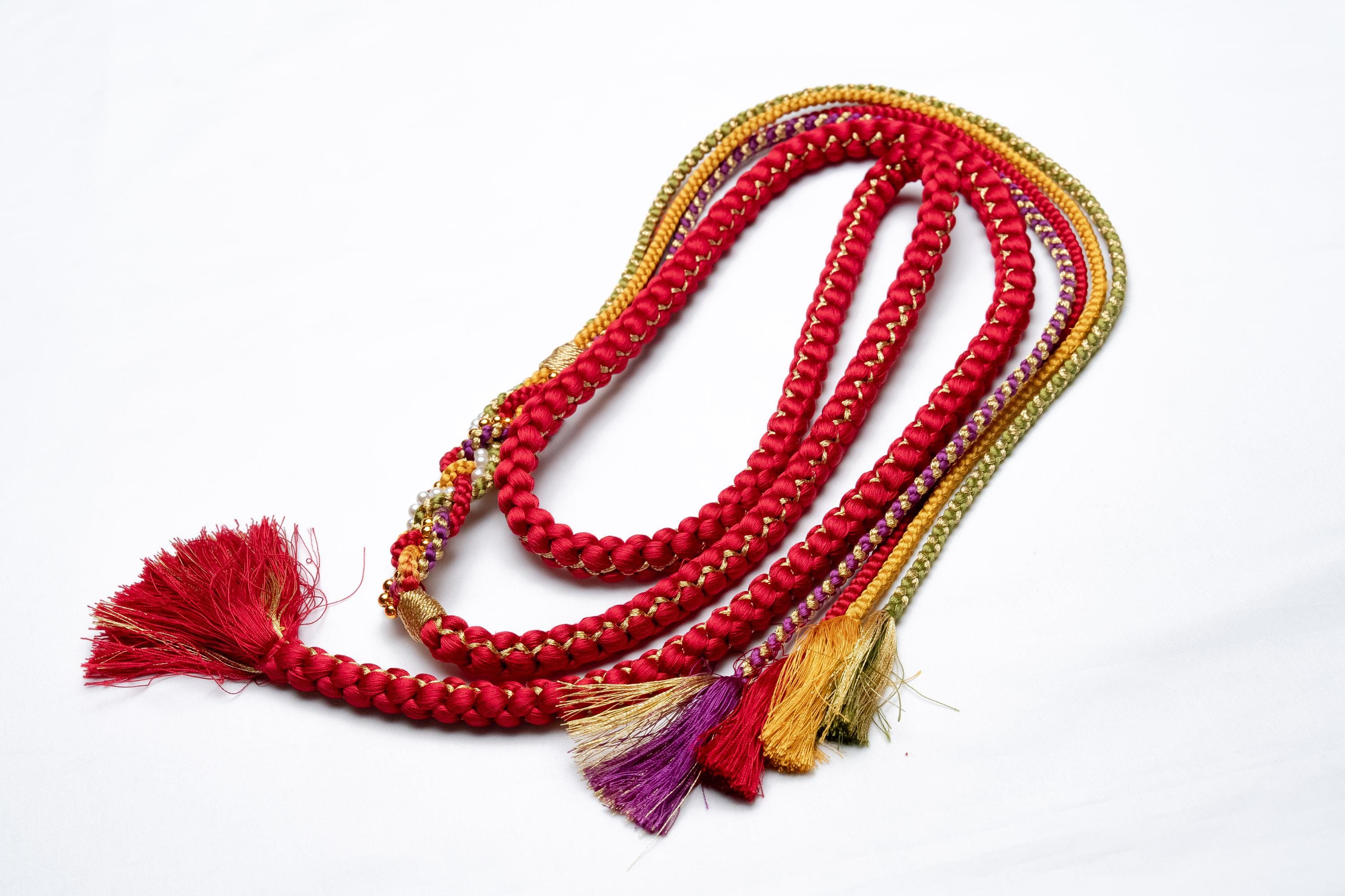 Obijime is one of the essentials in wearing women's Kimonos. Obijime is a fastener string used to hold Kimono Obi in place by tying over it. It's also called Obijime cord.