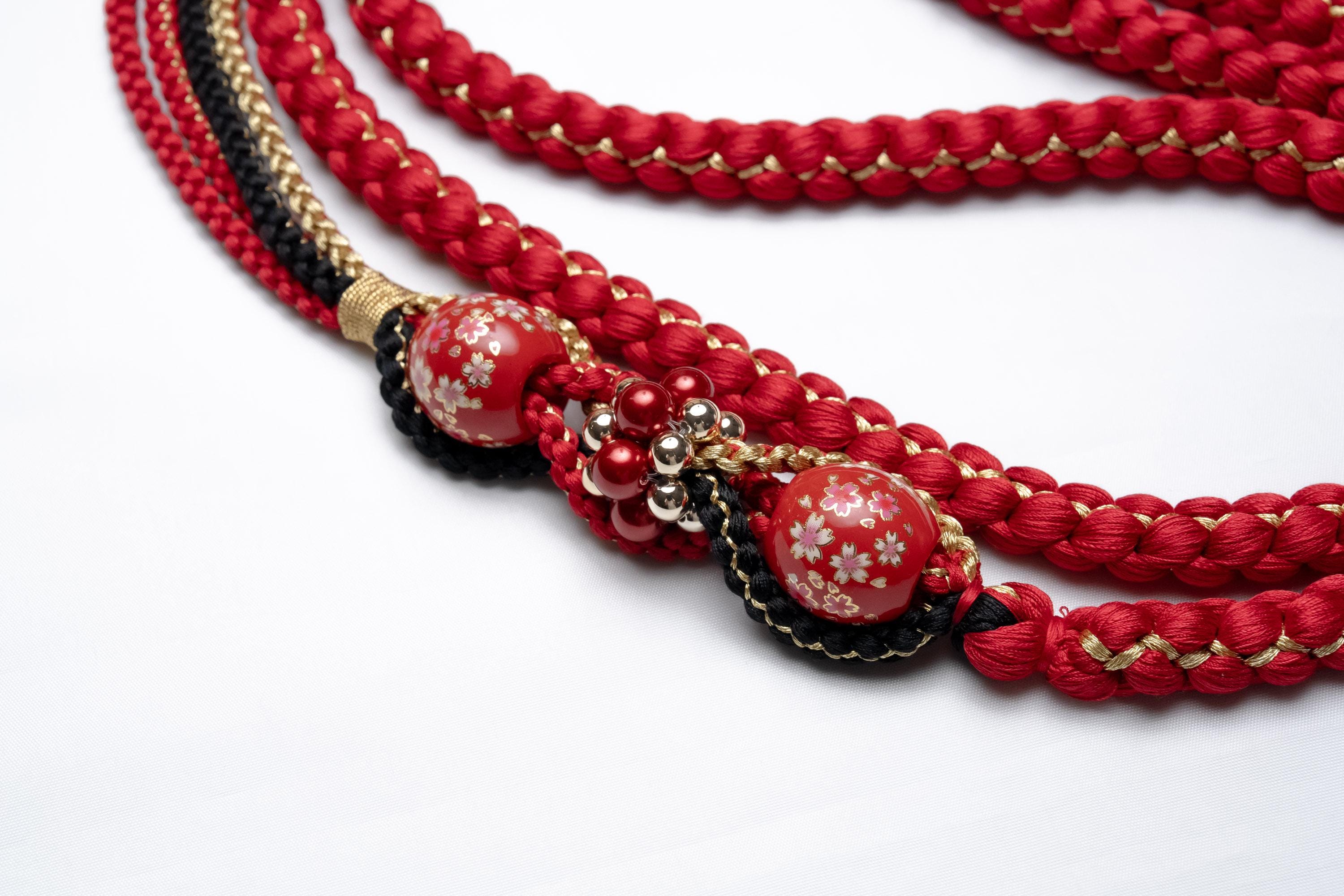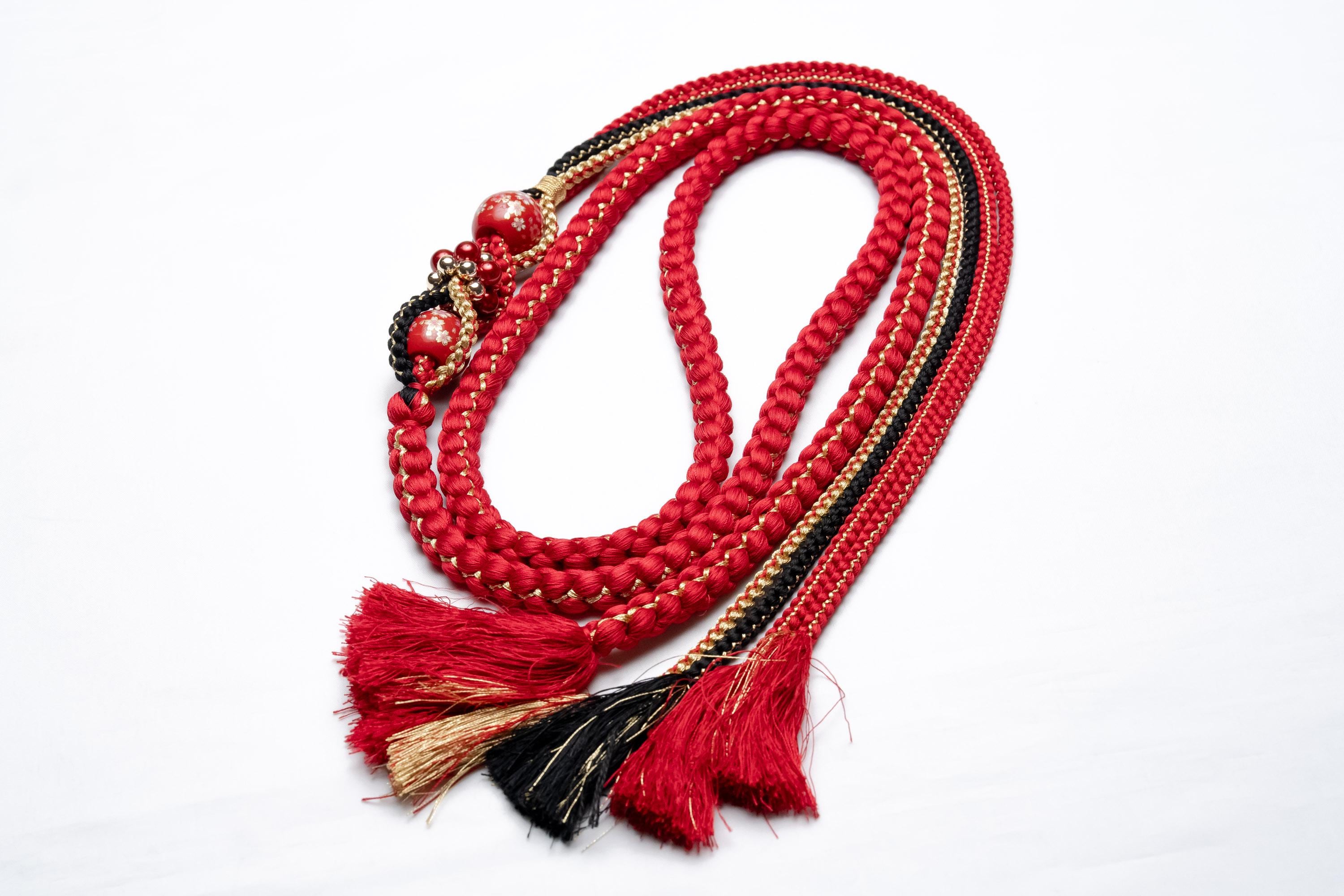 Obijime is one of the essentials in wearing women's Kimonos. Obijime is a fastener string used to hold Kimono Obi in place by tying over it. It's also called Obijime cord.