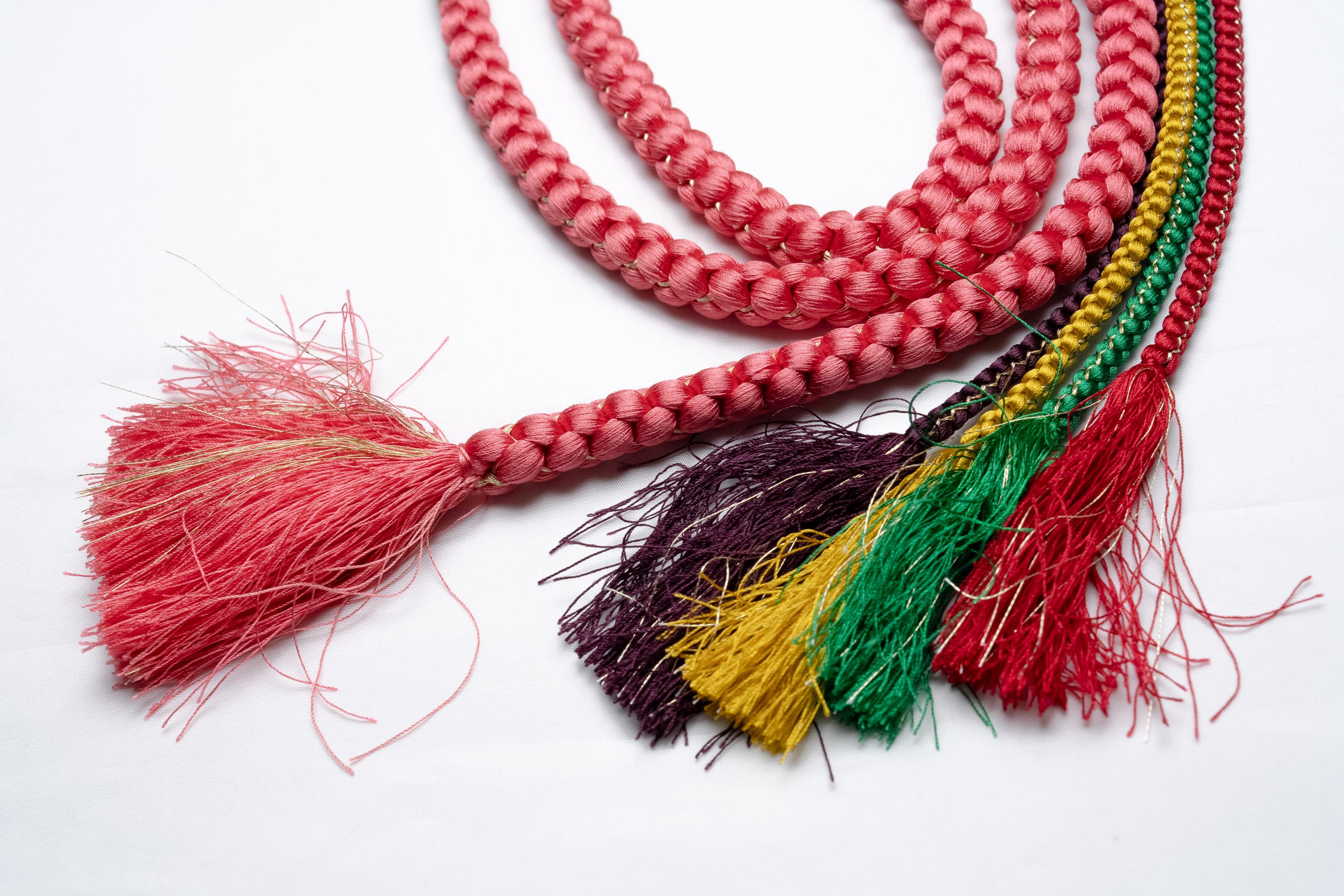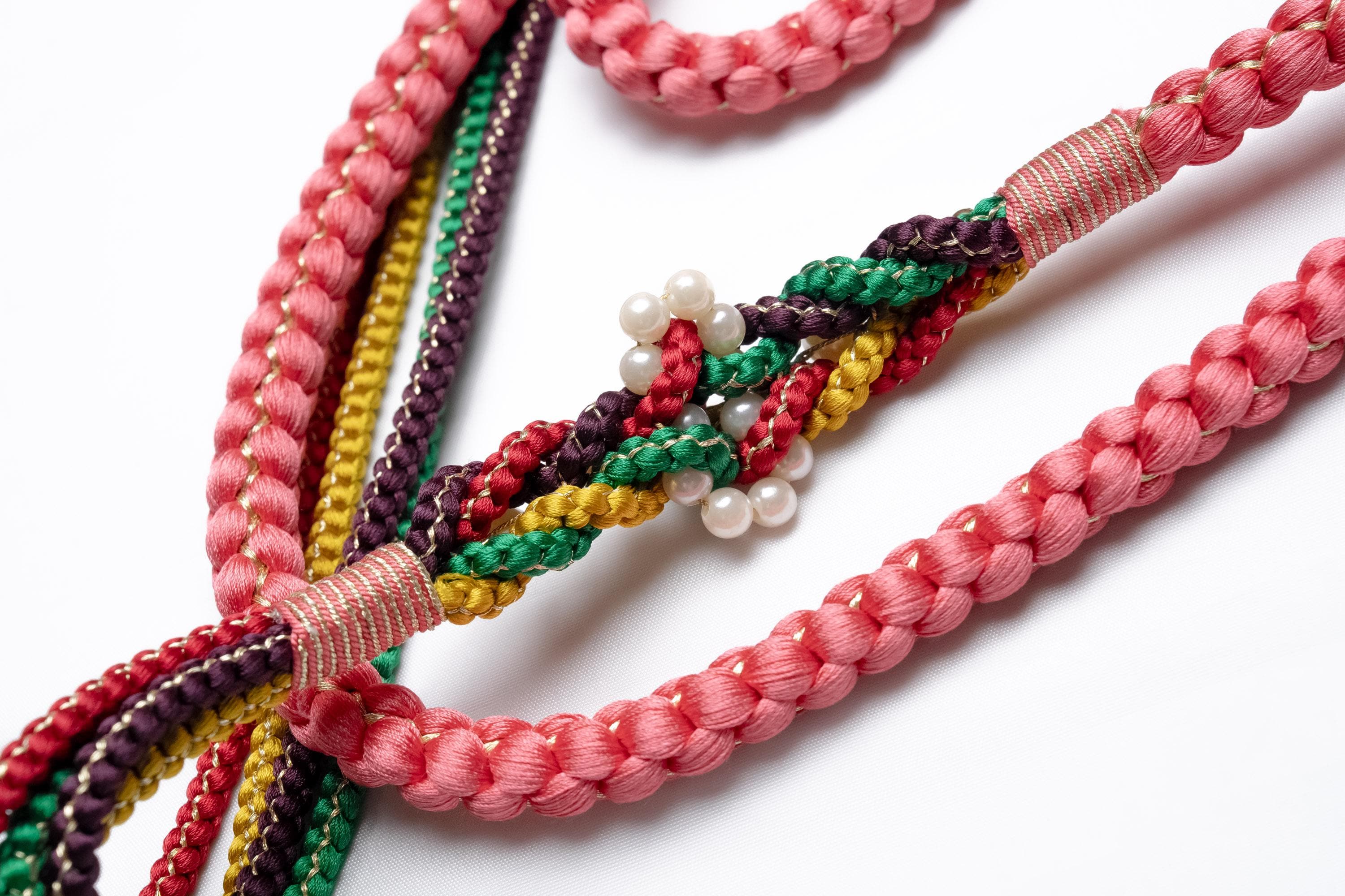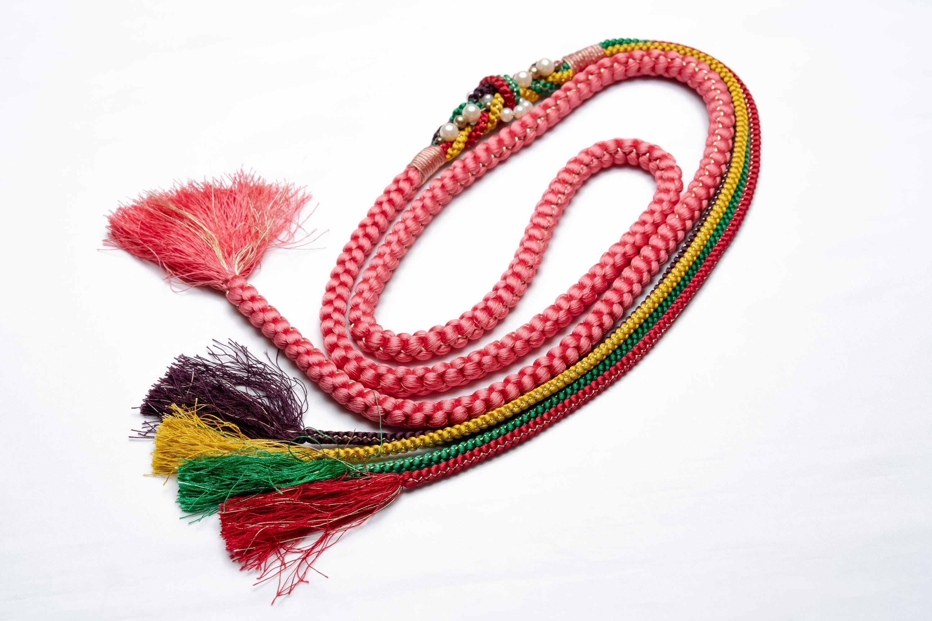 Obijime is one of the essentials in wearing women's Kimonos. Obijime is a fastener string used to hold Kimono Obi in place by tying over it. It's also called Obijime cord.