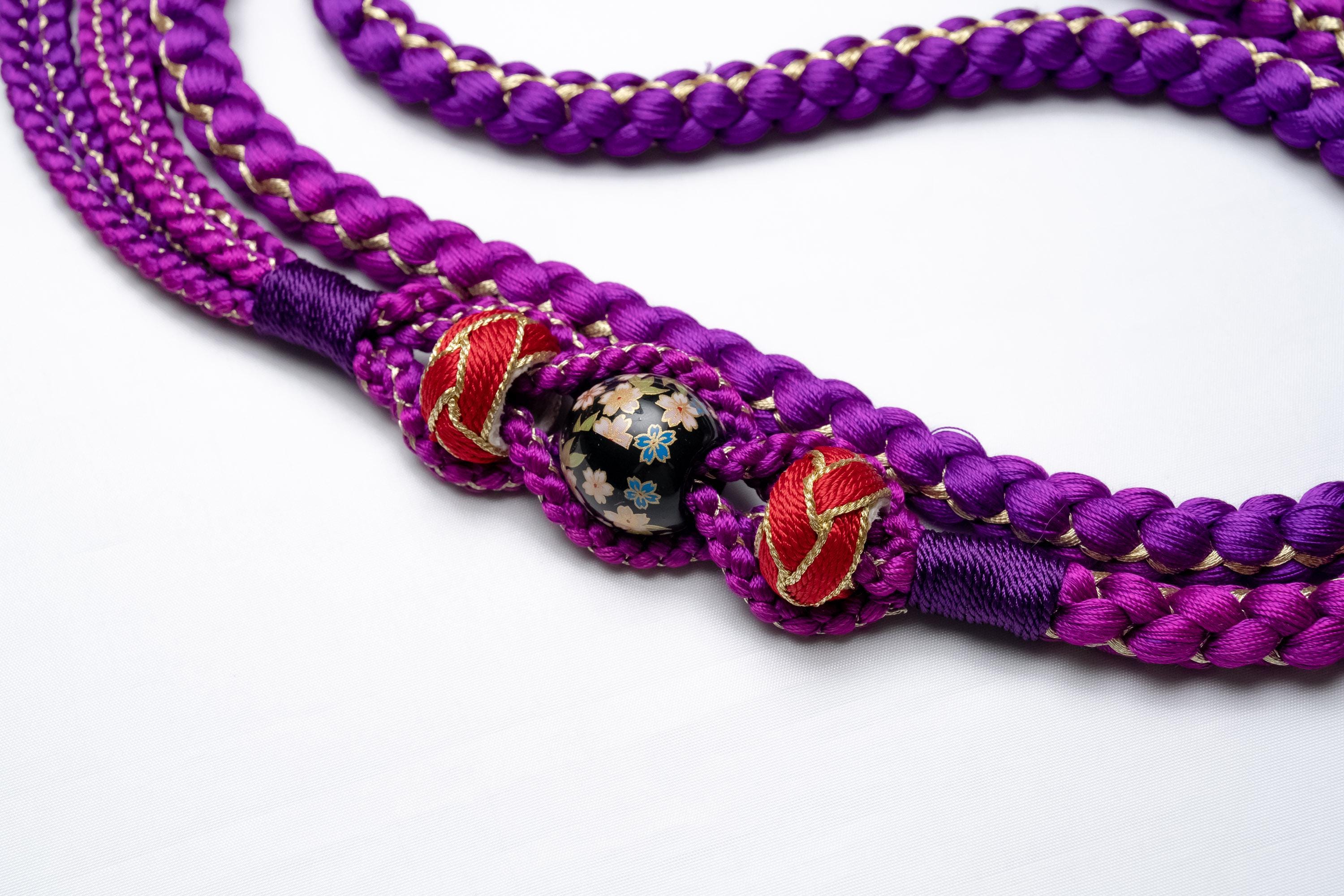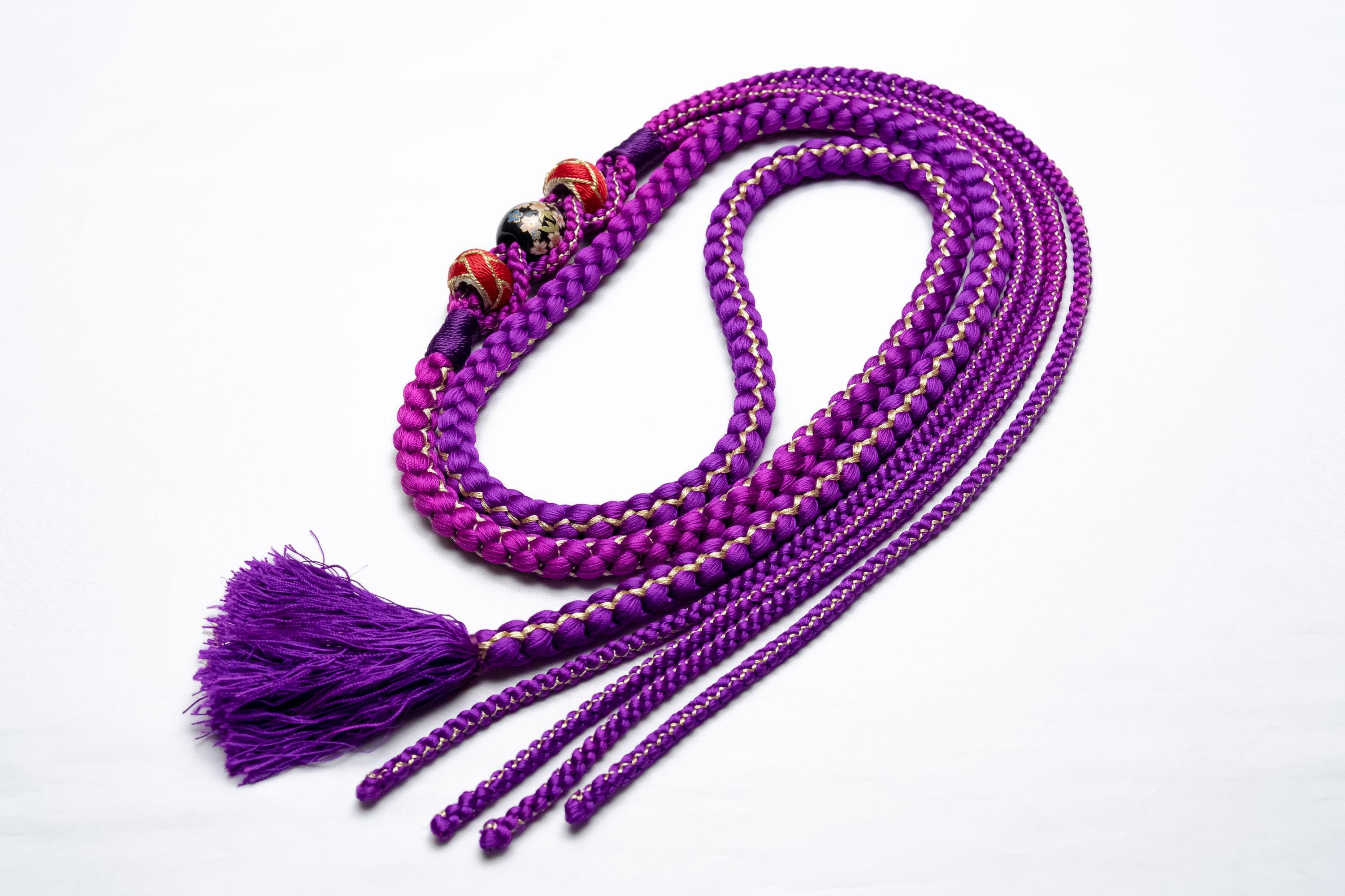 Obijime is one of the essentials in wearing women's Kimonos. Obijime is a fastener string used to hold Kimono Obi in place by tying over it. It's also called Obijime cord.