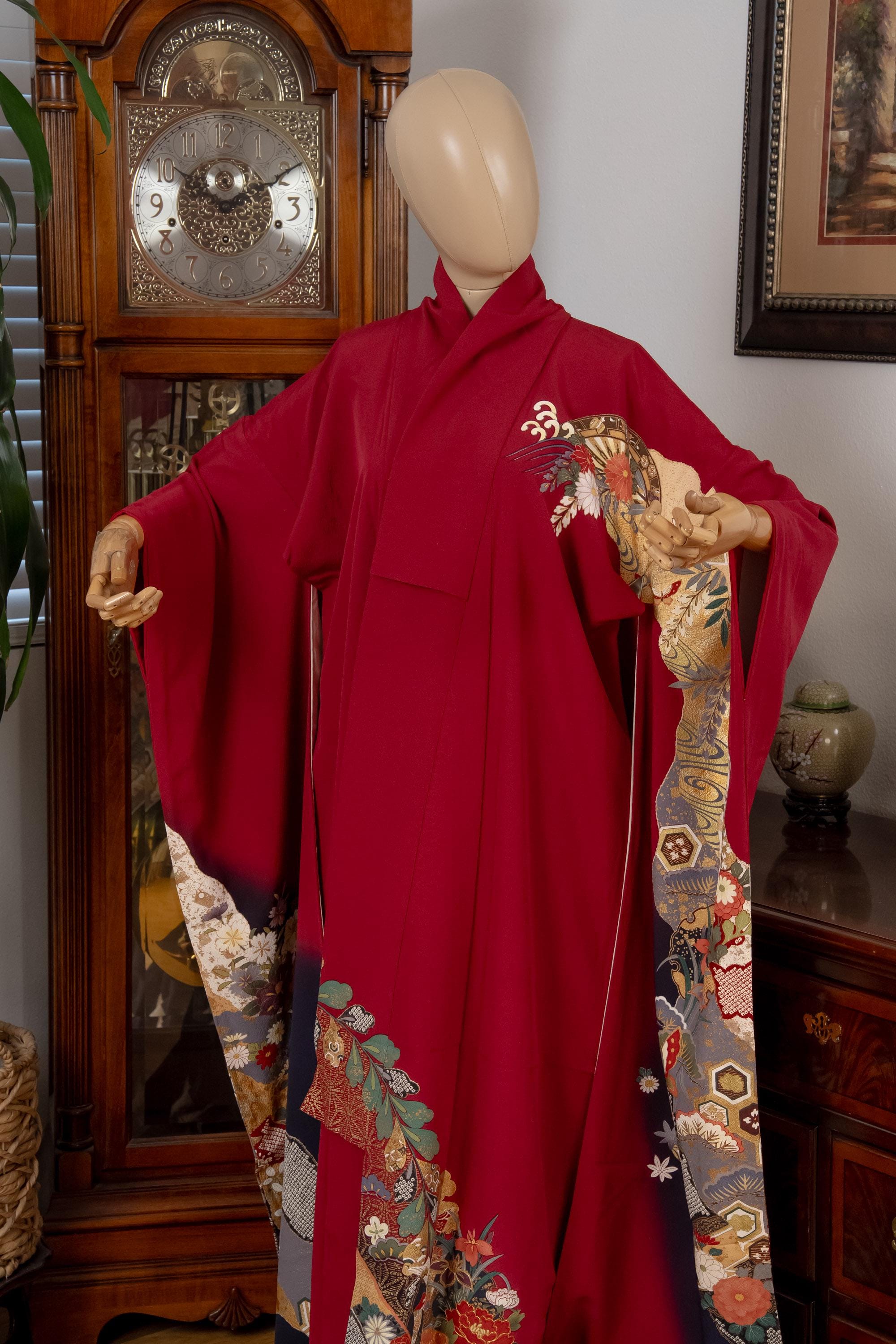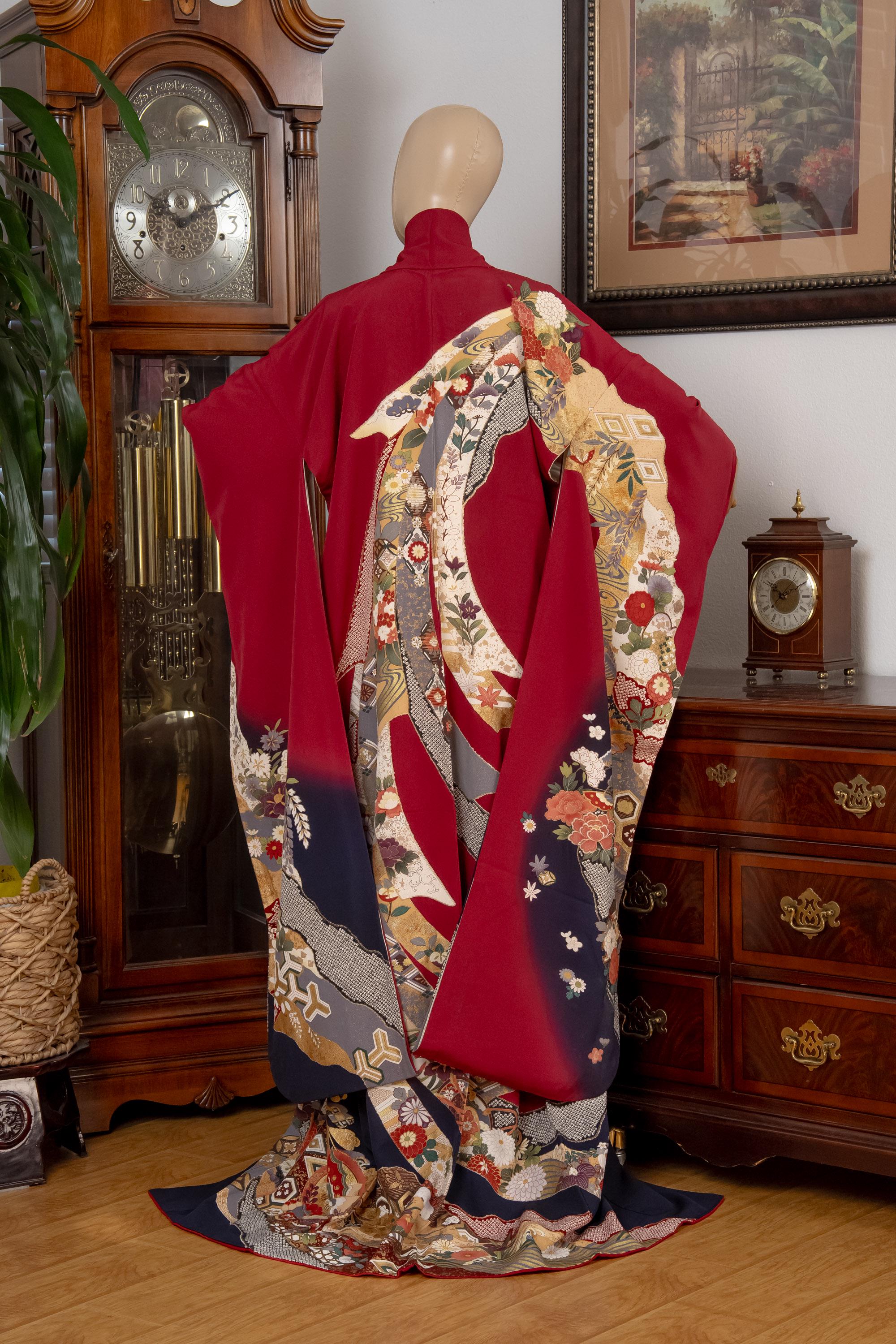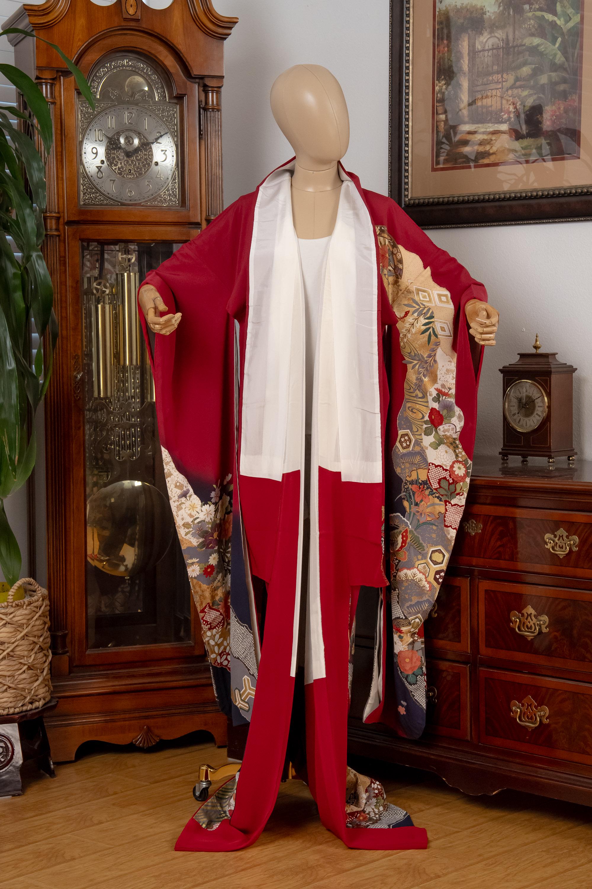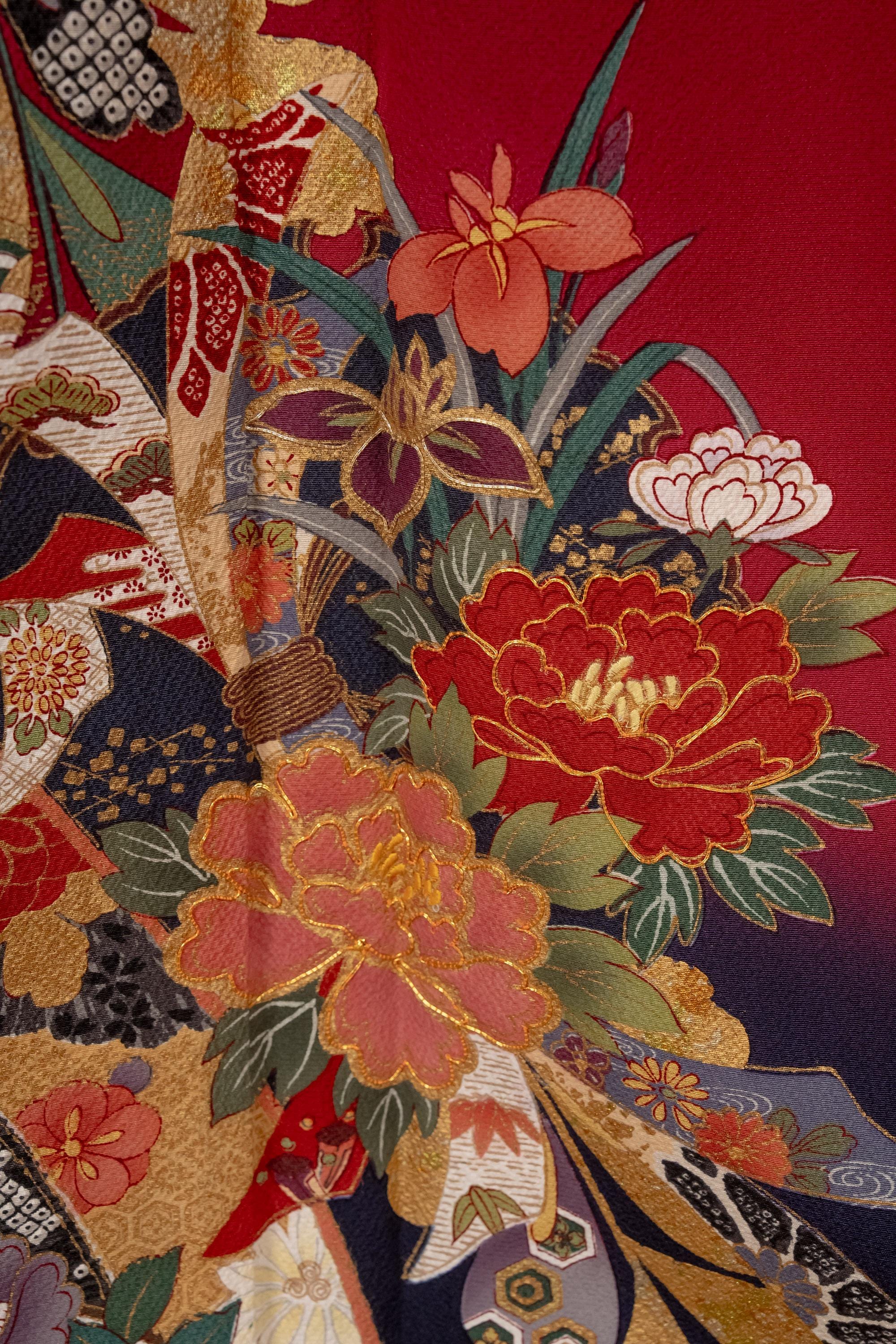Furisode is a formal kimono distinguishable by its long sleeves. Furisode is the most formal style of kimono worn by young unmarried women in Japan, generally used for formal social functions such as the tea ceremony, wedding ceremonies and graduation ceremonies. Furisode's elegant aesthetics along with such fine details often make a great wall decoration for home as well.