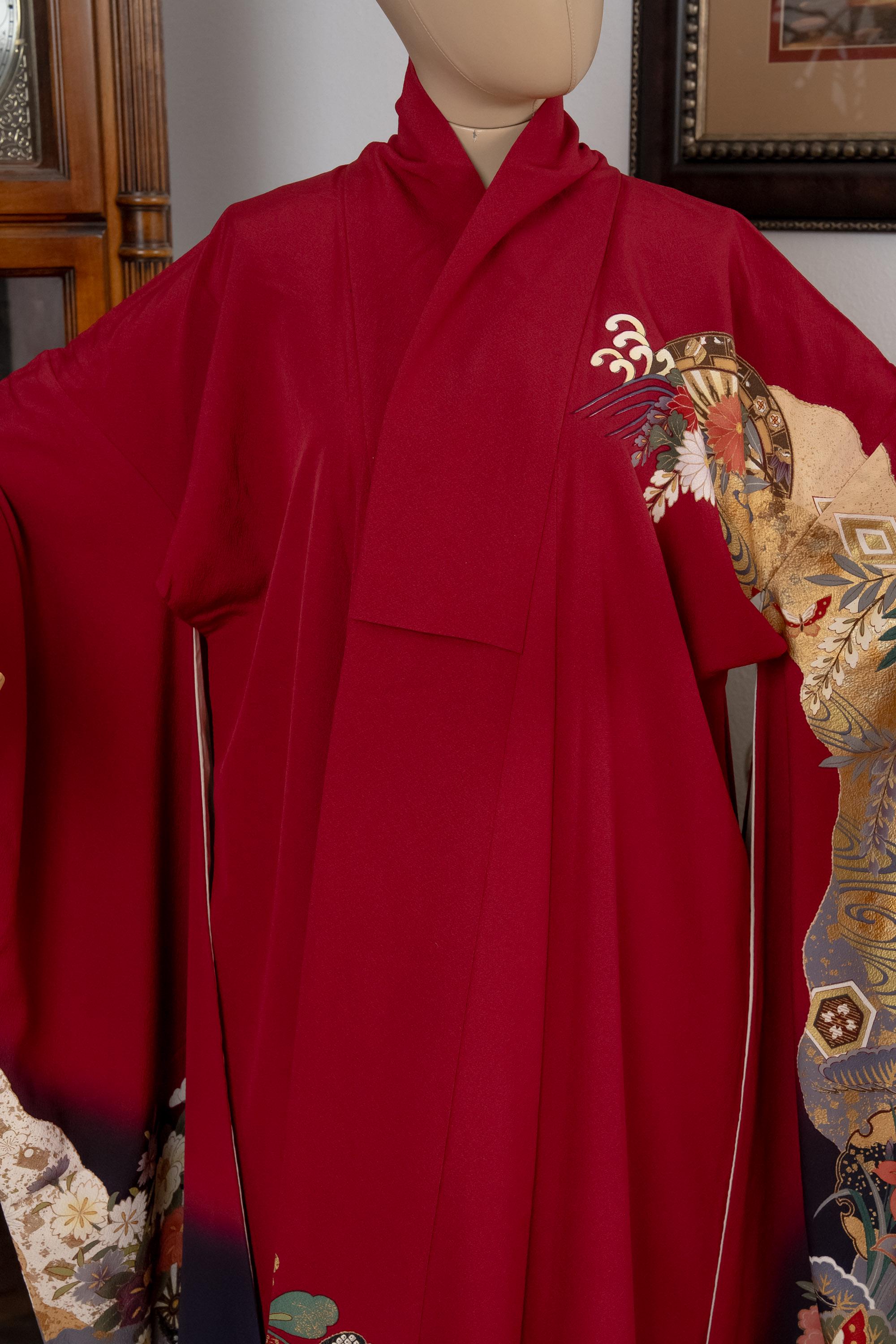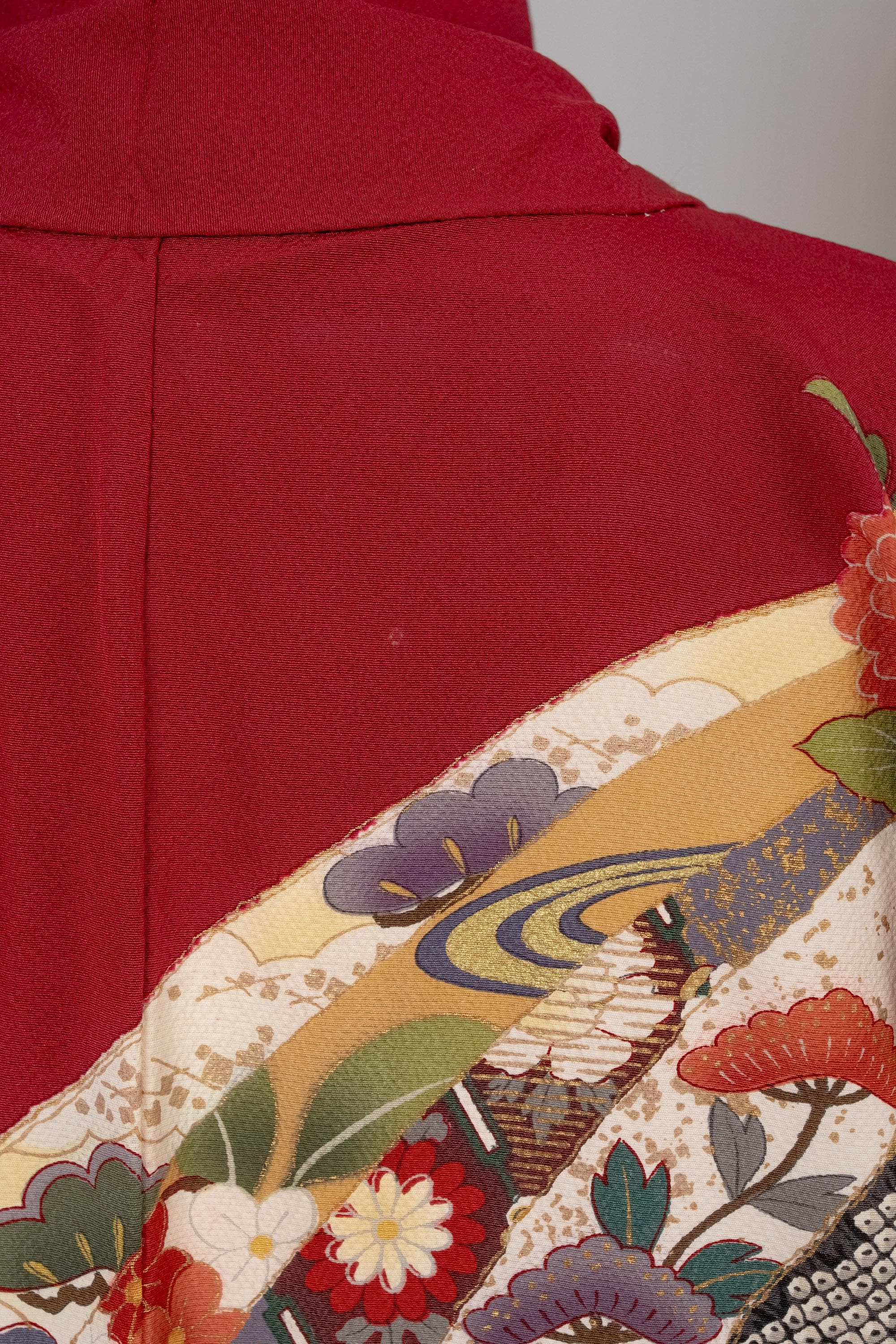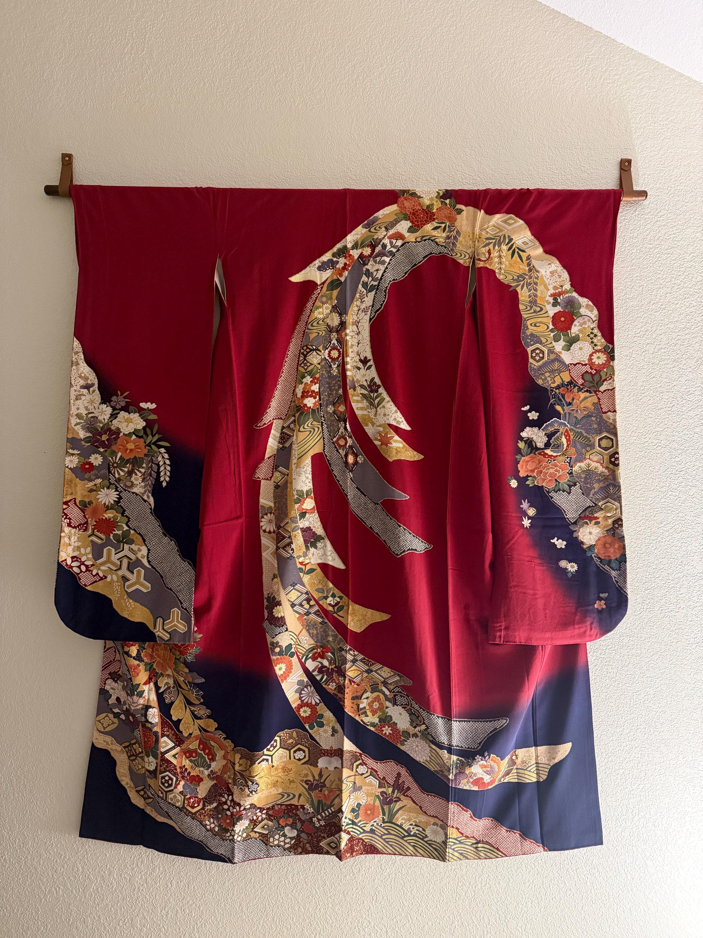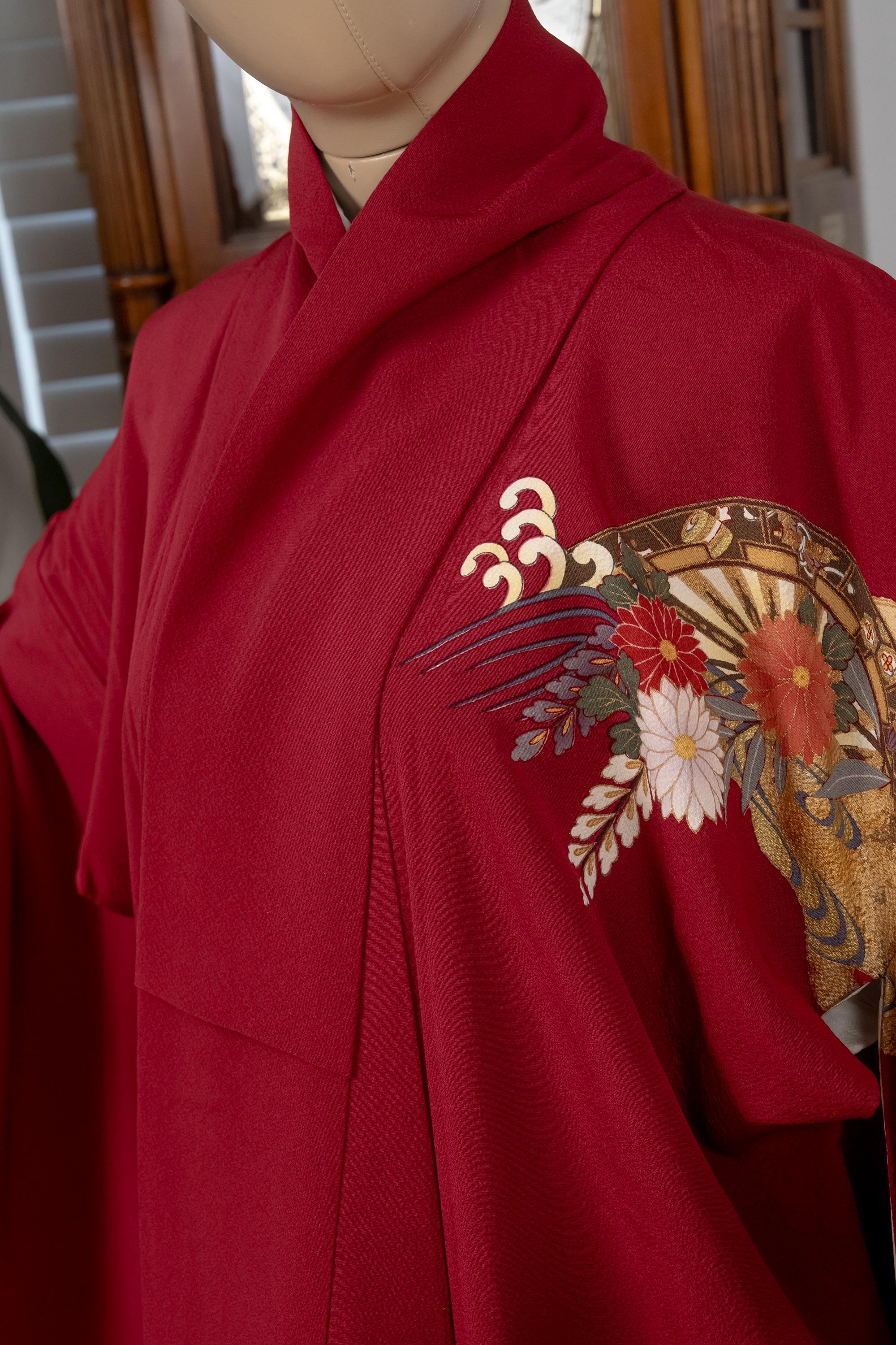 Furisode is a formal kimono distinguishable by its long sleeves. Furisode is the most formal style of kimono worn by young unmarried women in Japan, generally used for formal social functions such as the tea ceremony, wedding ceremonies and graduation ceremonies. Furisode's elegant aesthetics along with such fine details often make a great wall decoration for home as well.