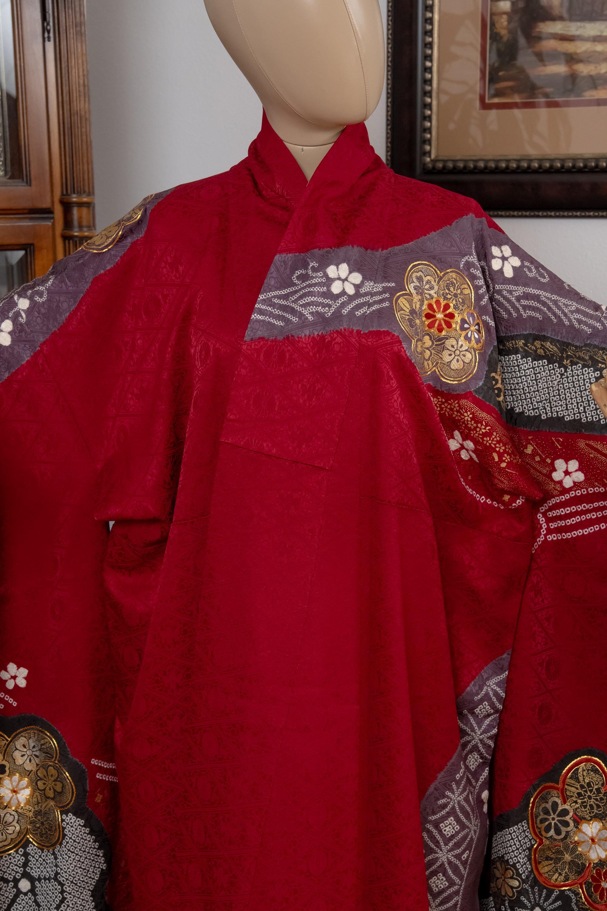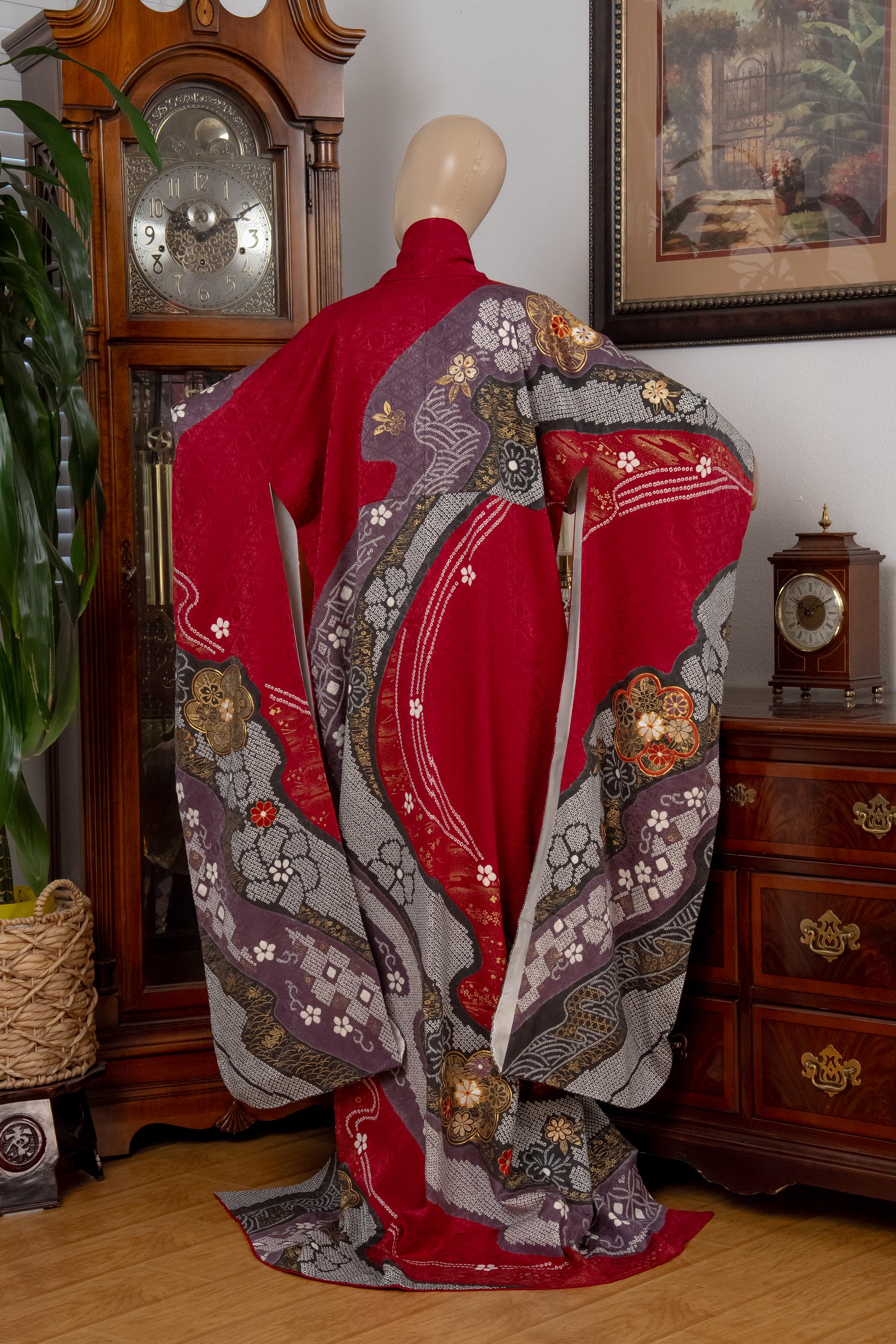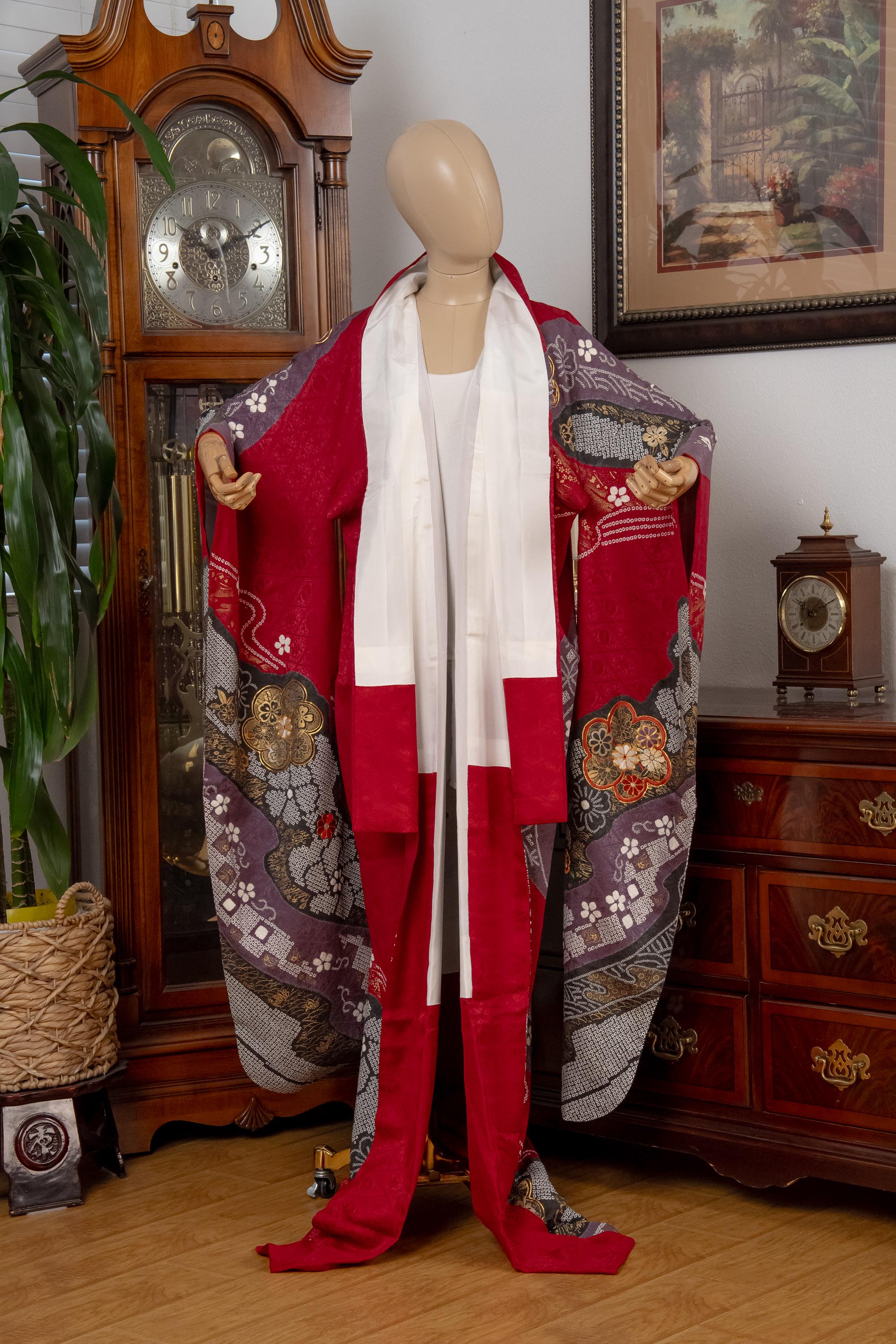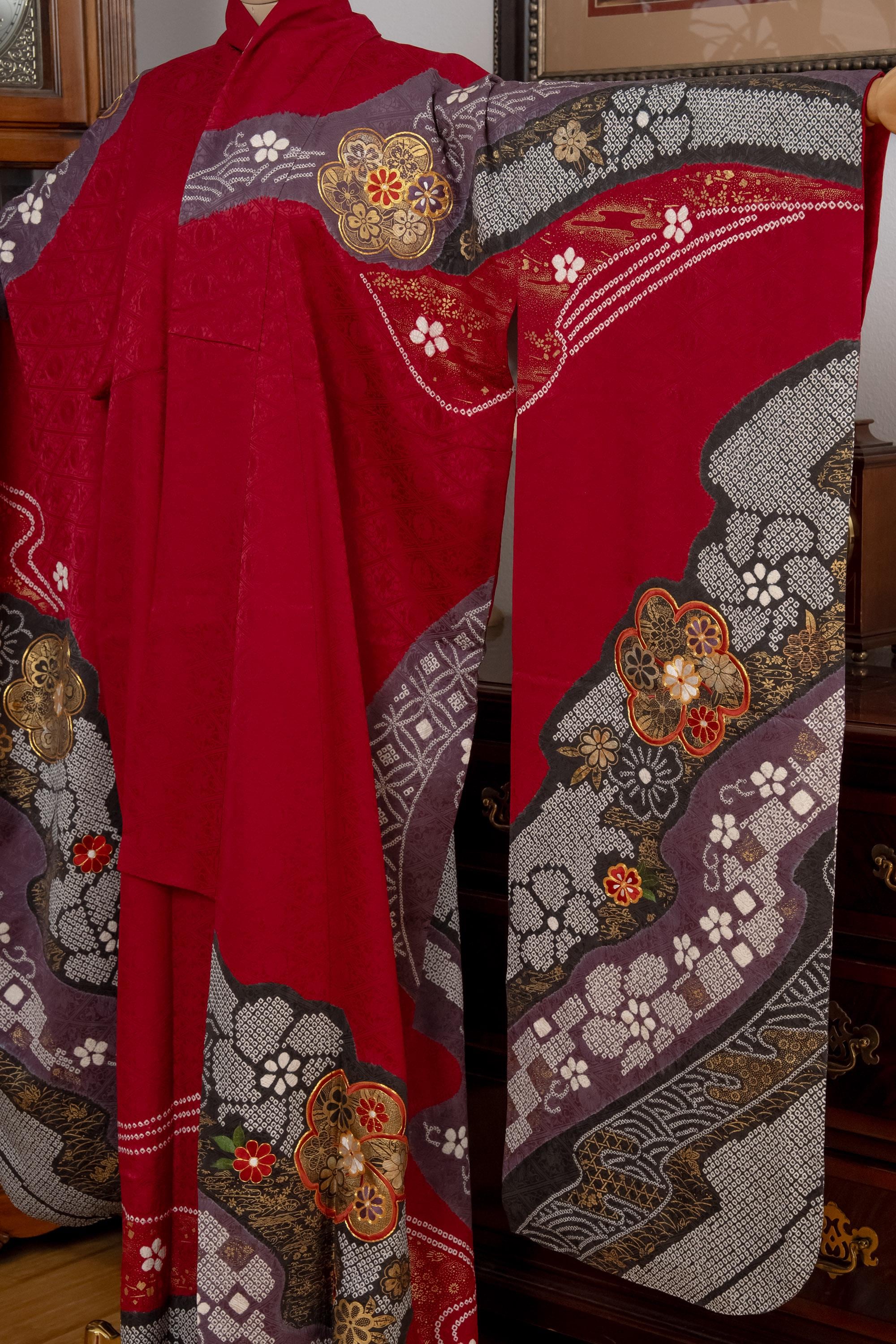 Furisode is a formal kimono distinguishable by its long sleeves. Furisode is the most formal style of kimono worn by young unmarried women in Japan, generally used for formal social functions such as the tea ceremony, wedding ceremonies and graduation ceremonies. Furisode's elegant aesthetics along with such fine details often make a great wall decoration for home as well.