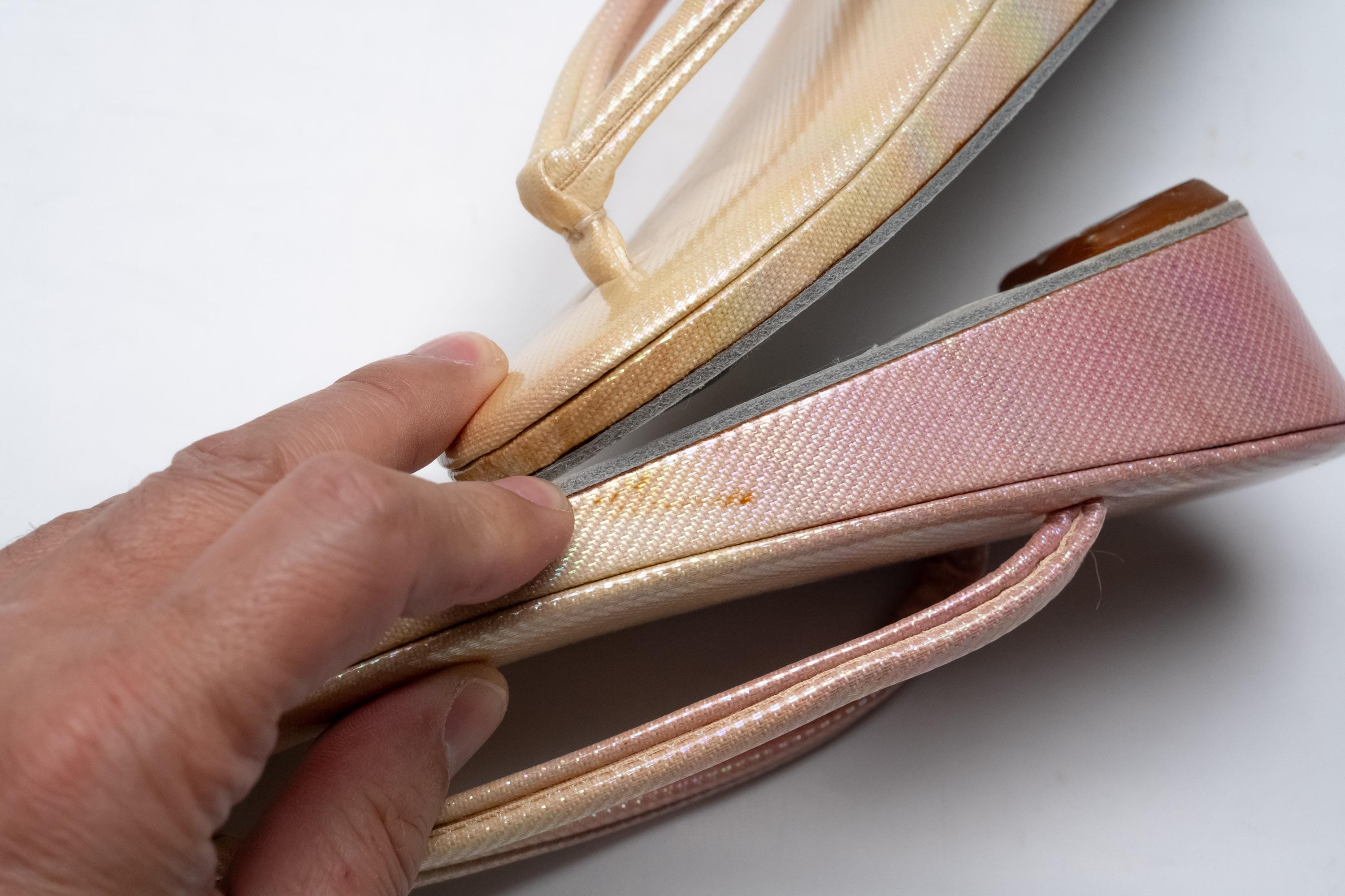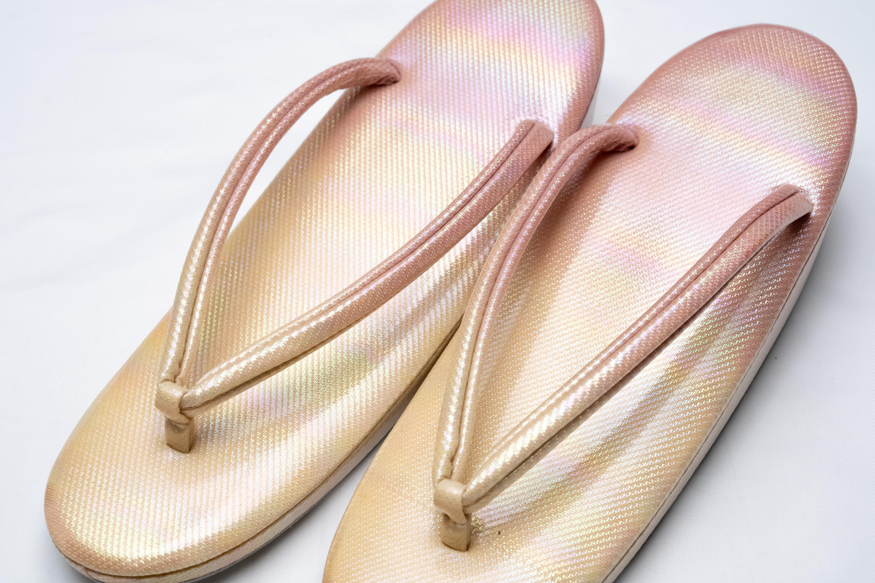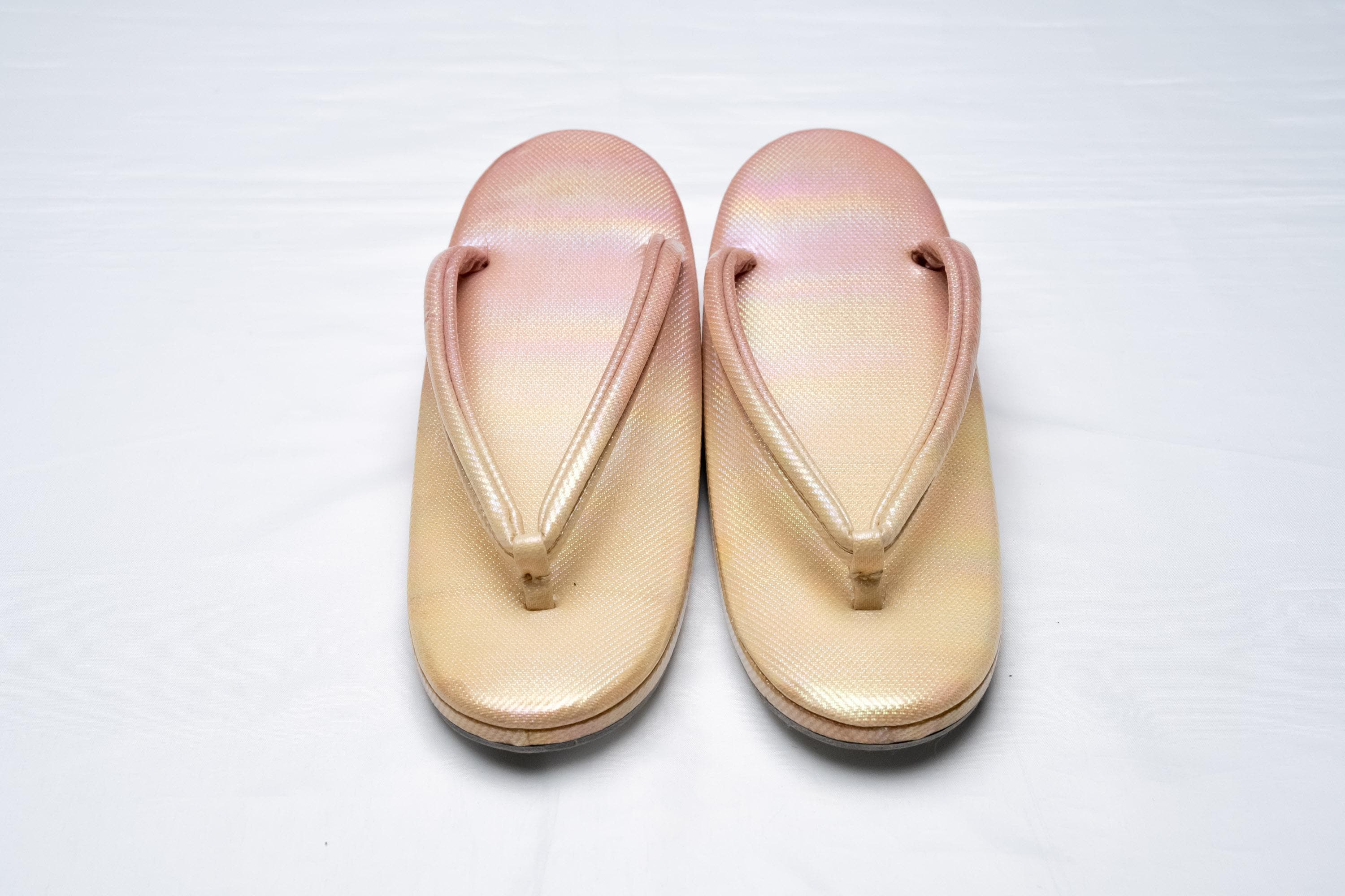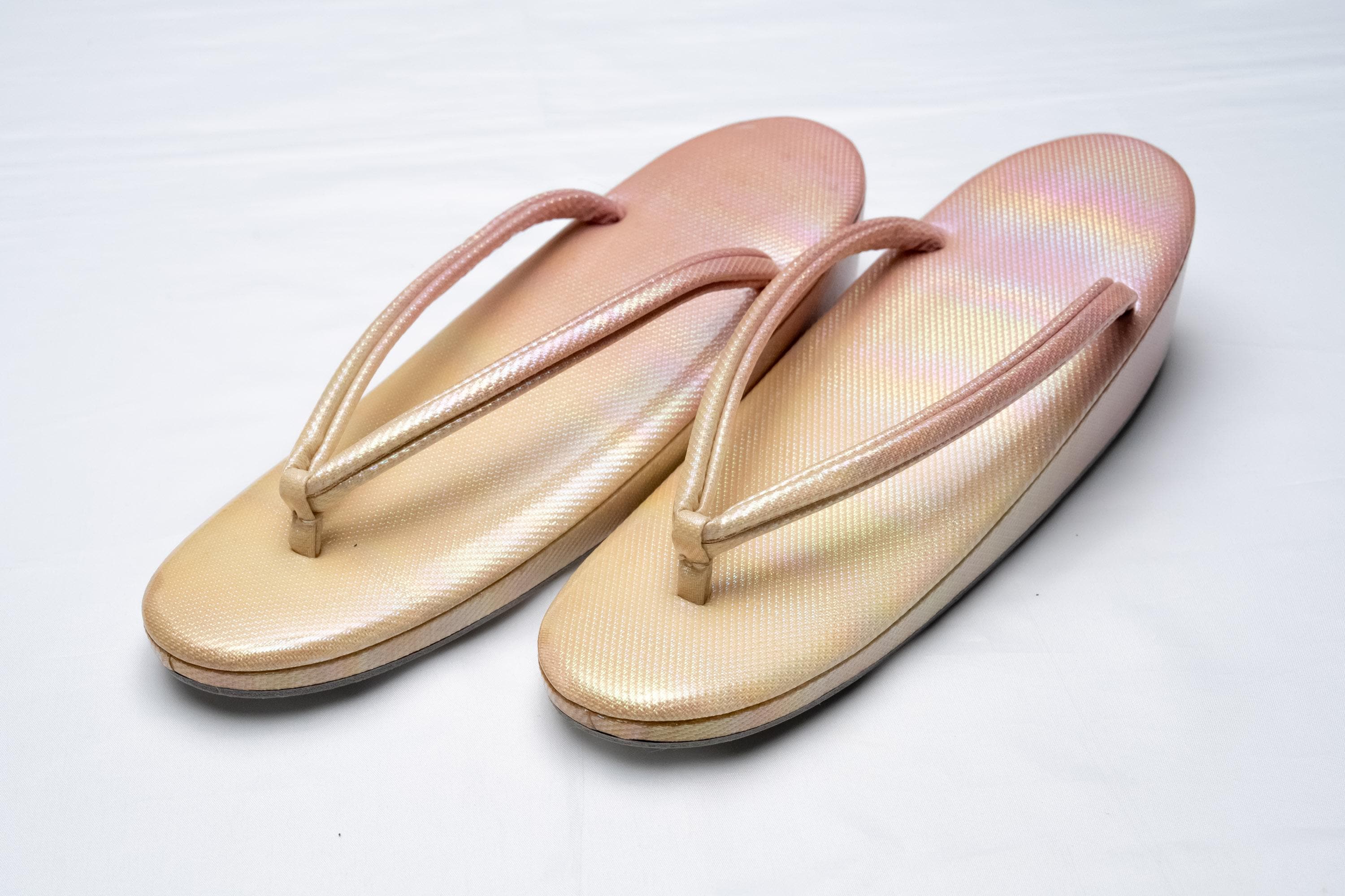 When you wear Zori with traditional Japanese formal Kimono, your heels should extend about one centimeter off the back of Zori. If your heels sit perfectly onto or shorter than the body of Zori, you might accidentally step onto the hem of your Kimono dress and/or splash mud/dirt on the back of dress.