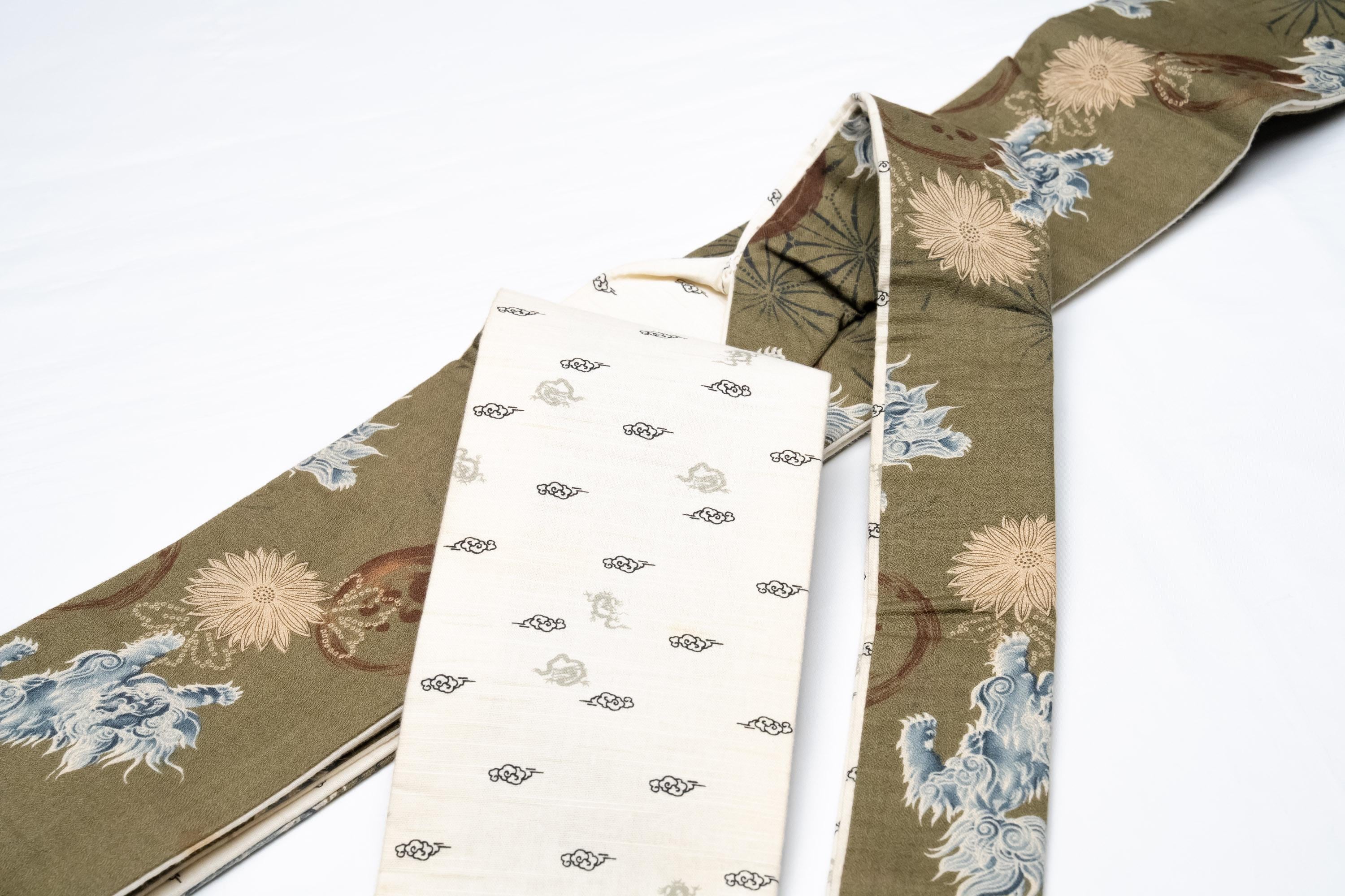 Kaku Obi is a lightweight yet rather stiff fabric belt to keep men's Kimono robe wrapped and closed.