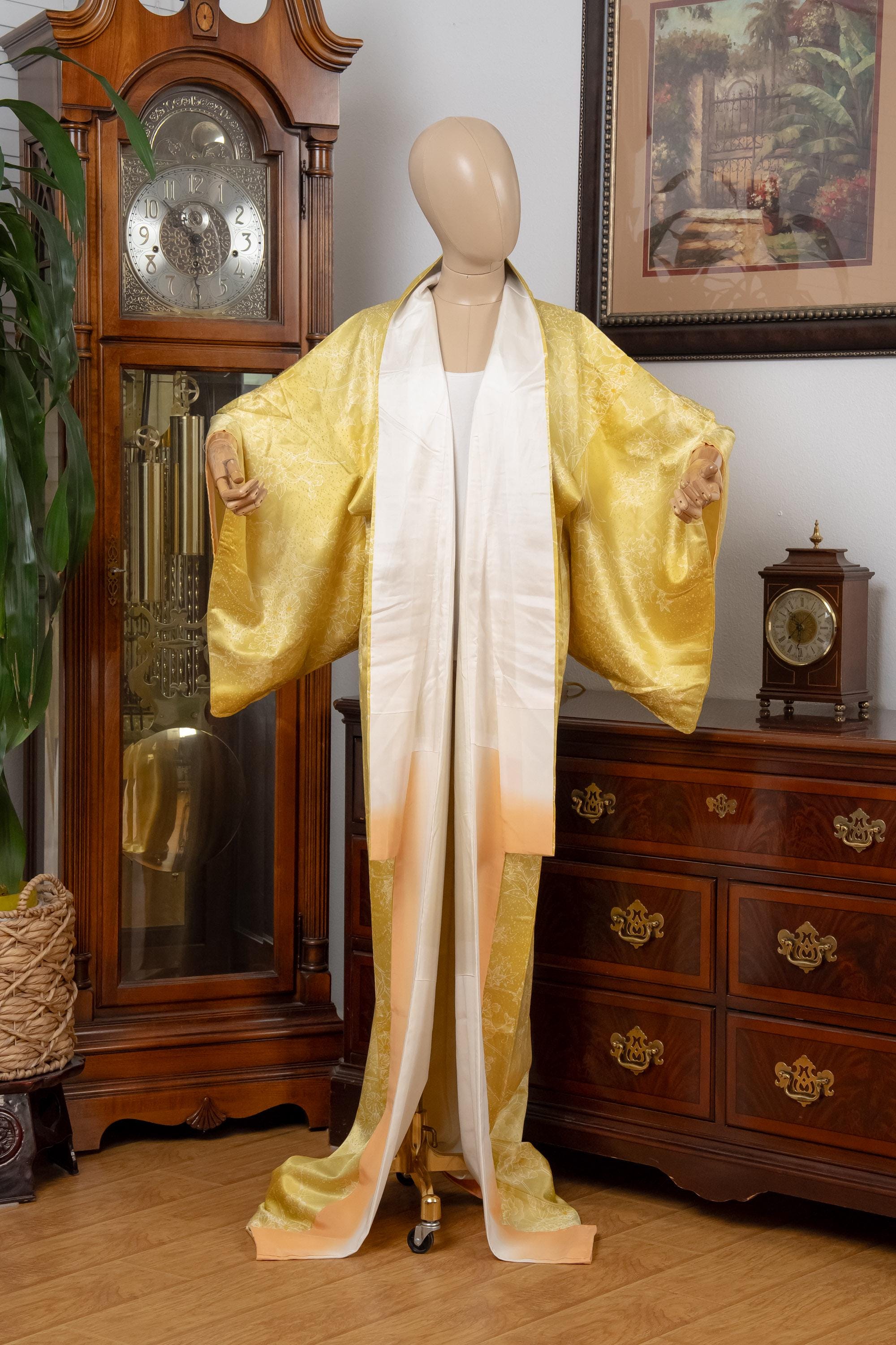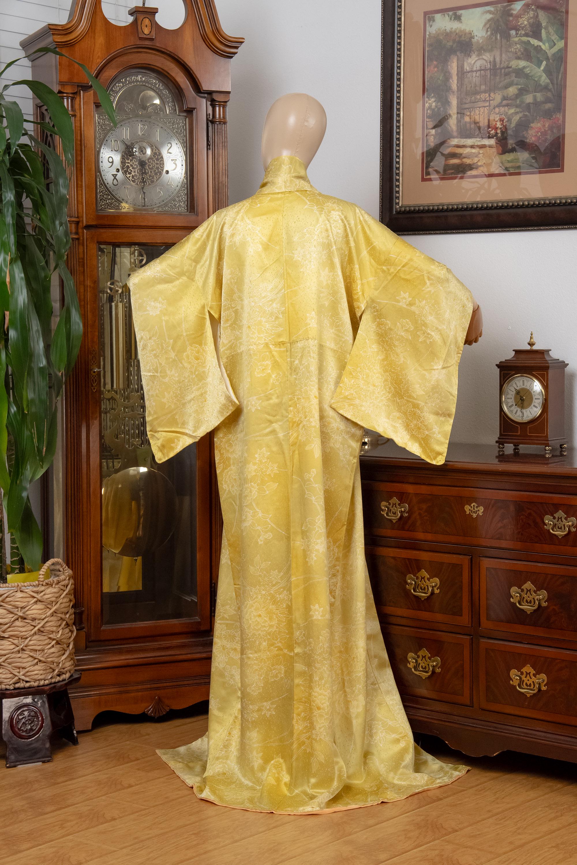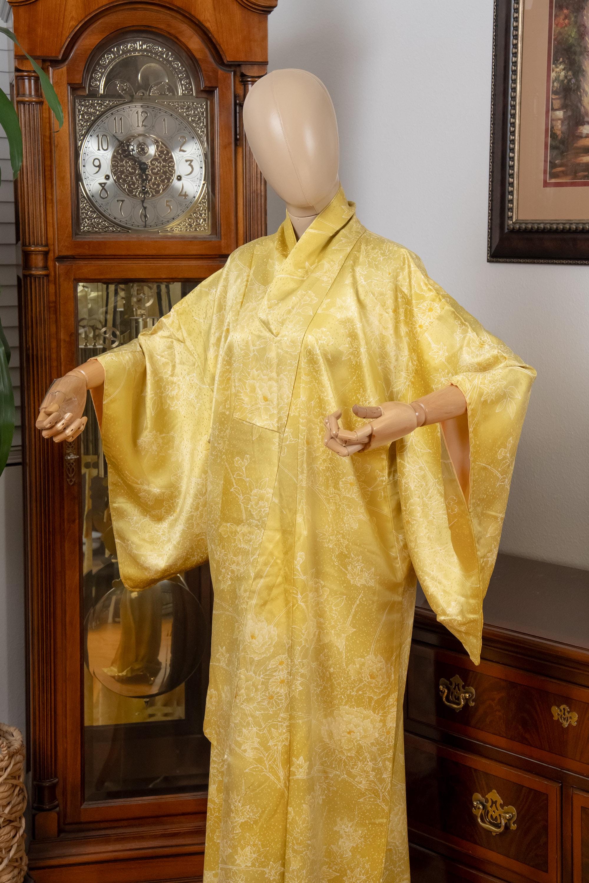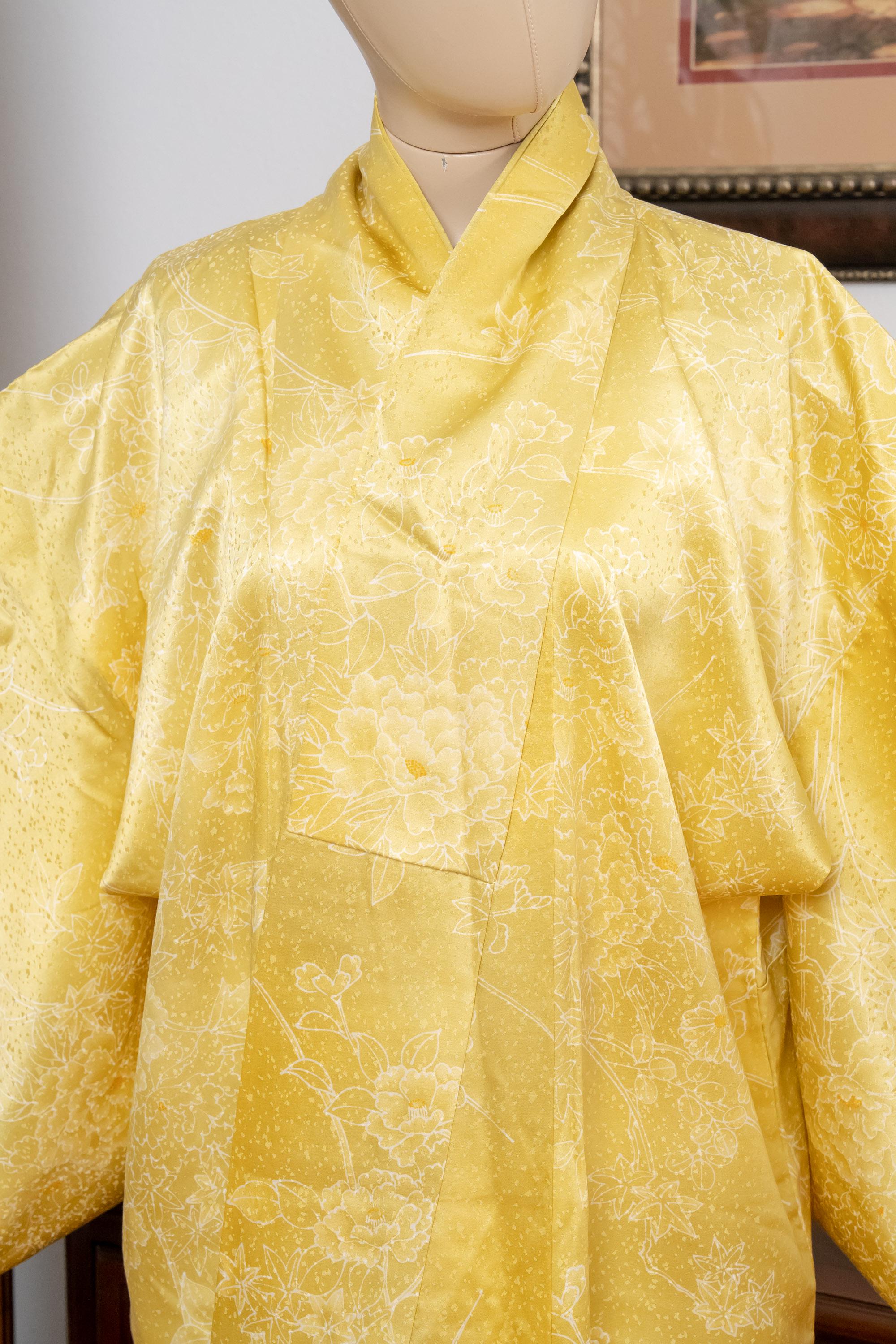 Please keep in mind that female Kimonos are supposed to fit long. You will need to adjust the length to your size by tying with Kitsuke accessories and Obi belt.