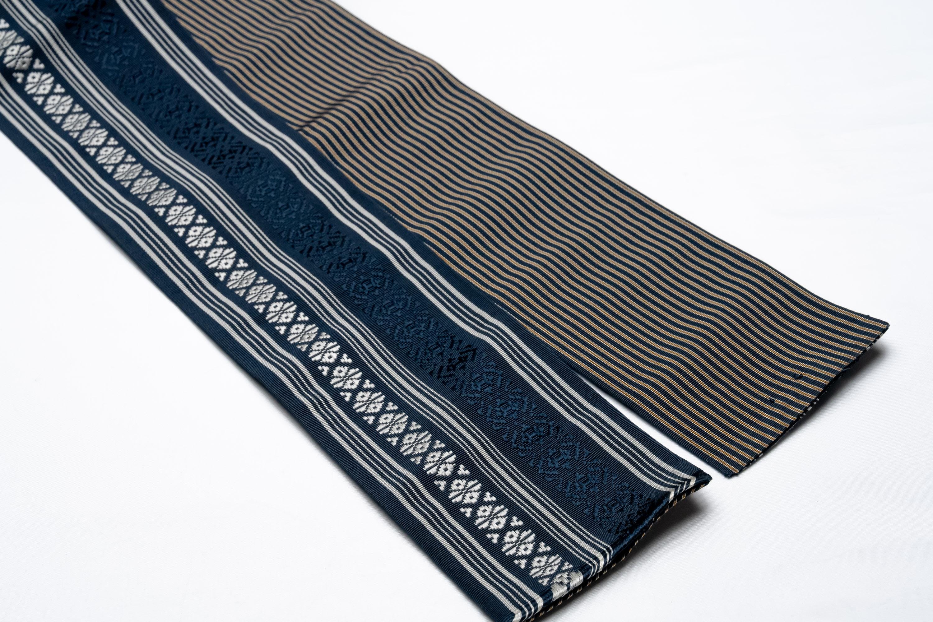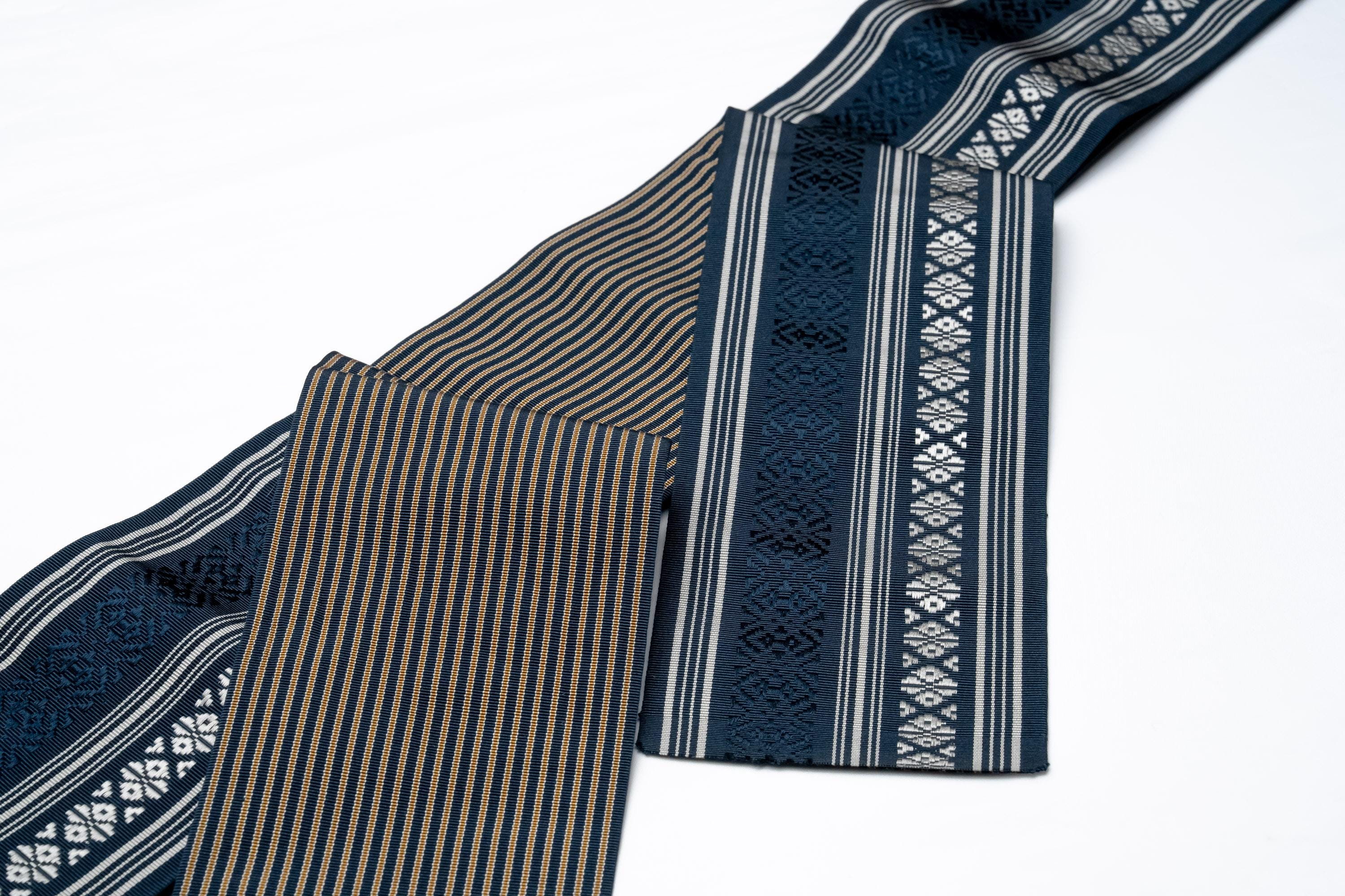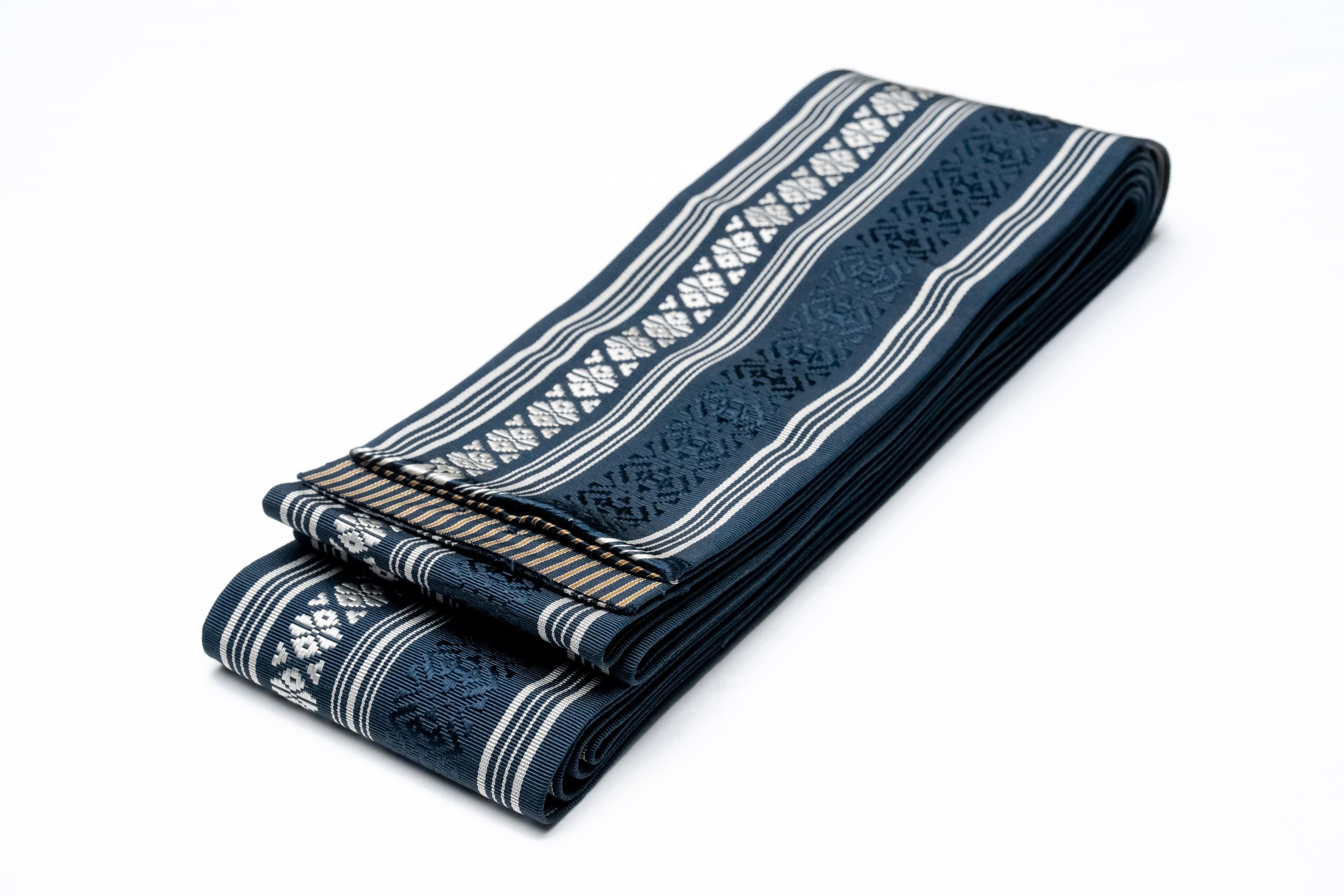 Kaku Obi is a lightweight yet rather stiff fabric belt to keep men's Kimono robe wrapped and closed.