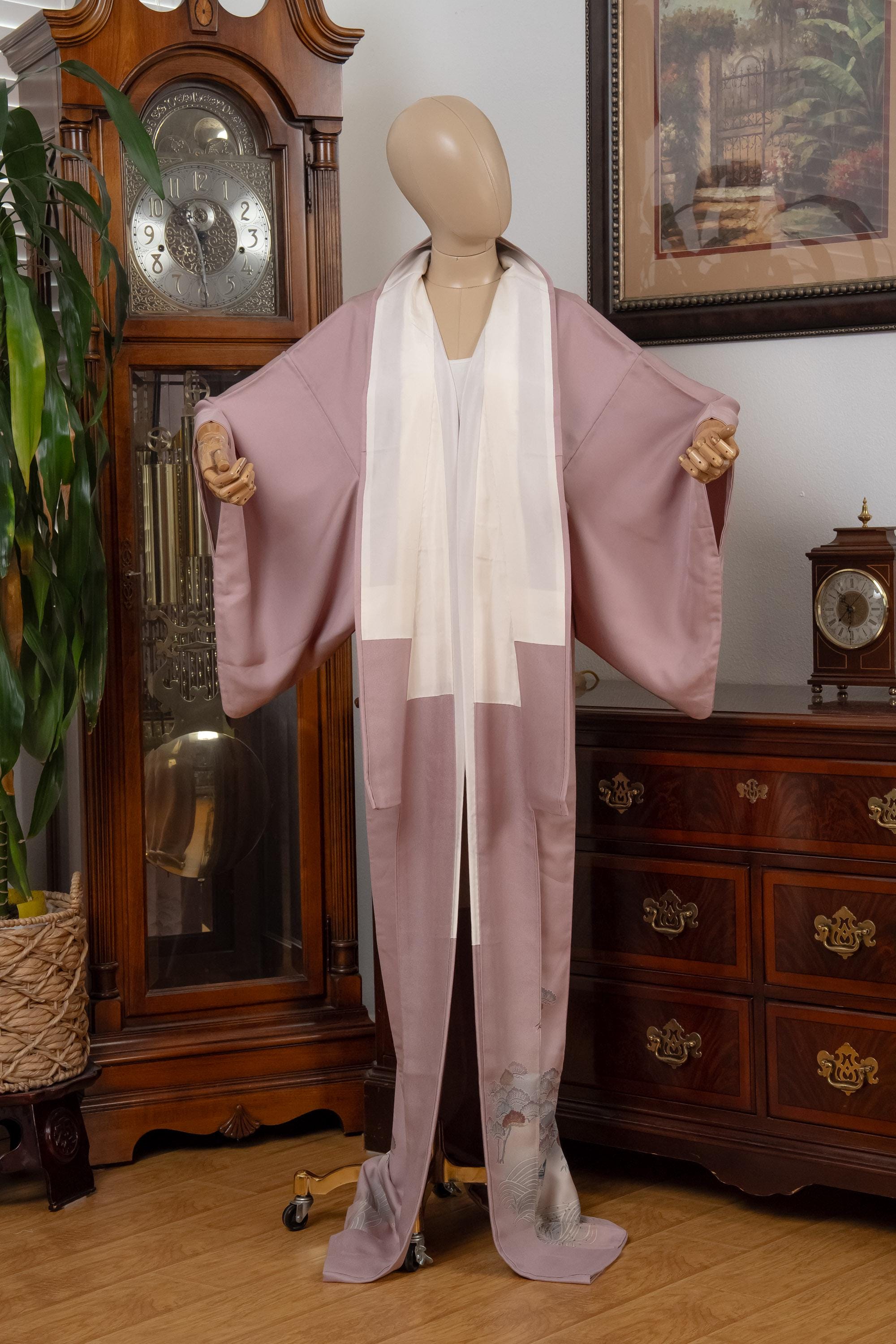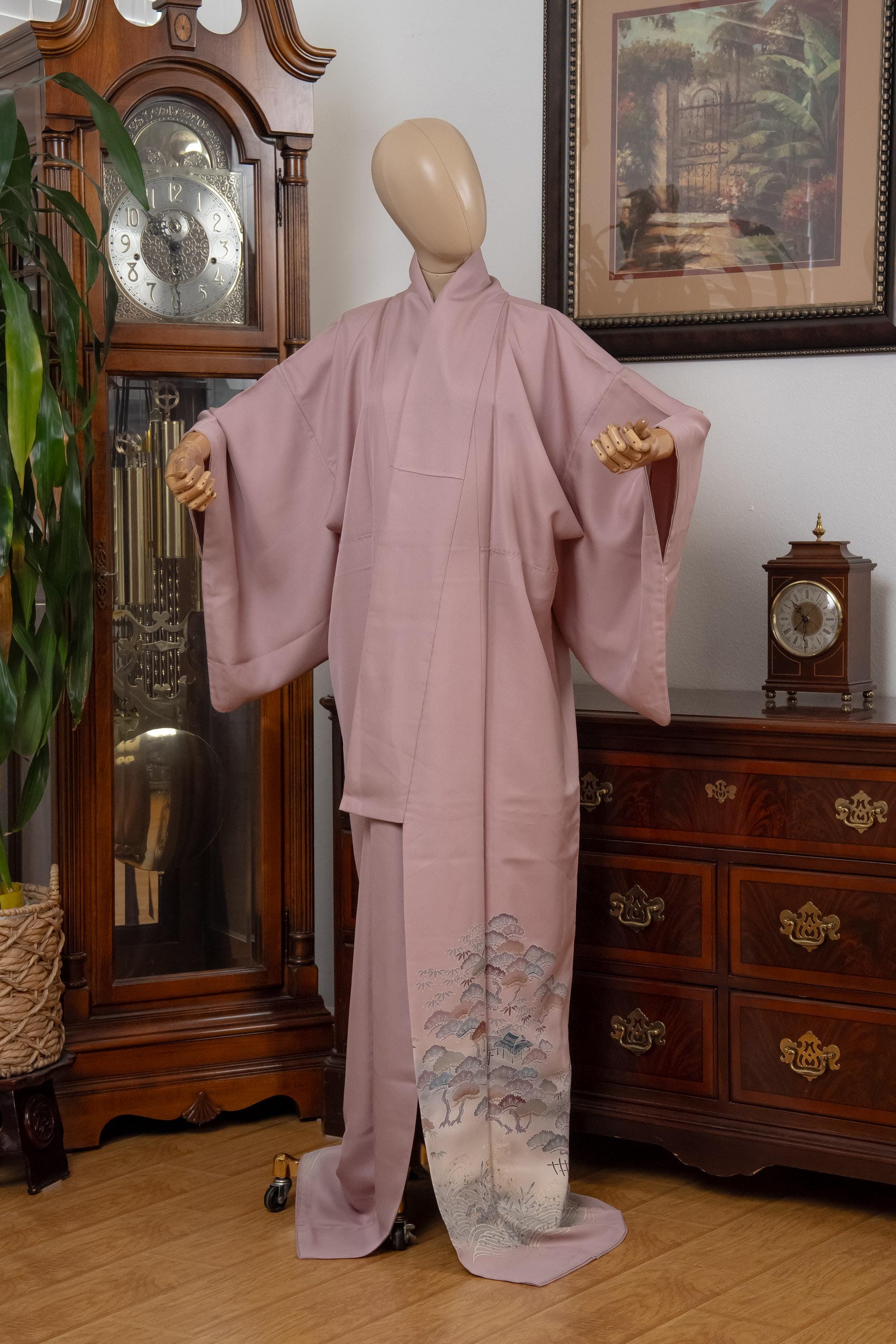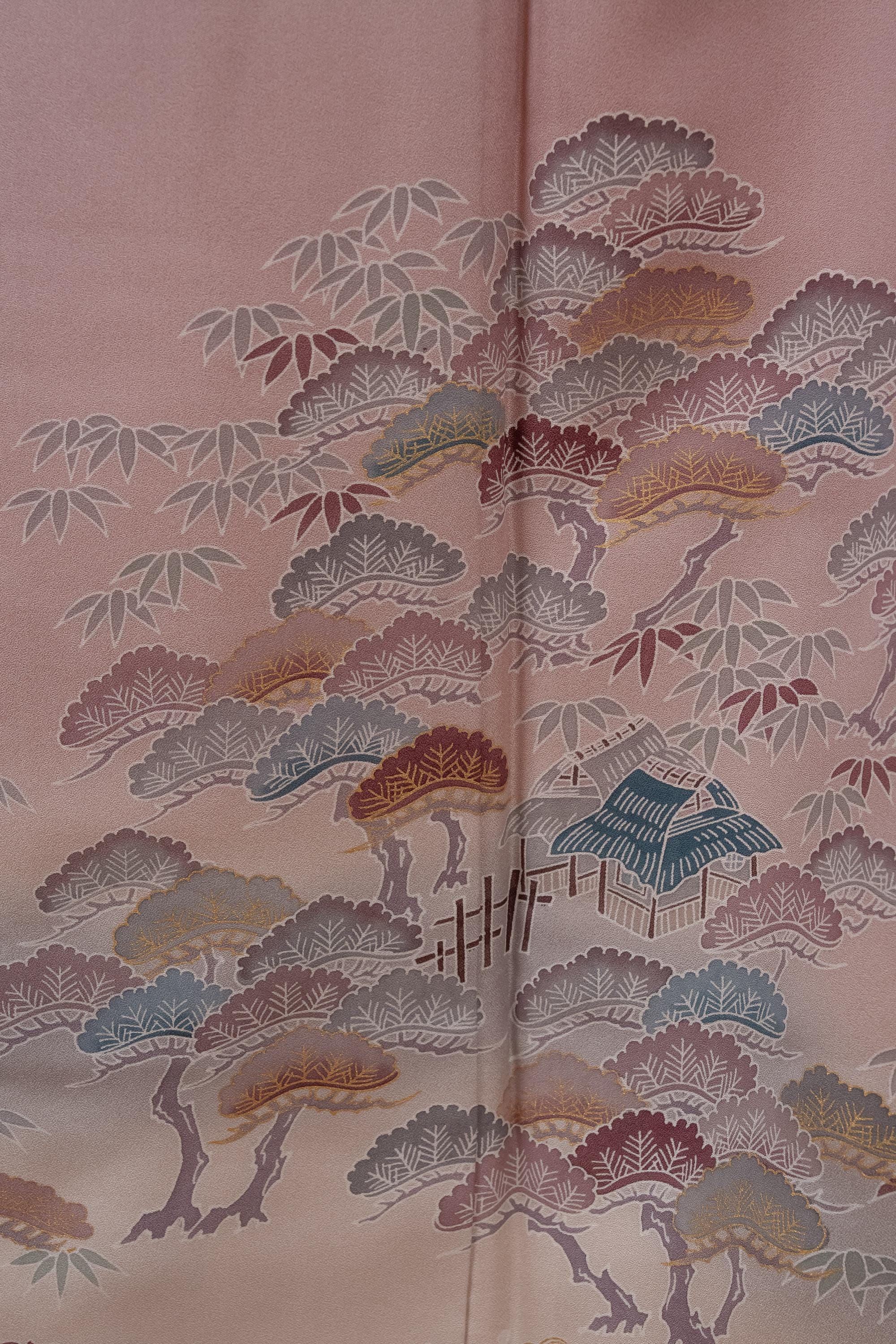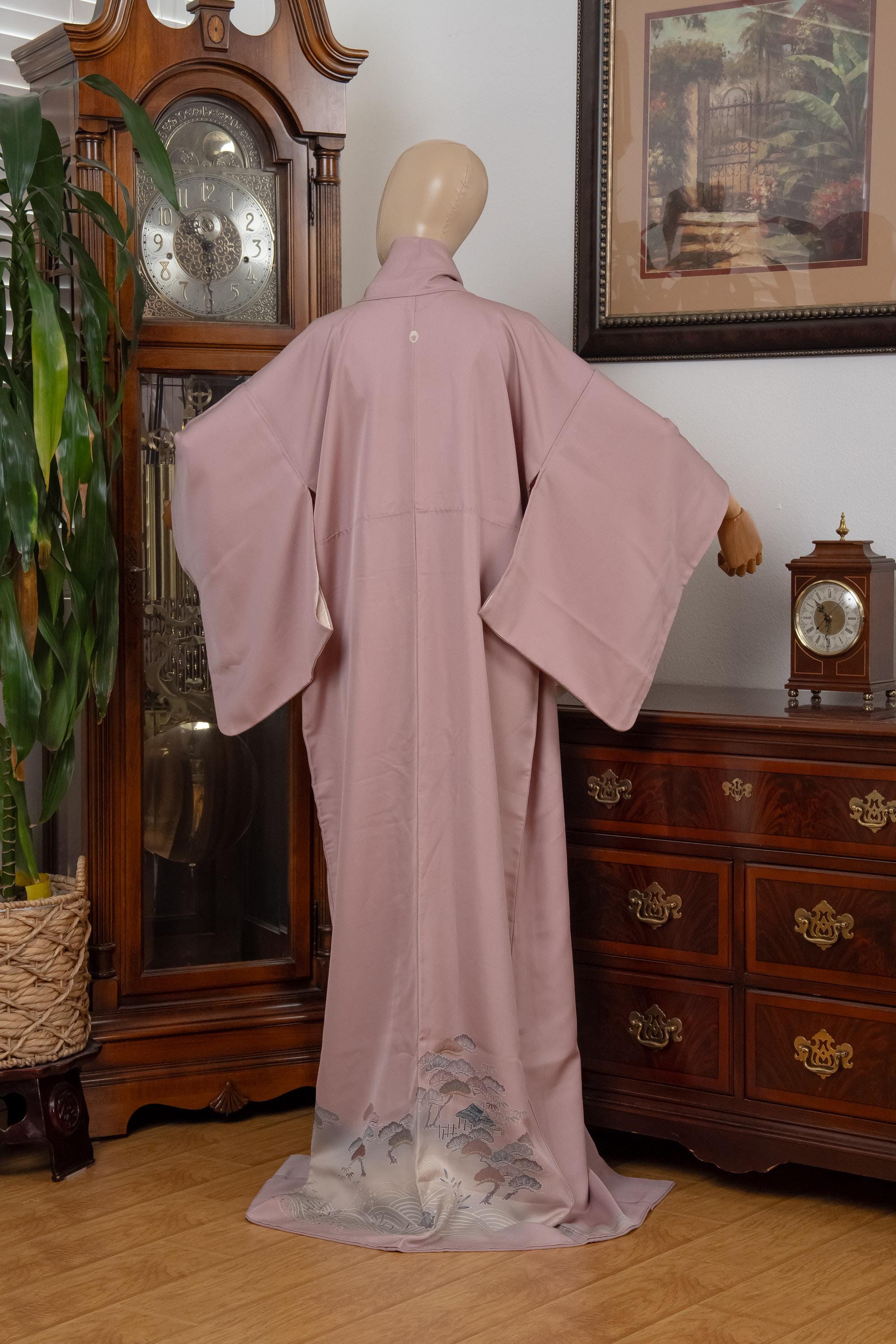 Tomesode is the most formal, high class Kimono for all ceremonies and occasions. Black ones are worn by married women and colored ones are worn by both married and unmarried women. Distinct characteristics of Tomesode are family crests and surrounding patterns around the hem. Numbers of family crests specify formality and rank.