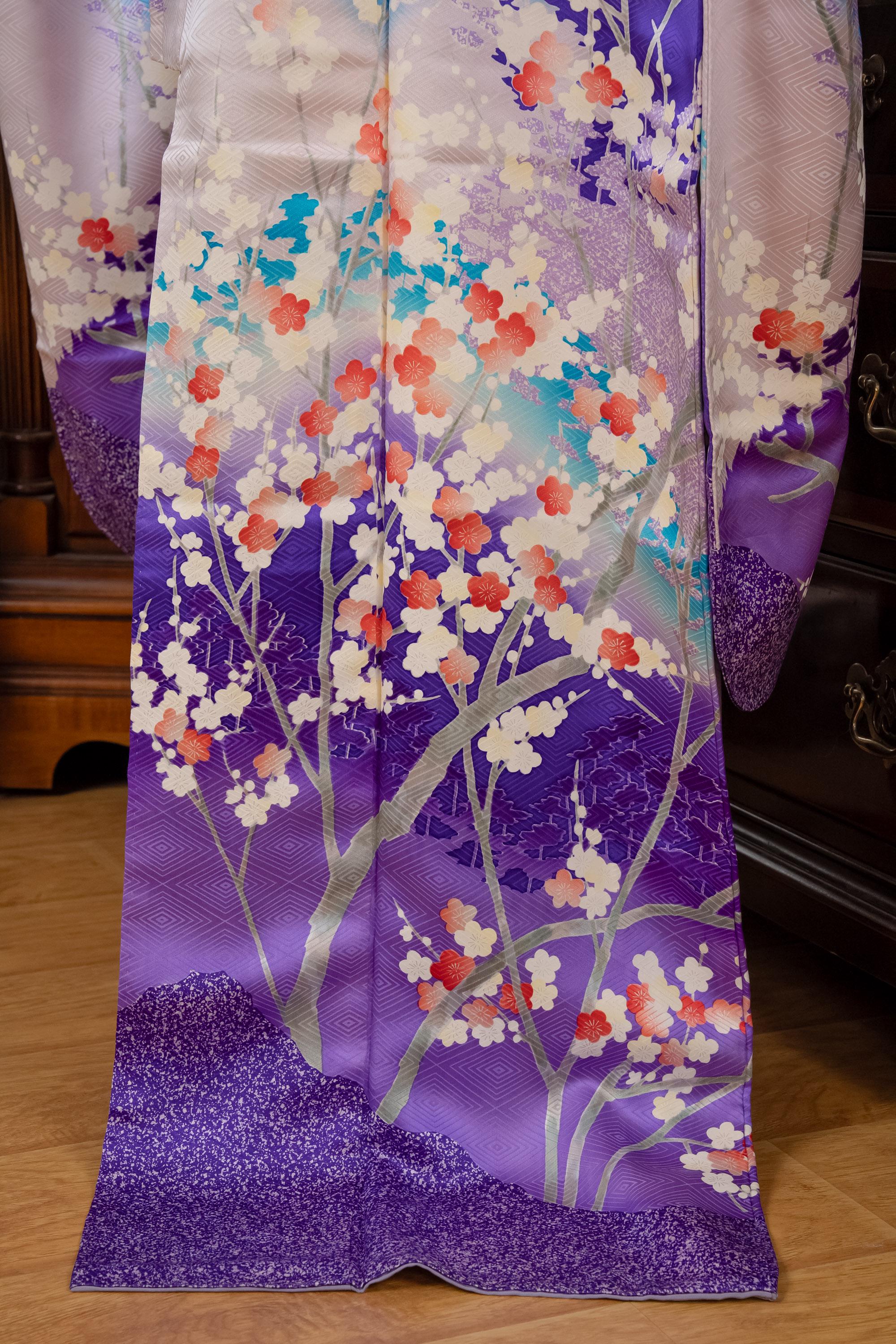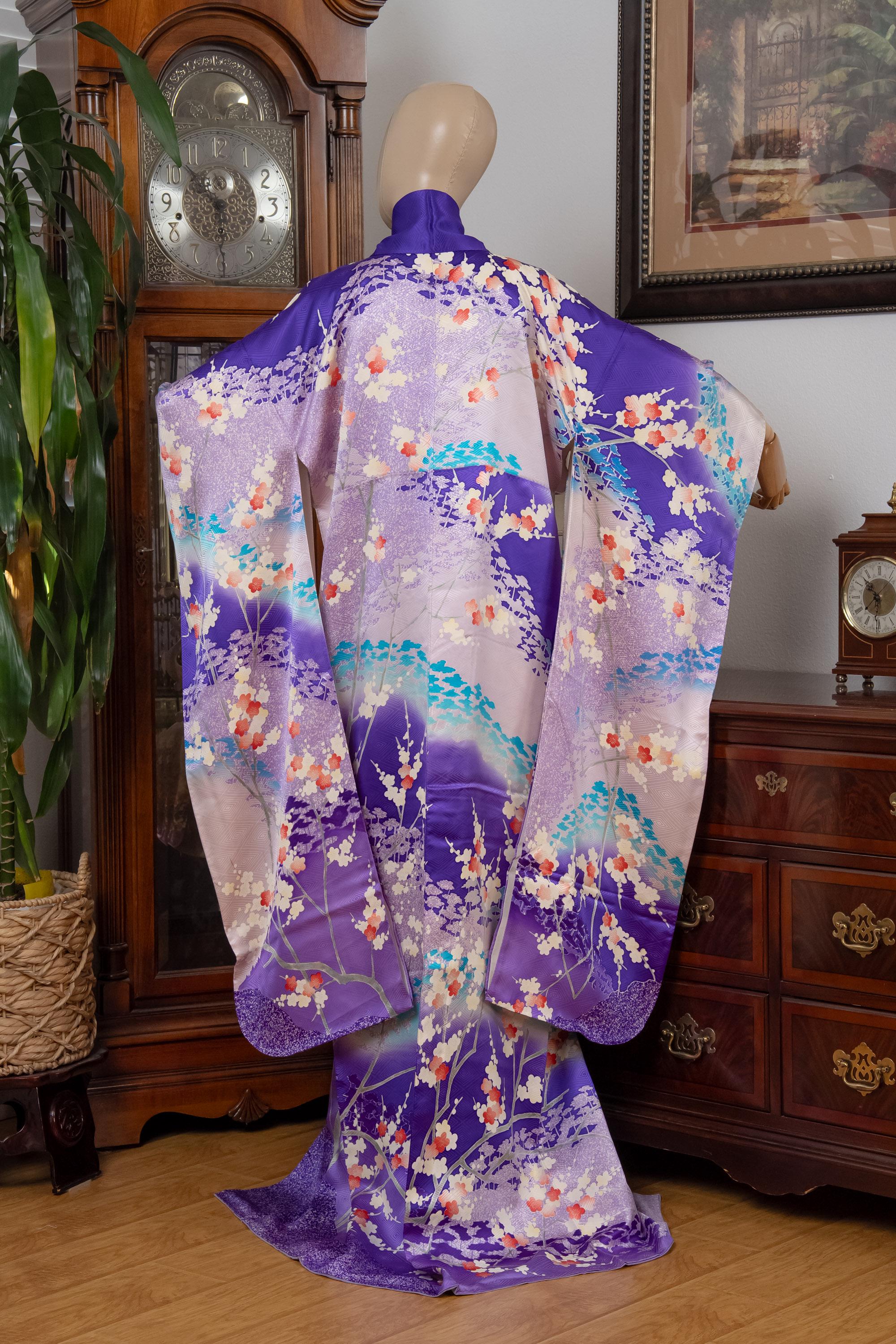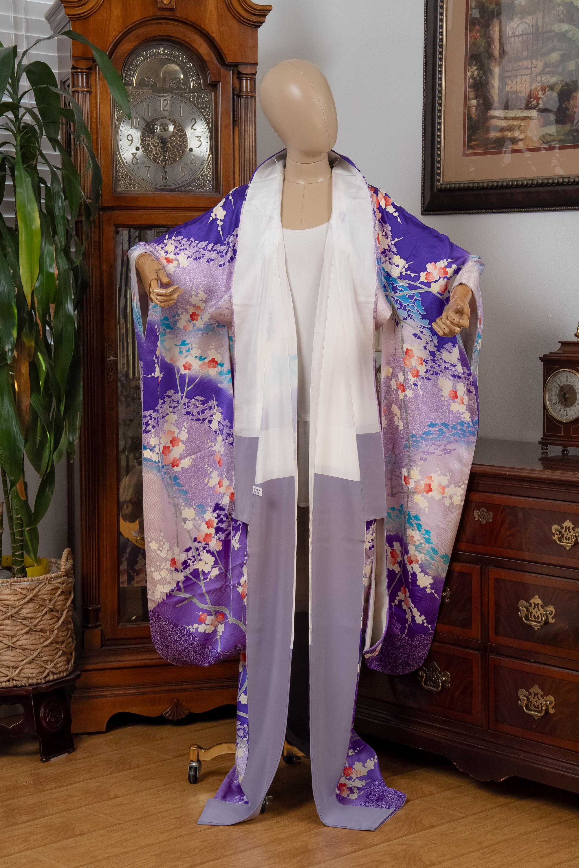 Furisode is a formal kimono distinguishable by its long sleeves. Furisode is the most formal style of kimono worn by young unmarried women in Japan, generally used for formal social functions such as the tea ceremony, wedding ceremonies and graduation ceremonies. Furisode's elegant aesthetics along with such fine details often make a great wall decoration for home as well.