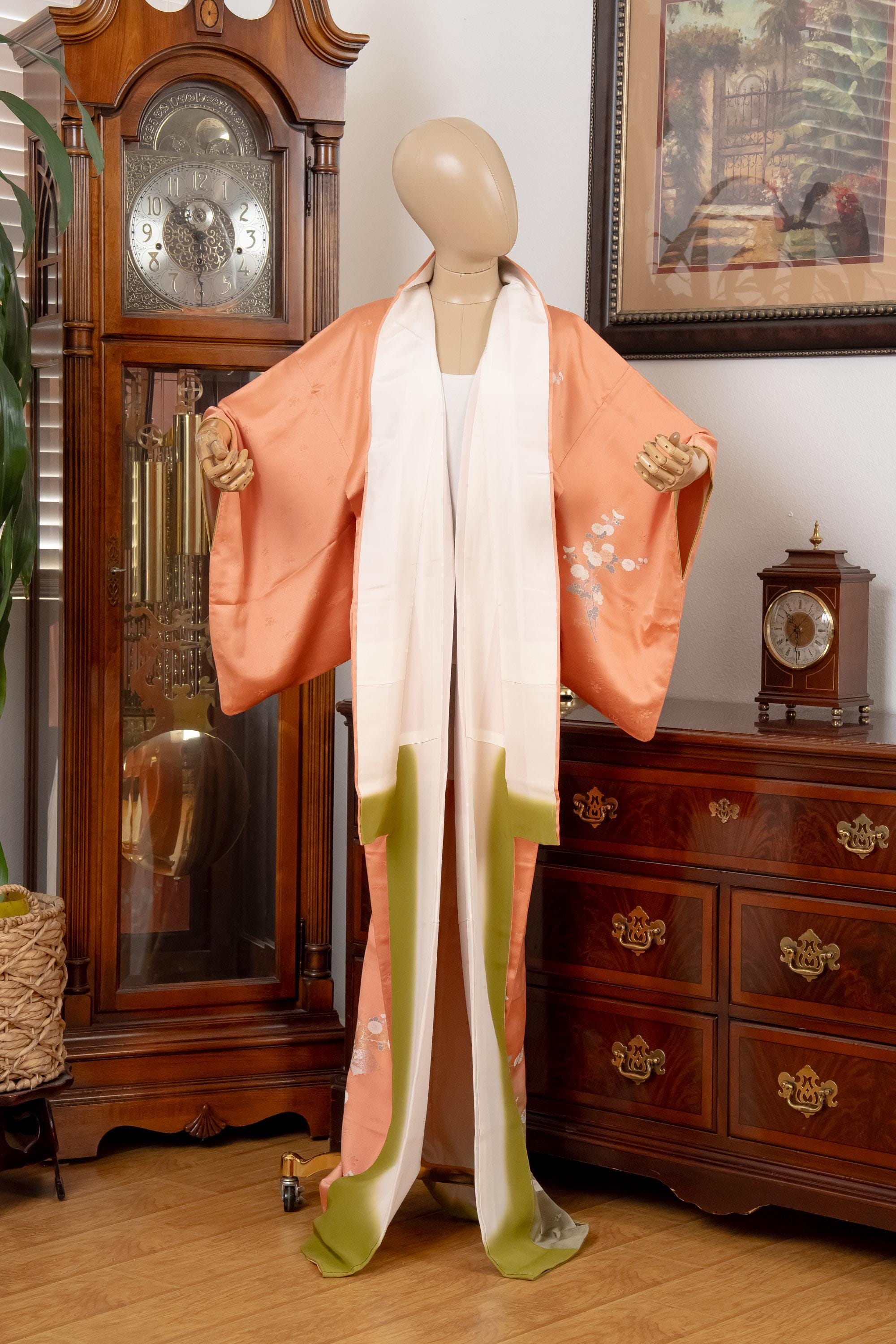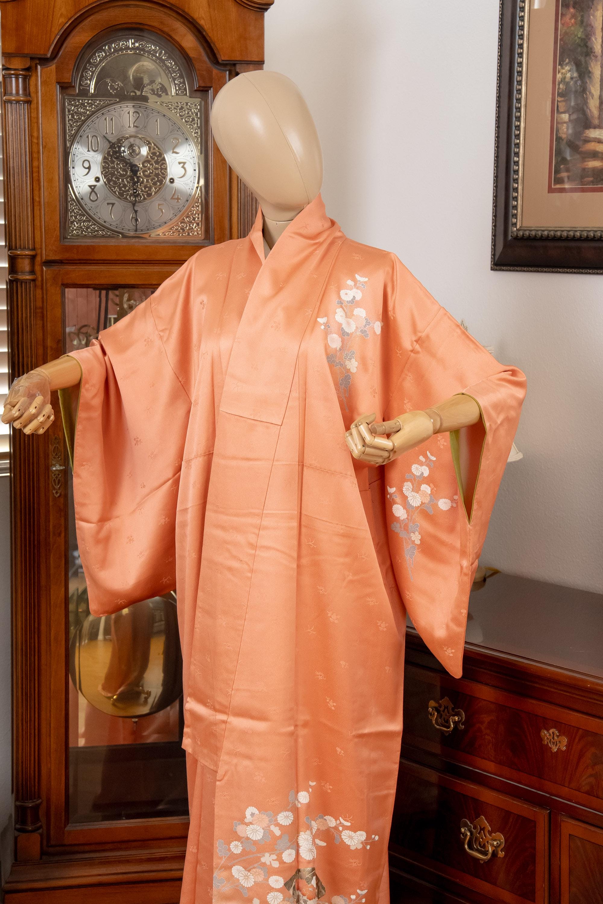 Please keep in mind that female Kimonos are supposed to fit long. You will need to adjust the length to your size by tying with Kitsuke accessories and Obi belt.