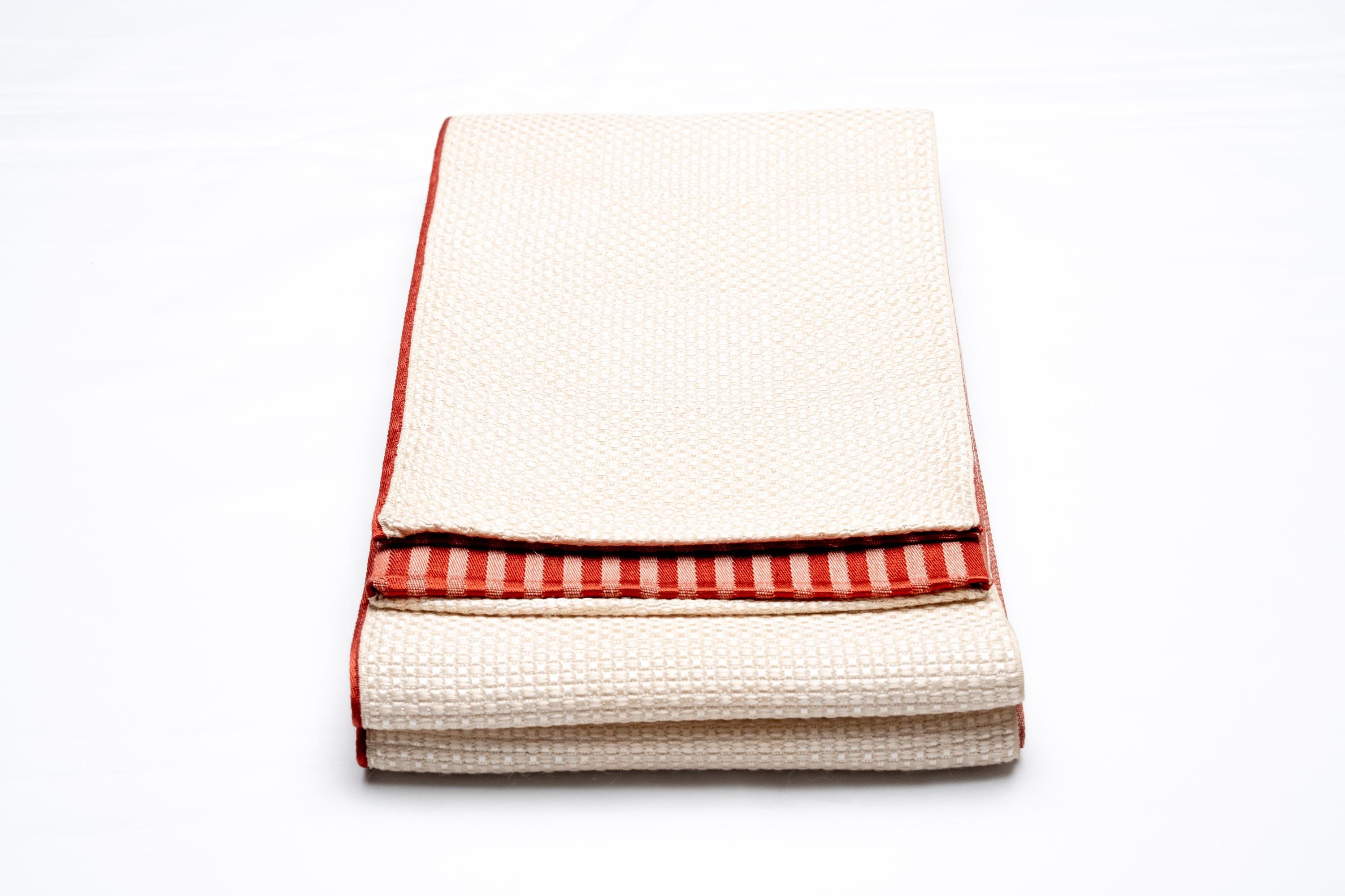 Hanhaba Obi is a lightweight Women's Kimono belt to keep Kimono's front wrapping and its closure in place. It also serves the purpose of adjusting the Kimono's length by drawing up excess fabric off the ground.