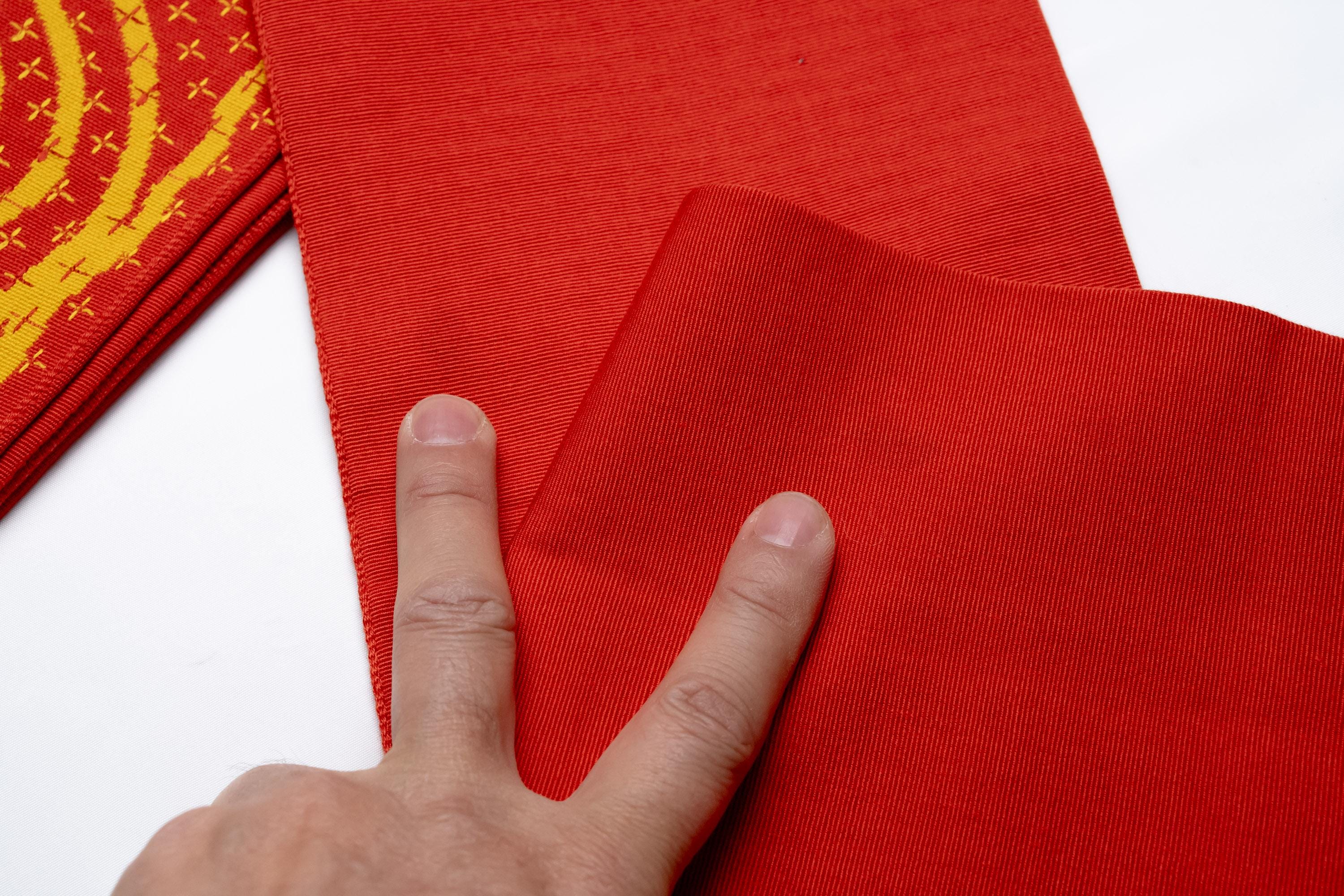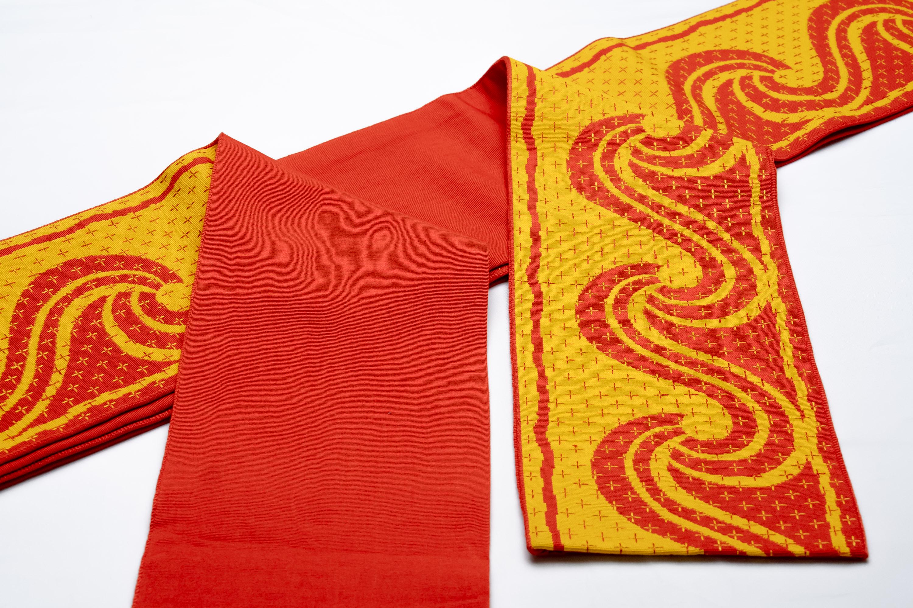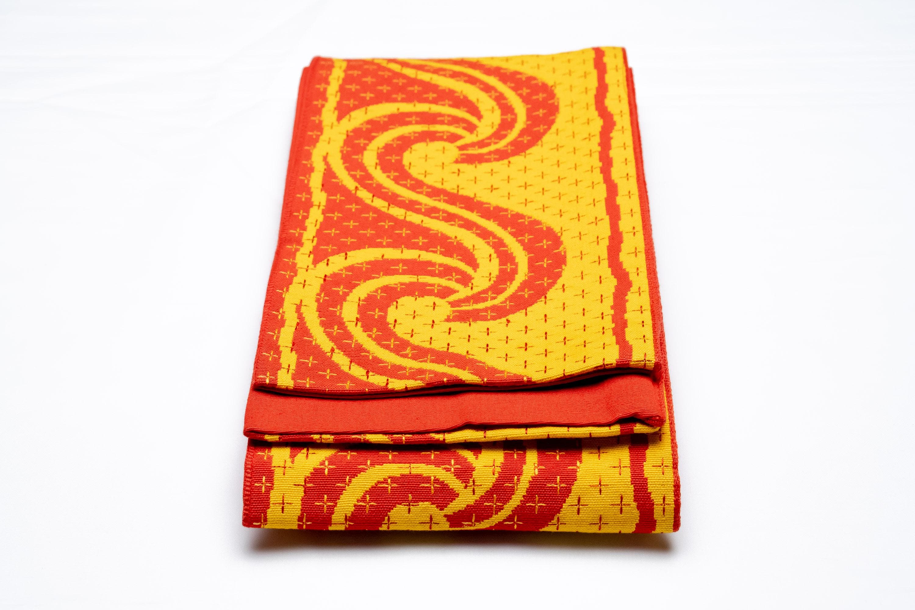 Hanhaba Obi is a lightweight Women's Kimono belt to keep Kimono's front wrapping and its closure in place. It also serves the purpose of adjusting the Kimono's length by drawing up excess fabric off the ground.
