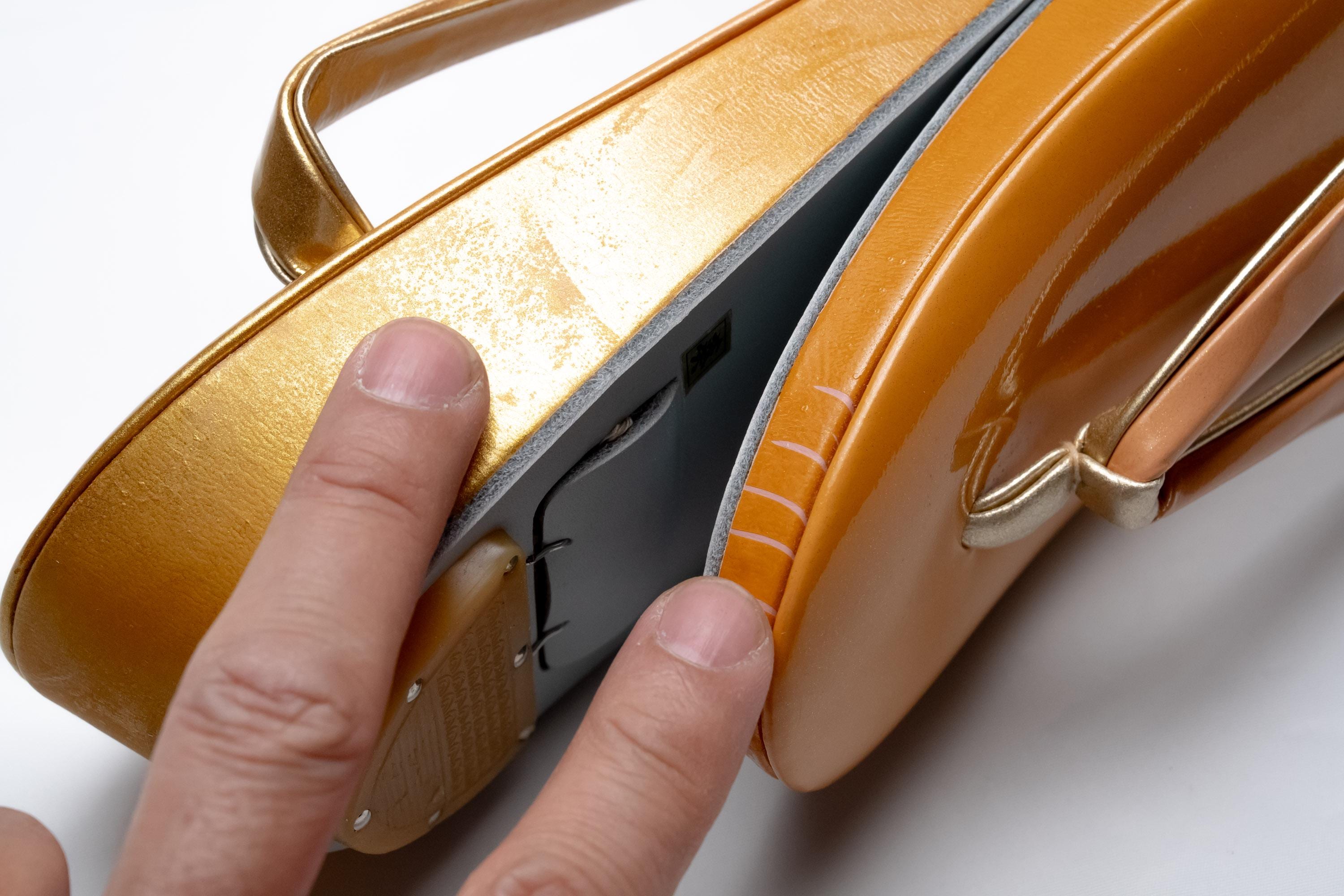 When you wear Zori with traditional Japanese formal Kimono, your heels should extend about one centimeter off the back of Zori. If your heels sit perfectly onto or shorter than the body of Zori, you might accidentally step onto the hem of your Kimono dress and/or splash mud/dirt on the back of dress.
